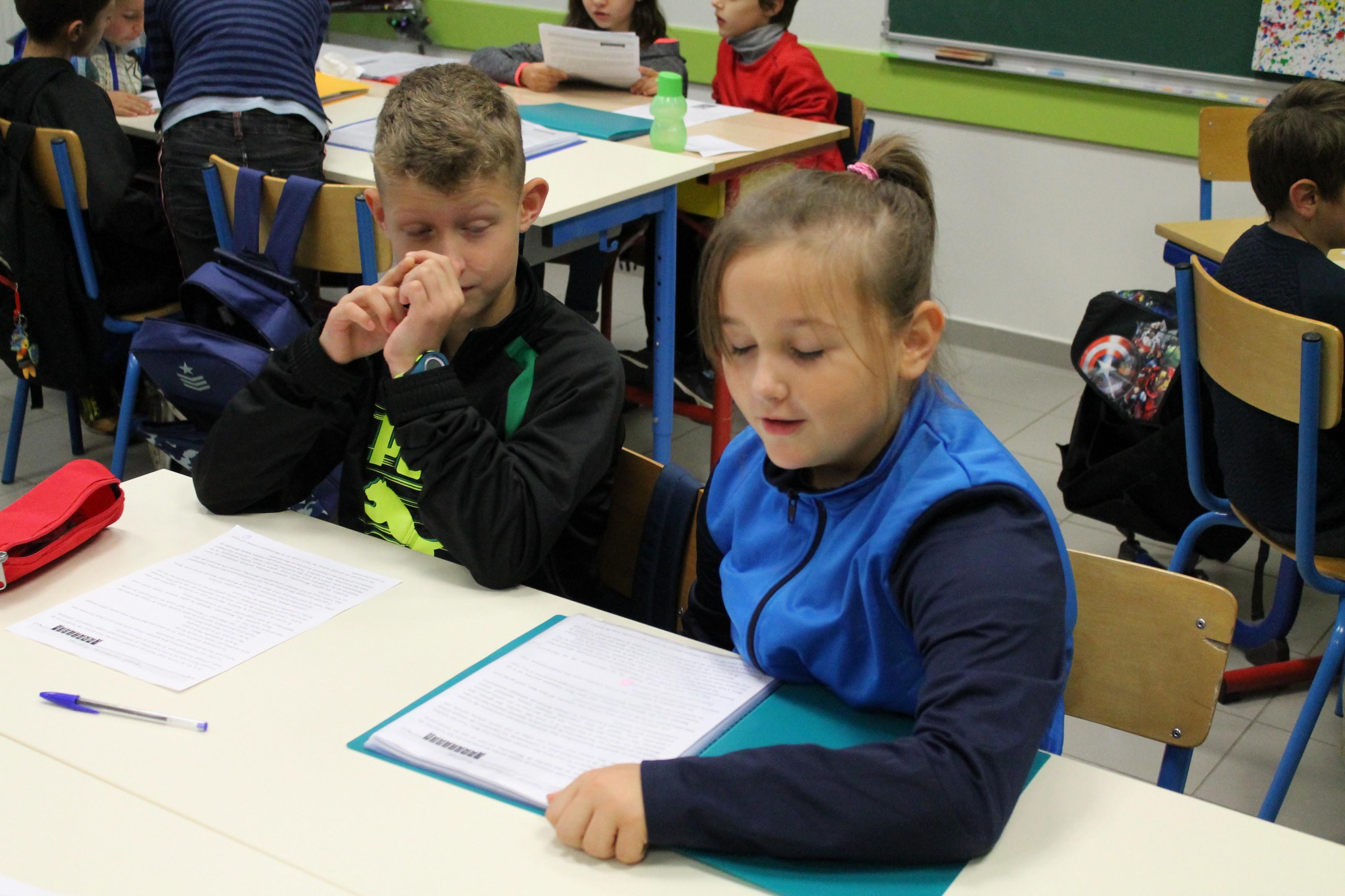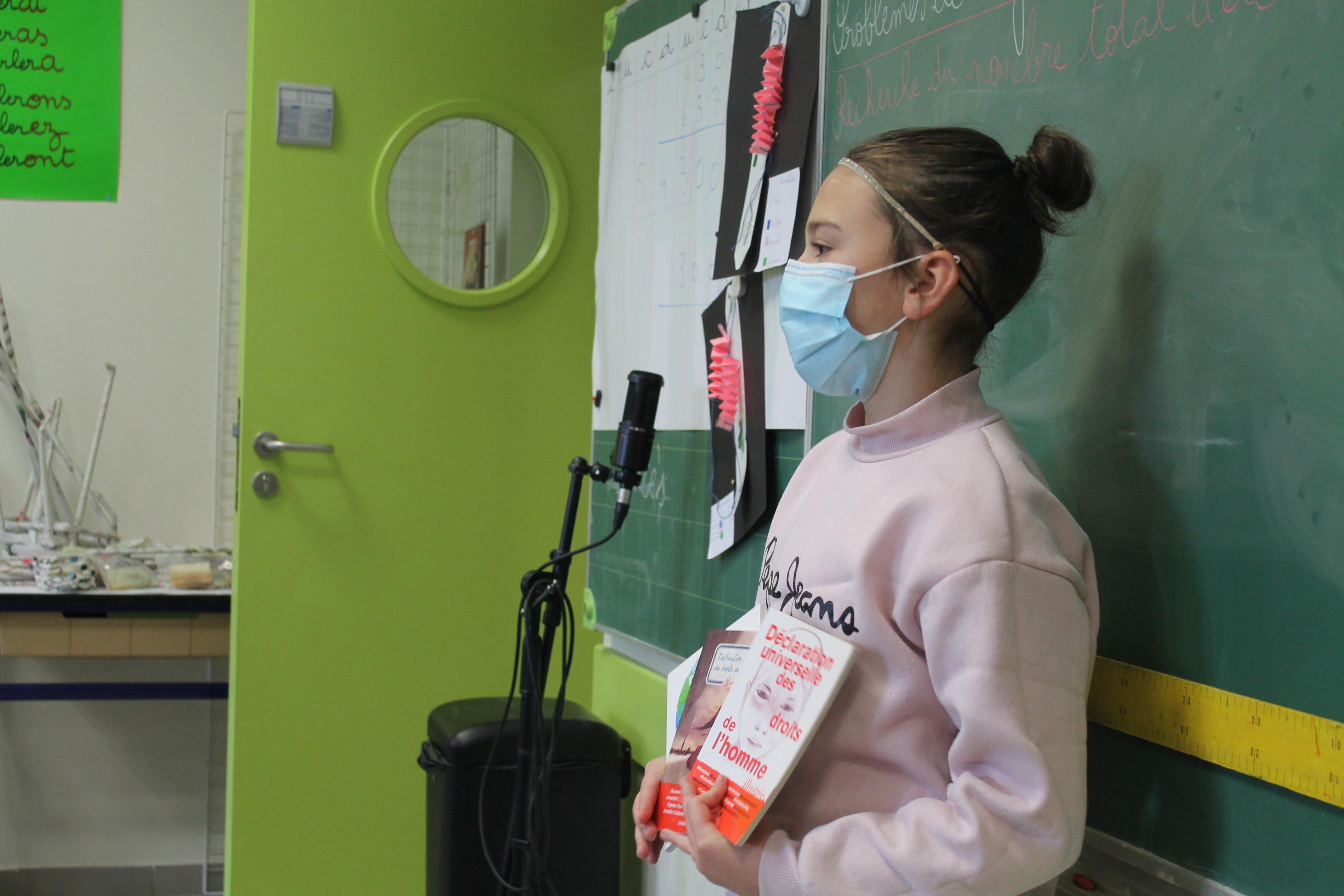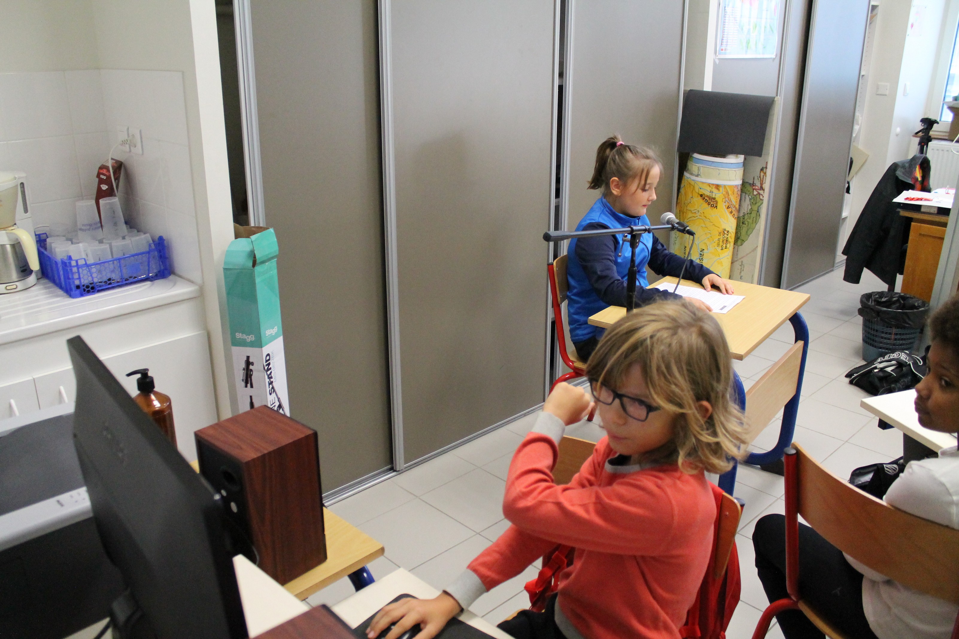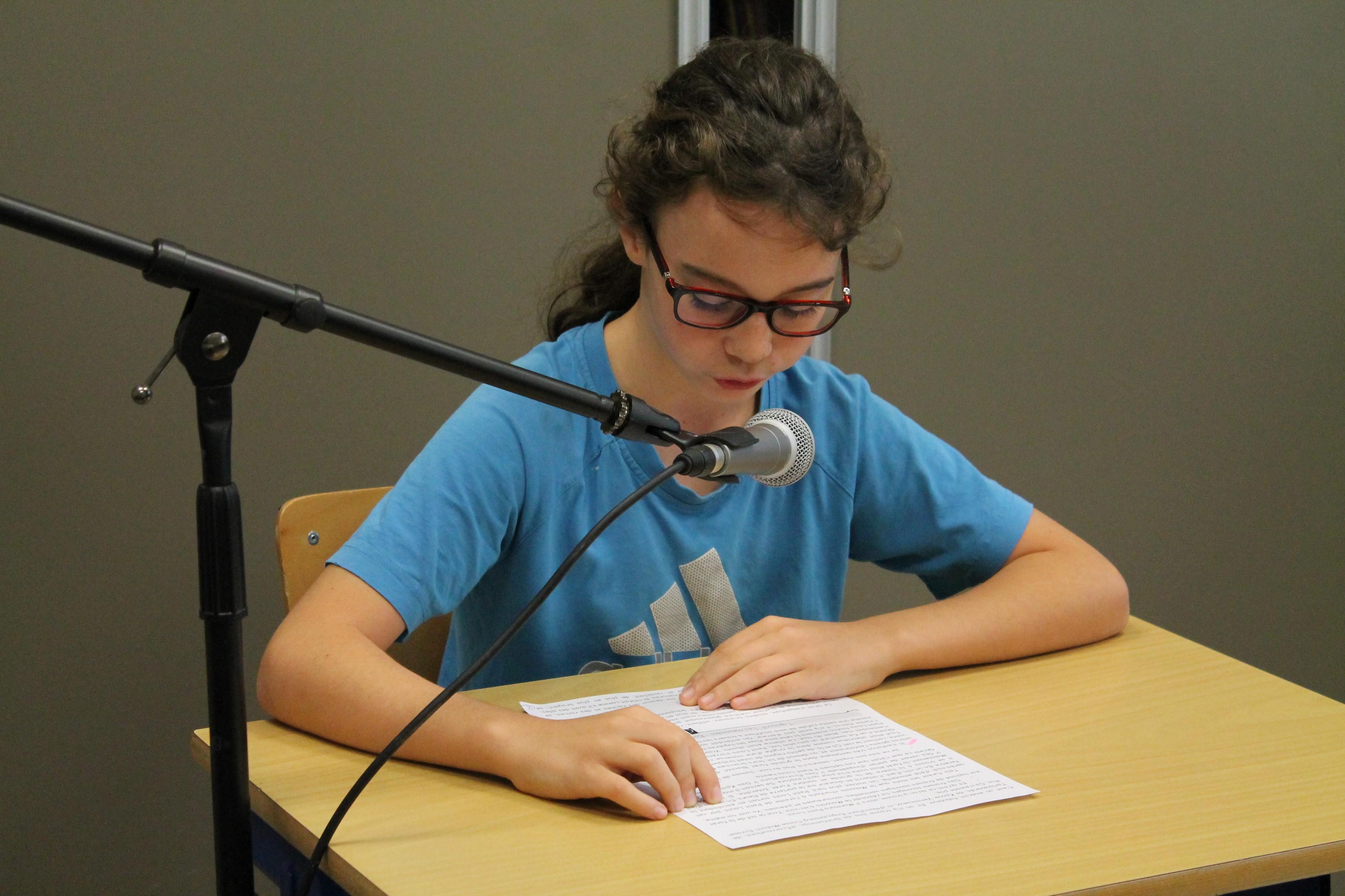 Eliott enregistre sa partie fluidement du texte : les Minuscules.