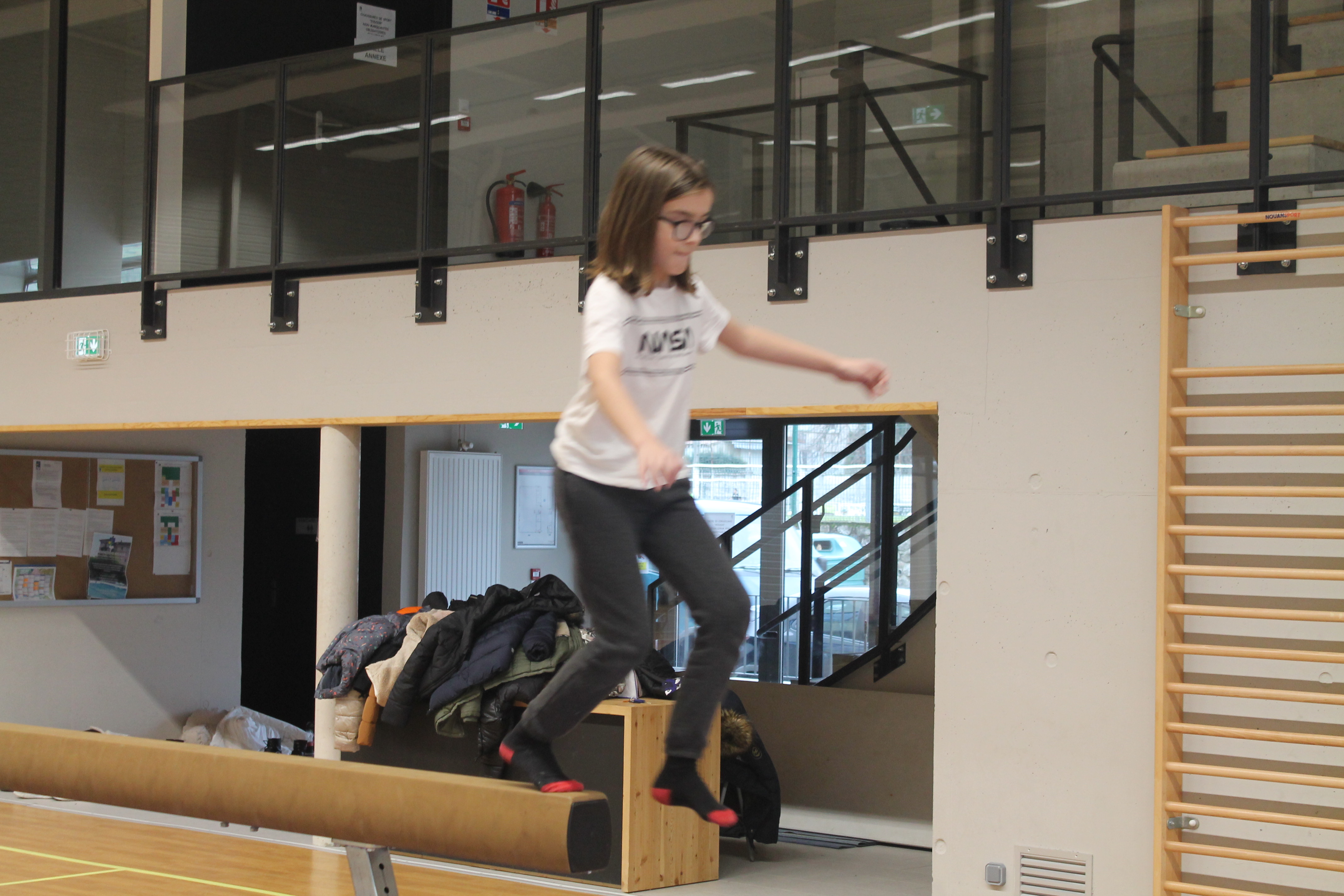 J'adore la gym, parce que on apprend a faire des figures. J'ai adoré faire la poutre, au début je n'y arrivais pas. Mais sur la grande poutre j'y suis arrivée toute seule.