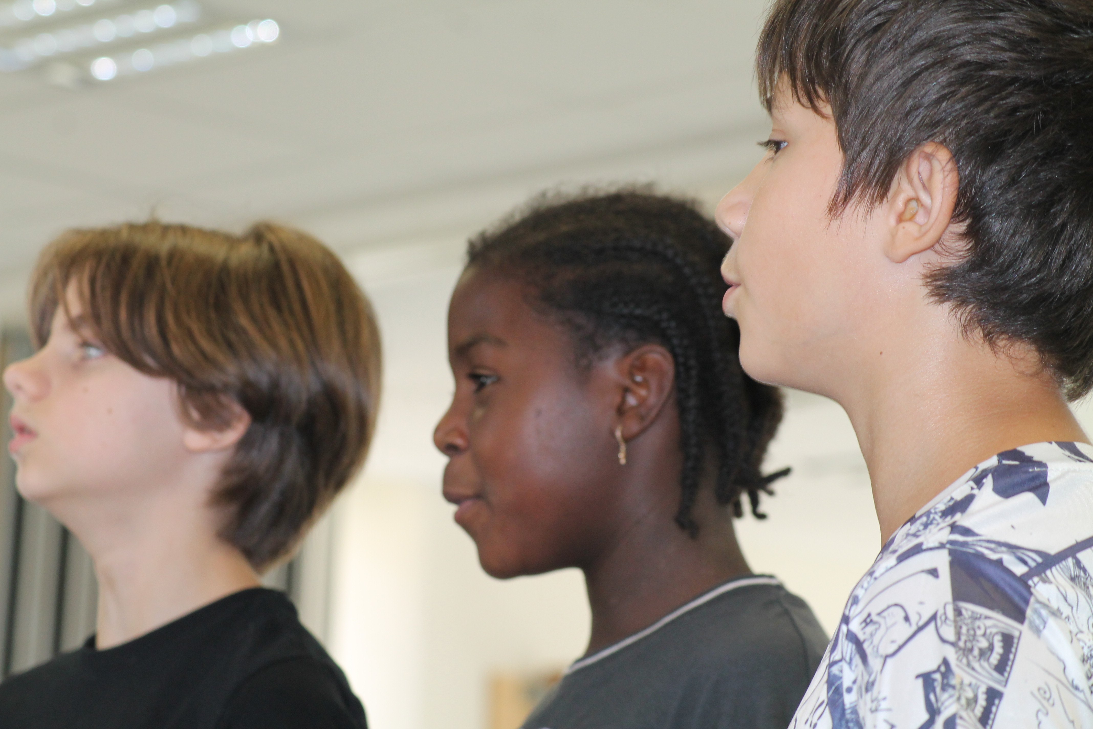 nous devions chanter des notes, monter dans les aigus puis redescendre dans les graves. Ensuite nous avons chanté « Le chant des partisans »: une musique créée pendant la seconde guerre mondiale.