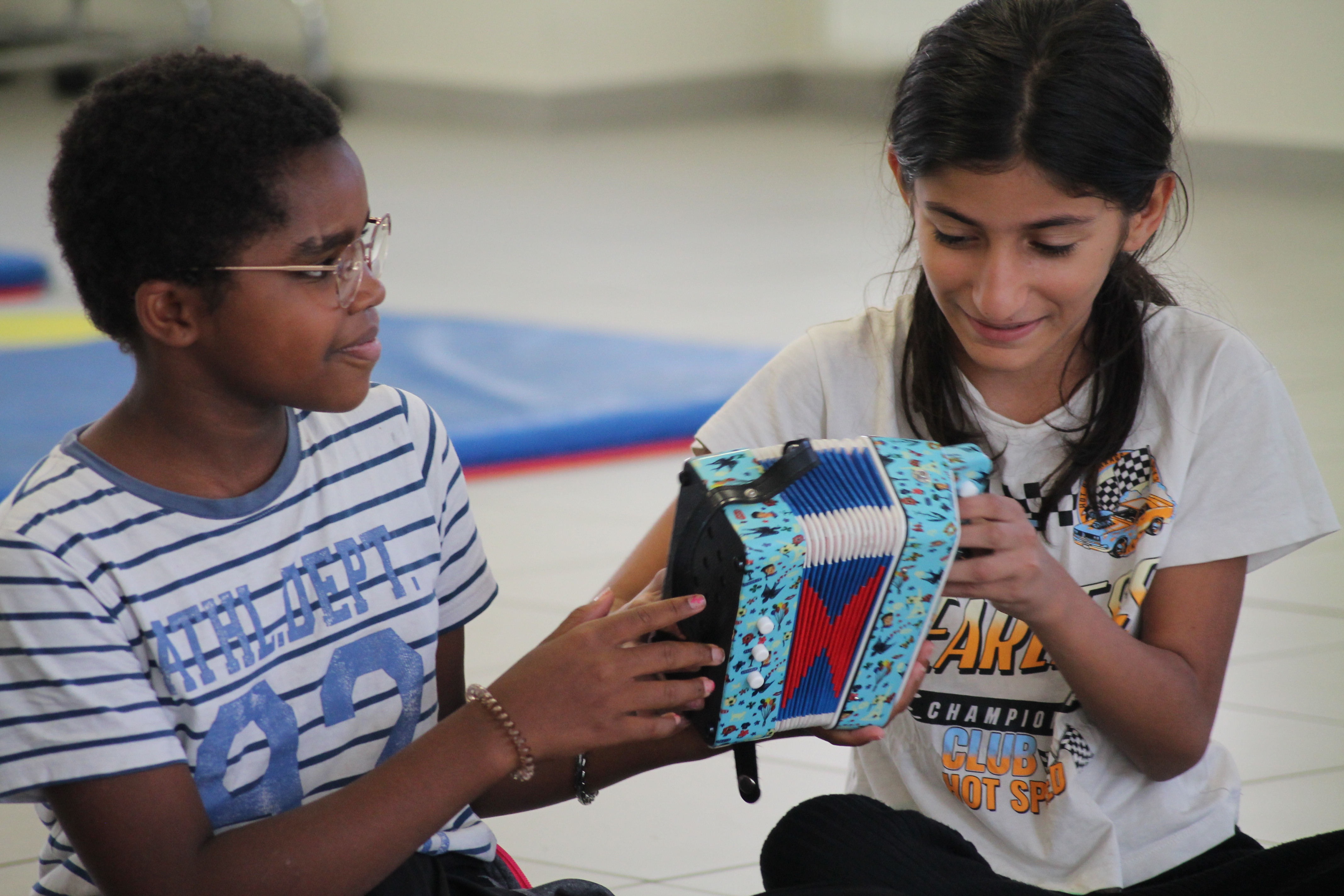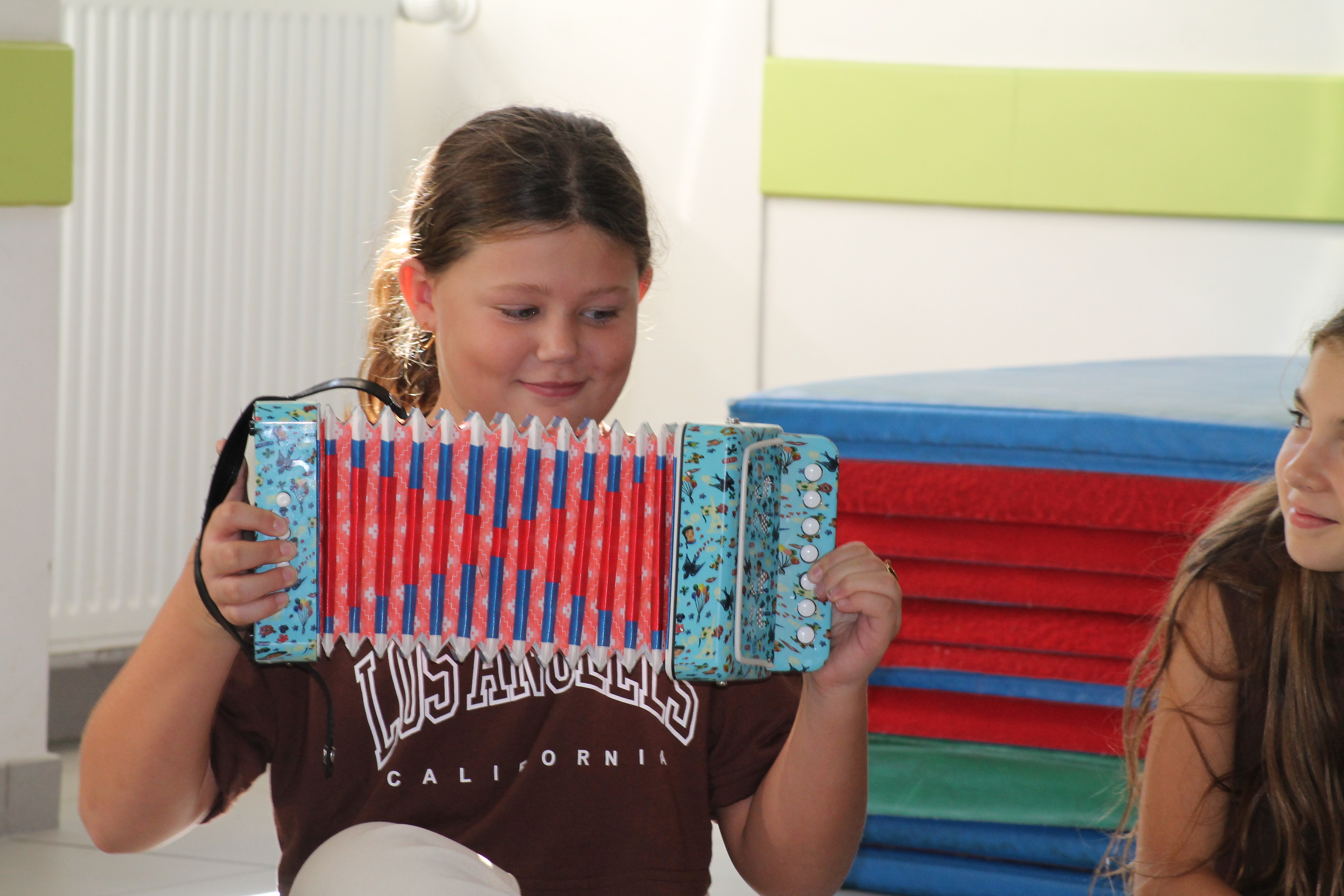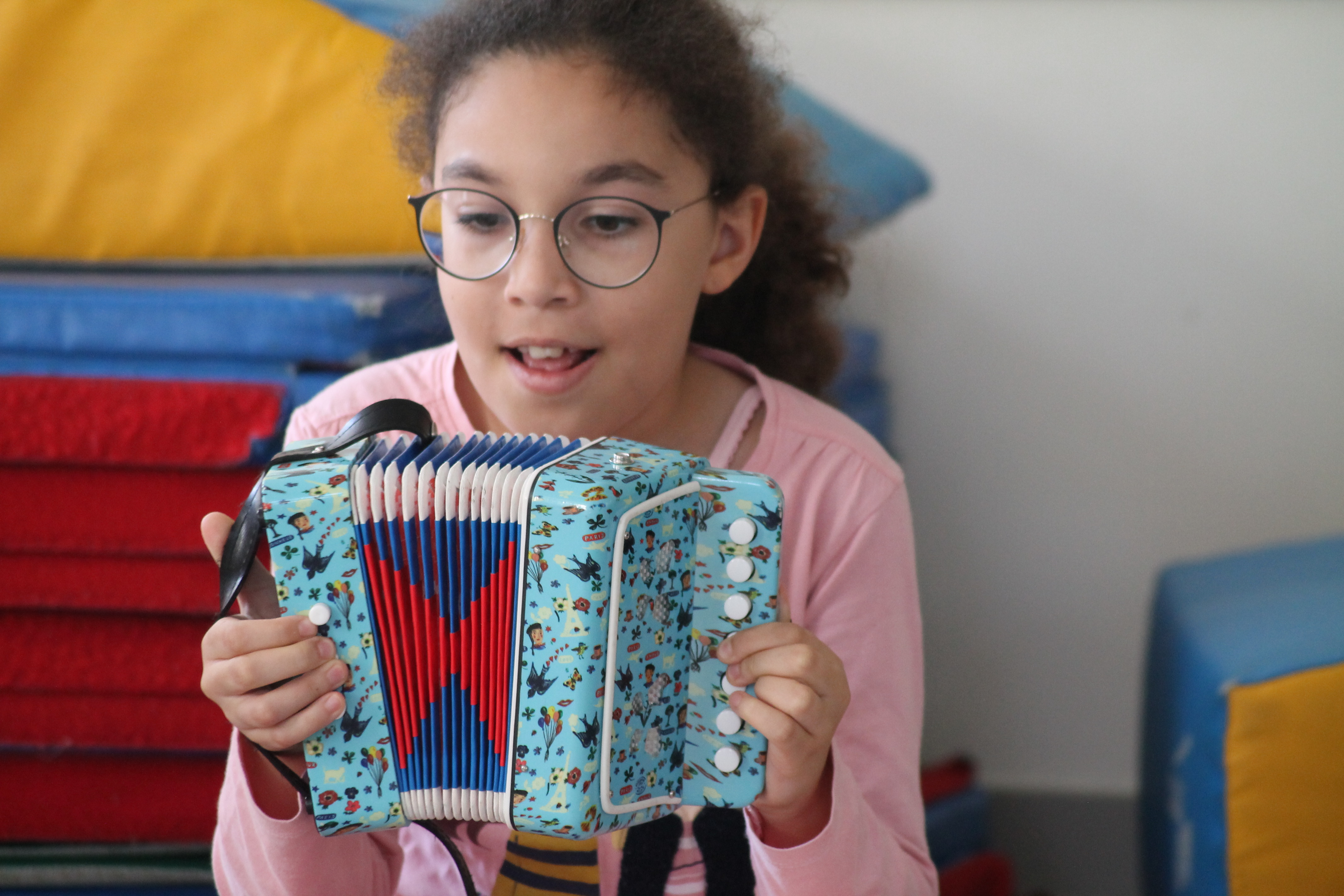 Ce qui est bien en musique c'est que Valentine nous fait essayer des instruments qu'on n’aura peut-être jamais l'occasion de réessayer.