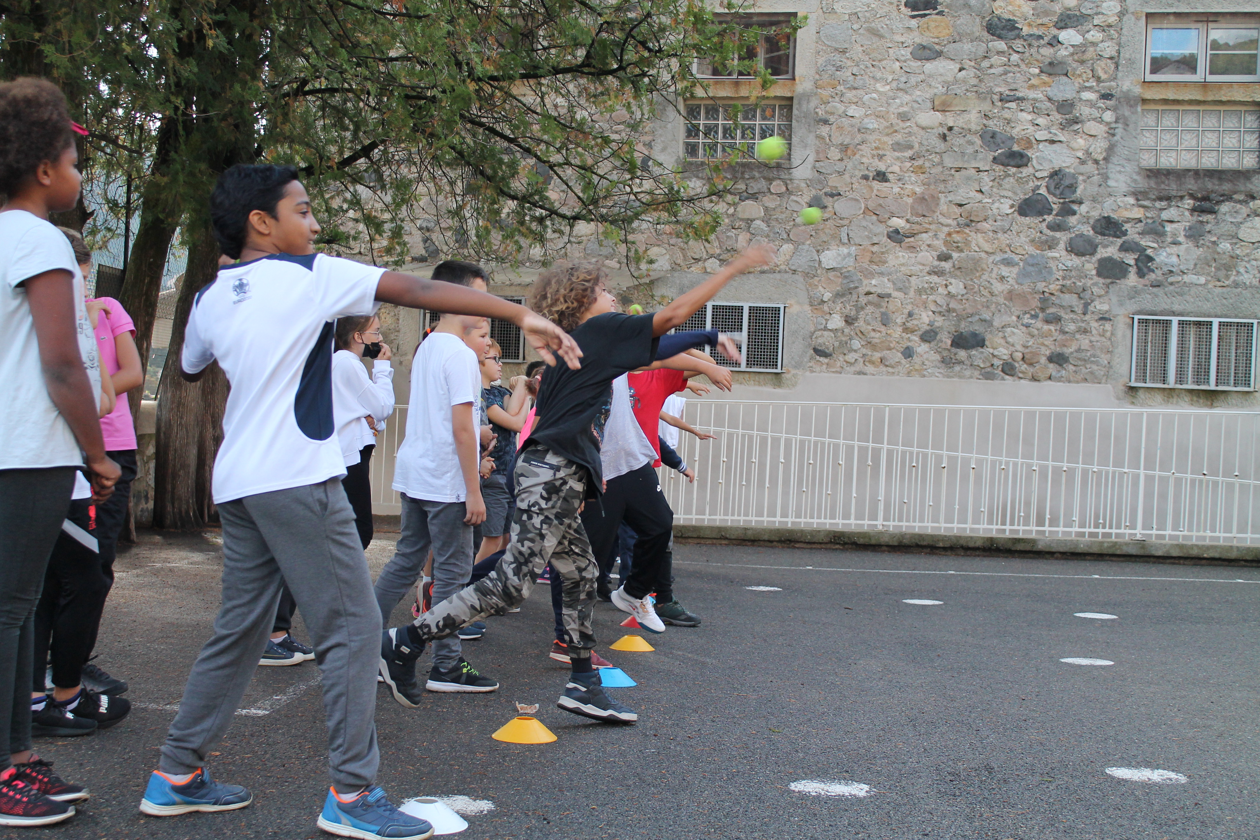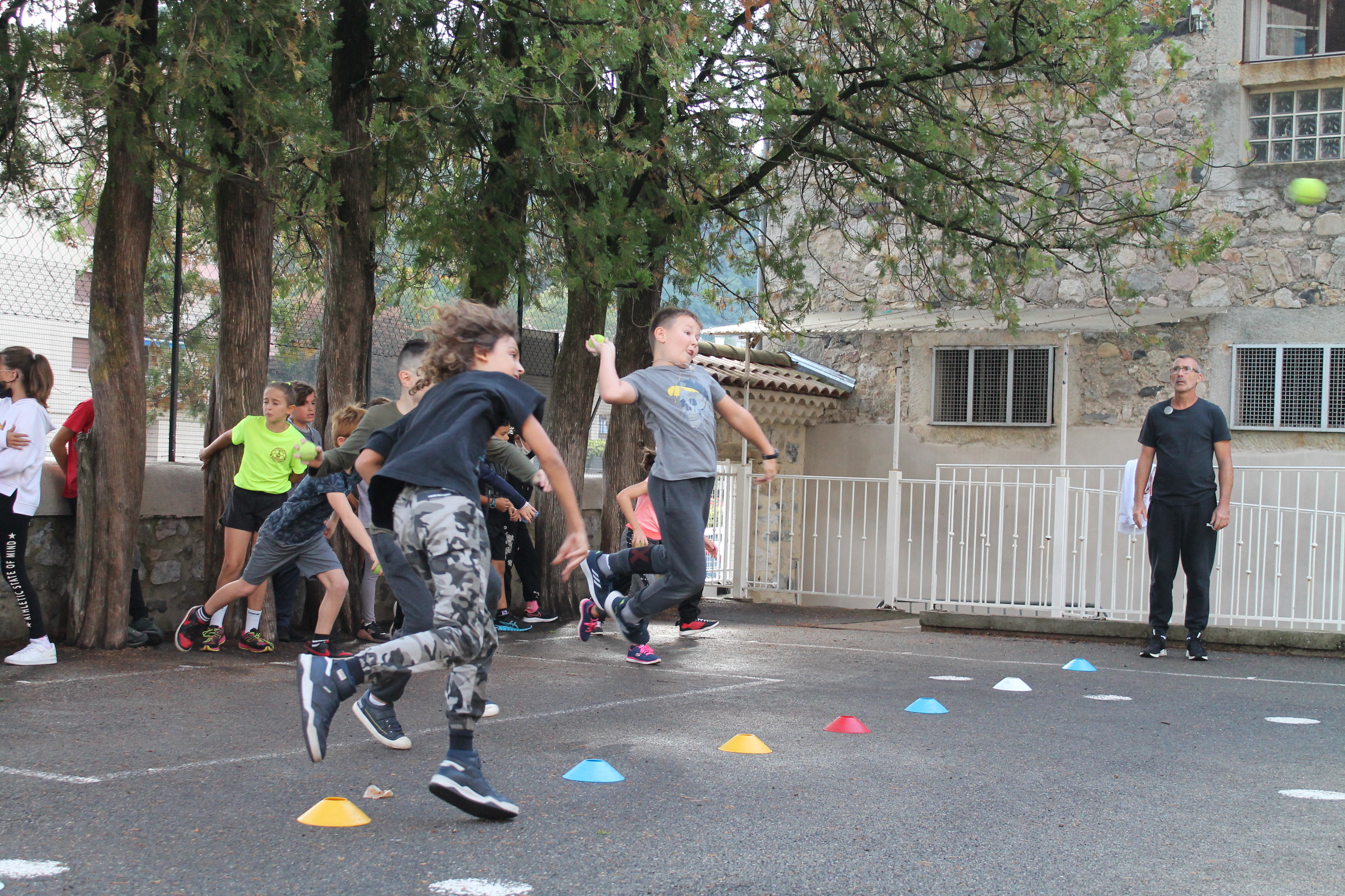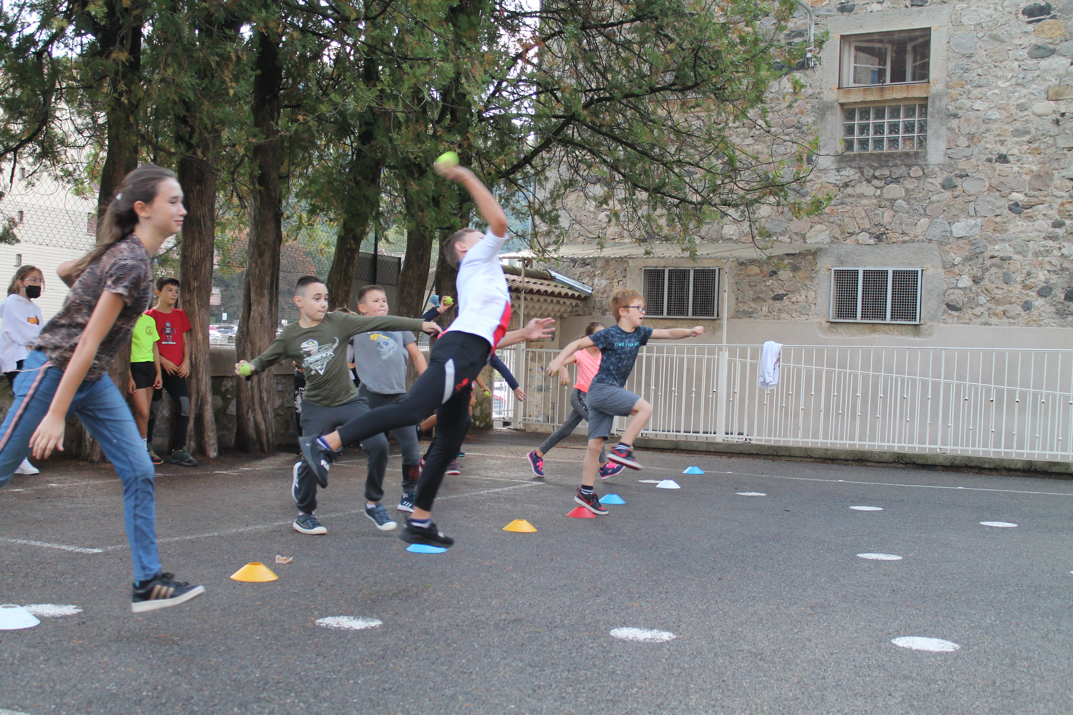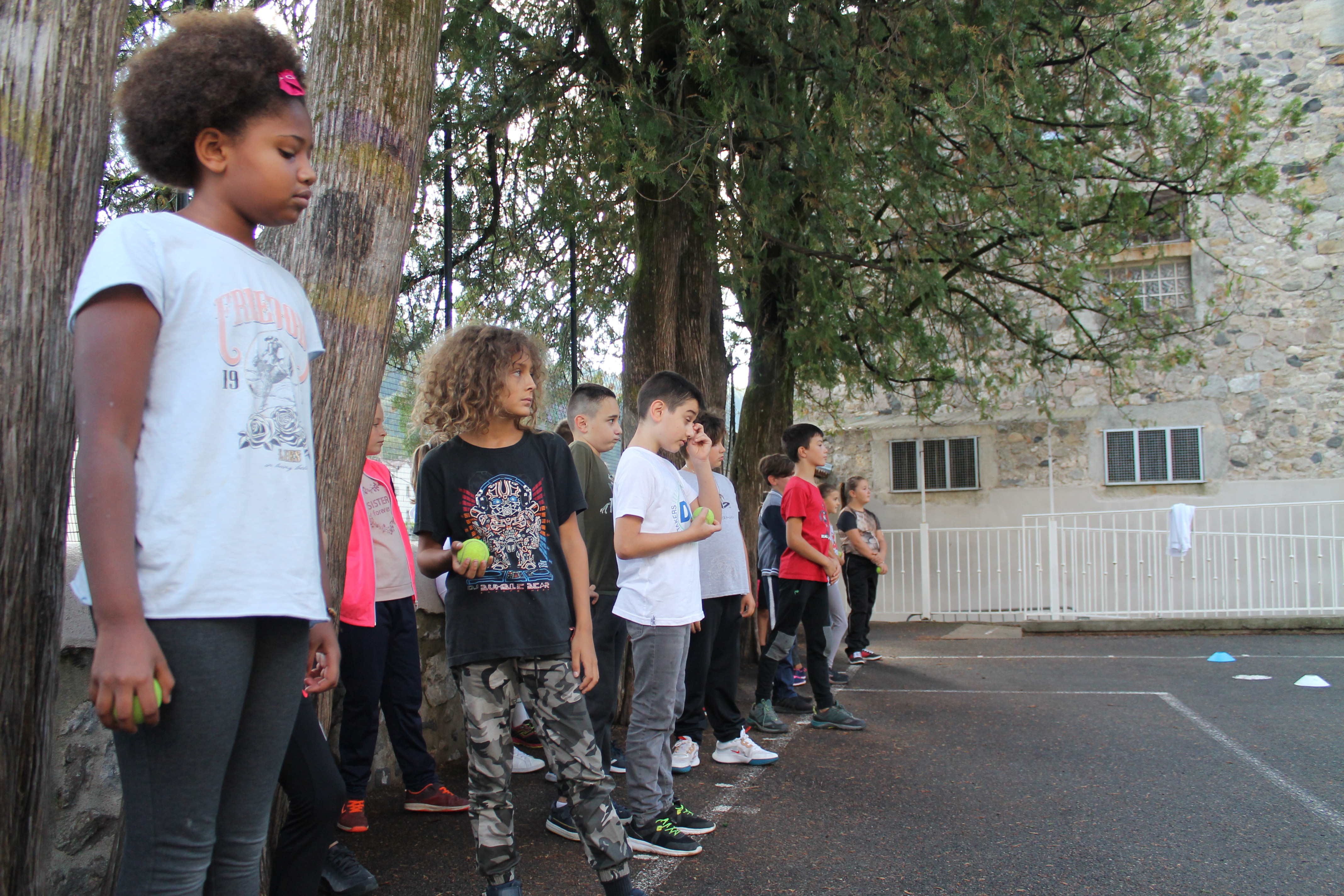 En cycle dans l'année, nous allons faire de l'athlétisme (ce que nous pratiquons en ce moment), puis de la pétanque lyonnaise, du rugby ou du hand-ball. Cela va être très bien pour l'endurance et la précision.
