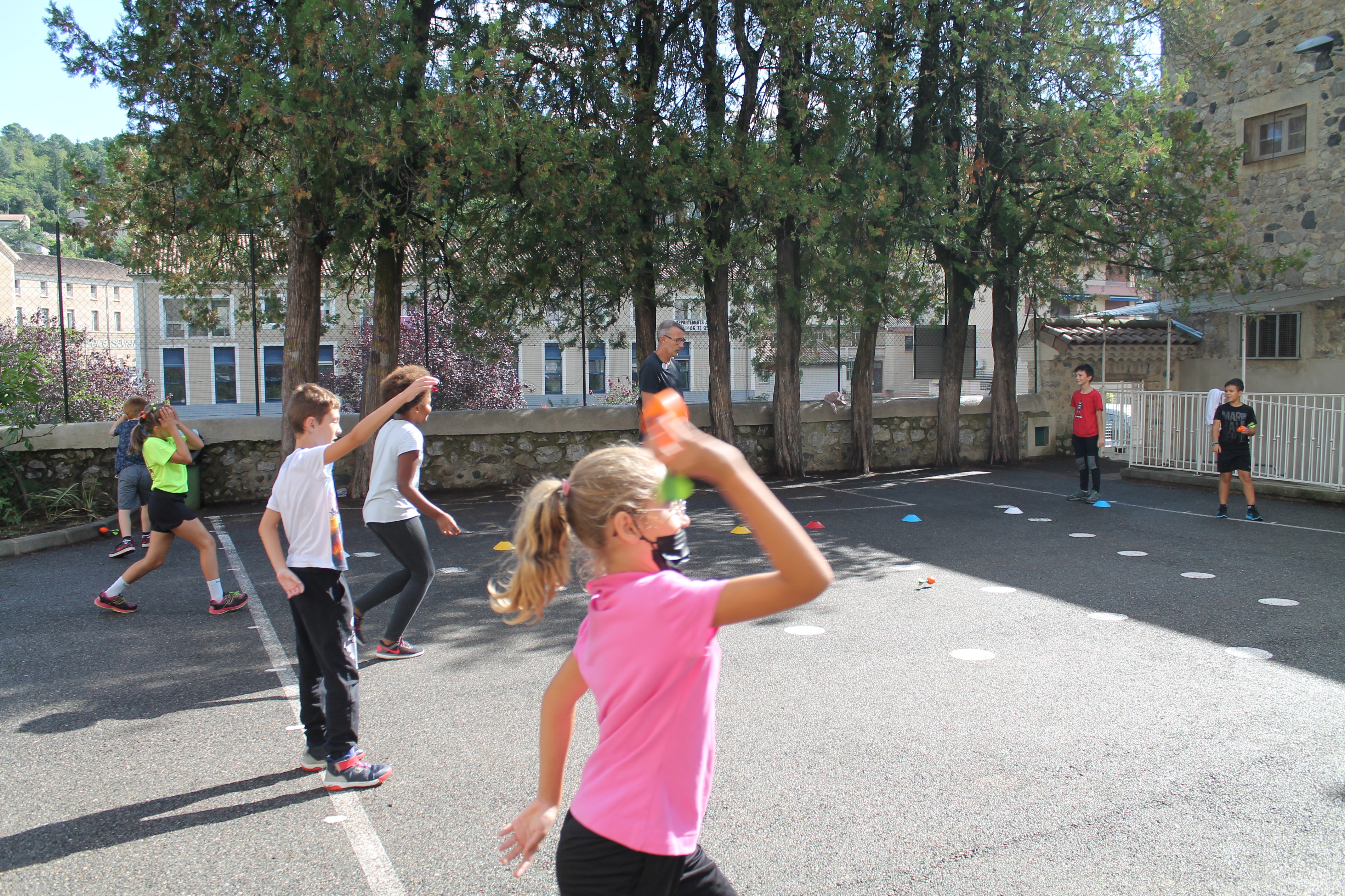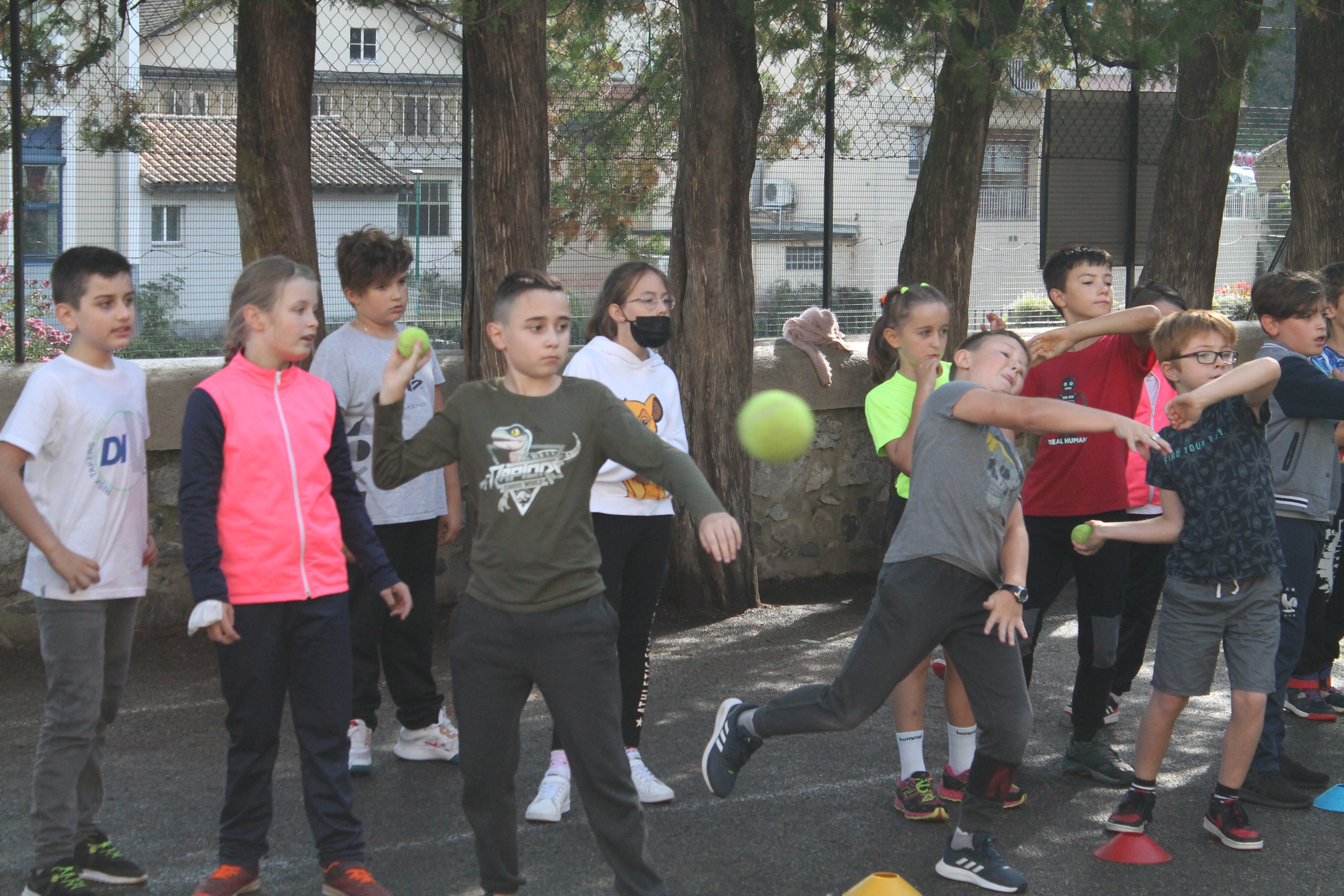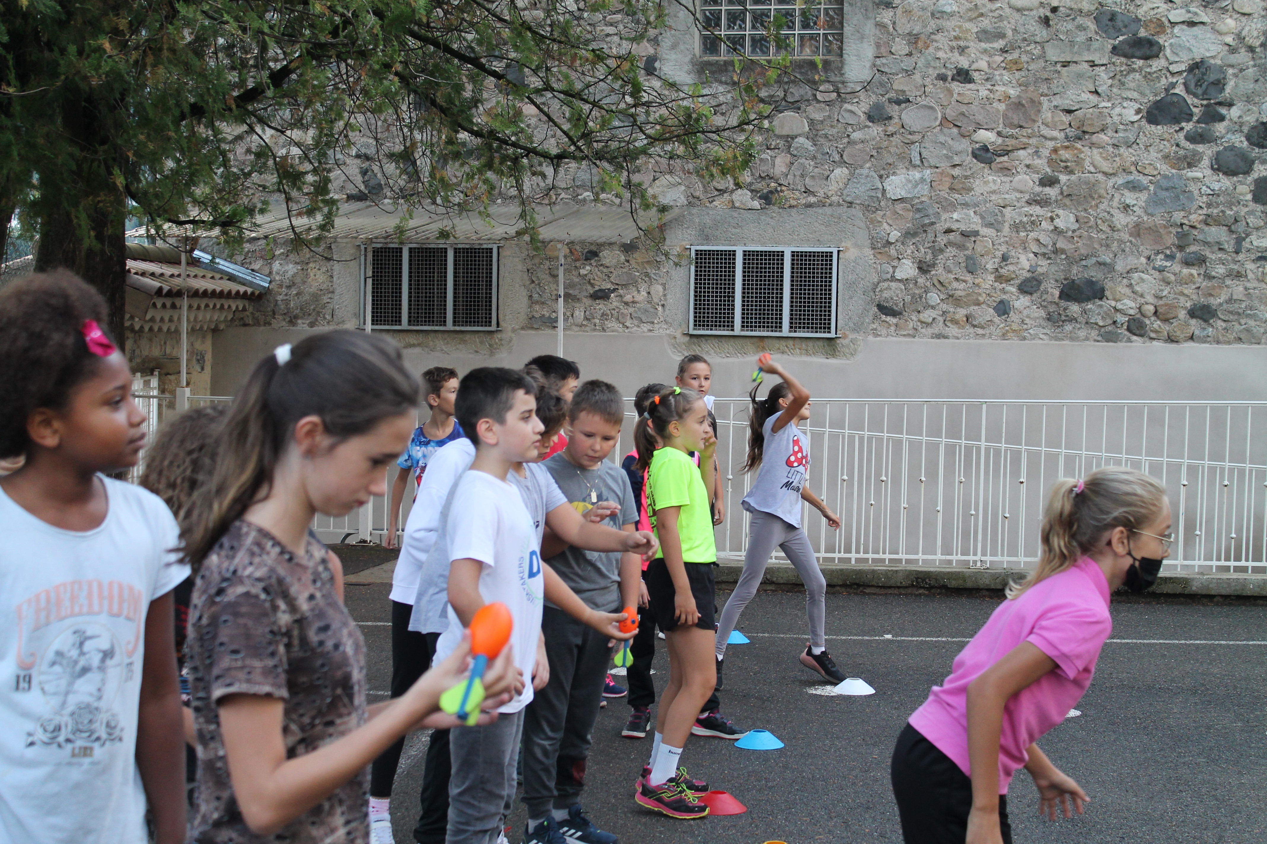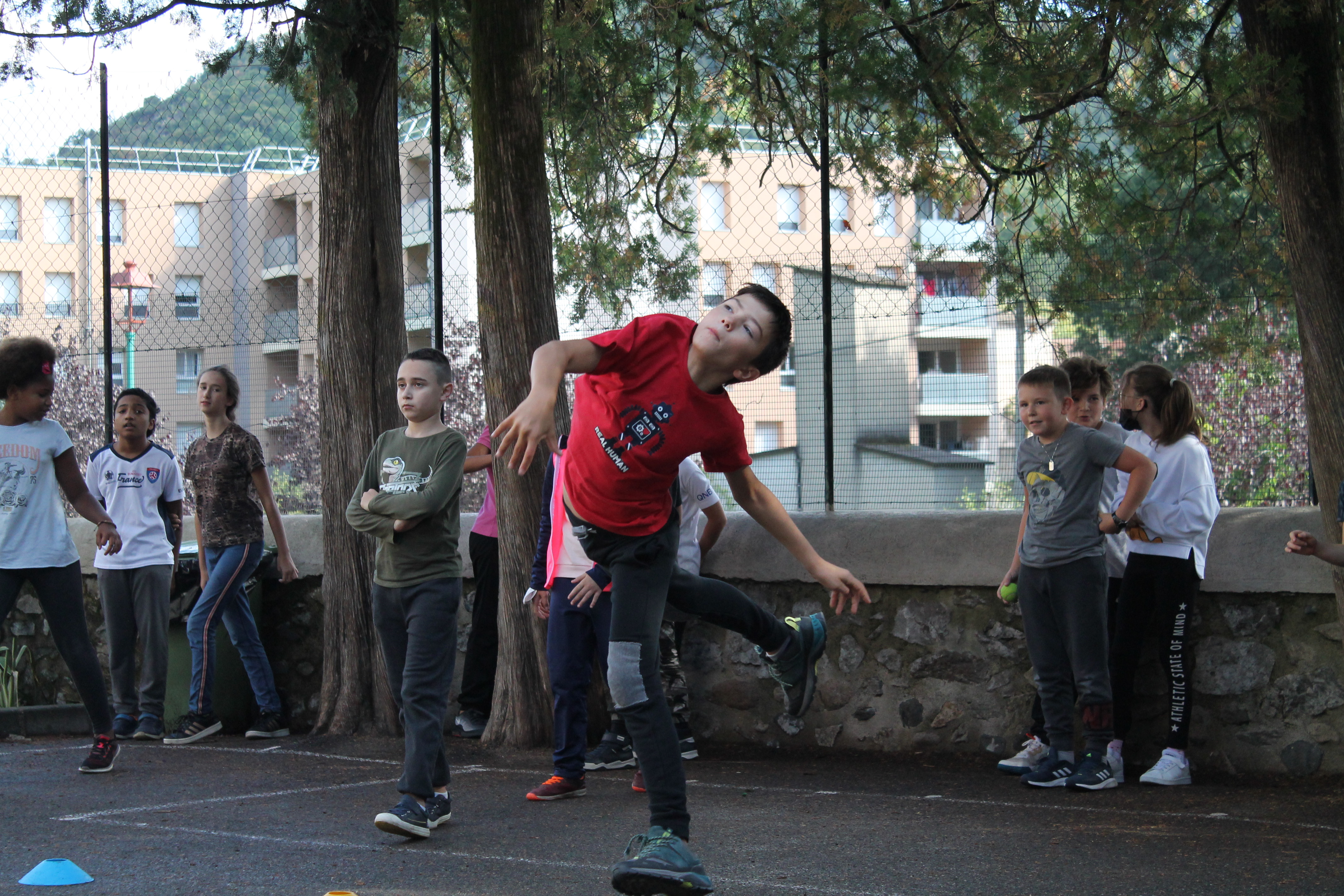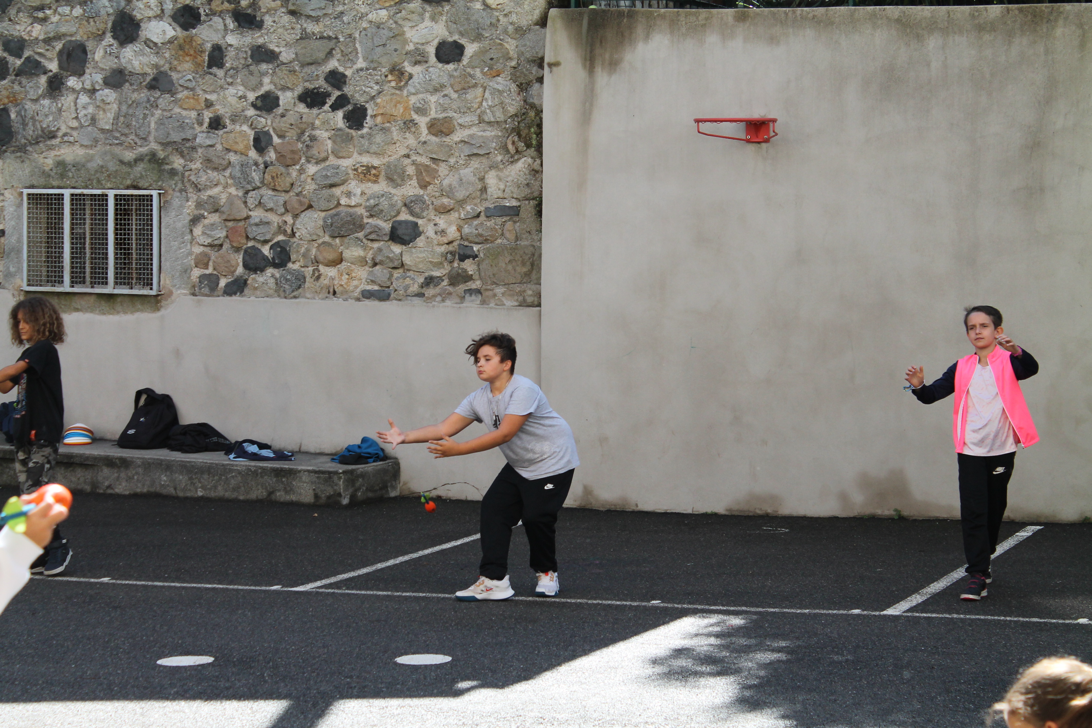 En cycle dans l'année, nous allons faire de l'athlétisme (ce que nous pratiquons en ce moment), puis de la pétanque lyonnaise, du rugby ou du hand-ball. Cela va être très bien pour l'endurance et la précision.