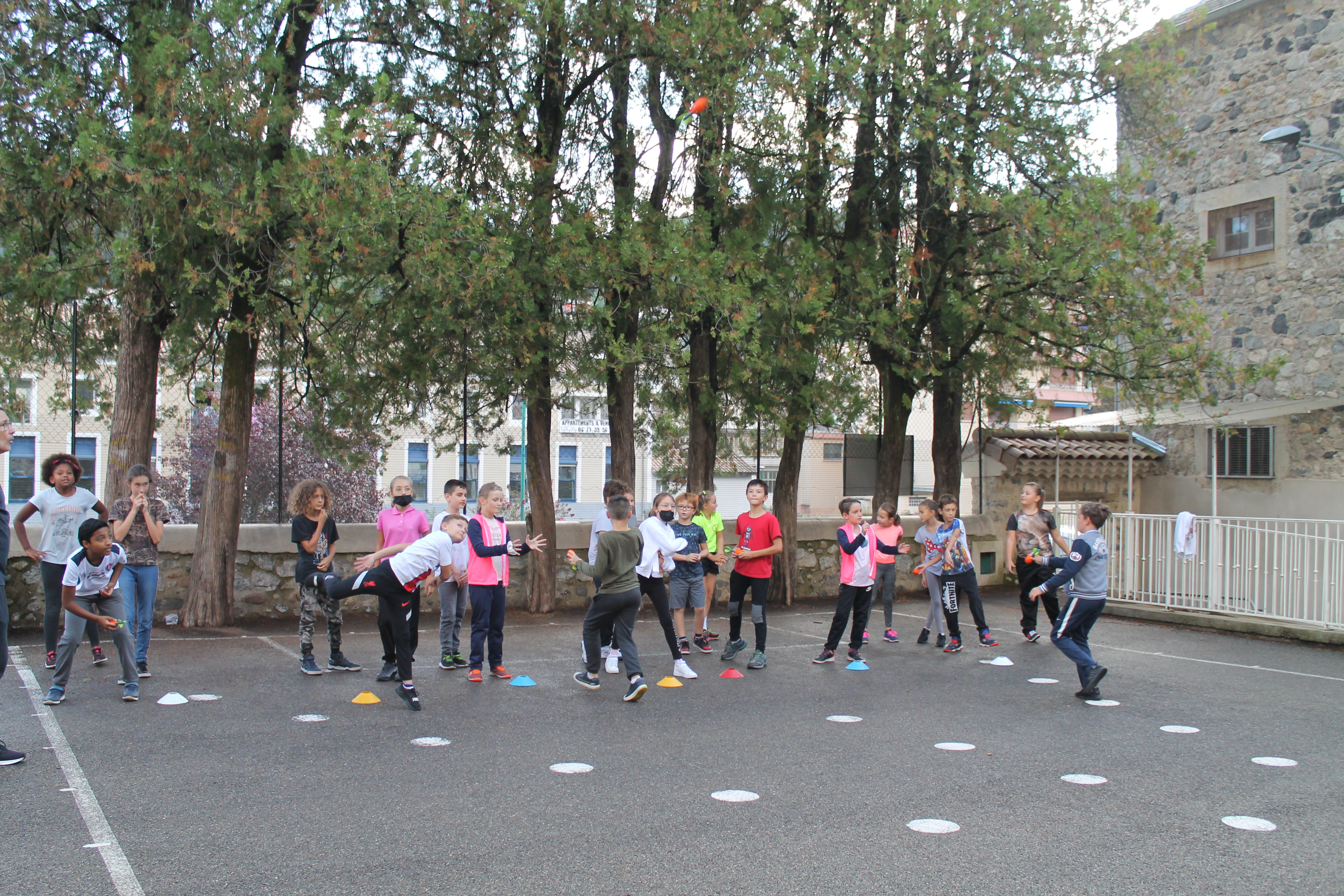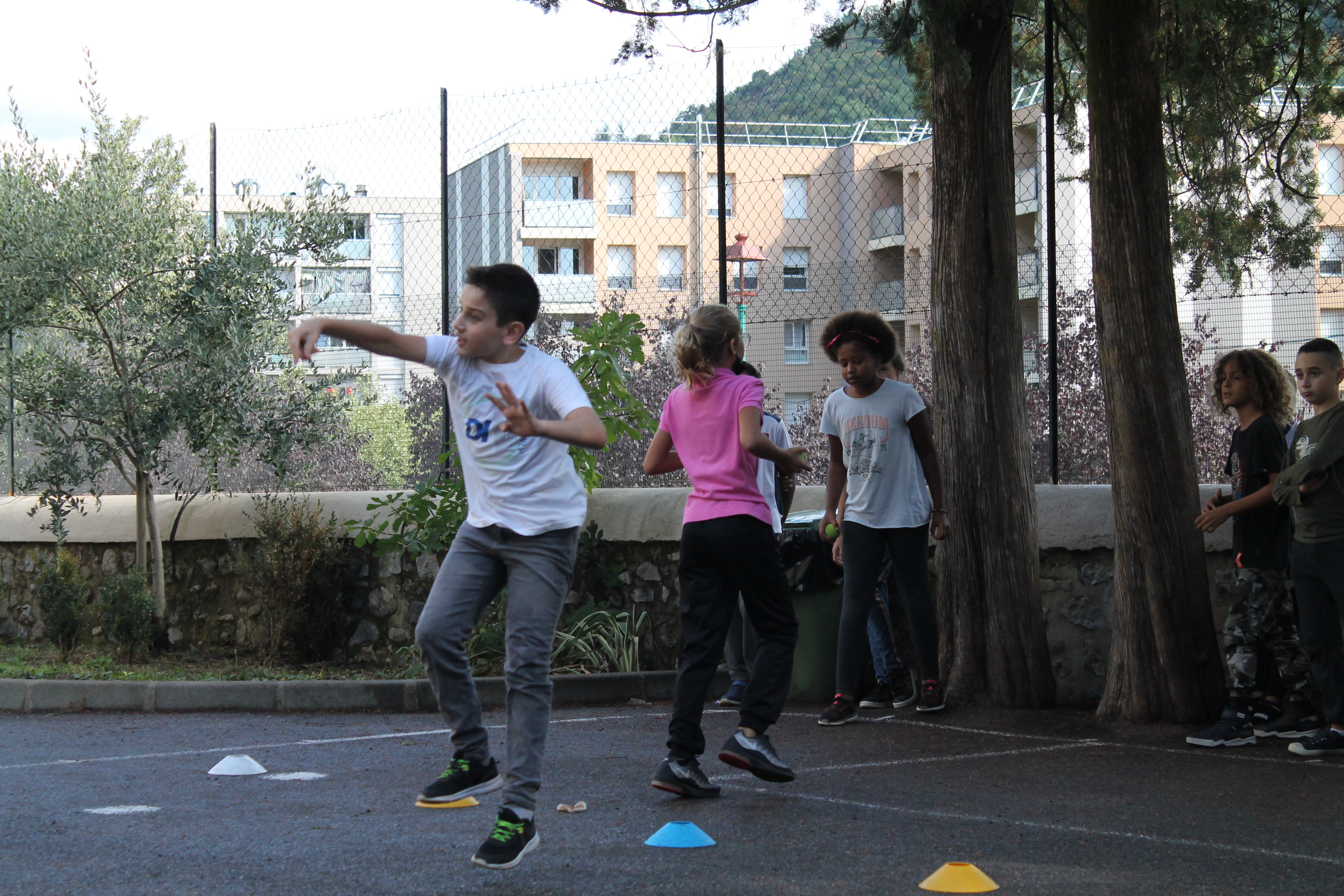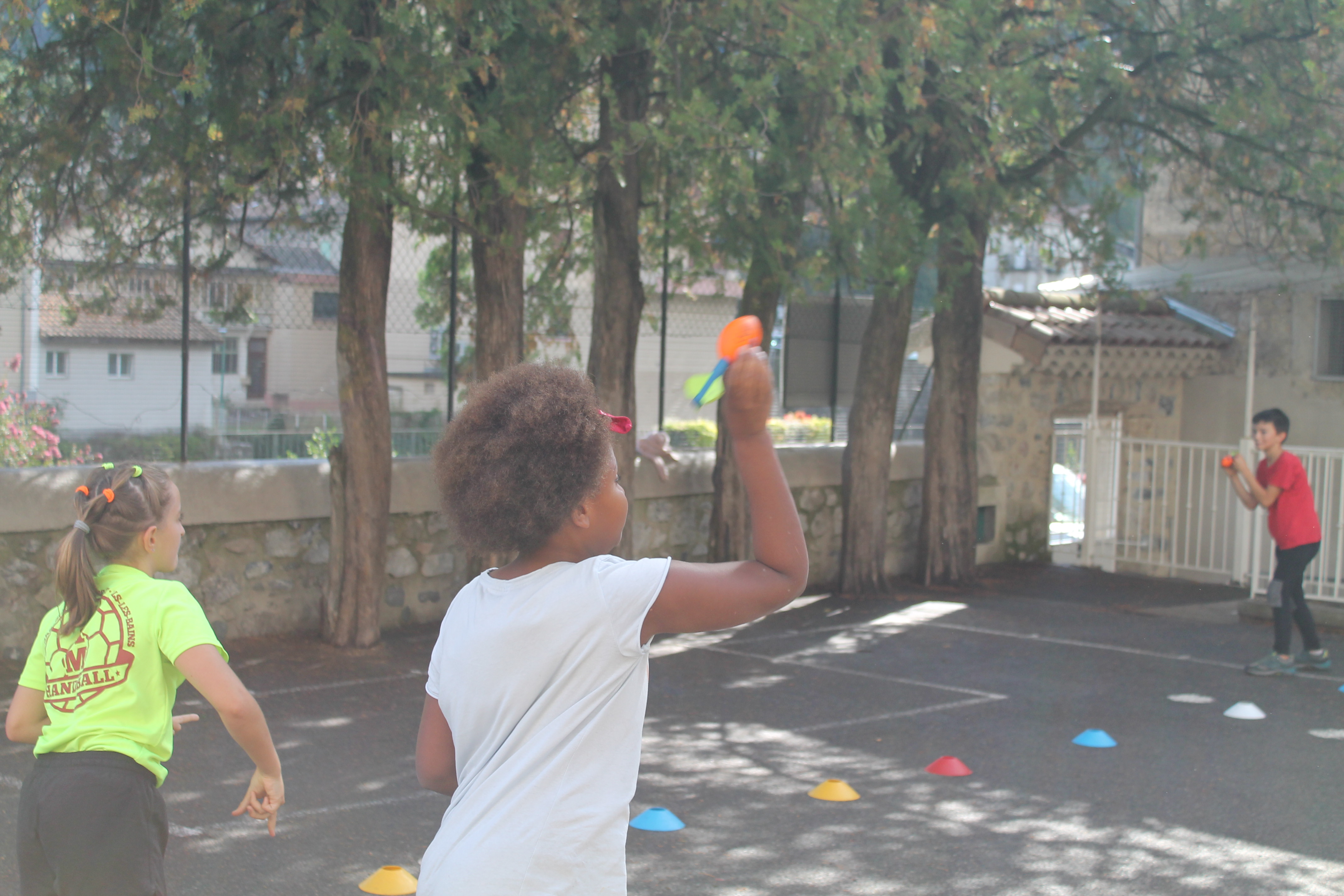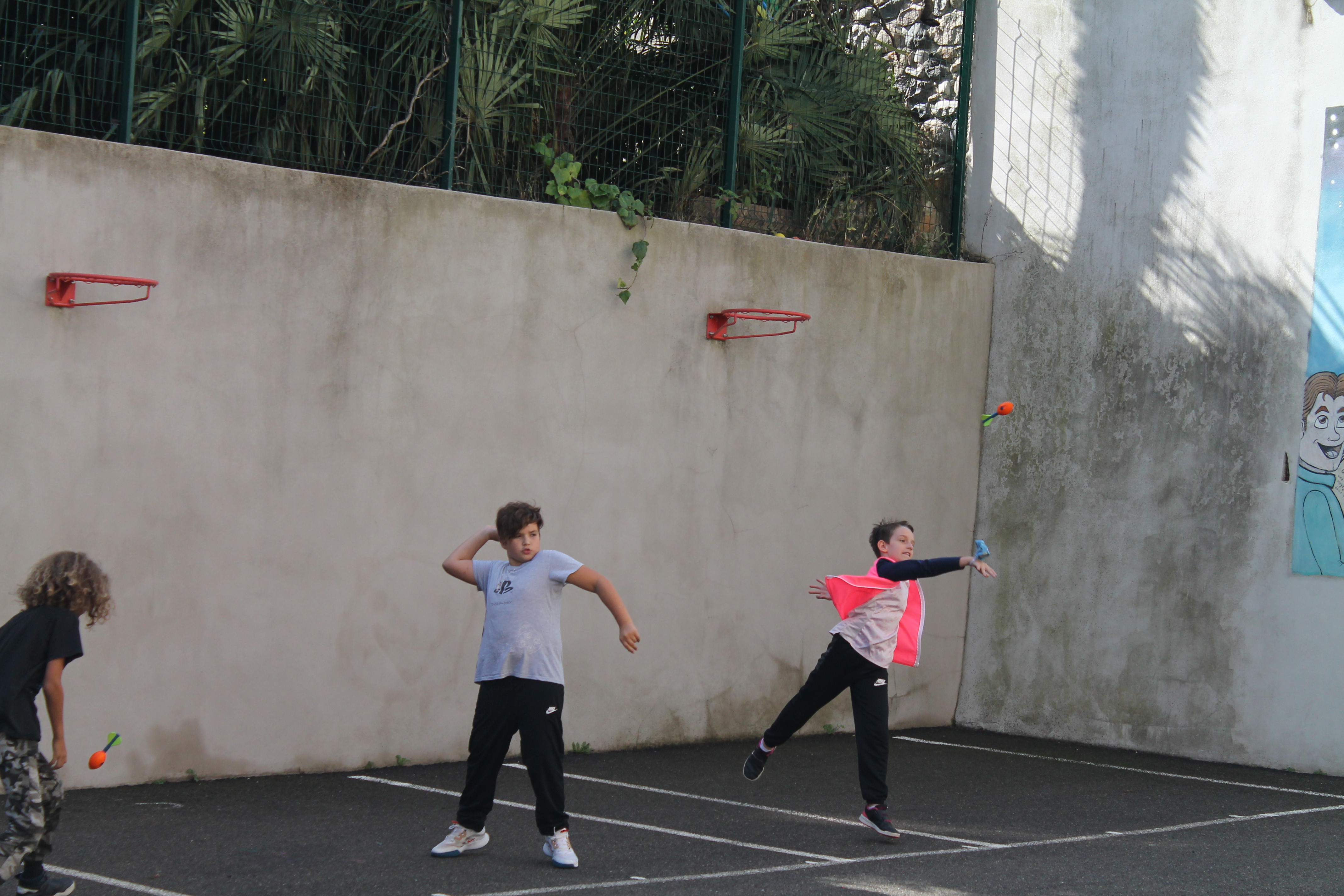 En cycle dans l'année, nous allons faire de l'athlétisme (ce que nous pratiquons en ce moment), puis de la pétanque lyonnaise, du rugby ou du hand-ball. Cela va être très bien pour l'endurance et la précision.