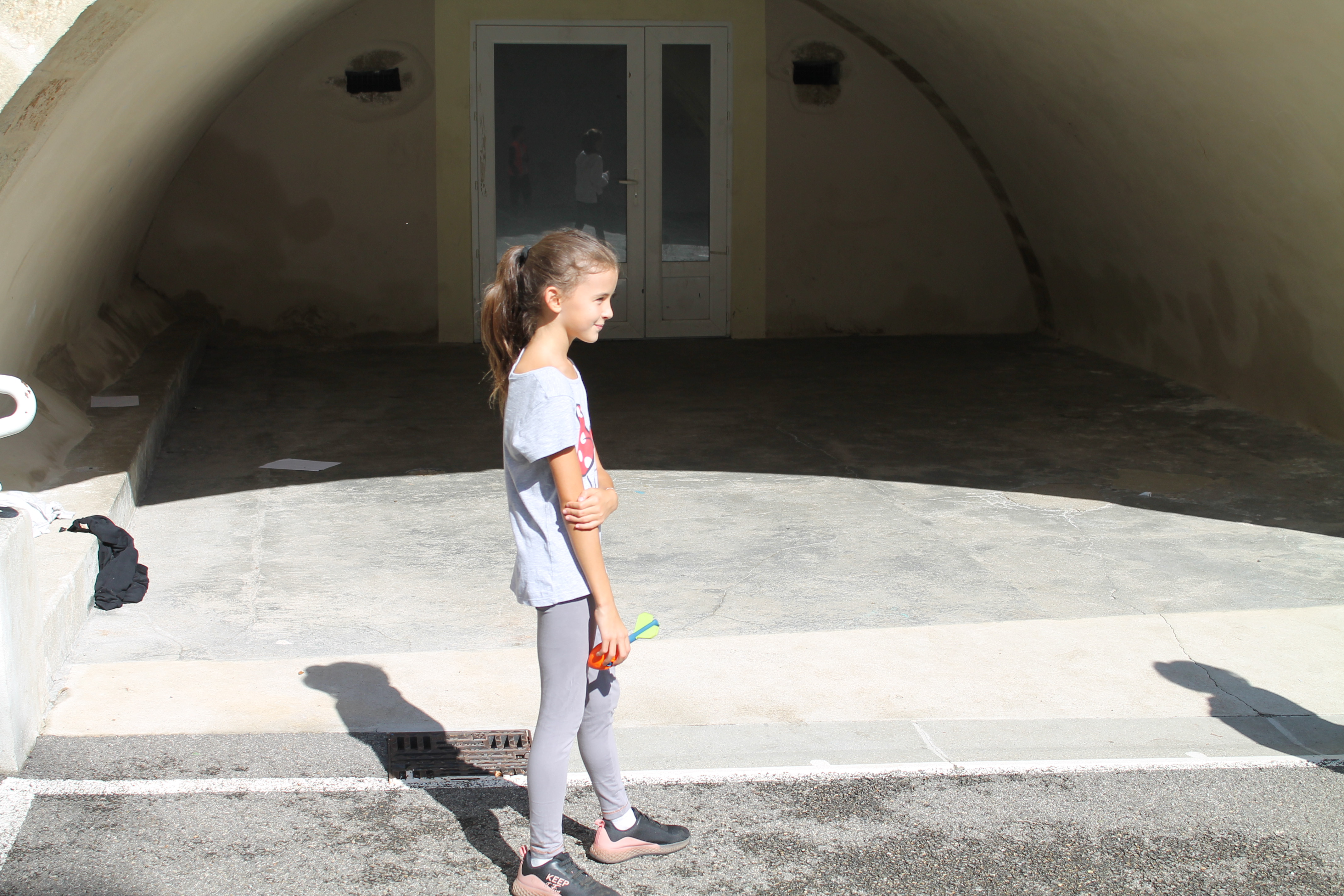 Pendant le sport, j'ai lancé la balle de tennis. Après c'était à Naïna.