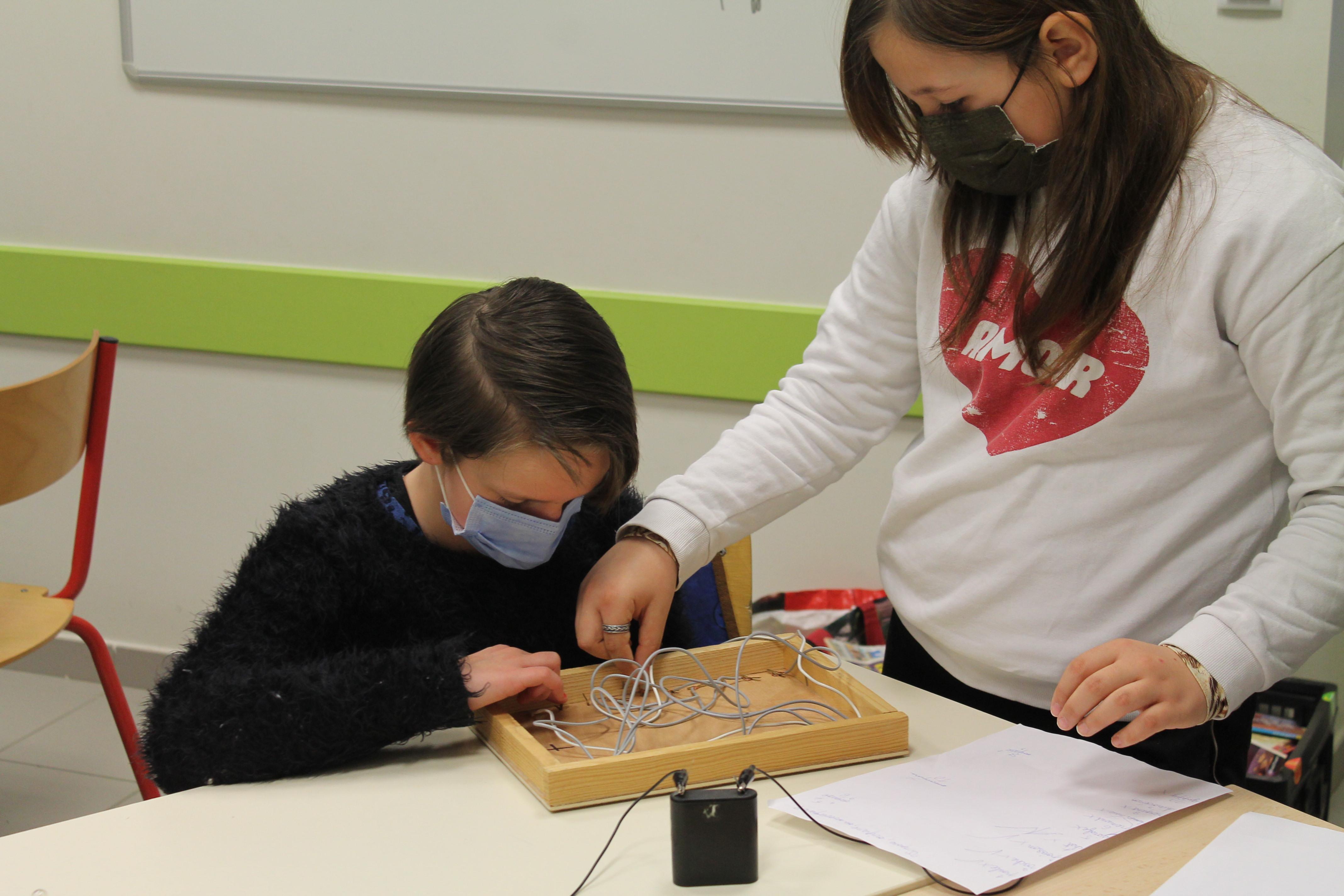 Avant les vacances nous avons travaillé sur "l'électricité" nous avons fait des boîtes électriques. Les jeux sont composés des files électrique