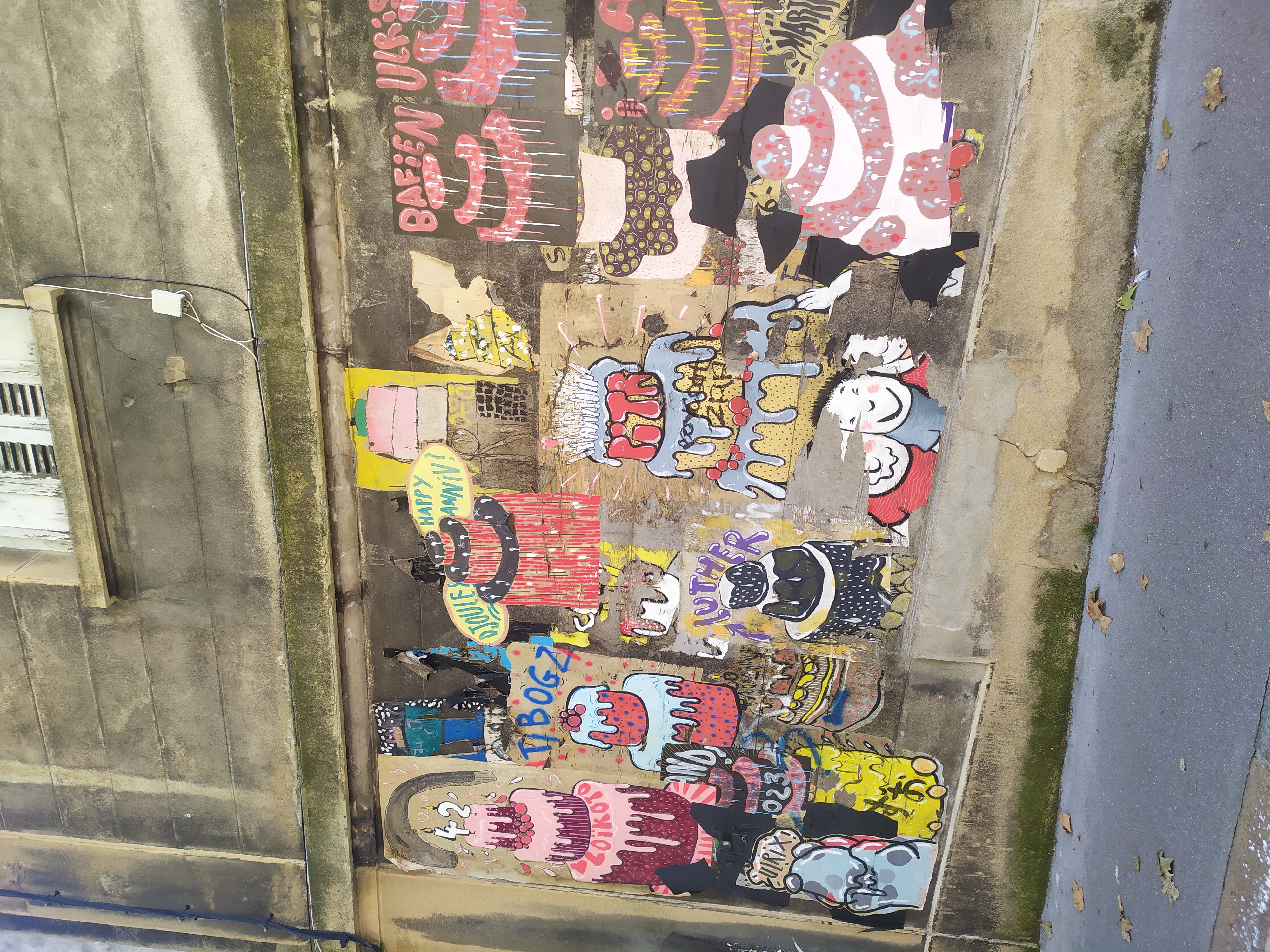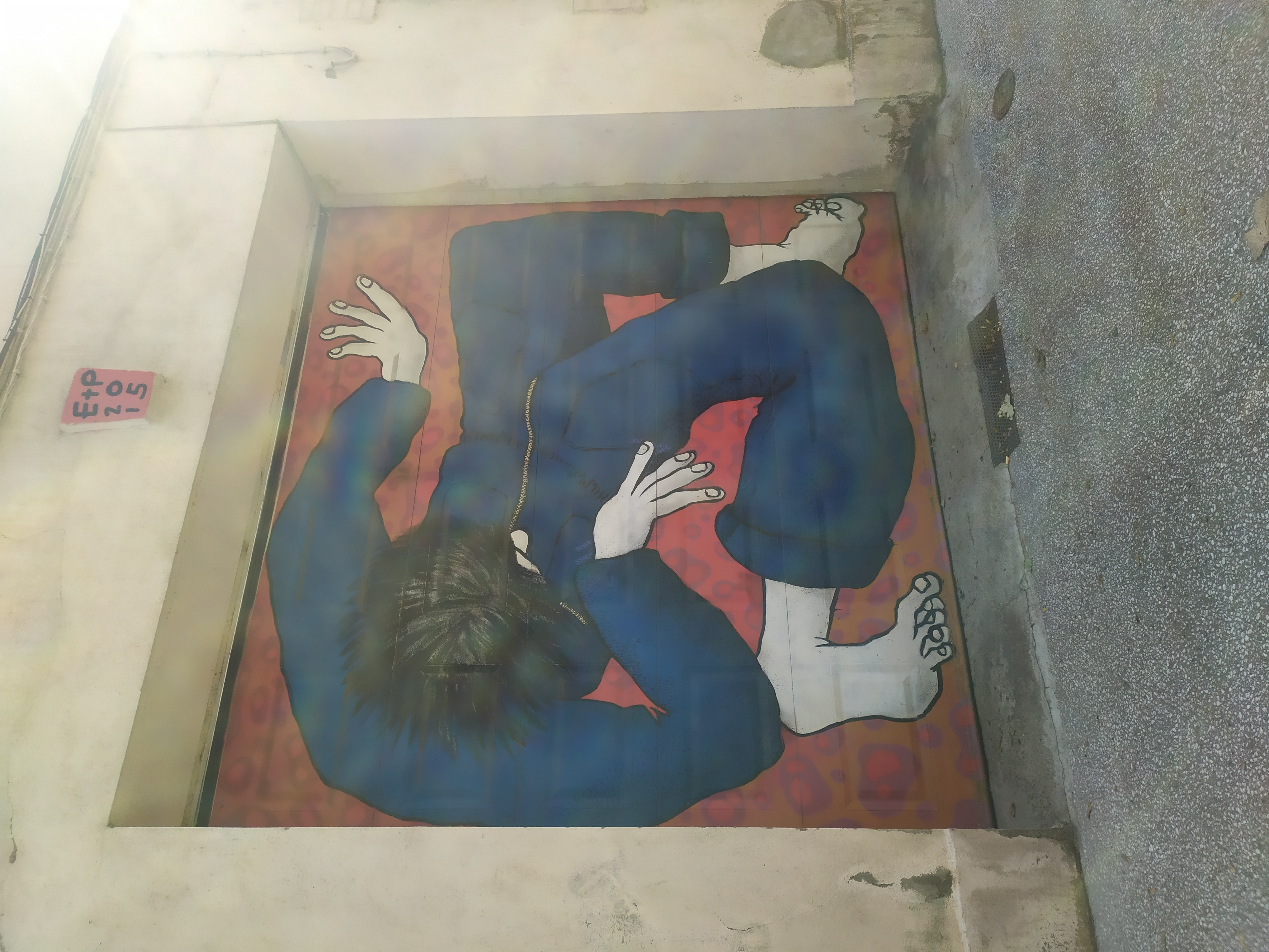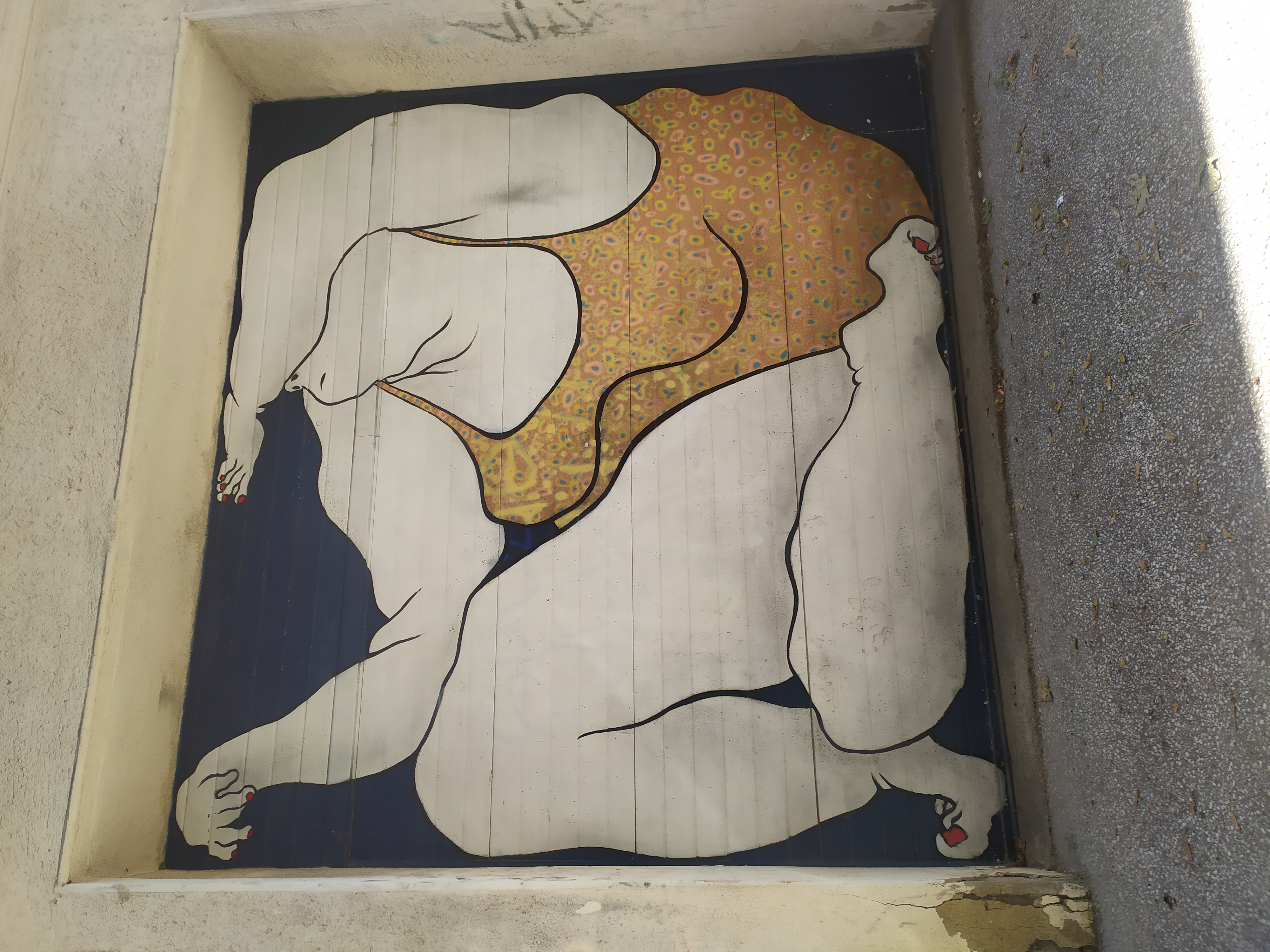 Dans cette rue, Ella et Pitre ont leur atelier, ils vendent aussi leurs œuvres moins chères, parce que Pitre et né la bas, en 1981. J’ai pris uniquement des photos de cette rue, mais ils ont aussi fait d’immenses fresques dont une sur la façade d’un chocolatier (WEISS), toujours à Saint-Etienne.