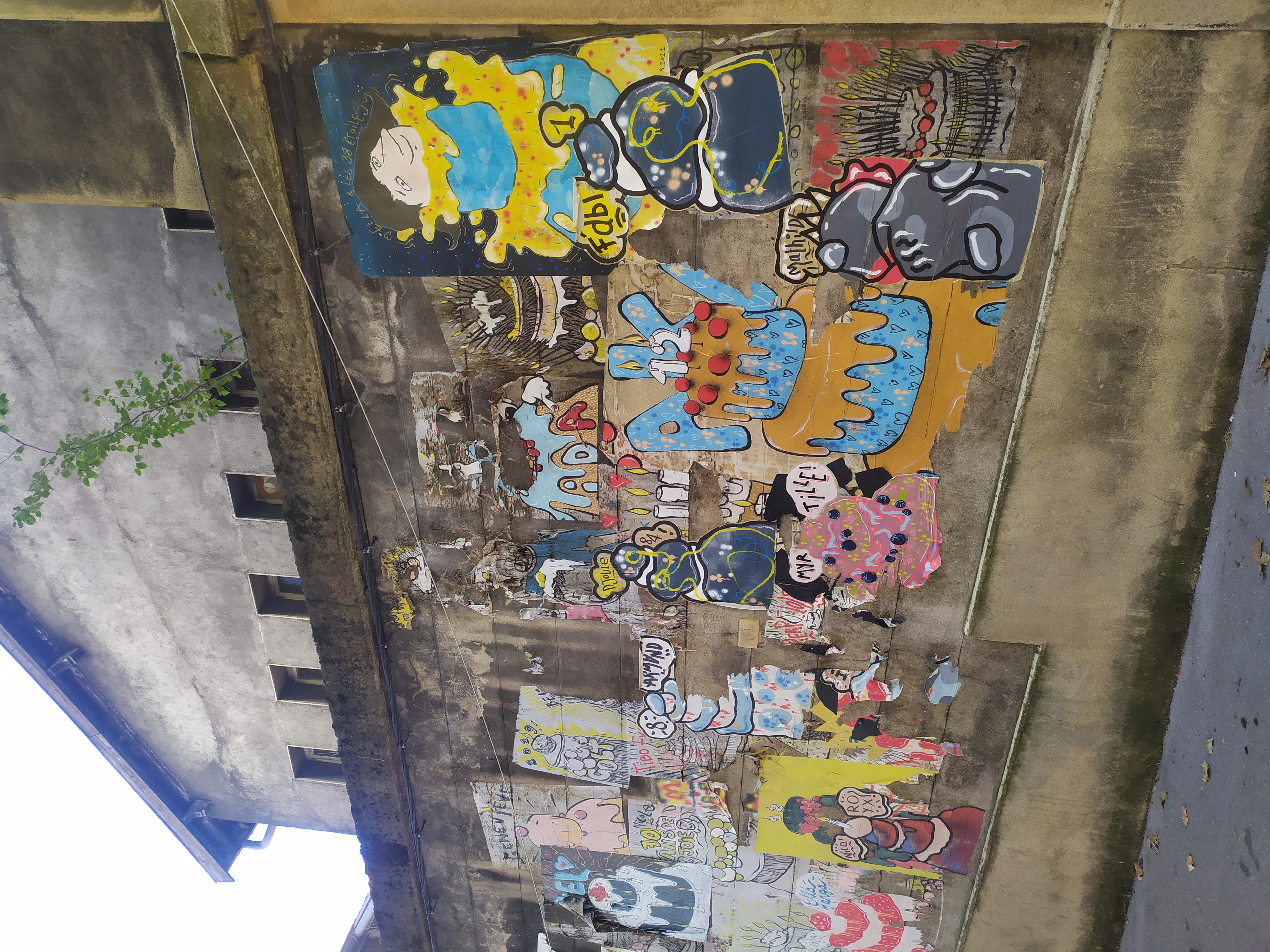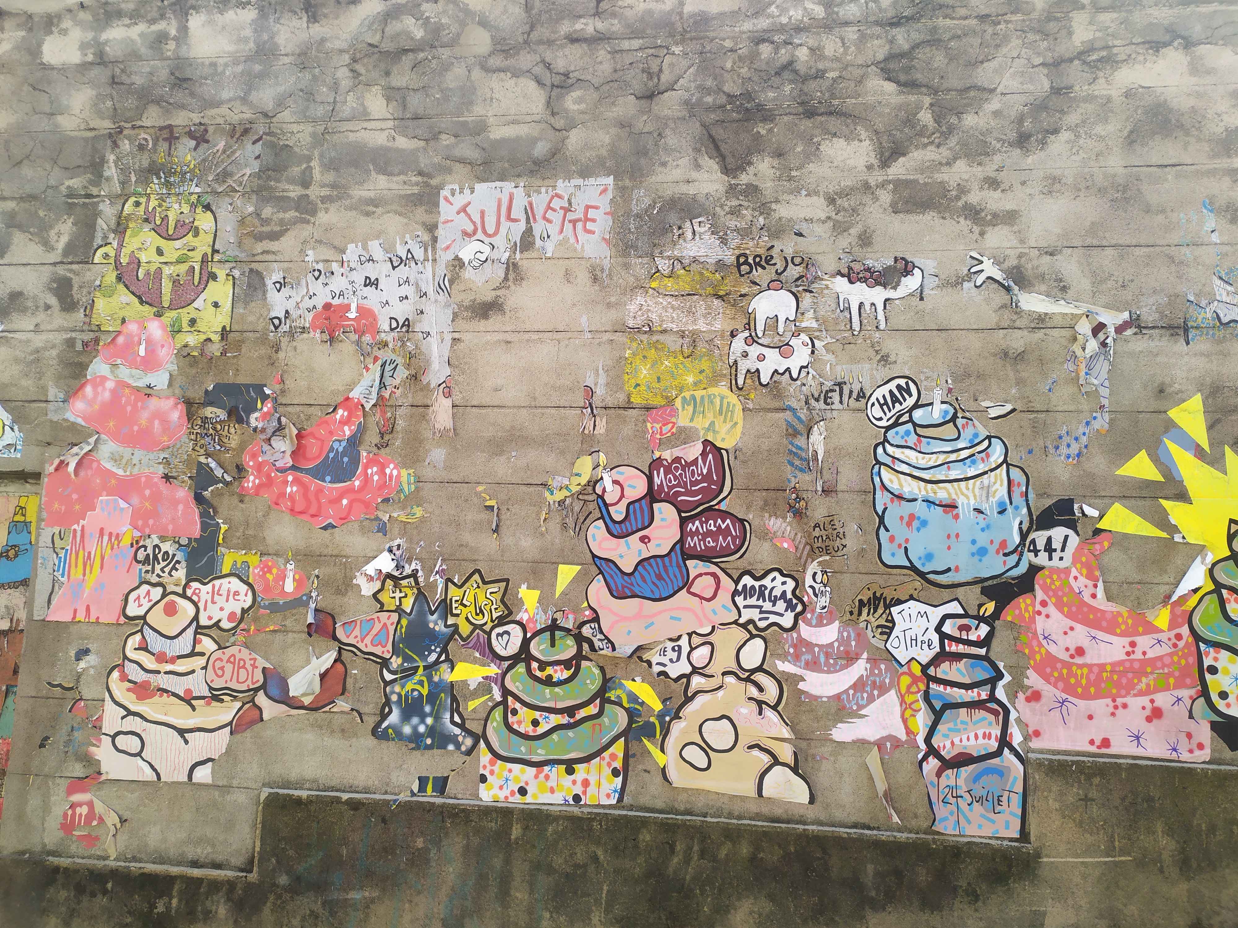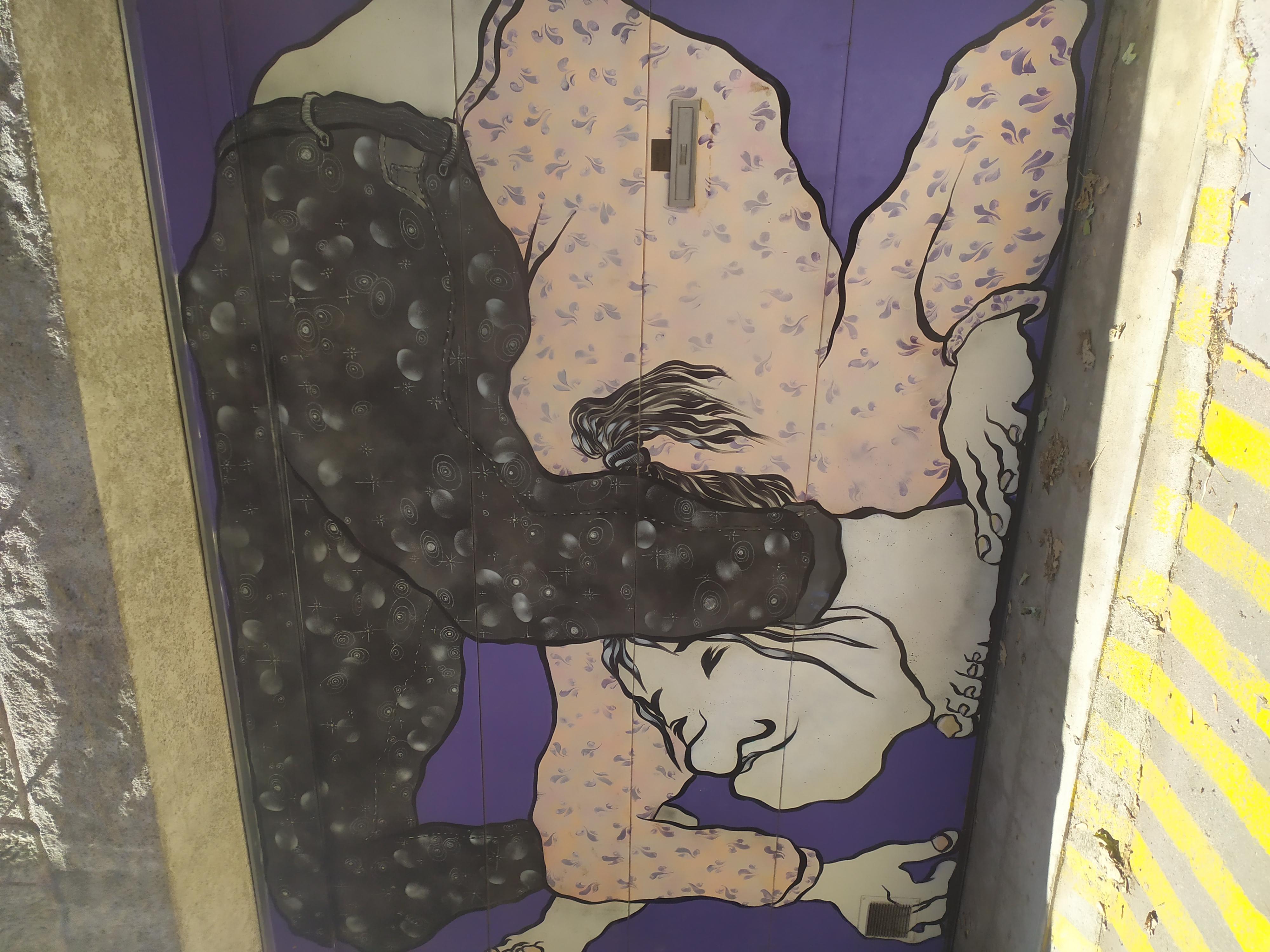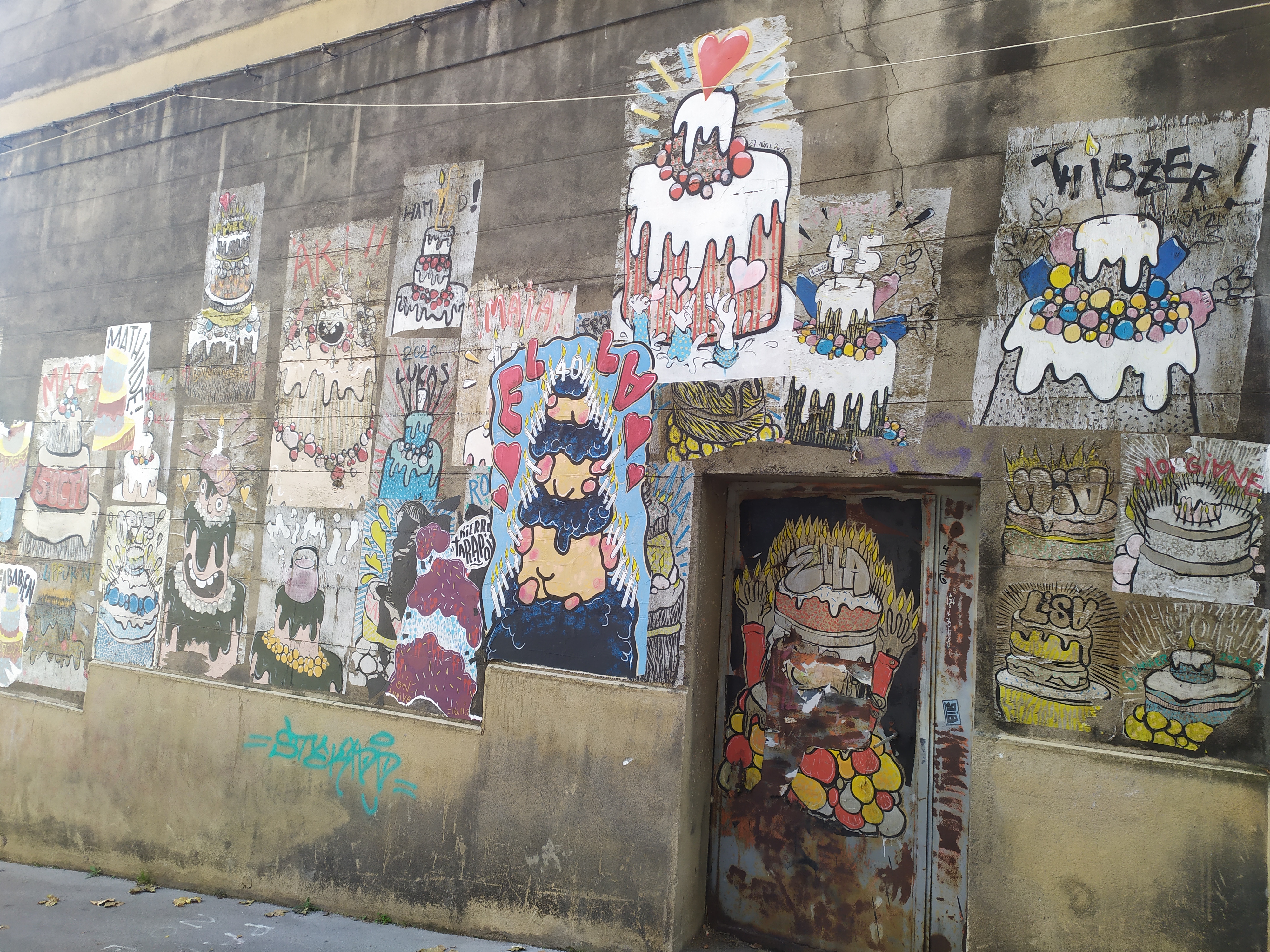 Dans cette rue, Ella et Pitre ont leur atelier, ils vendent aussi leurs œuvres moins chères, parce que Pitre et né la bas, en 1981. J’ai pris uniquement des photos de cette rue, mais ils ont aussi fait d’immenses fresques dont une sur la façade d’un chocolatier (WEISS), toujours à Saint-Etienne.
