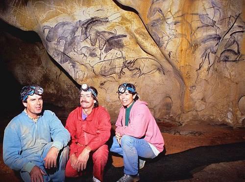Jean-Marie Chauvet, Christian Hillaire et Éliette Brunel sur les lieux de leur découverte en 1994, 1994, grotte Chauvet, photo : VillaniCedric