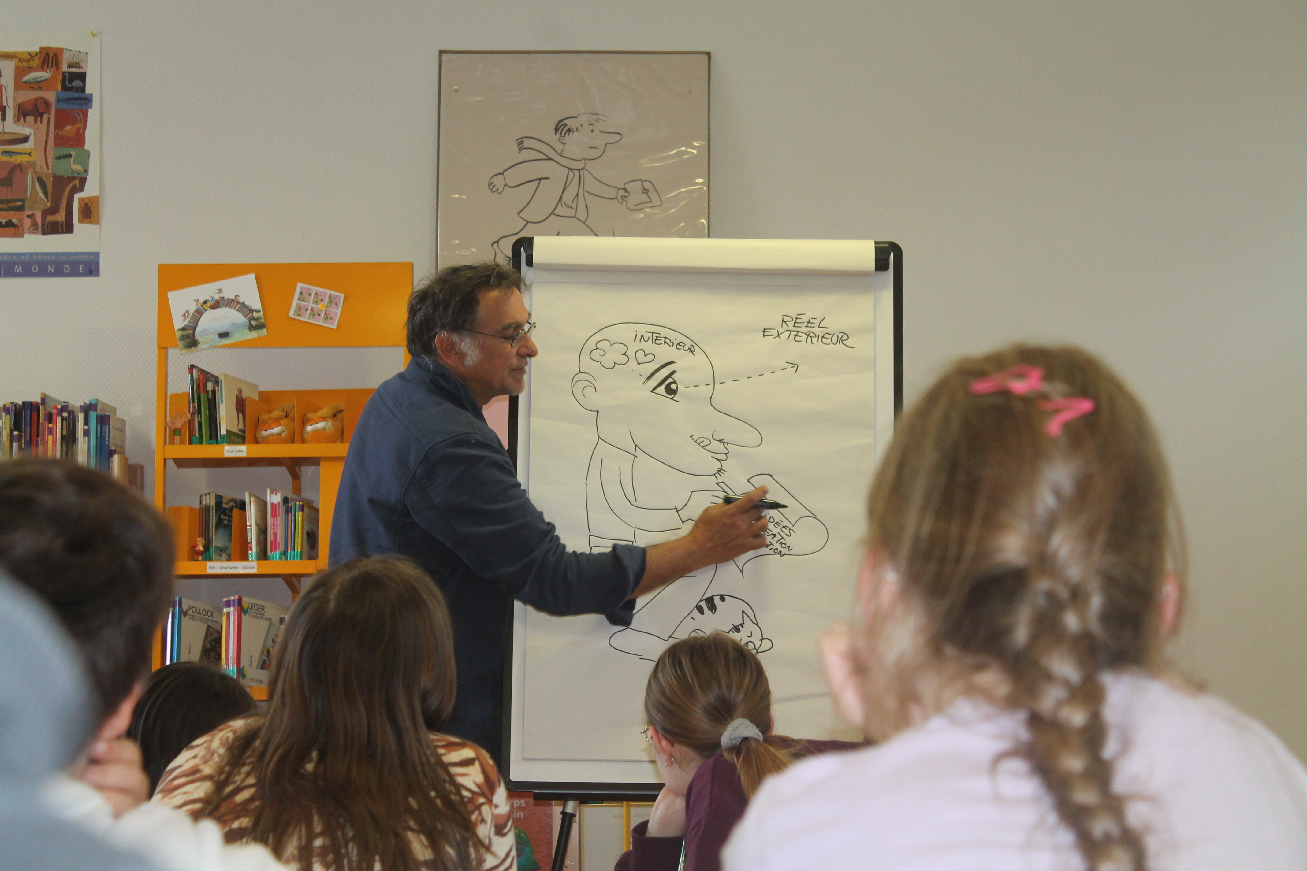En tant qu’élèves, nous avons bien aimé l’intervention de Yann Dégruel parce qu’il nous a fait partager ses sentiments et ses secrets de dessins. Nous avons aussi aimé celle-ci car nous avons pu poser énormément de questions à cet auteur.