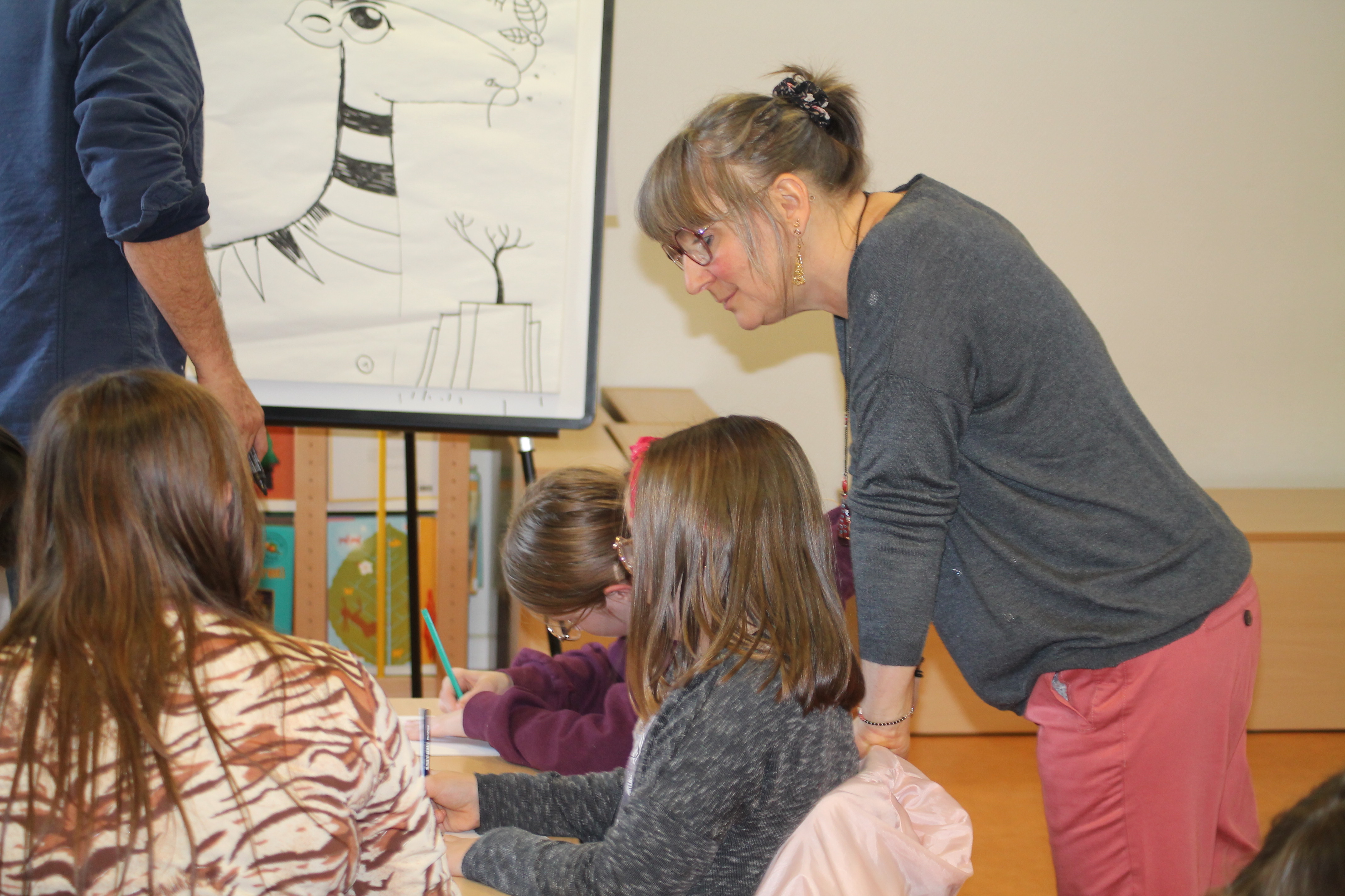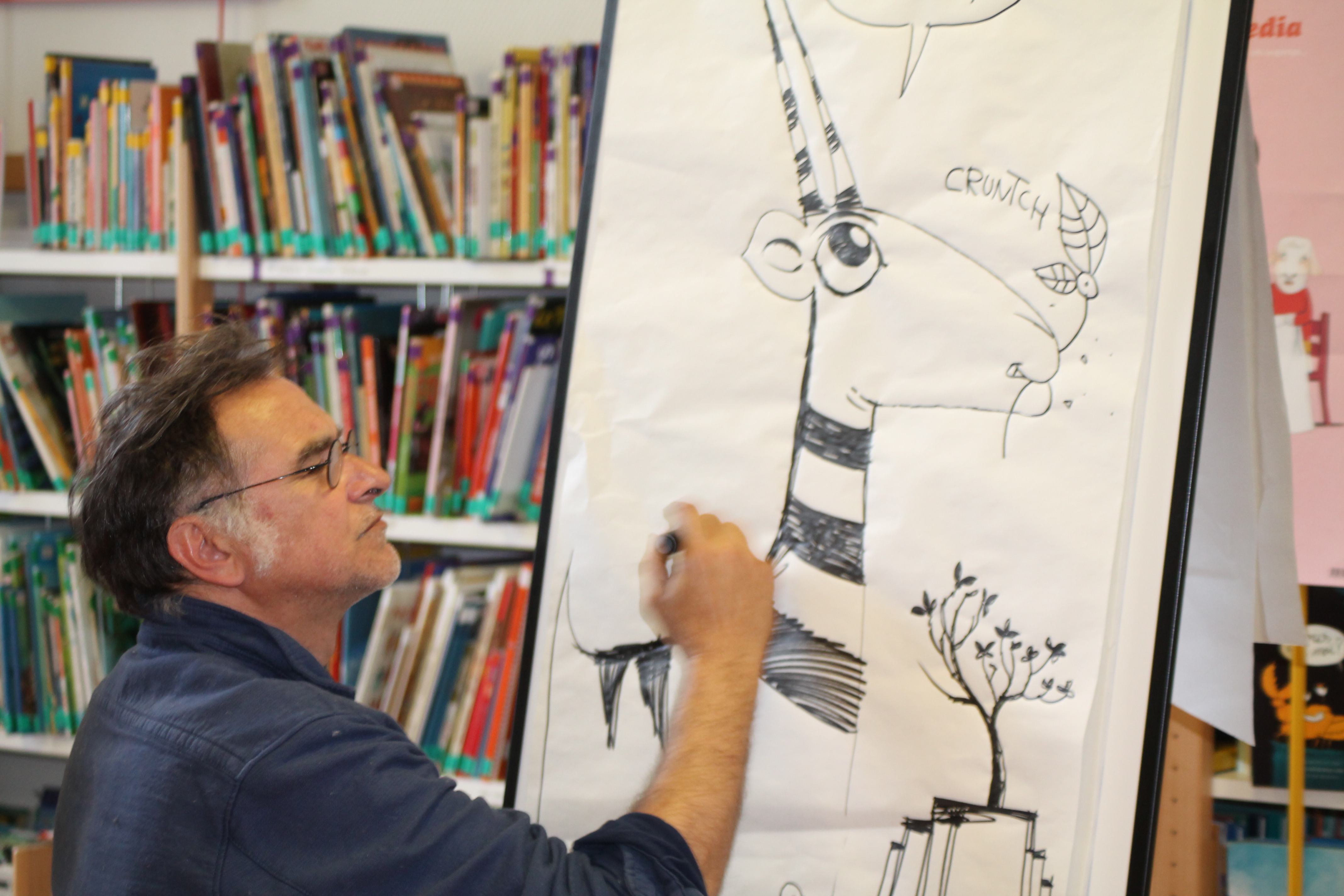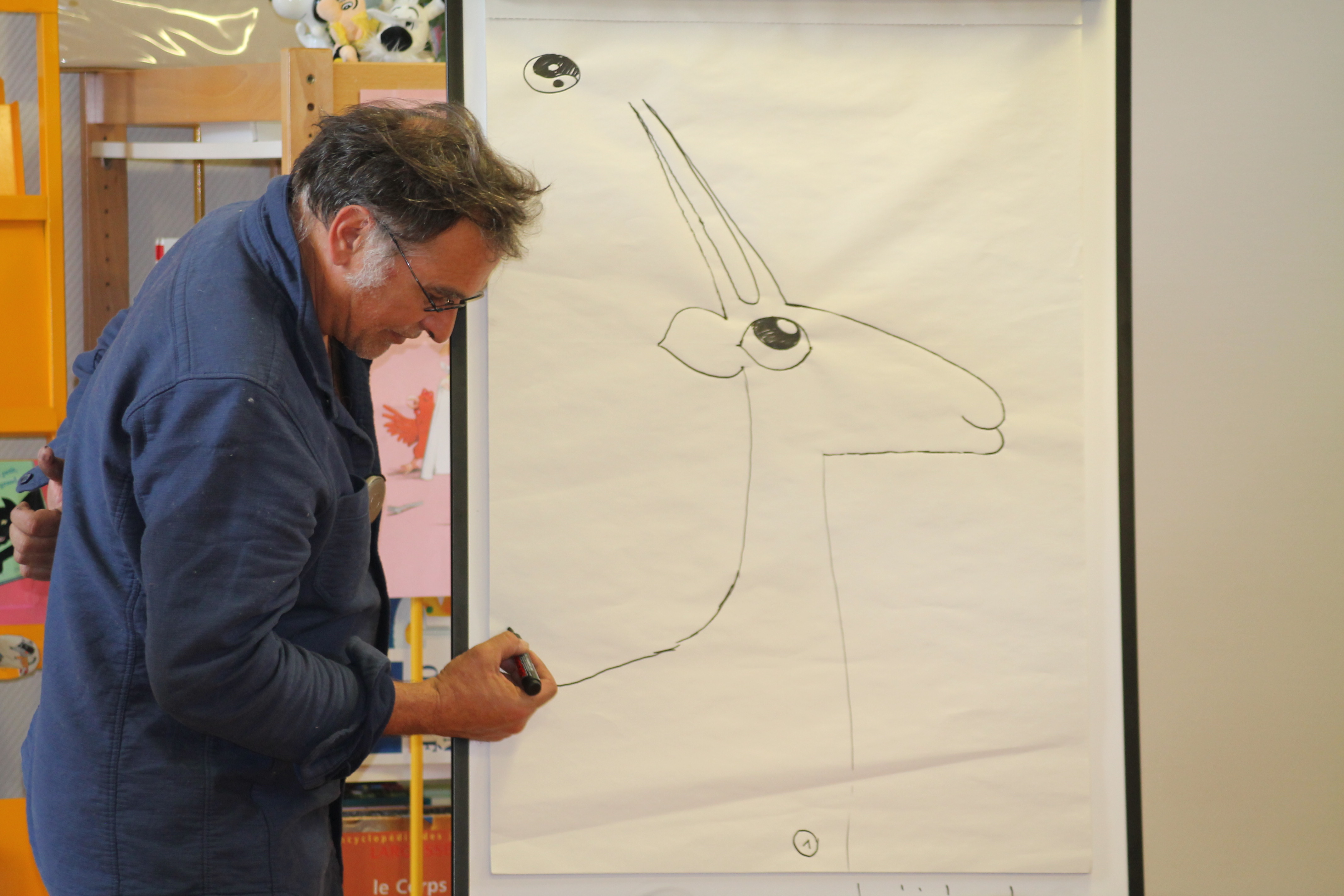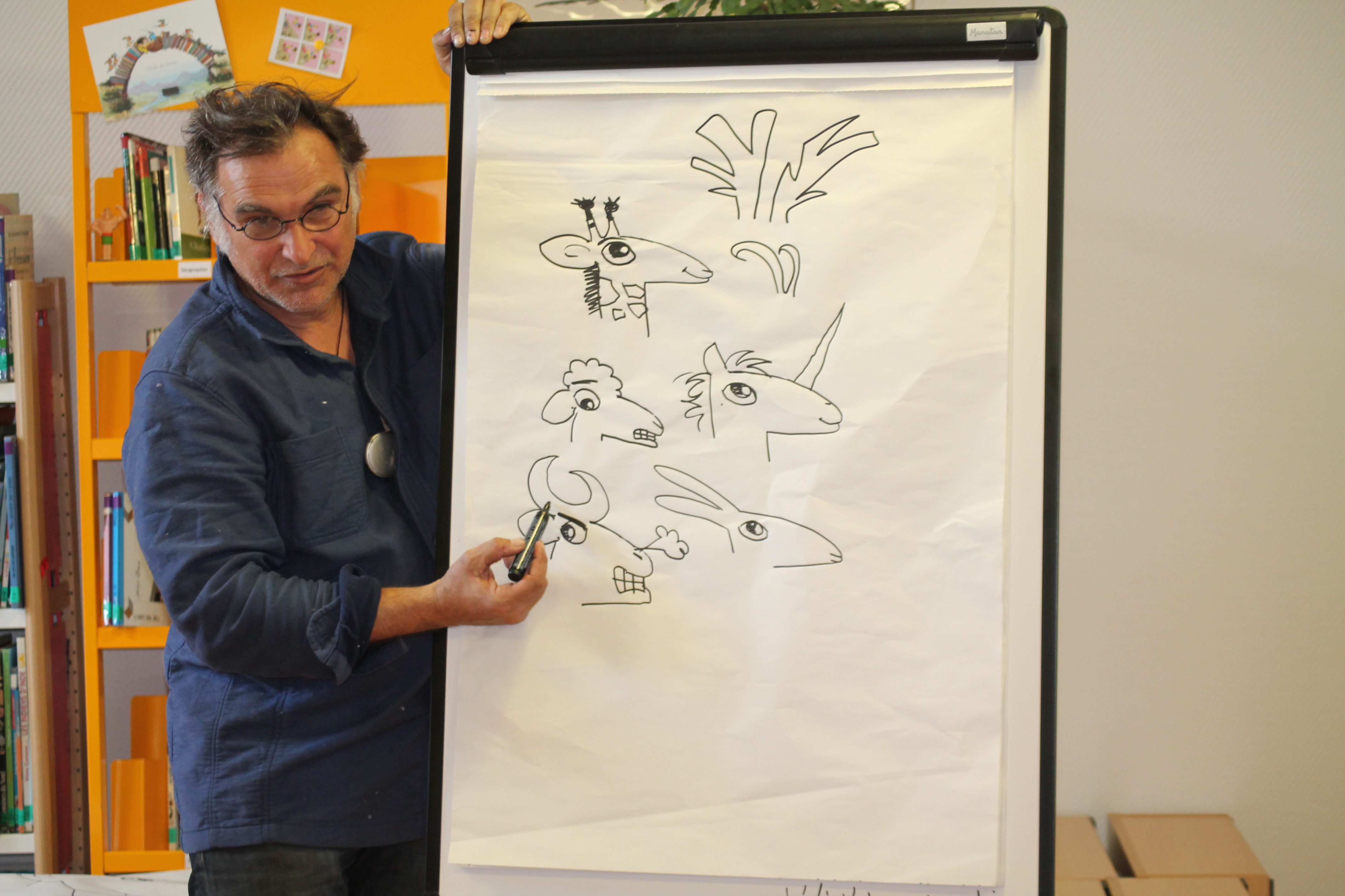 Celui-ci nous a raconté comment il a appris à dessiner, ce qui l’ avait inspiré et le chemin qu’il a parcouru. Yann Dégruel nous a montré certains livres qu’il a illustrés, nous a appris à dessiner quelques animaux de ses B.D.