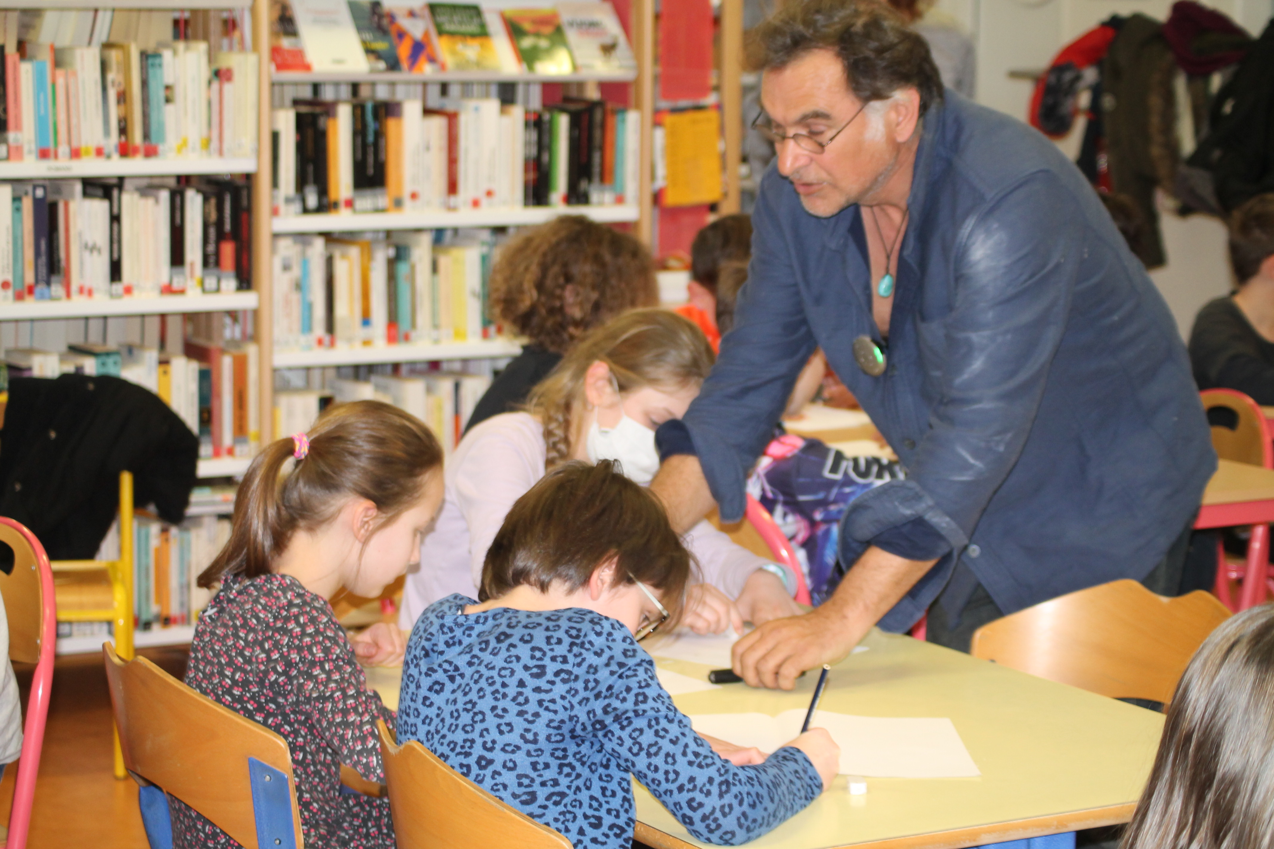 Lundi après-midi, de 15h30 à 16h30 nous sommes allé(e)s à la bibliothèquede Vals-les-bains rencontrer le dessinateur Yann Dégruel.