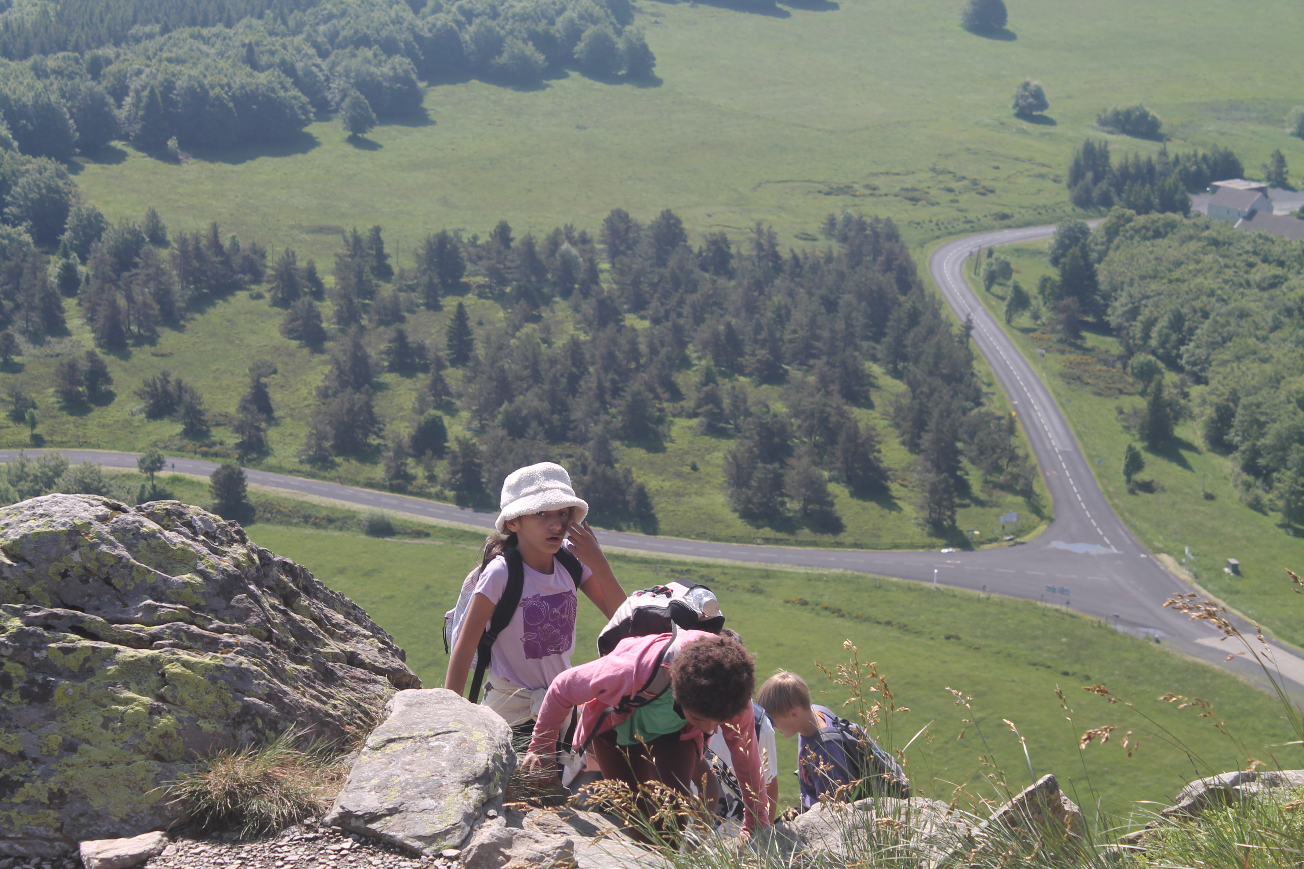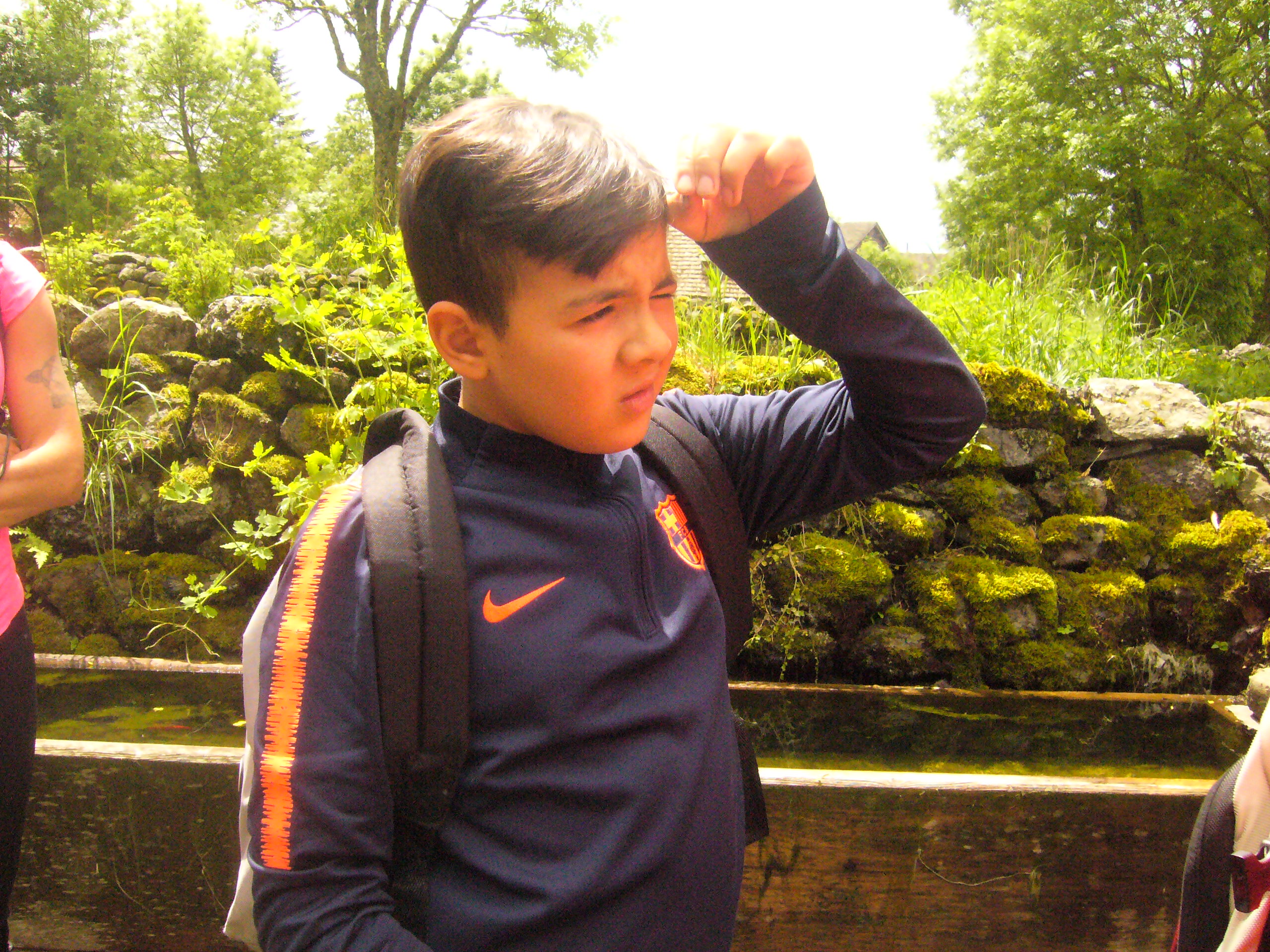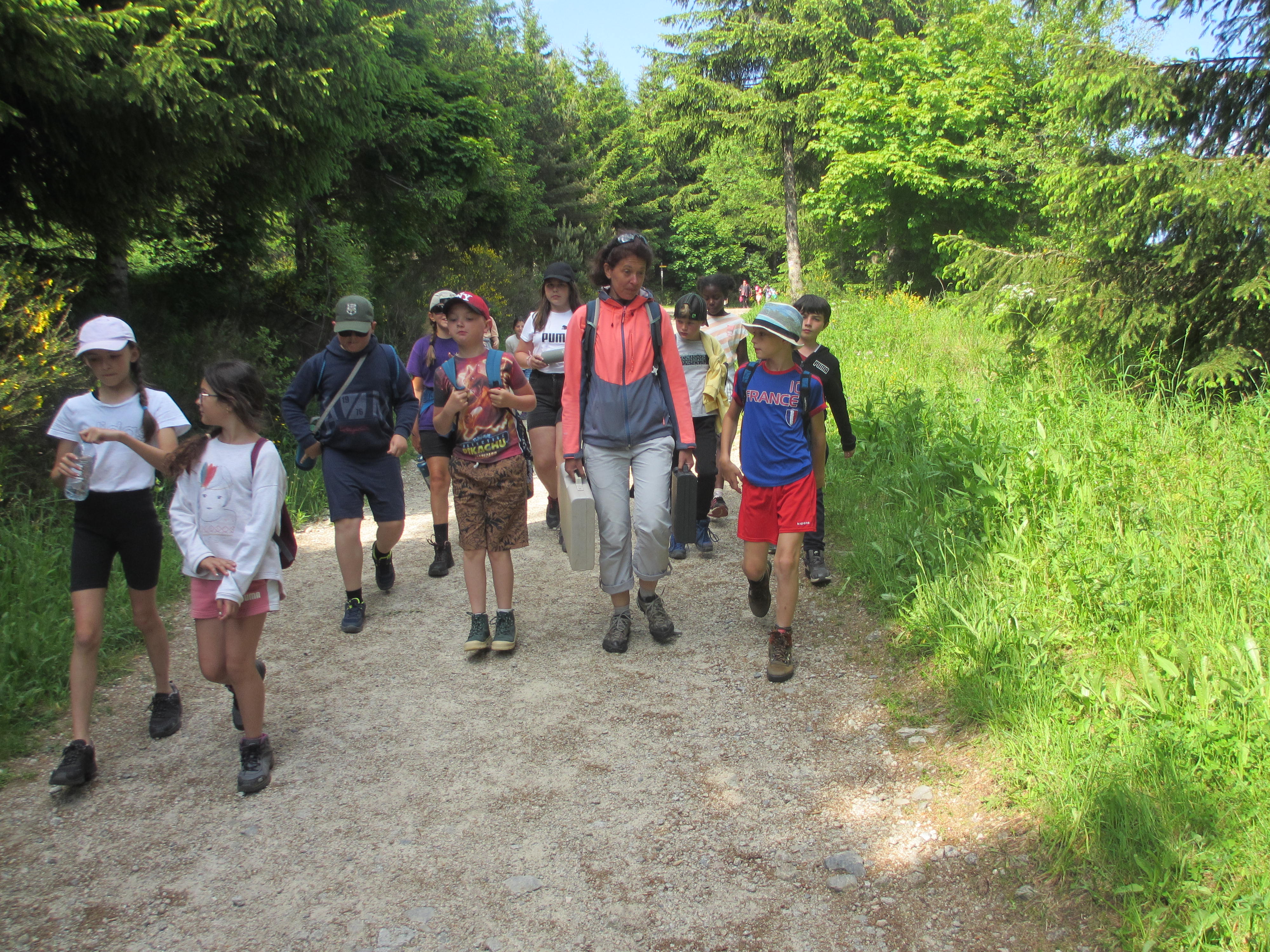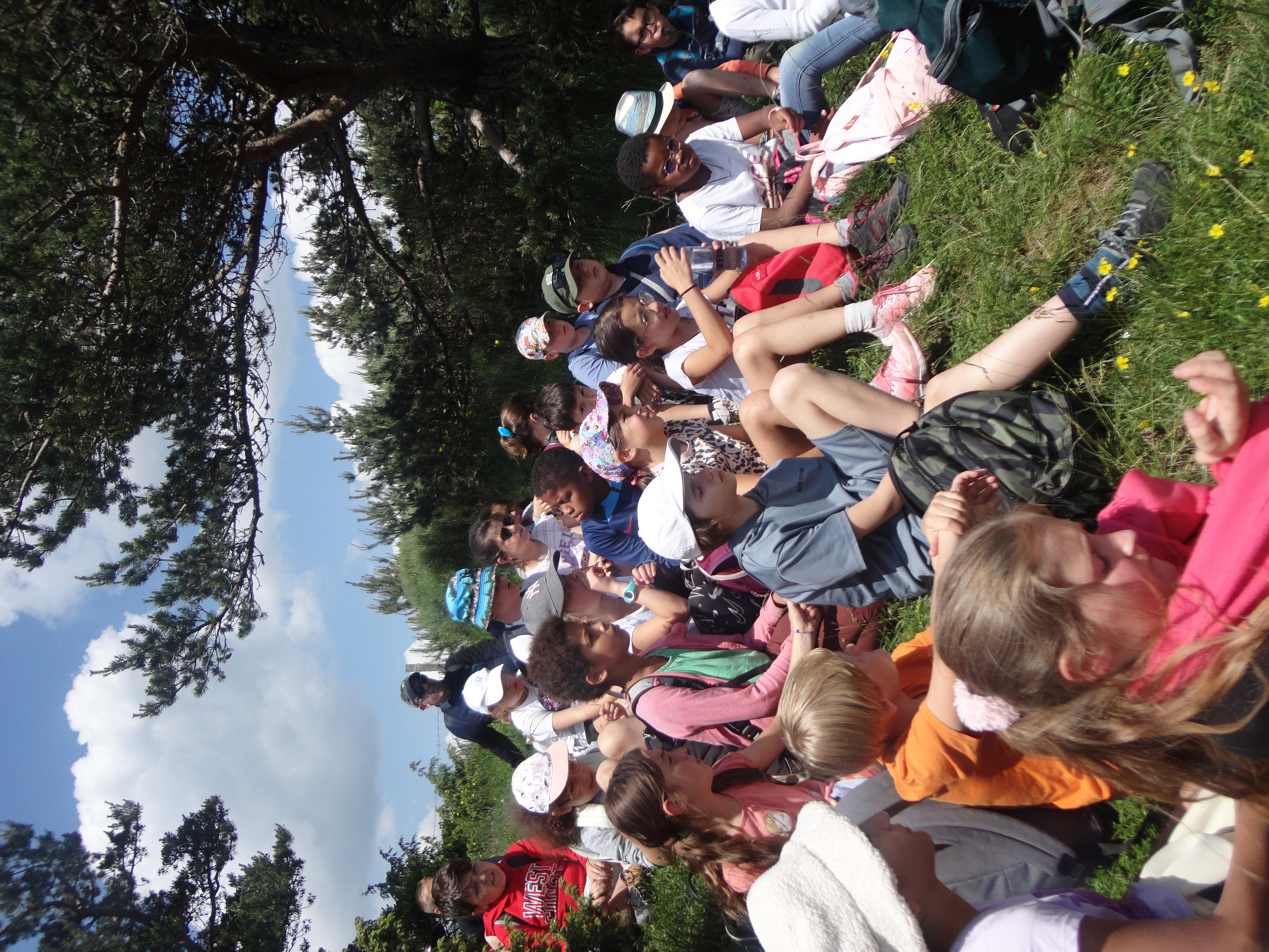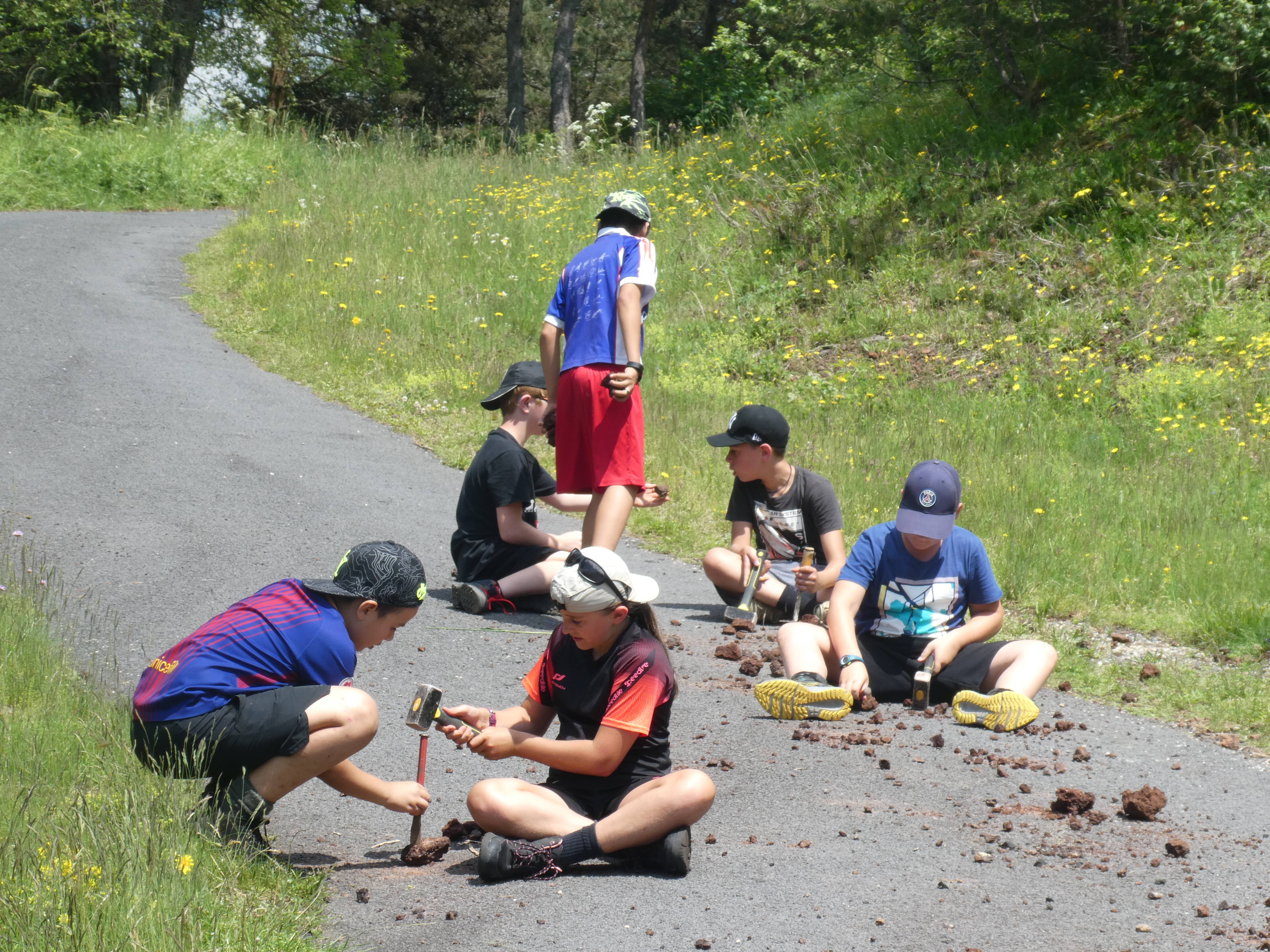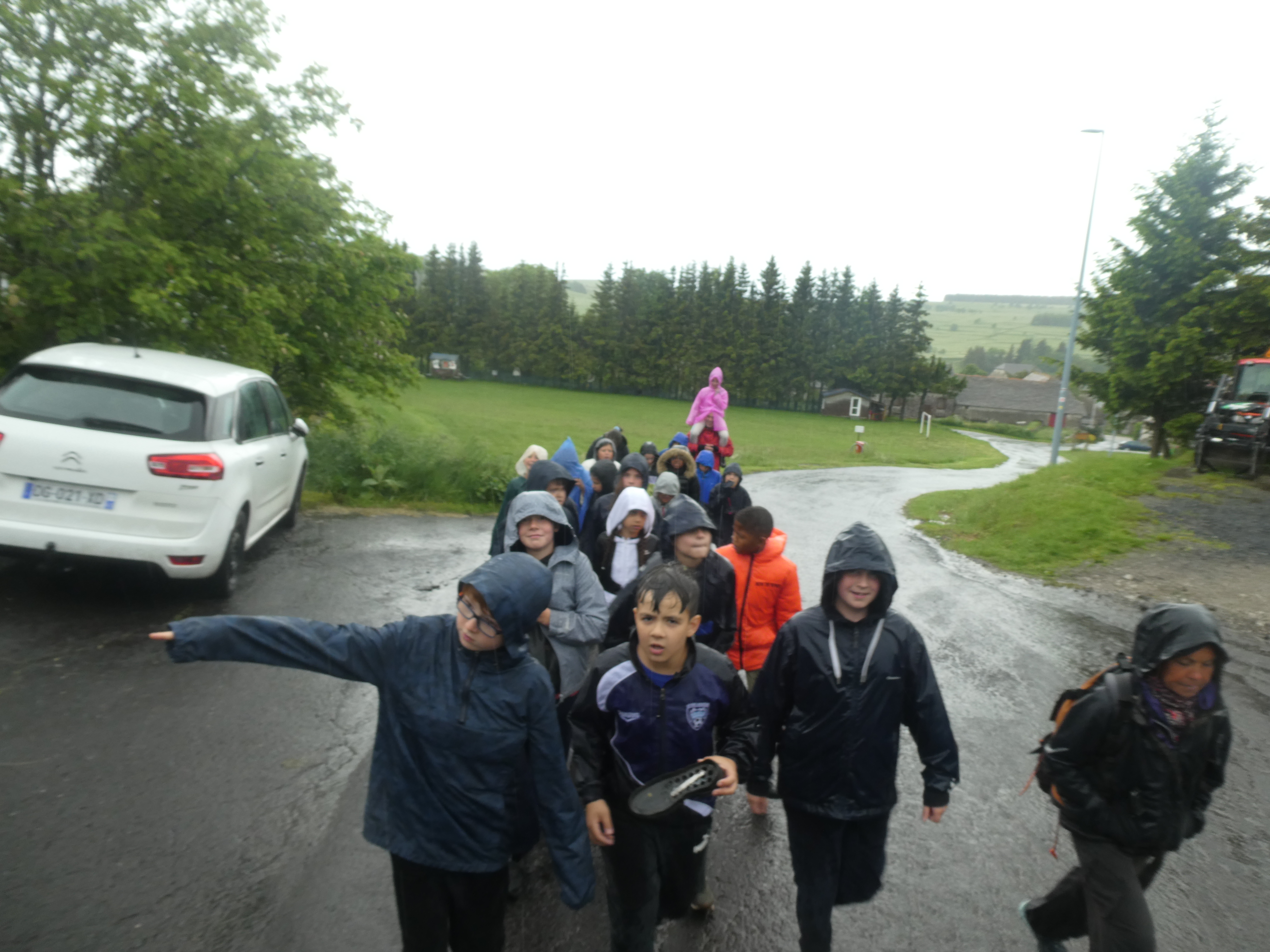 En sortant du bus, nous avons attaqué à gravir le Mont Gerbier de Jonc. En montant, nous nous sommes arrêtés quelques fois pour regarder le paysage puis, une fois arrivés au sommet, Hervé notre guide, nous a parlé du type de ce volcan et de ce qui l'entoure. A la fin, nous sommes redescendus puis nous avons pique-niqué au pied du volcan. Nous avons repris le bus pour aller au volcan du Cherche Muse où nous avons cassé des pierres (bombes volcaniques), que nous avons ramassées à l'aide d'Hervé et de Marylou une autre guide du chalet. En reprenant le bus, nous avons pris la direction du Lac d'Issarlés où nous avons parlé du volcan qu'il y avait dessous avec les deux guides. Nous avons goutté puis nous avons joué sur le sable. Nous avons repris le bus en direction du chalet où nous avons pris une douche, le soir nous avons mangé : une soupe de légumes, une poêlée forestière, de la pizza et une mousse au chocolat.