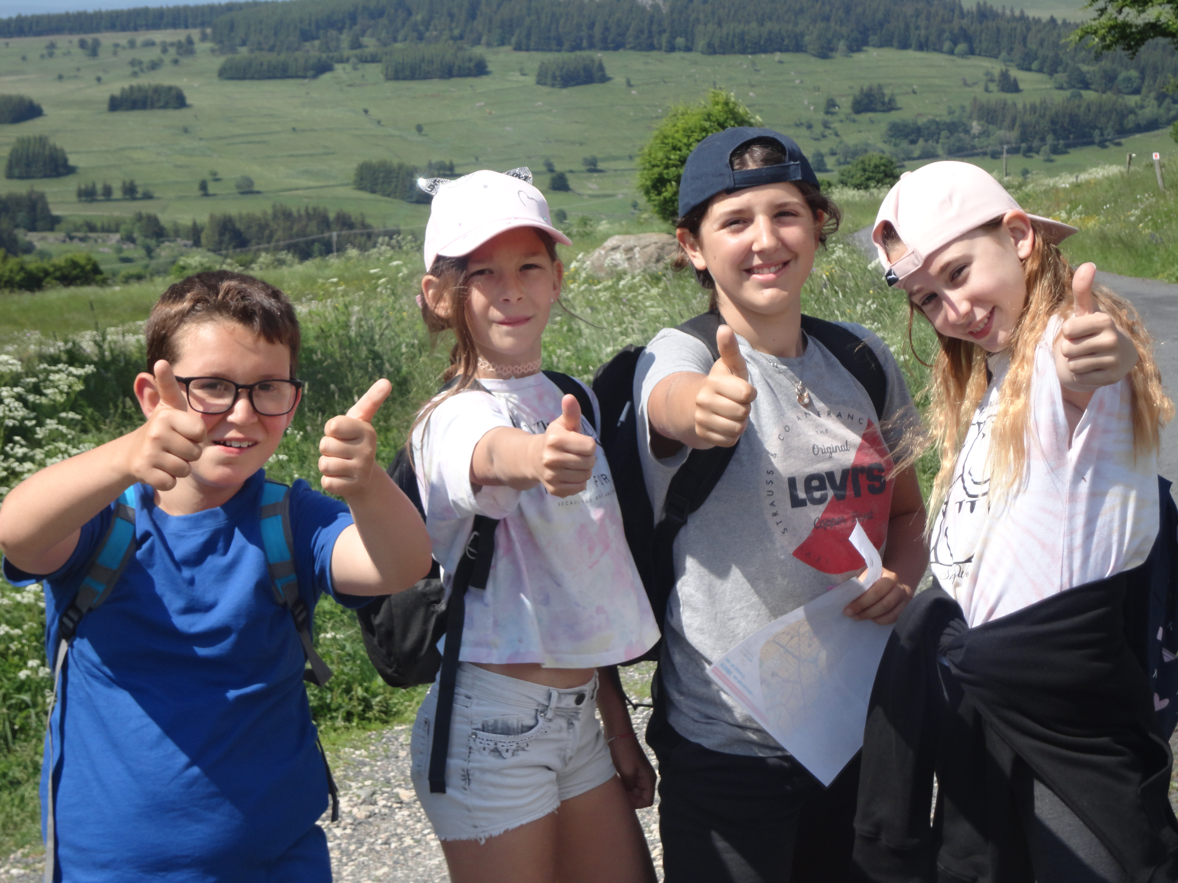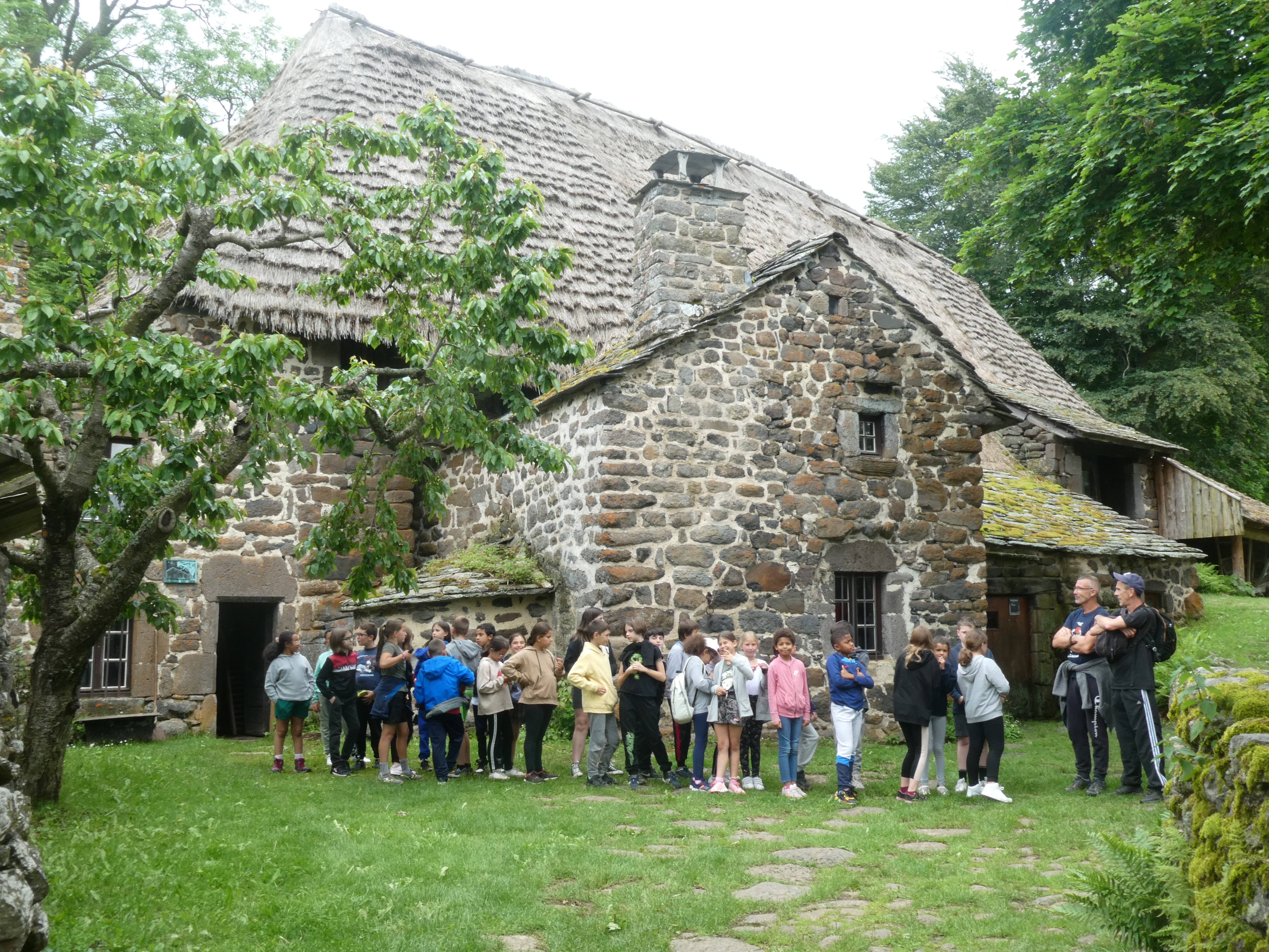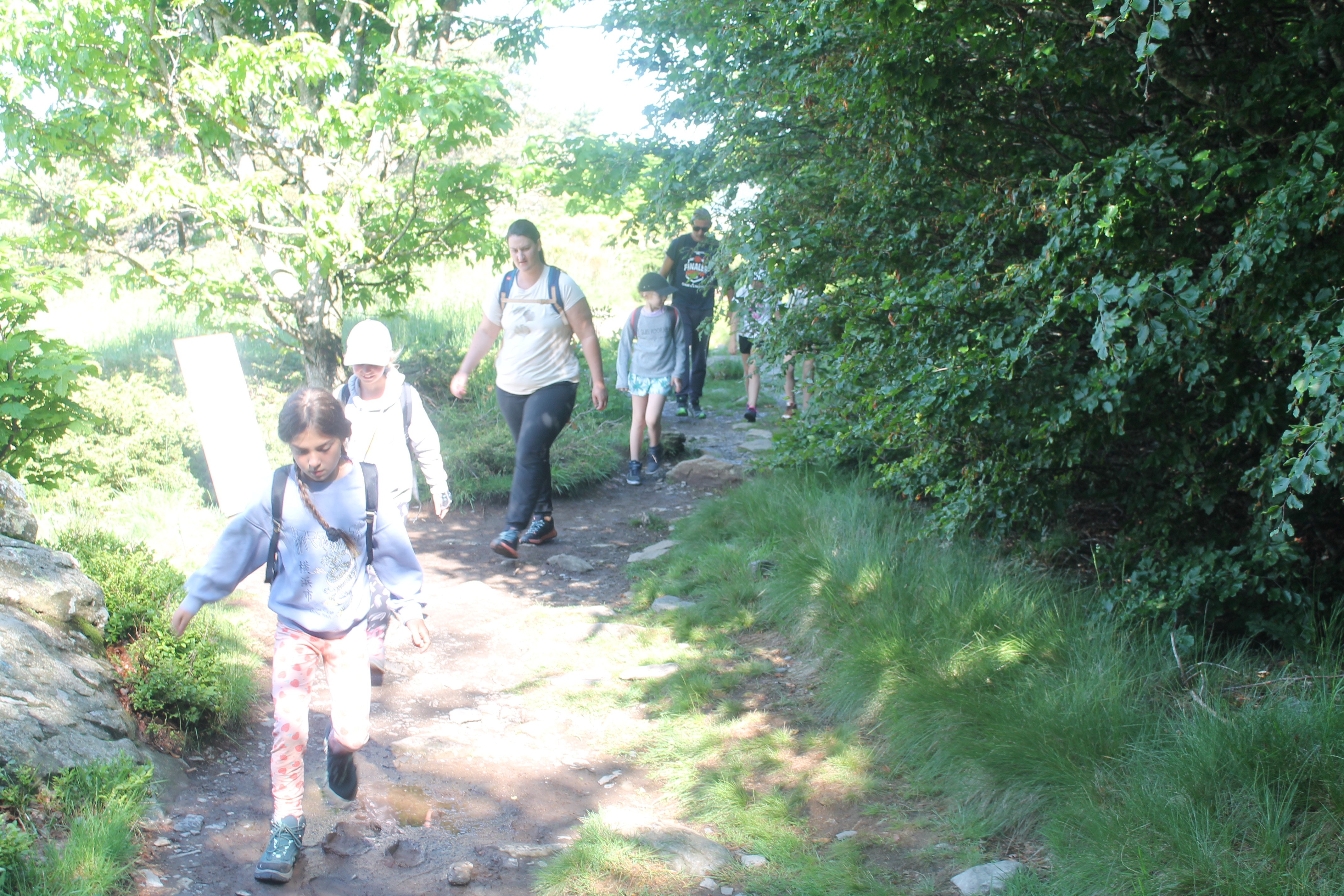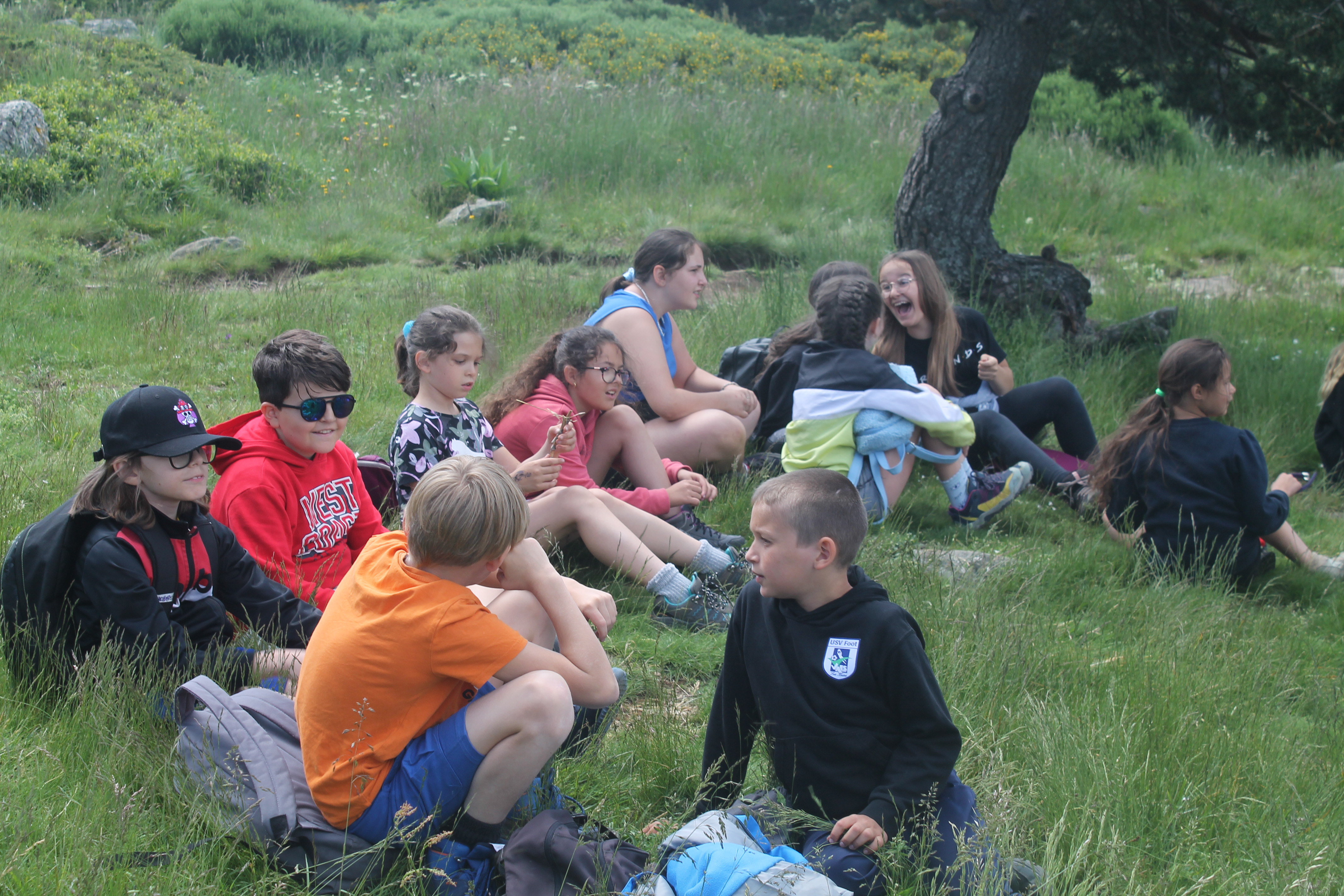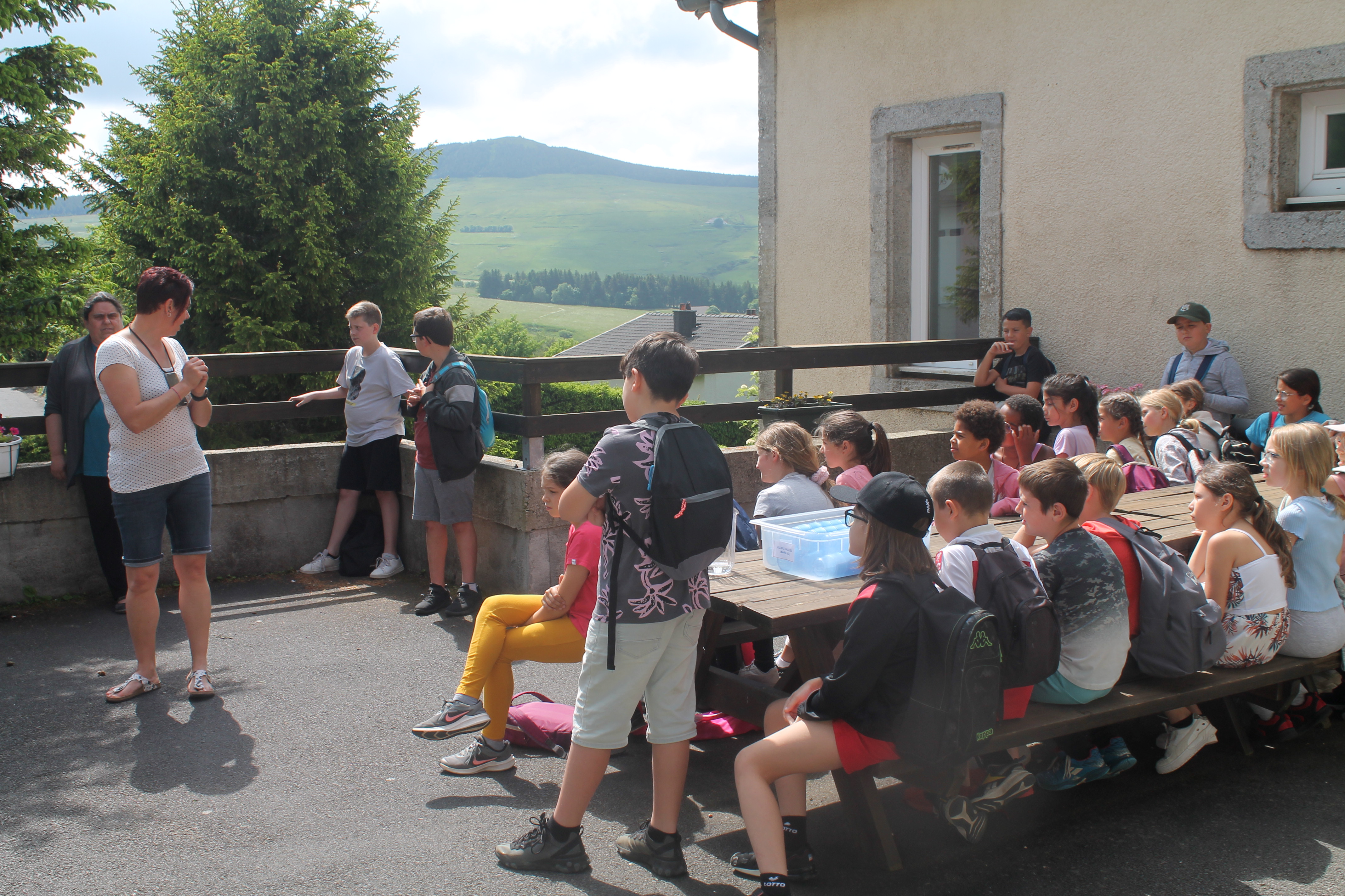 En sortant du bus, nous avons attaqué à gravir le Mont Gerbier de Jonc. En montant, nous nous sommes arrêtés quelques fois pour regarder le paysage puis, une fois arrivés au sommet, Hervé notre guide, nous a parlé du type de ce volcan et de ce qui l'entoure. A la fin, nous sommes redescendus puis nous avons pique-niqué au pied du volcan. Nous avons repris le bus pour aller au volcan du Cherche Muse où nous avons cassé des pierres (bombes volcaniques), que nous avons ramassées à l'aide d'Hervé et de Marylou une autre guide du chalet. En reprenant le bus, nous avons pris la direction du Lac d'Issarlés où nous avons parlé du volcan qu'il y avait dessous avec les deux guides. Nous avons goutté puis nous avons joué sur le sable. Nous avons repris le bus en direction du chalet où nous avons pris une douche, le soir nous avons mangé : une soupe de légumes, une poêlée forestière, de la pizza et une mousse au chocolat.