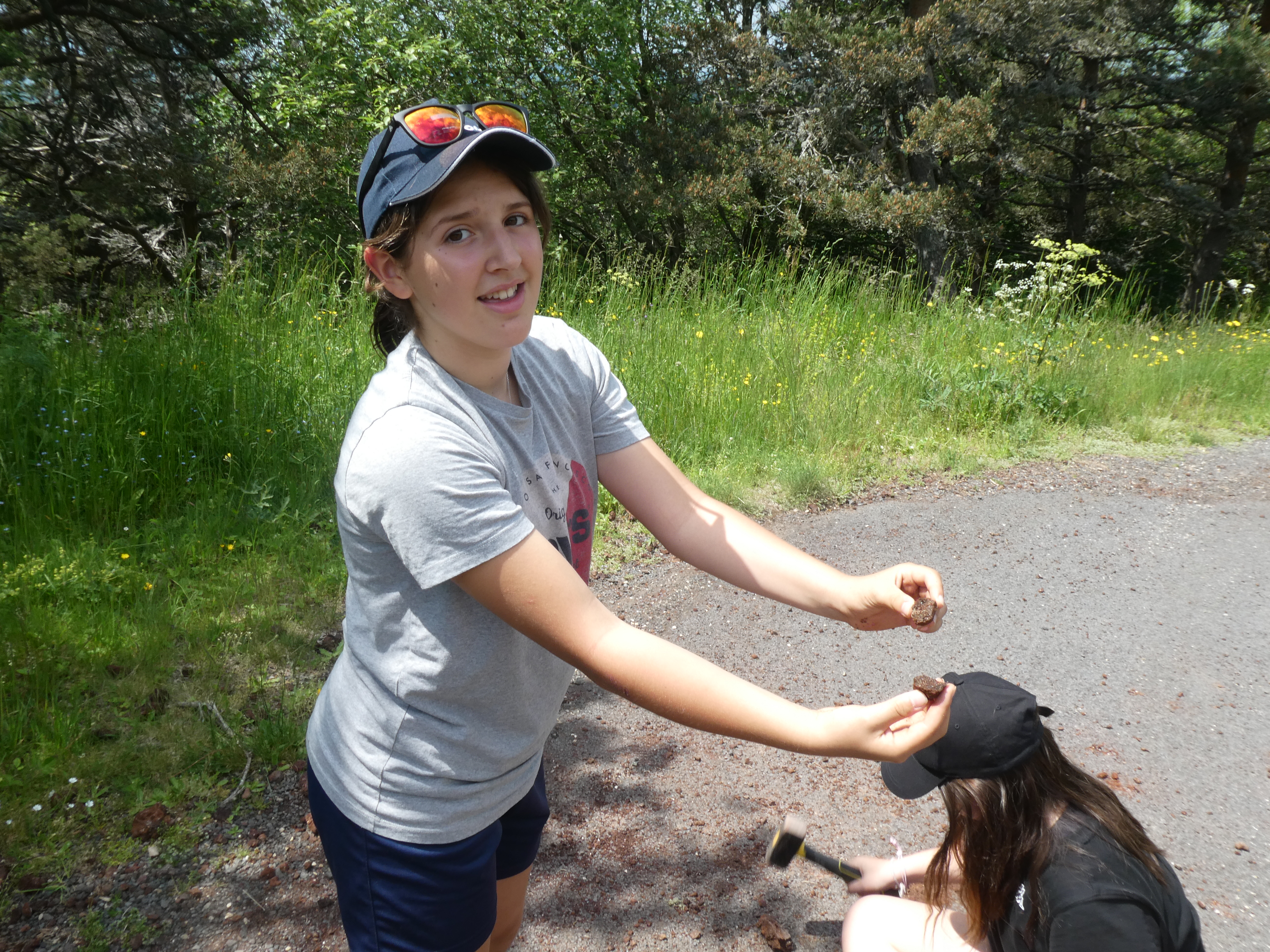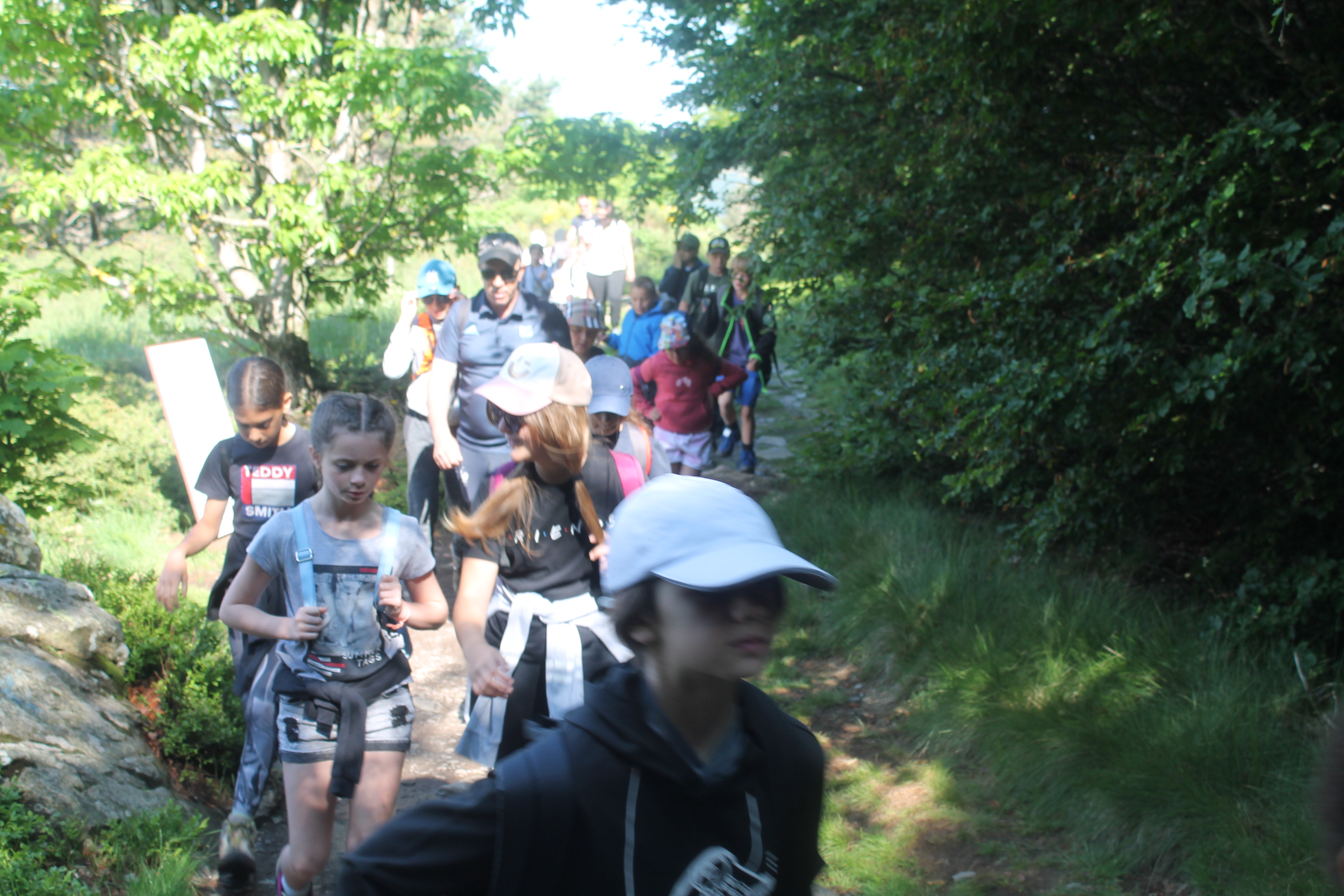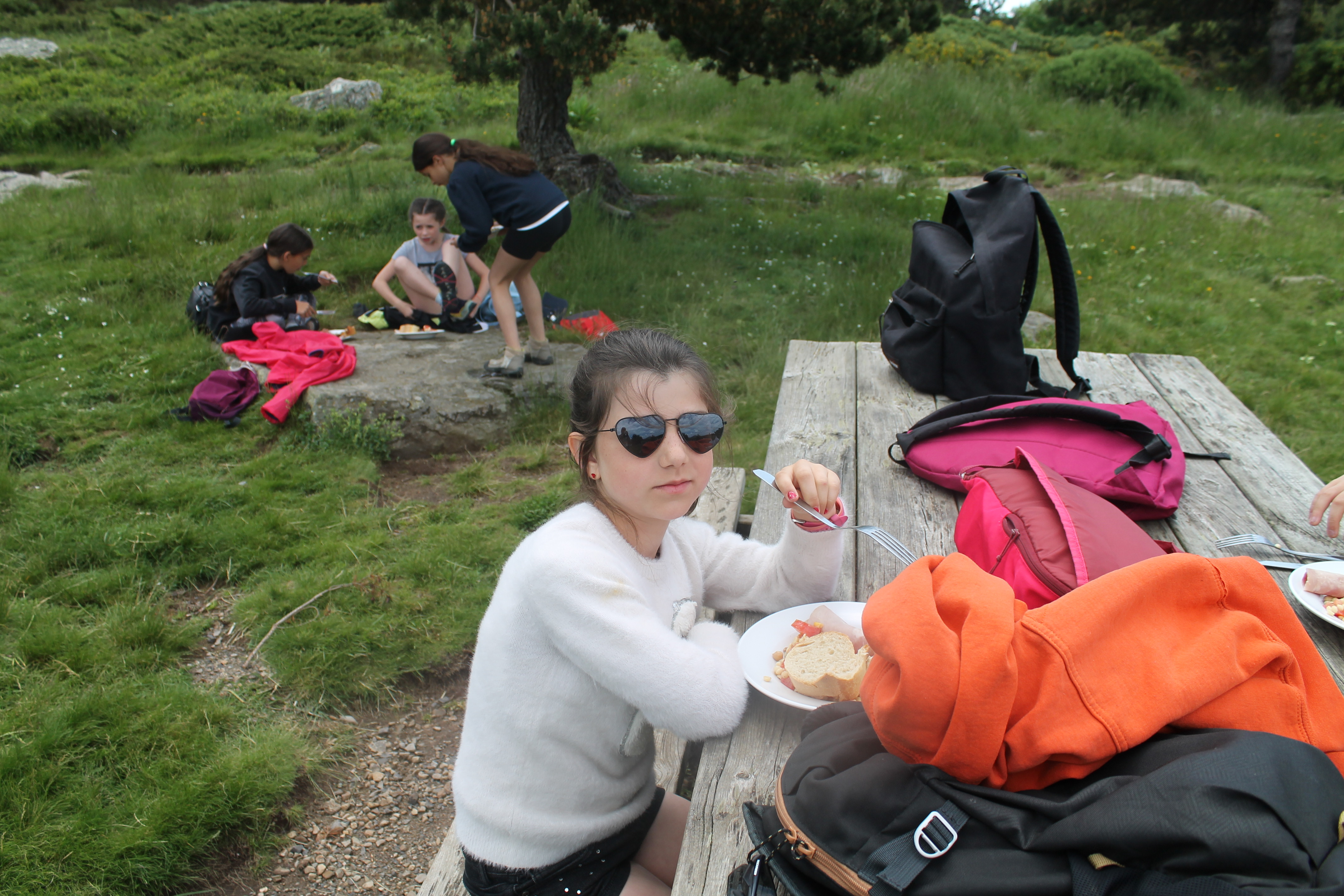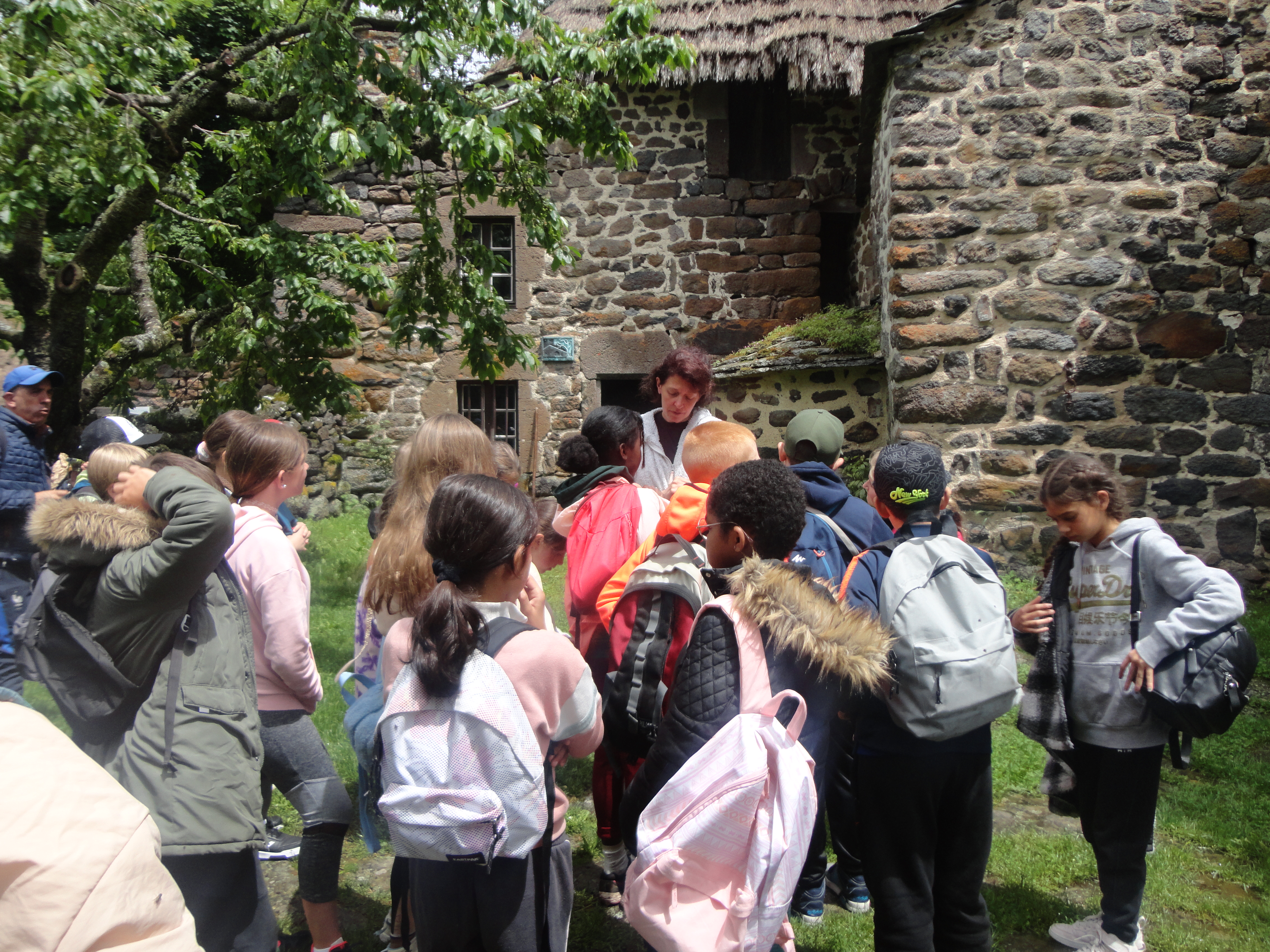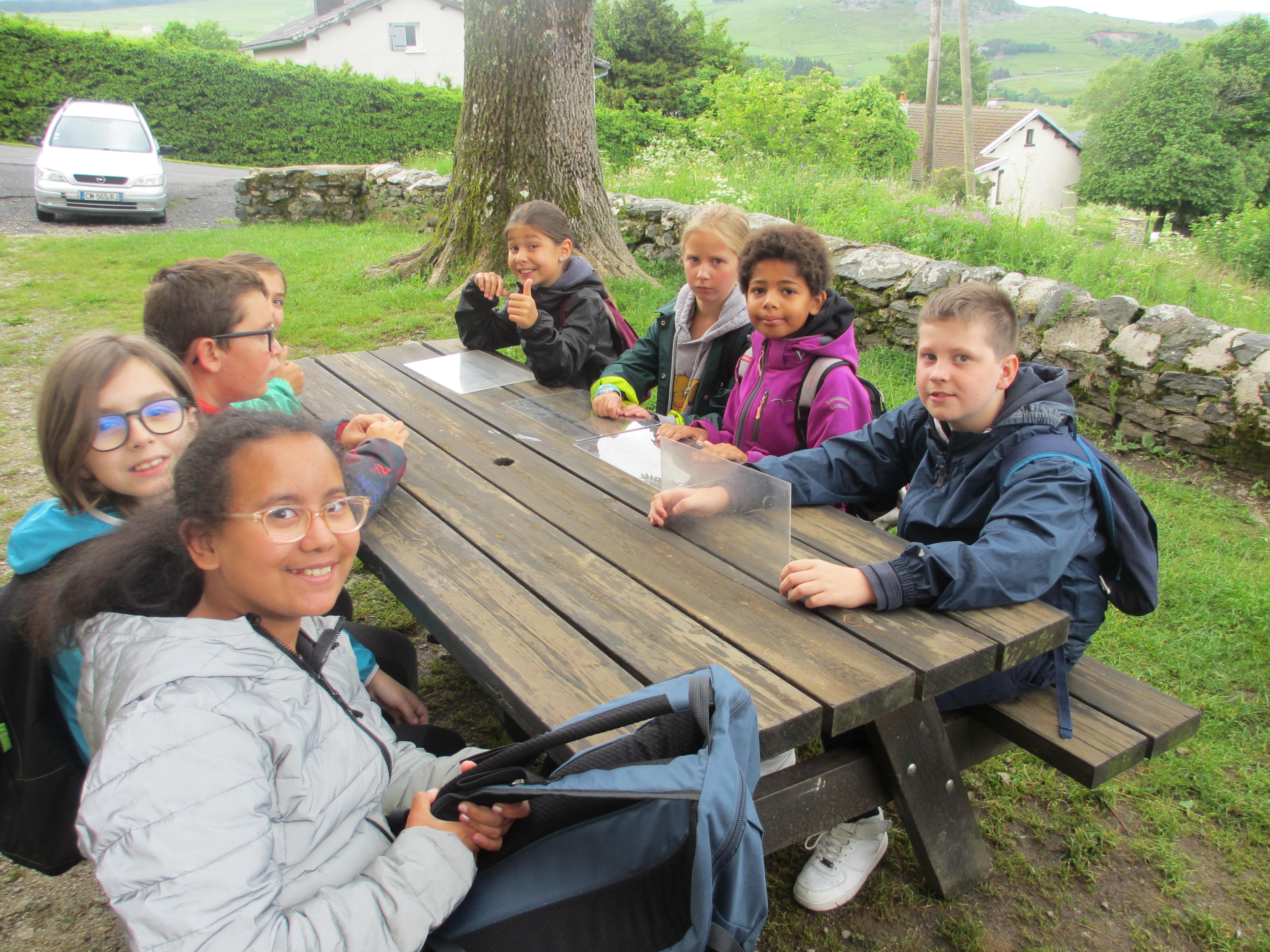 En sortant du bus, nous avons attaqué à gravir le Mont Gerbier de Jonc. En montant, nous nous sommes arrêtés quelques fois pour regarder le paysage puis, une fois arrivés au sommet, Hervé notre guide, nous a parlé du type de ce volcan et de ce qui l'entoure. A la fin, nous sommes redescendus puis nous avons pique-niqué au pied du volcan. Nous avons repris le bus pour aller au volcan du Cherche Muse où nous avons cassé des pierres (bombes volcaniques), que nous avons ramassées à l'aide d'Hervé et de Marylou une autre guide du chalet. En reprenant le bus, nous avons pris la direction du Lac d'Issarlés où nous avons parlé du volcan qu'il y avait dessous avec les deux guides. Nous avons goutté puis nous avons joué sur le sable. Nous avons repris le bus en direction du chalet où nous avons pris une douche, le soir nous avons mangé : une soupe de légumes, une poêlée forestière, de la pizza et une mousse au chocolat.