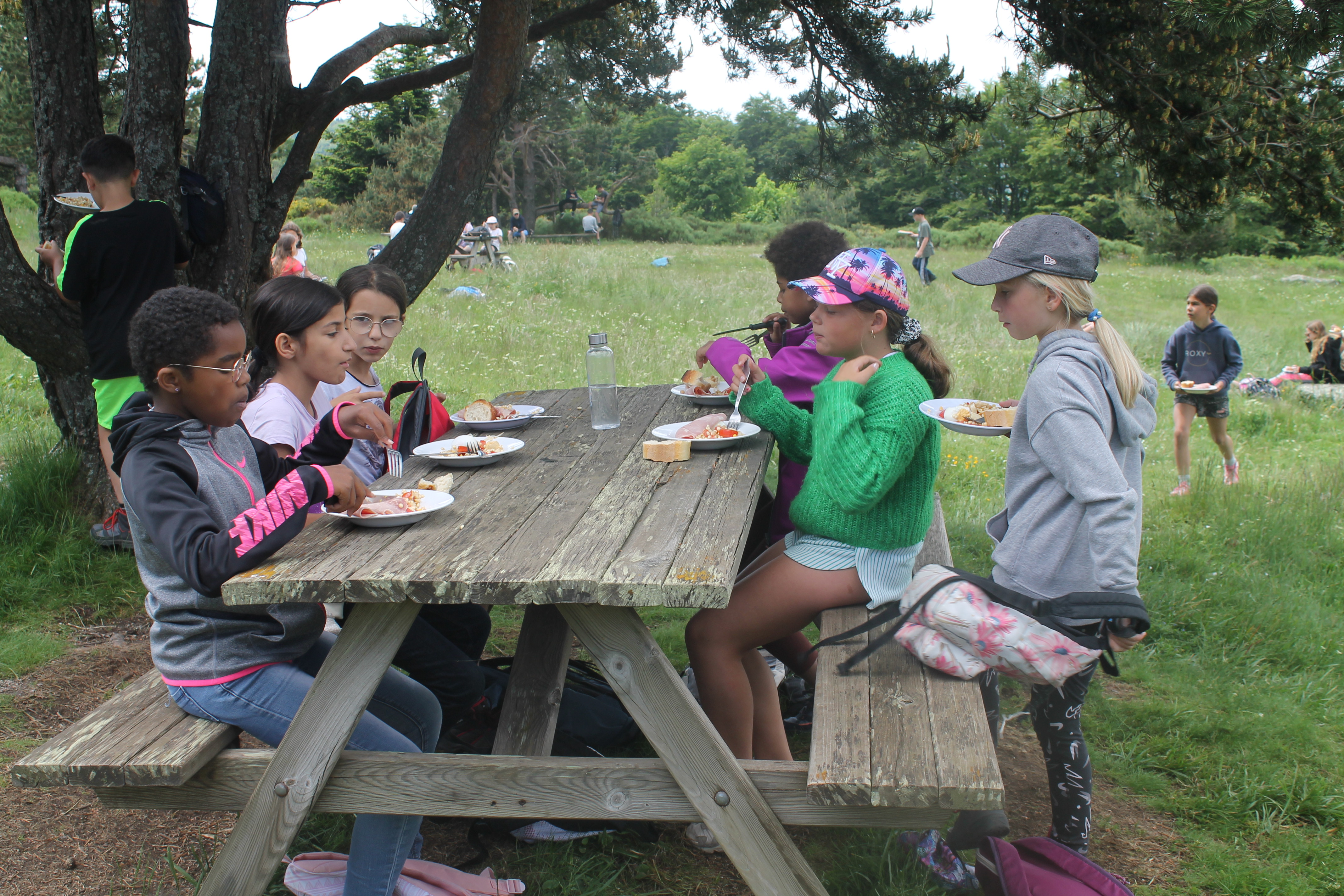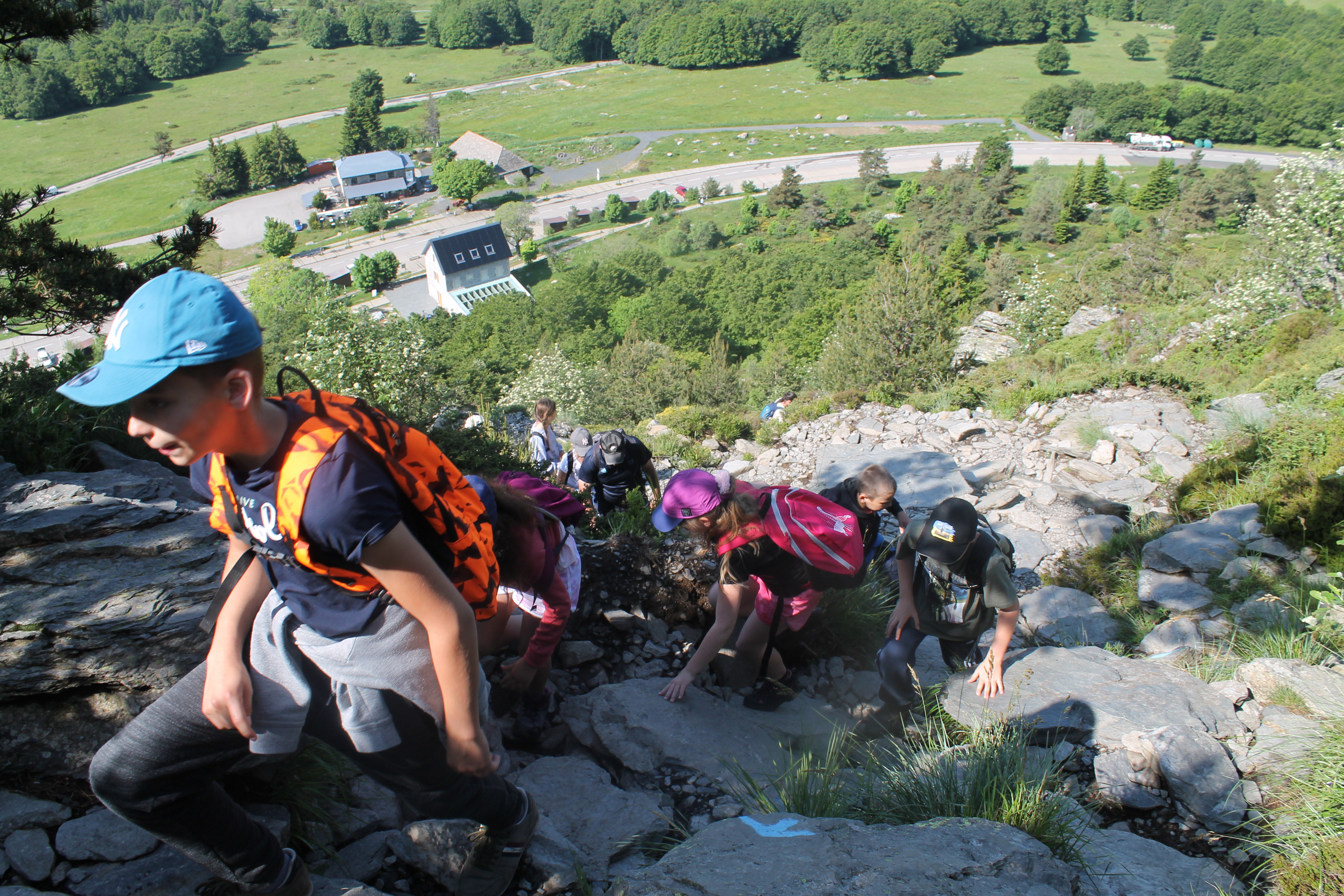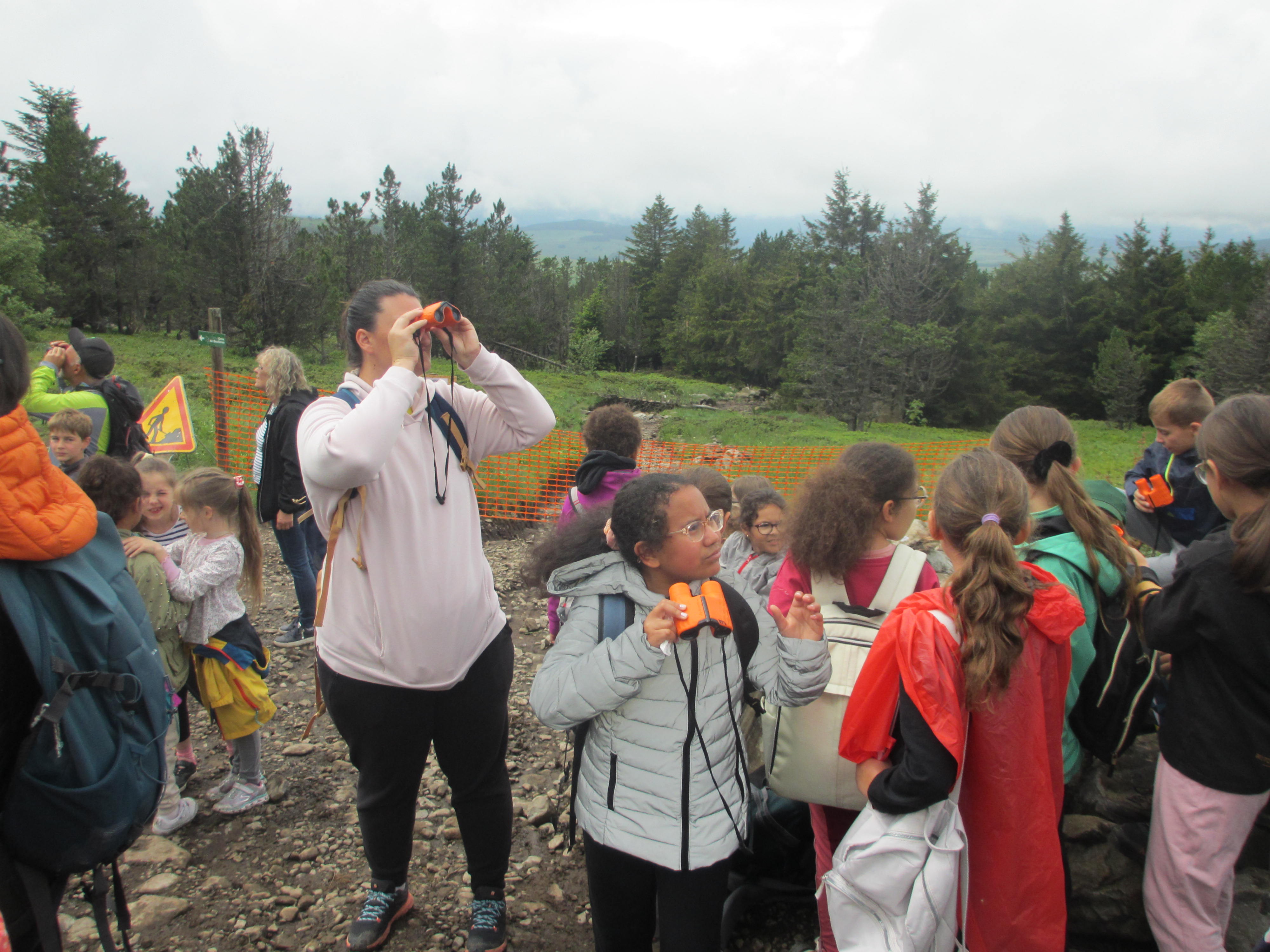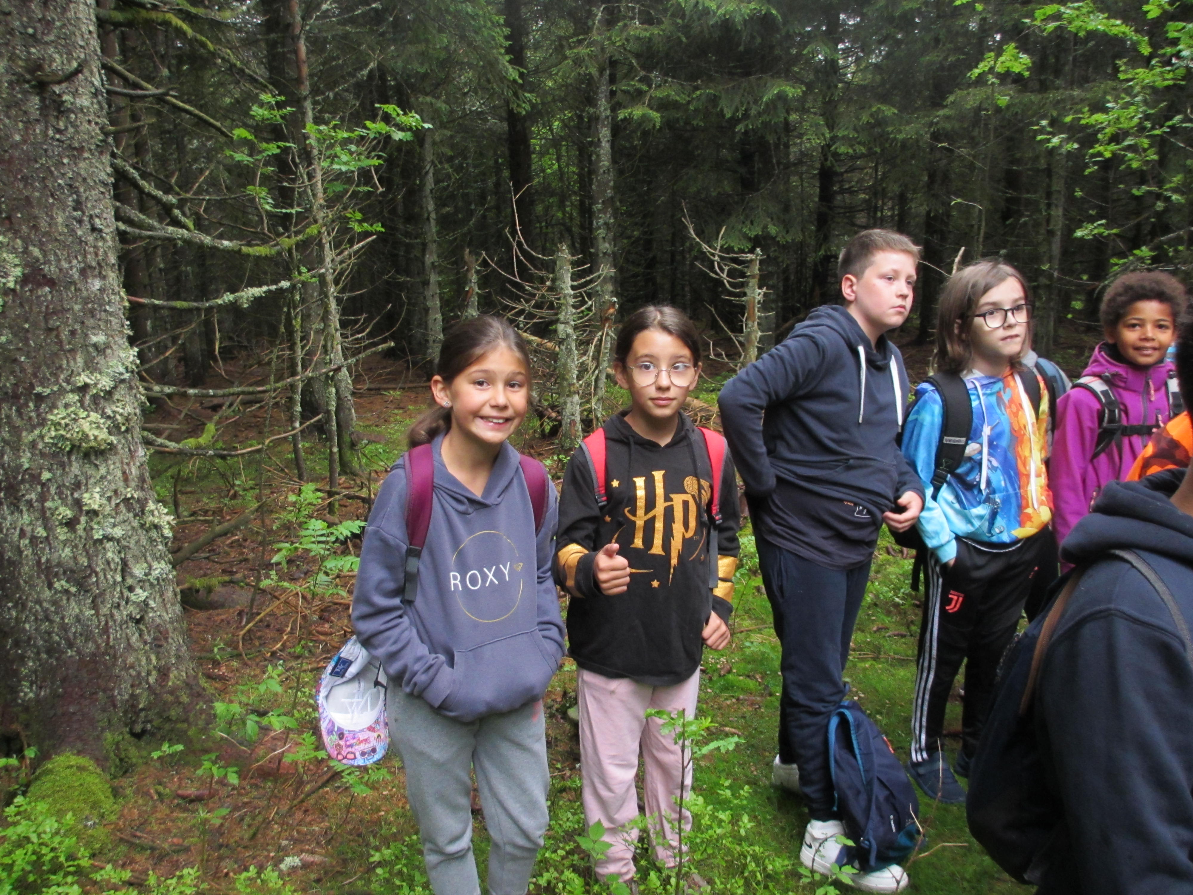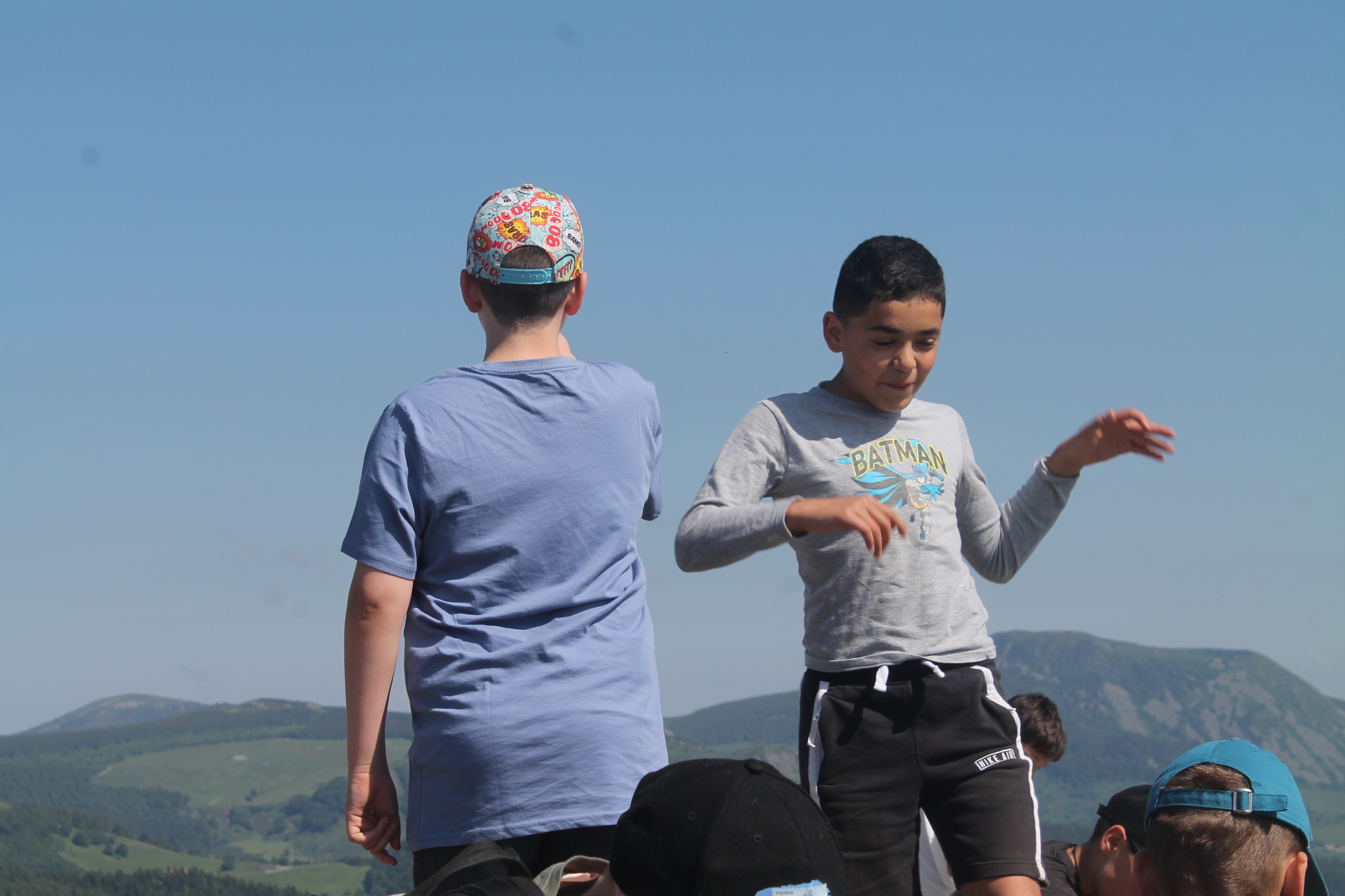 En sortant du bus, nous avons attaqué à gravir le Mont Gerbier de Jonc. En montant, nous nous sommes arrêtés quelques fois pour regarder le paysage puis, une fois arrivés au sommet, Hervé notre guide, nous a parlé du type de ce volcan et de ce qui l'entoure. A la fin, nous sommes redescendus puis nous avons pique-niqué au pied du volcan. Nous avons repris le bus pour aller au volcan du Cherche Muse où nous avons cassé des pierres (bombes volcaniques), que nous avons ramassées à l'aide d'Hervé et de Marylou une autre guide du chalet. En reprenant le bus, nous avons pris la direction du Lac d'Issarlés où nous avons parlé du volcan qu'il y avait dessous avec les deux guides. Nous avons goutté puis nous avons joué sur le sable. Nous avons repris le bus en direction du chalet où nous avons pris une douche, le soir nous avons mangé : une soupe de légumes, une poêlée forestière, de la pizza et une mousse au chocolat.