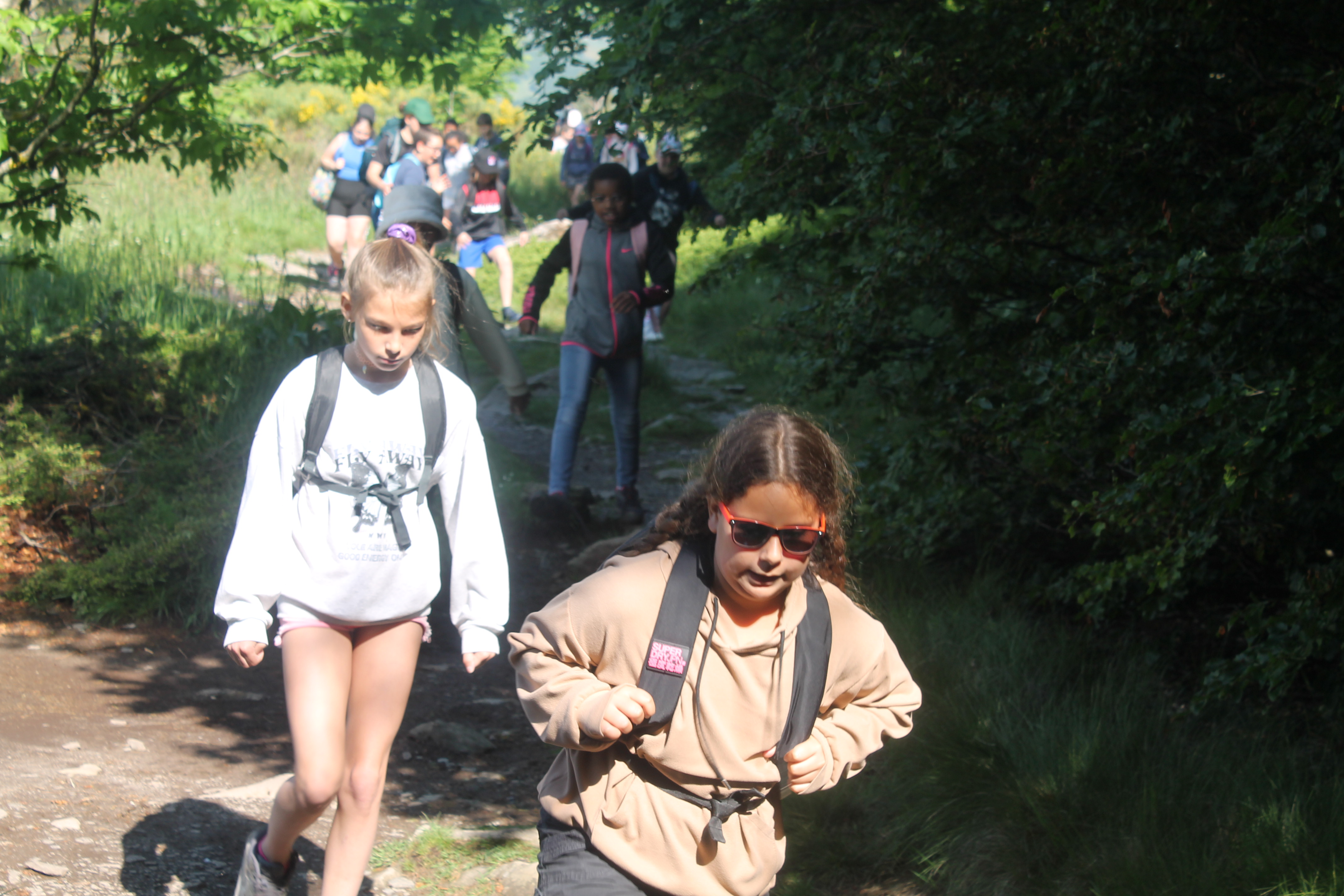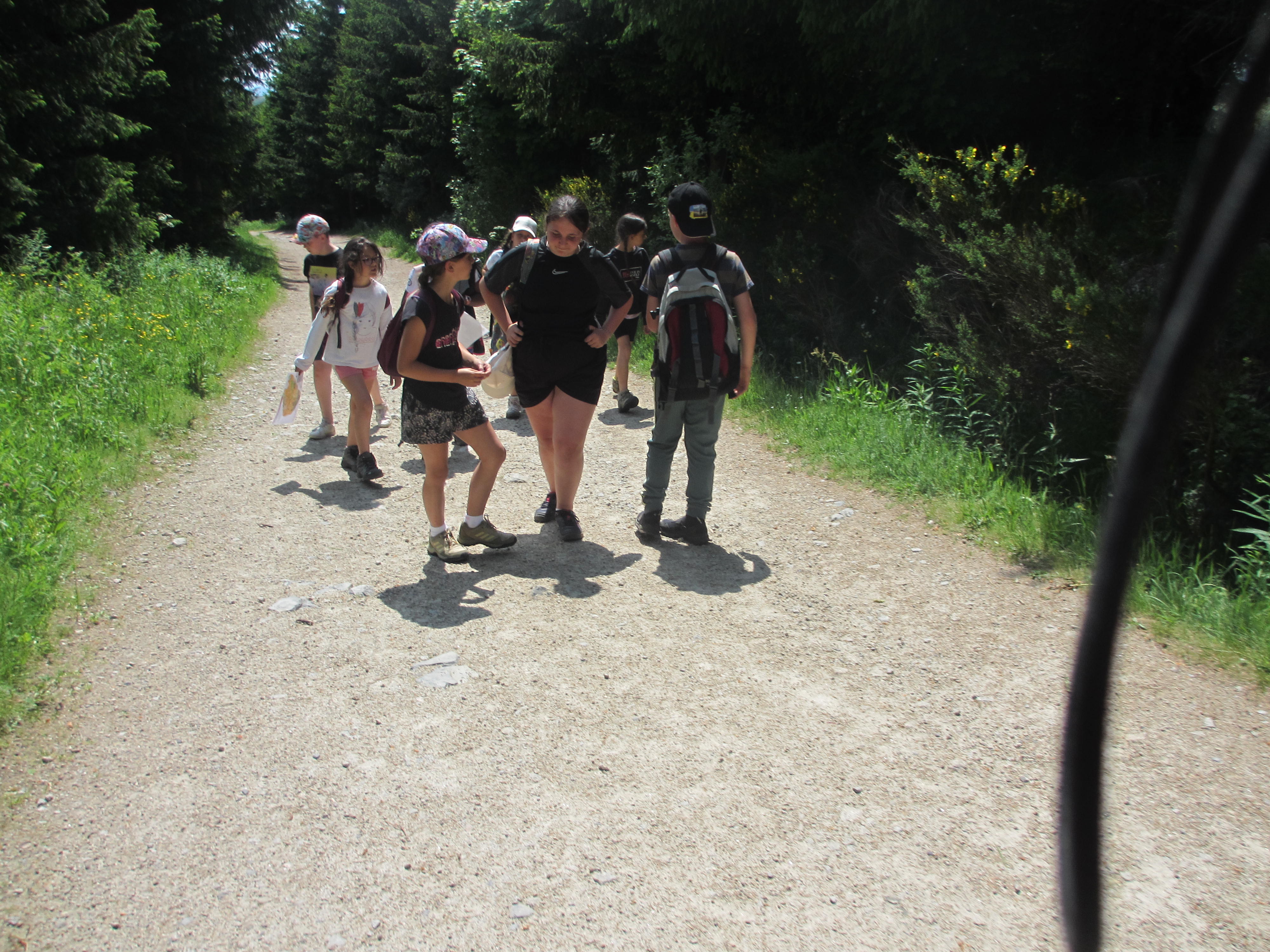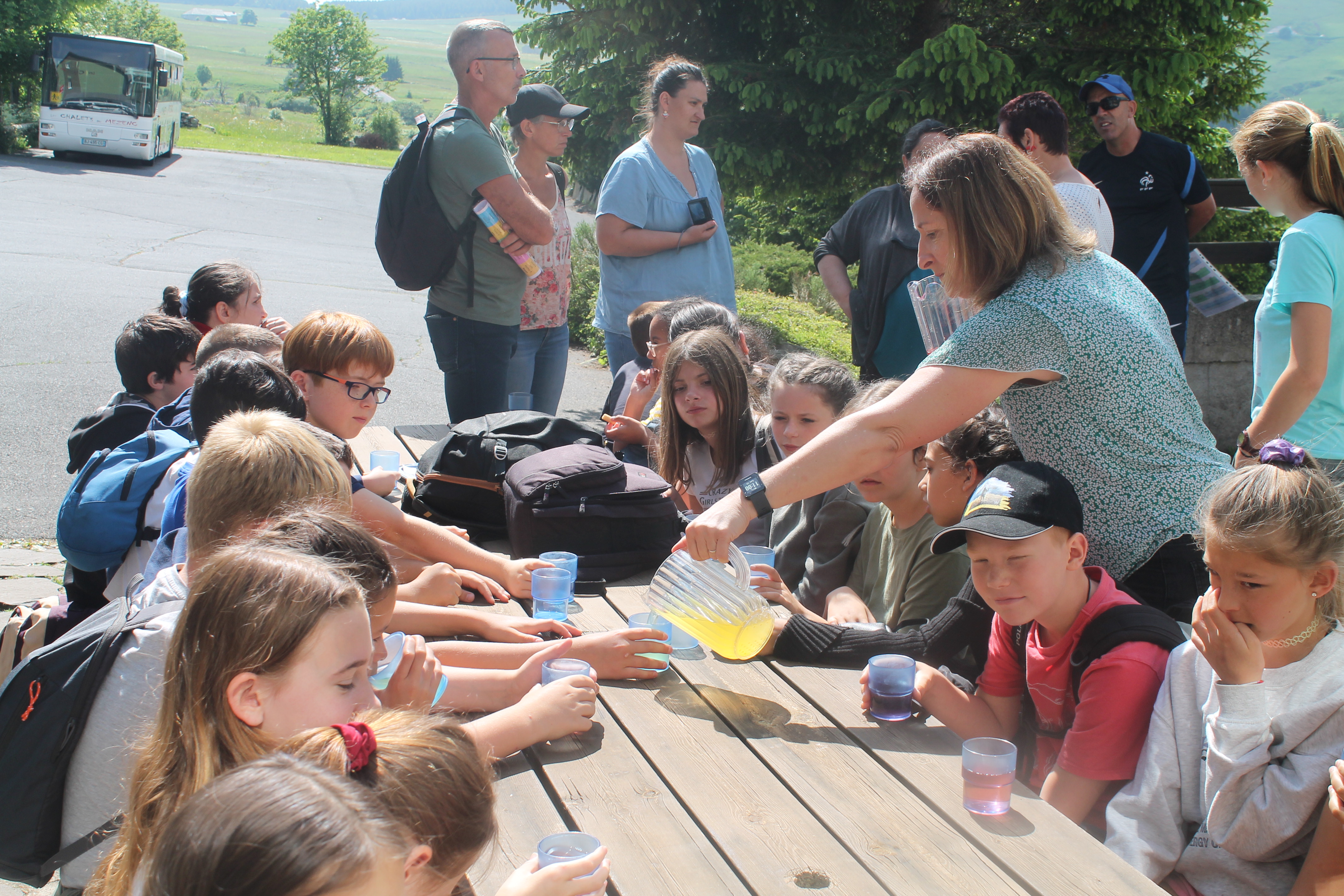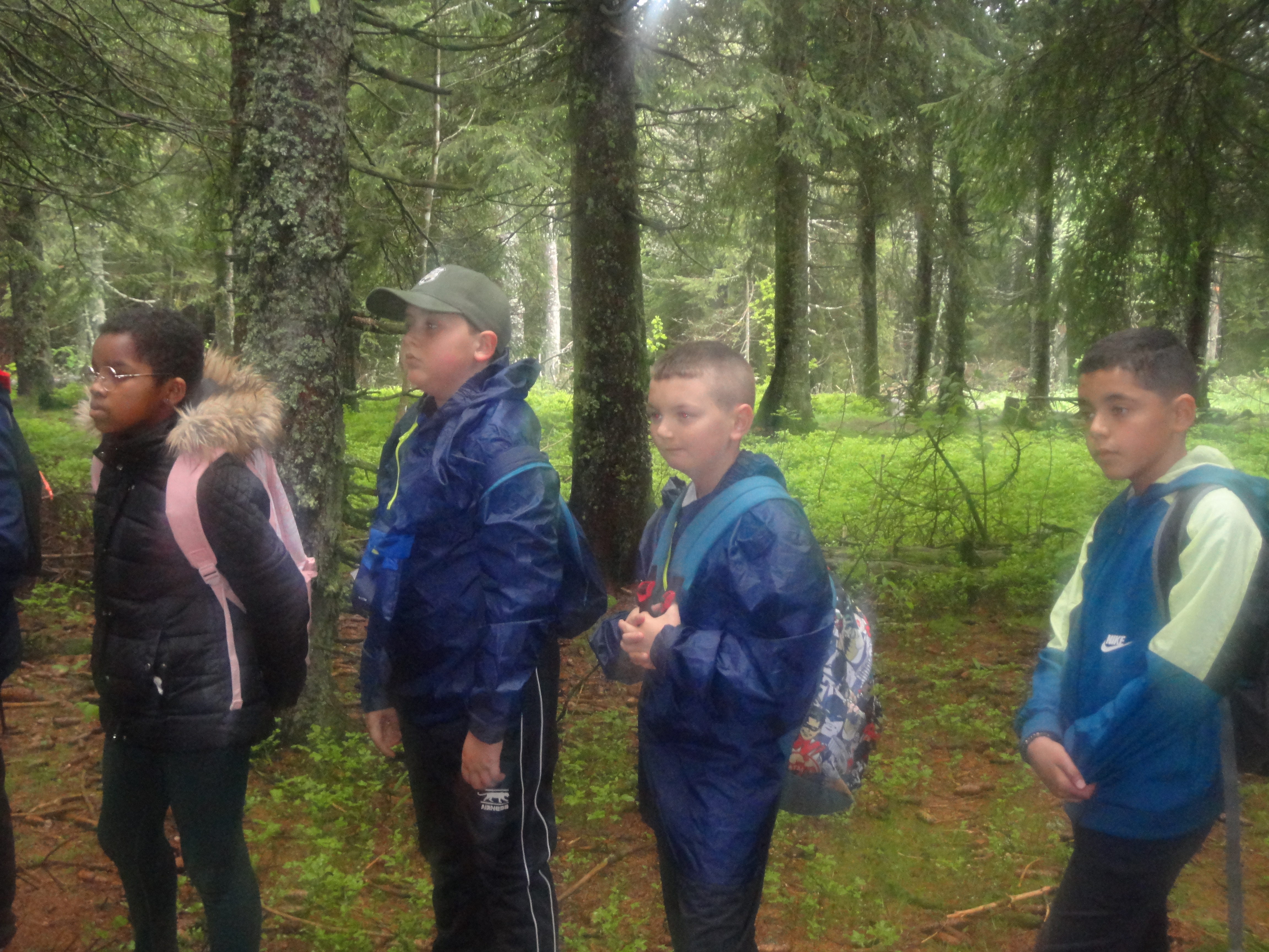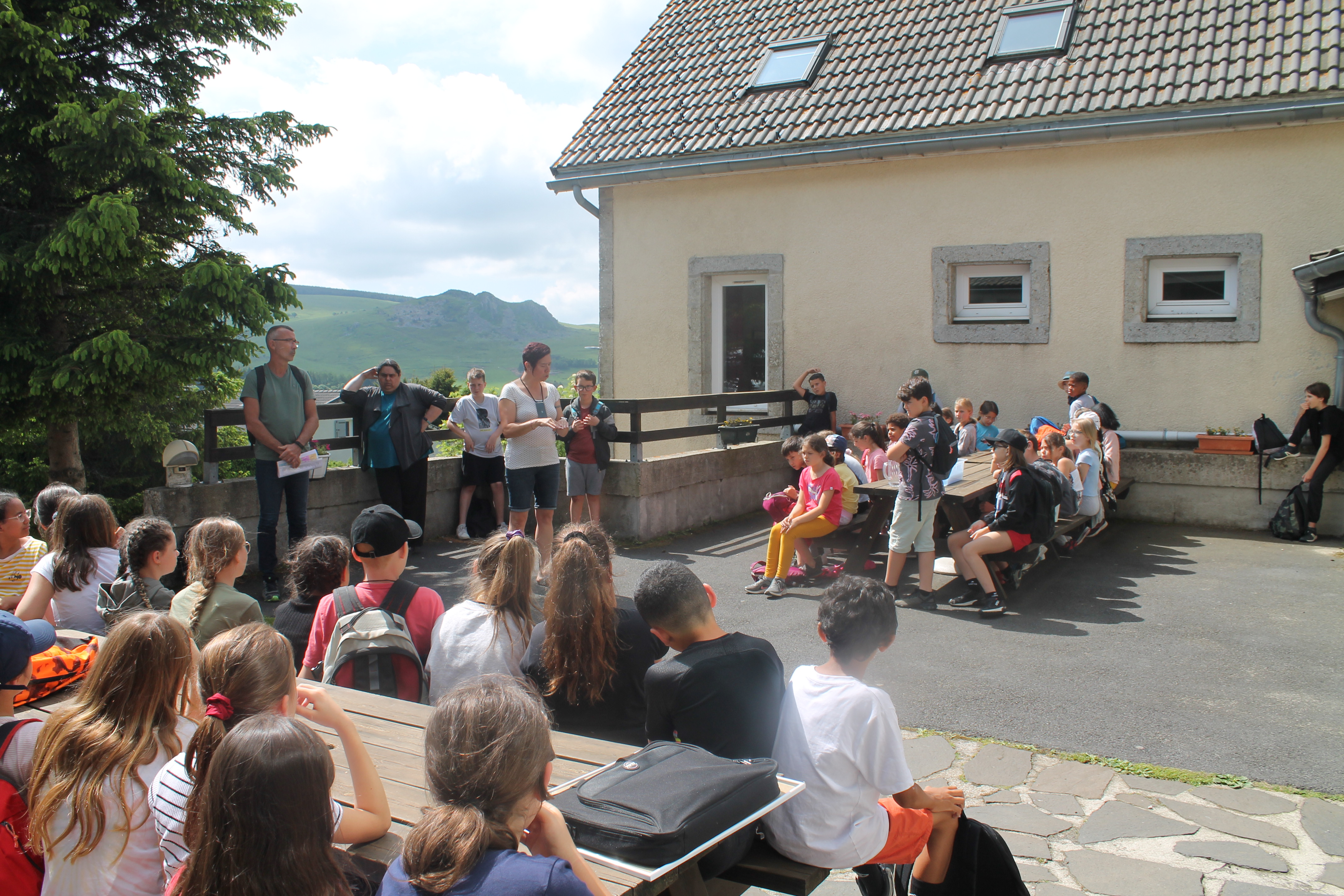 En sortant du bus, nous avons attaqué à gravir le Mont Gerbier de Jonc. En montant, nous nous sommes arrêtés quelques fois pour regarder le paysage puis, une fois arrivés au sommet, Hervé notre guide, nous a parlé du type de ce volcan et de ce qui l'entoure. A la fin, nous sommes redescendus puis nous avons pique-niqué au pied du volcan. Nous avons repris le bus pour aller au volcan du Cherche Muse où nous avons cassé des pierres (bombes volcaniques), que nous avons ramassées à l'aide d'Hervé et de Marylou une autre guide du chalet. En reprenant le bus, nous avons pris la direction du Lac d'Issarlés où nous avons parlé du volcan qu'il y avait dessous avec les deux guides. Nous avons goutté puis nous avons joué sur le sable. Nous avons repris le bus en direction du chalet où nous avons pris une douche, le soir nous avons mangé : une soupe de légumes, une poêlée forestière, de la pizza et une mousse au chocolat.