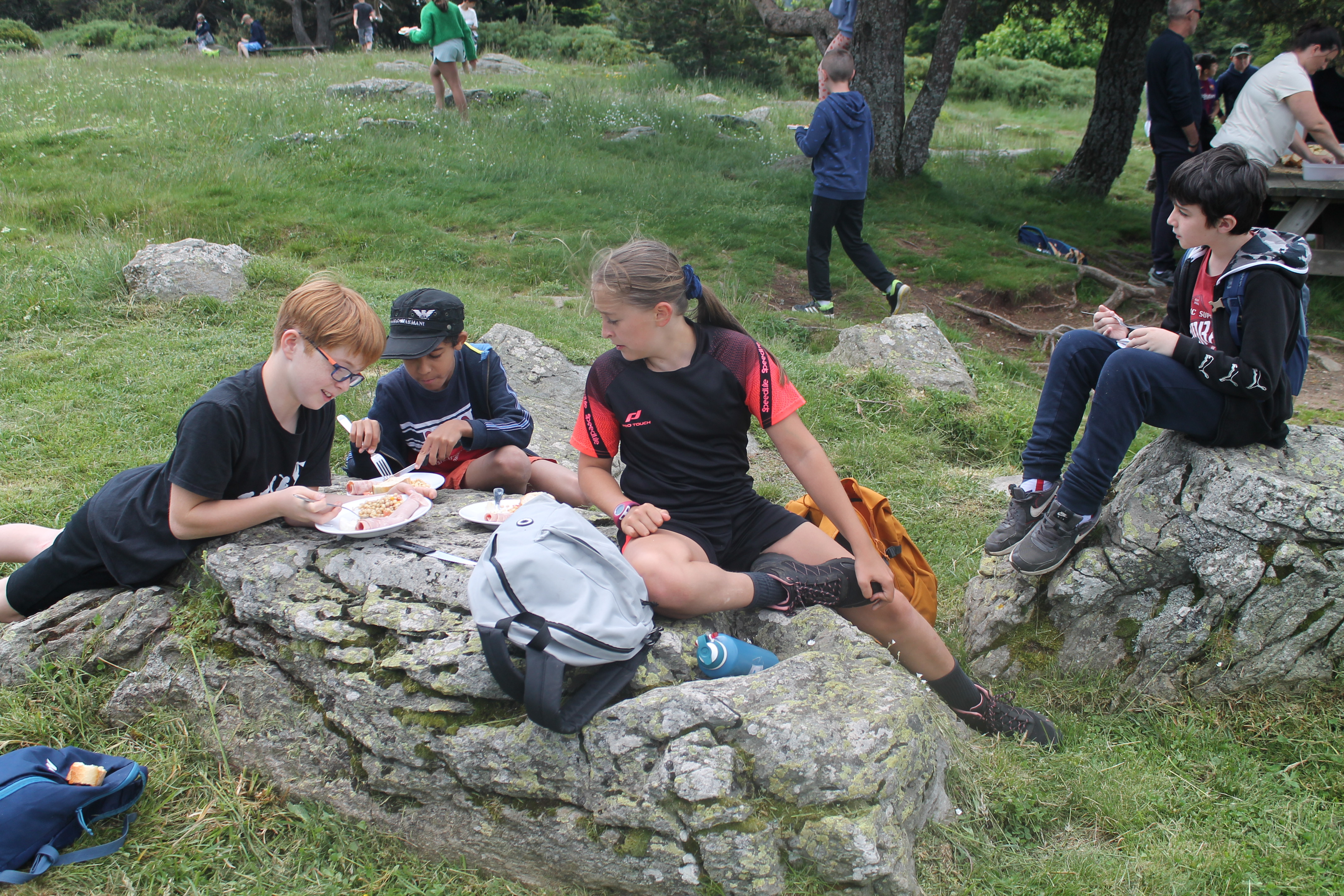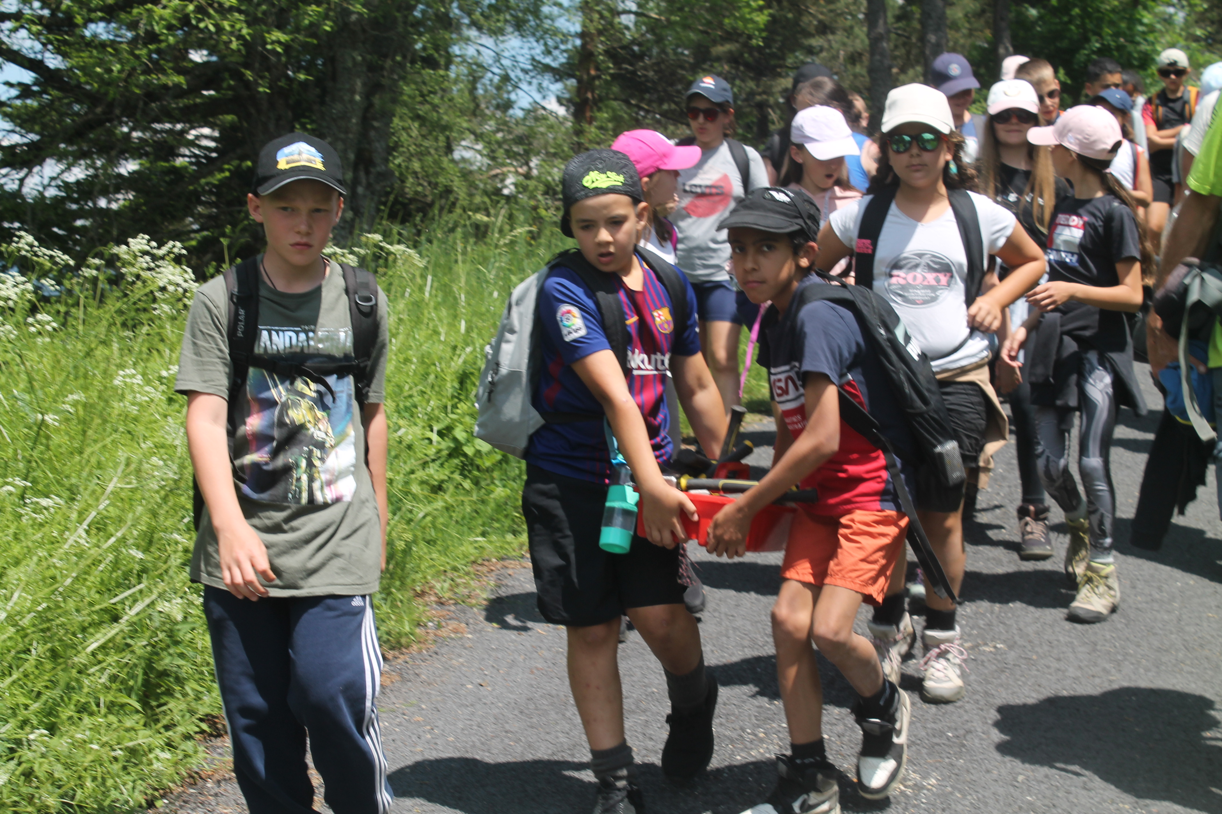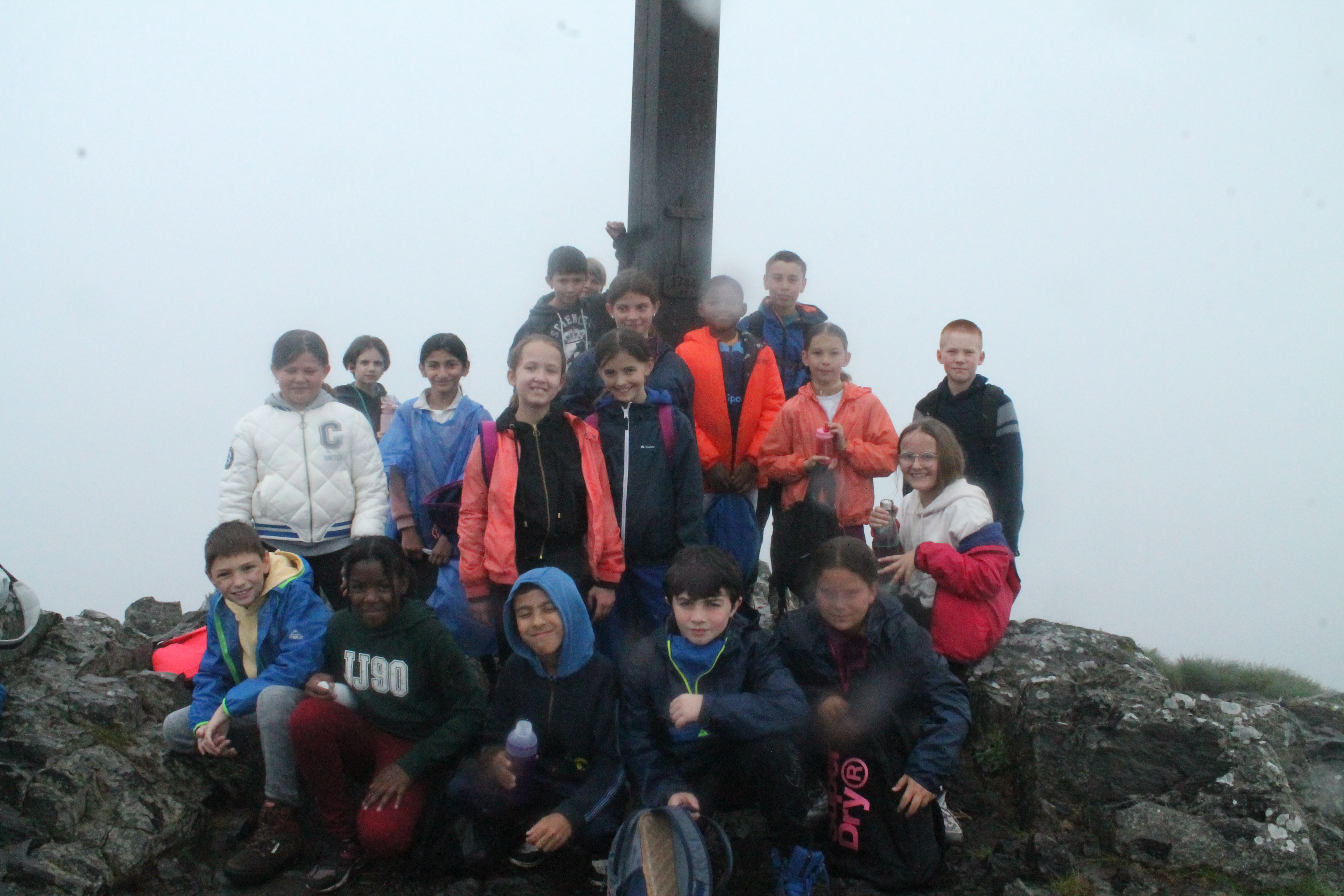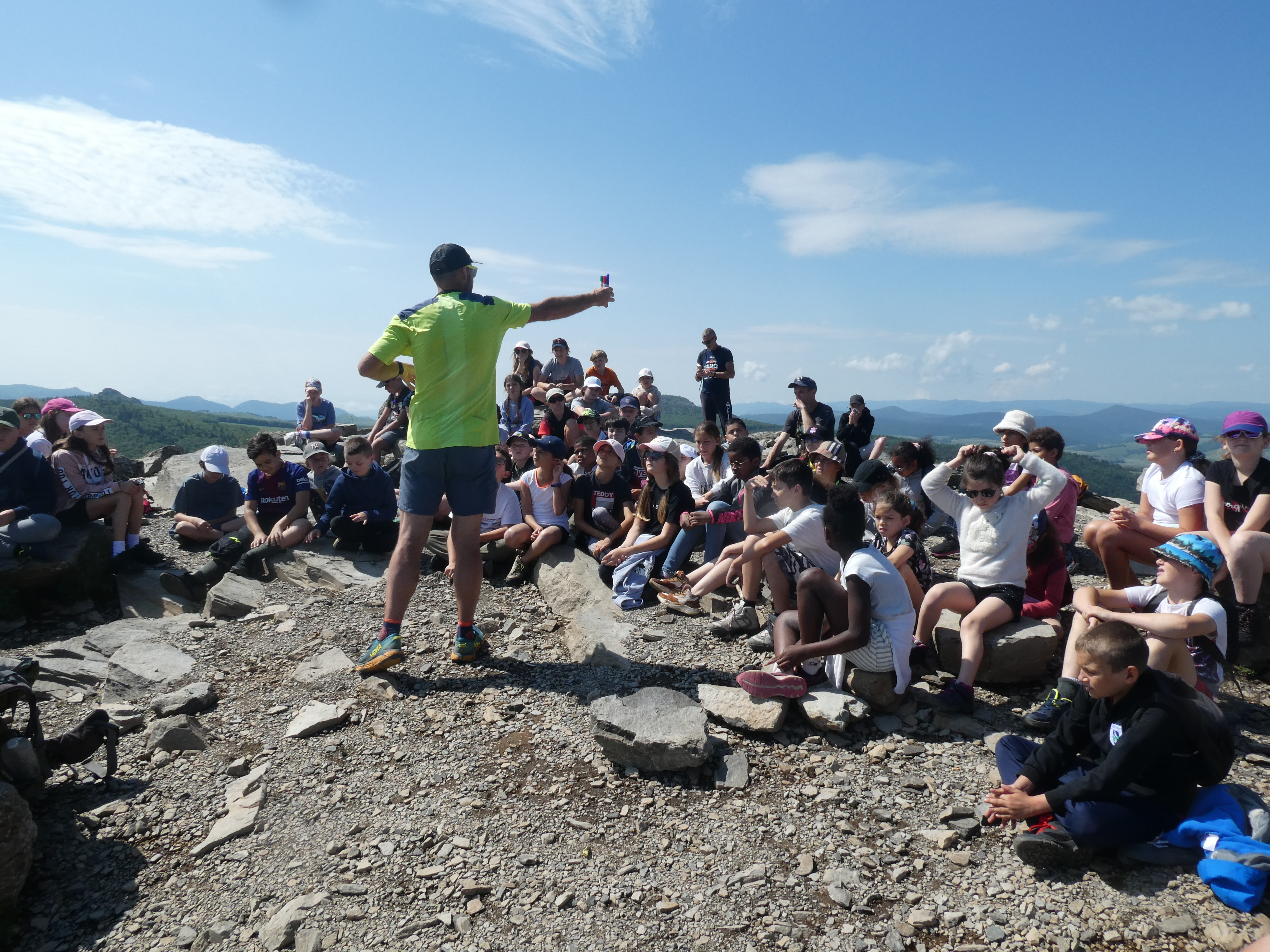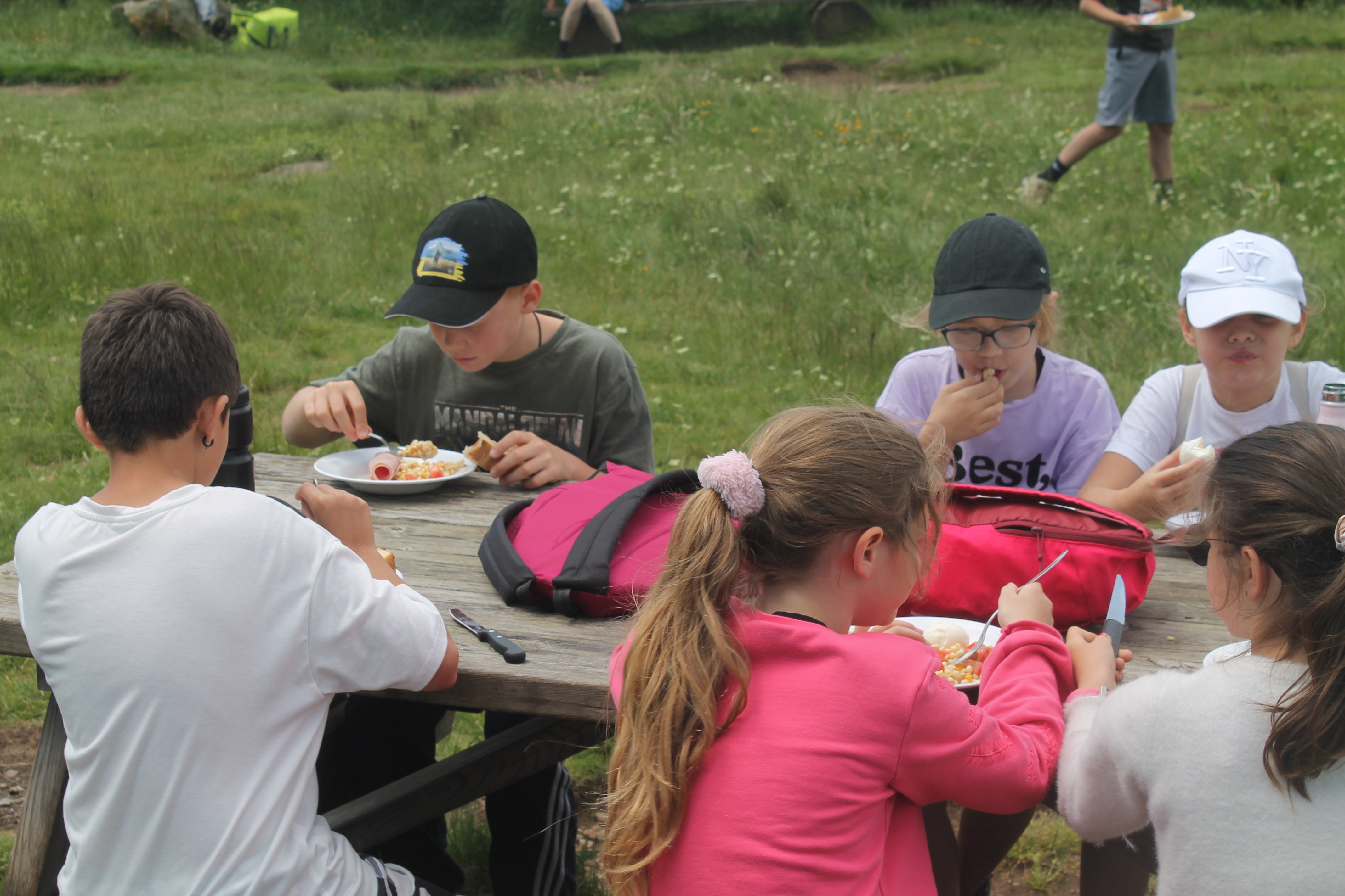 En sortant du bus, nous avons attaqué à gravir le Mont Gerbier de Jonc. En montant, nous nous sommes arrêtés quelques fois pour regarder le paysage puis, une fois arrivés au sommet, Hervé notre guide, nous a parlé du type de ce volcan et de ce qui l'entoure. A la fin, nous sommes redescendus puis nous avons pique-niqué au pied du volcan. Nous avons repris le bus pour aller au volcan du Cherche Muse où nous avons cassé des pierres (bombes volcaniques), que nous avons ramassées à l'aide d'Hervé et de Marylou une autre guide du chalet. En reprenant le bus, nous avons pris la direction du Lac d'Issarlés où nous avons parlé du volcan qu'il y avait dessous avec les deux guides. Nous avons goutté puis nous avons joué sur le sable. Nous avons repris le bus en direction du chalet où nous avons pris une douche, le soir nous avons mangé : une soupe de légumes, une poêlée forestière, de la pizza et une mousse au chocolat.
