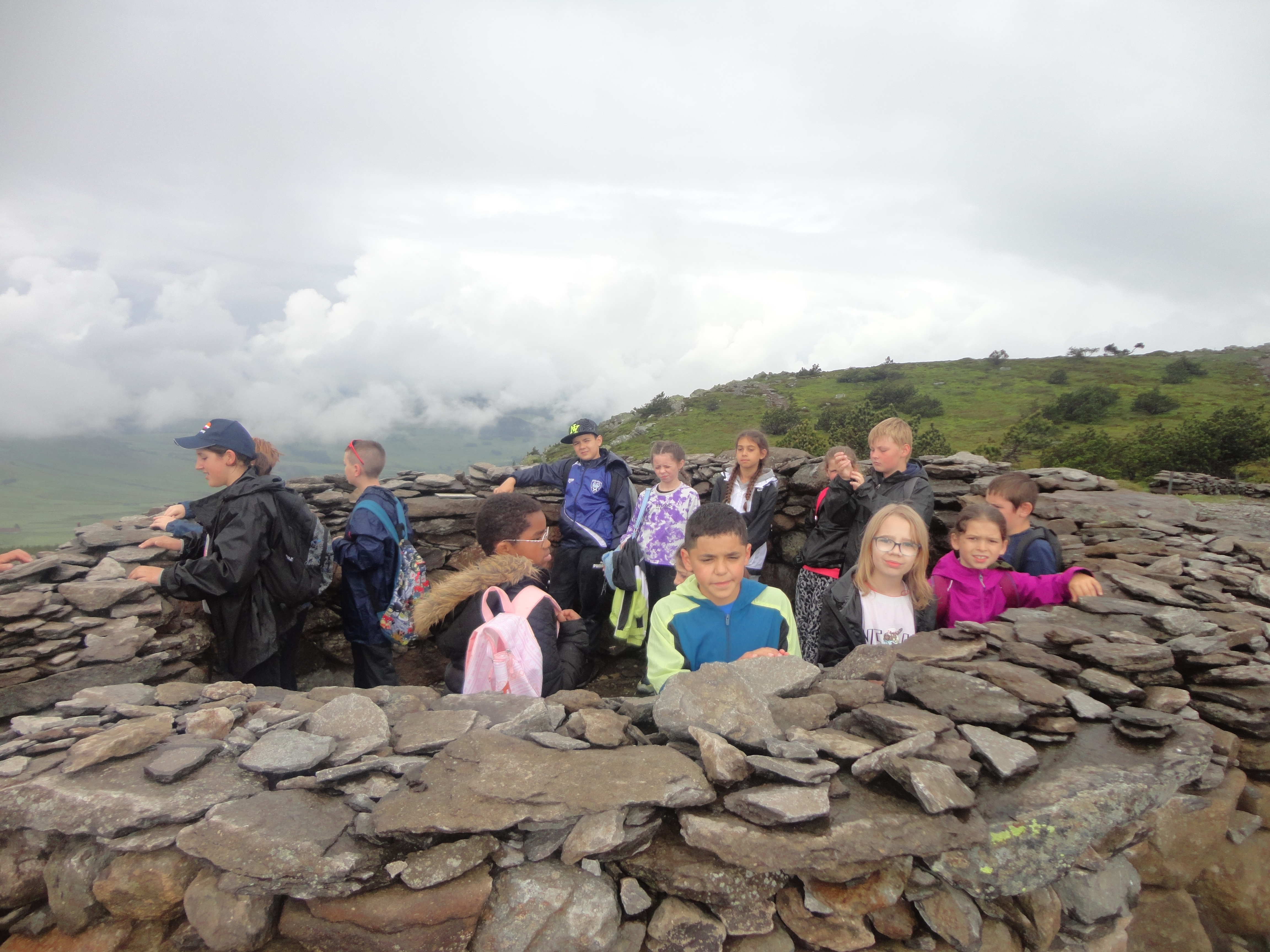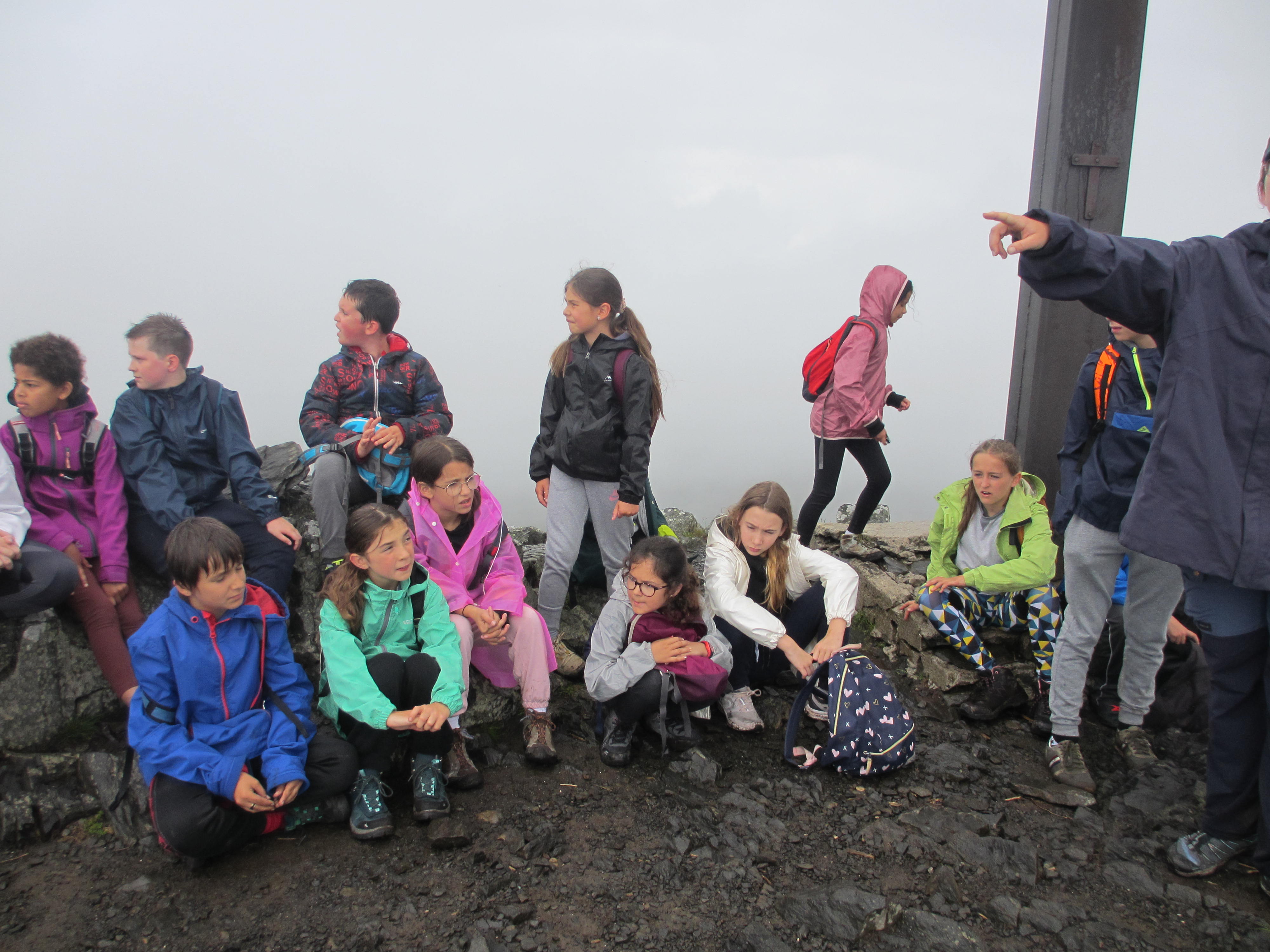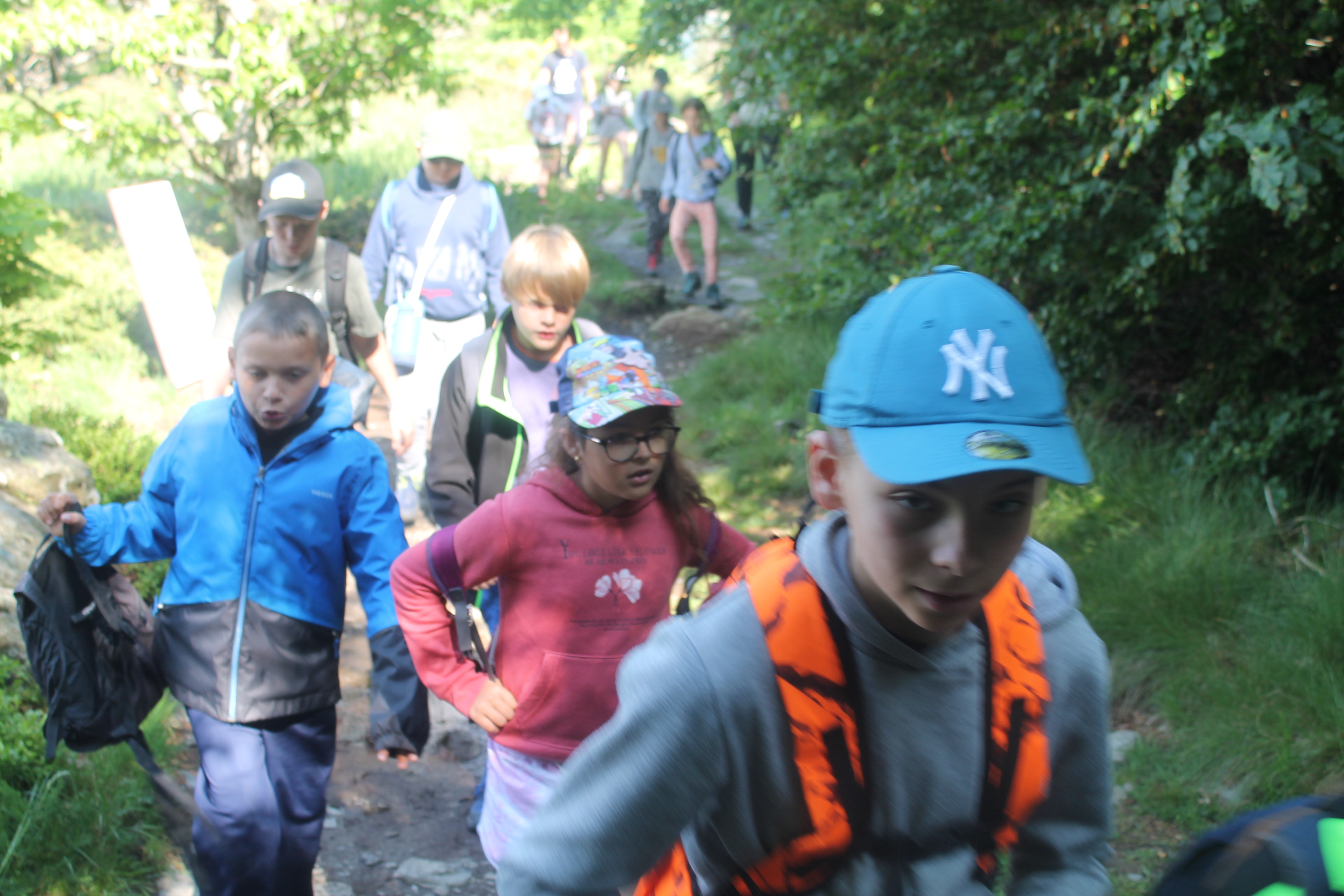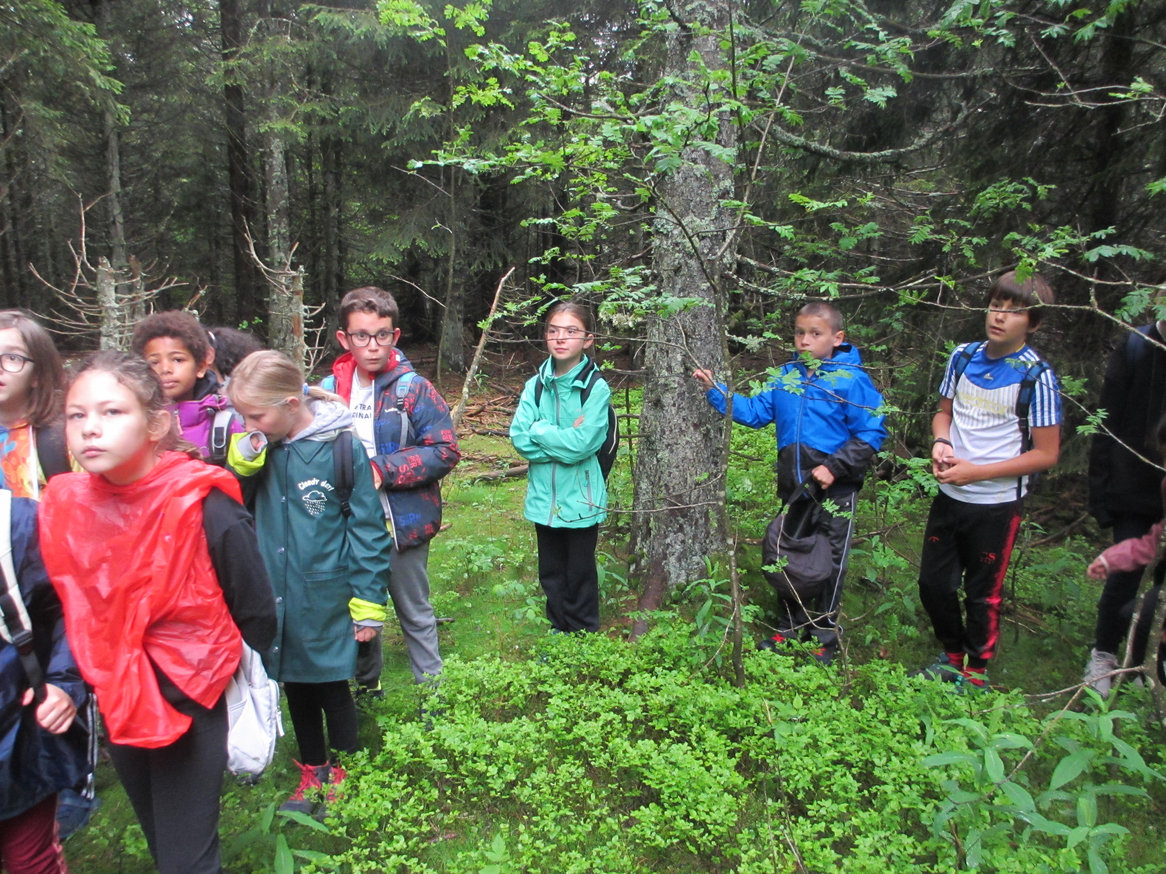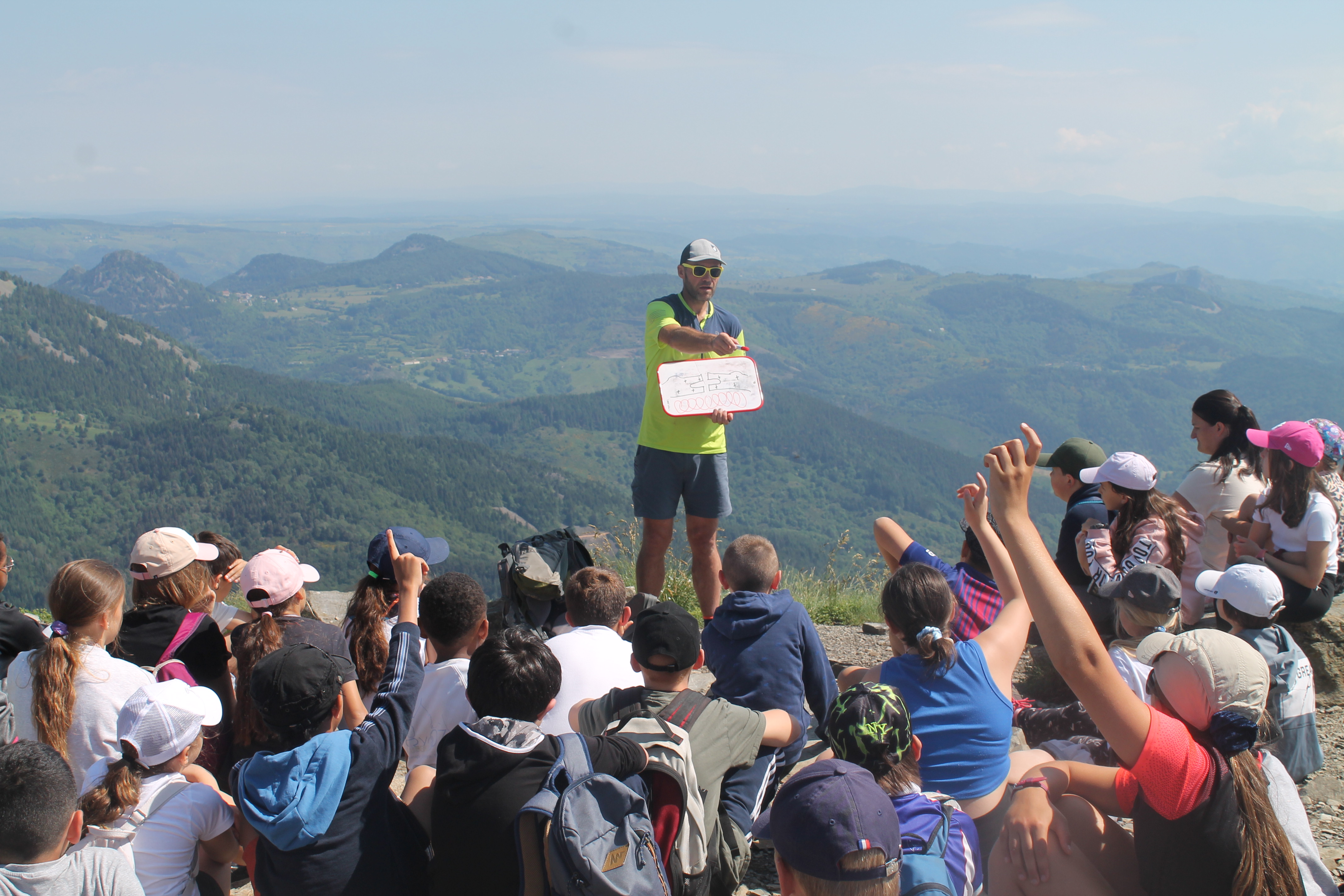 En sortant du bus, nous avons attaqué à gravir le Mont Gerbier de Jonc. En montant, nous nous sommes arrêtés quelques fois pour regarder le paysage puis, une fois arrivés au sommet, Hervé notre guide, nous a parlé du type de ce volcan et de ce qui l'entoure. A la fin, nous sommes redescendus puis nous avons pique-niqué au pied du volcan. Nous avons repris le bus pour aller au volcan du Cherche Muse où nous avons cassé des pierres (bombes volcaniques), que nous avons ramassées à l'aide d'Hervé et de Marylou une autre guide du chalet. En reprenant le bus, nous avons pris la direction du Lac d'Issarlés où nous avons parlé du volcan qu'il y avait dessous avec les deux guides. Nous avons goutté puis nous avons joué sur le sable. Nous avons repris le bus en direction du chalet où nous avons pris une douche, le soir nous avons mangé : une soupe de légumes, une poêlée forestière, de la pizza et une mousse au chocolat.