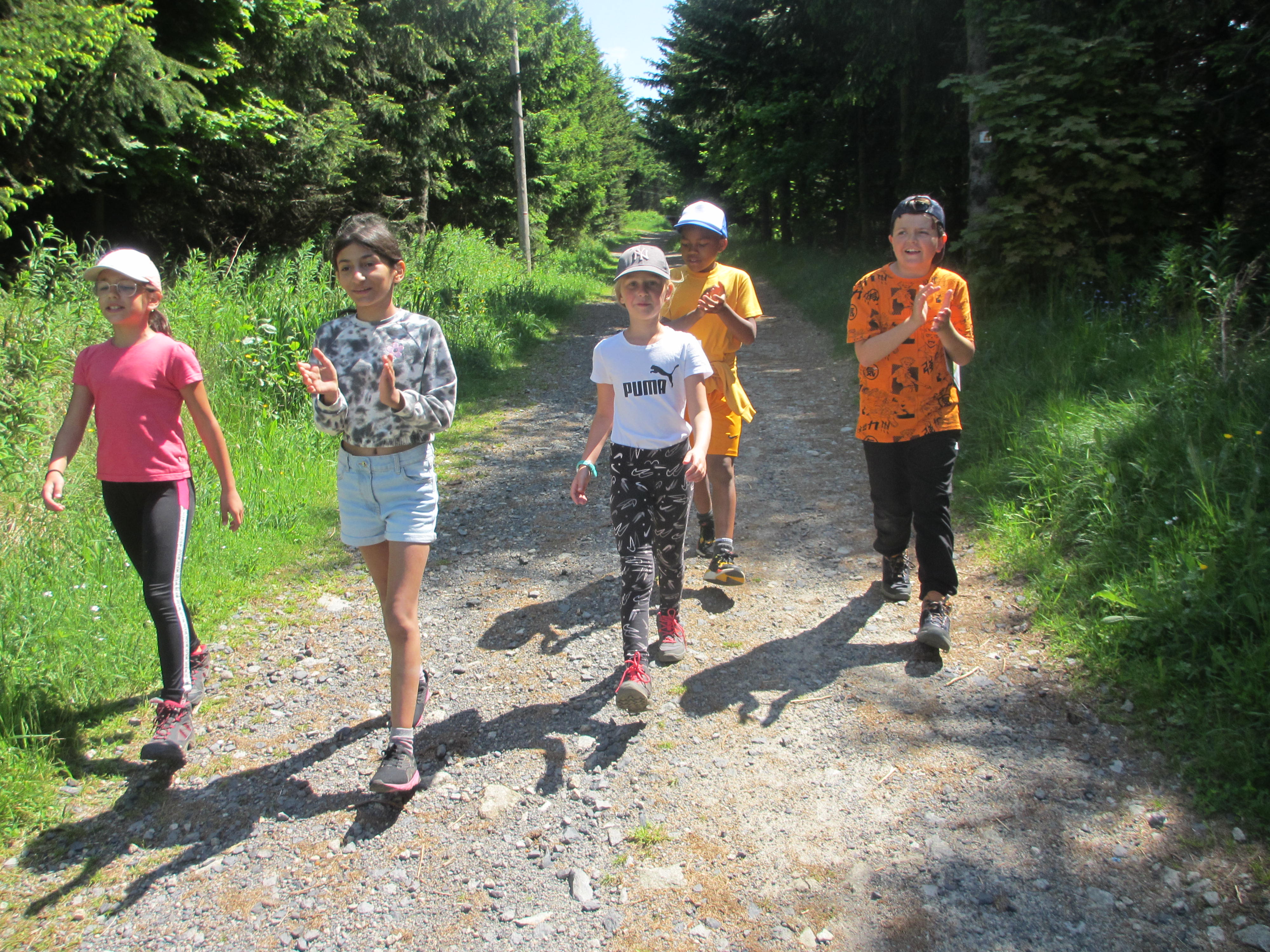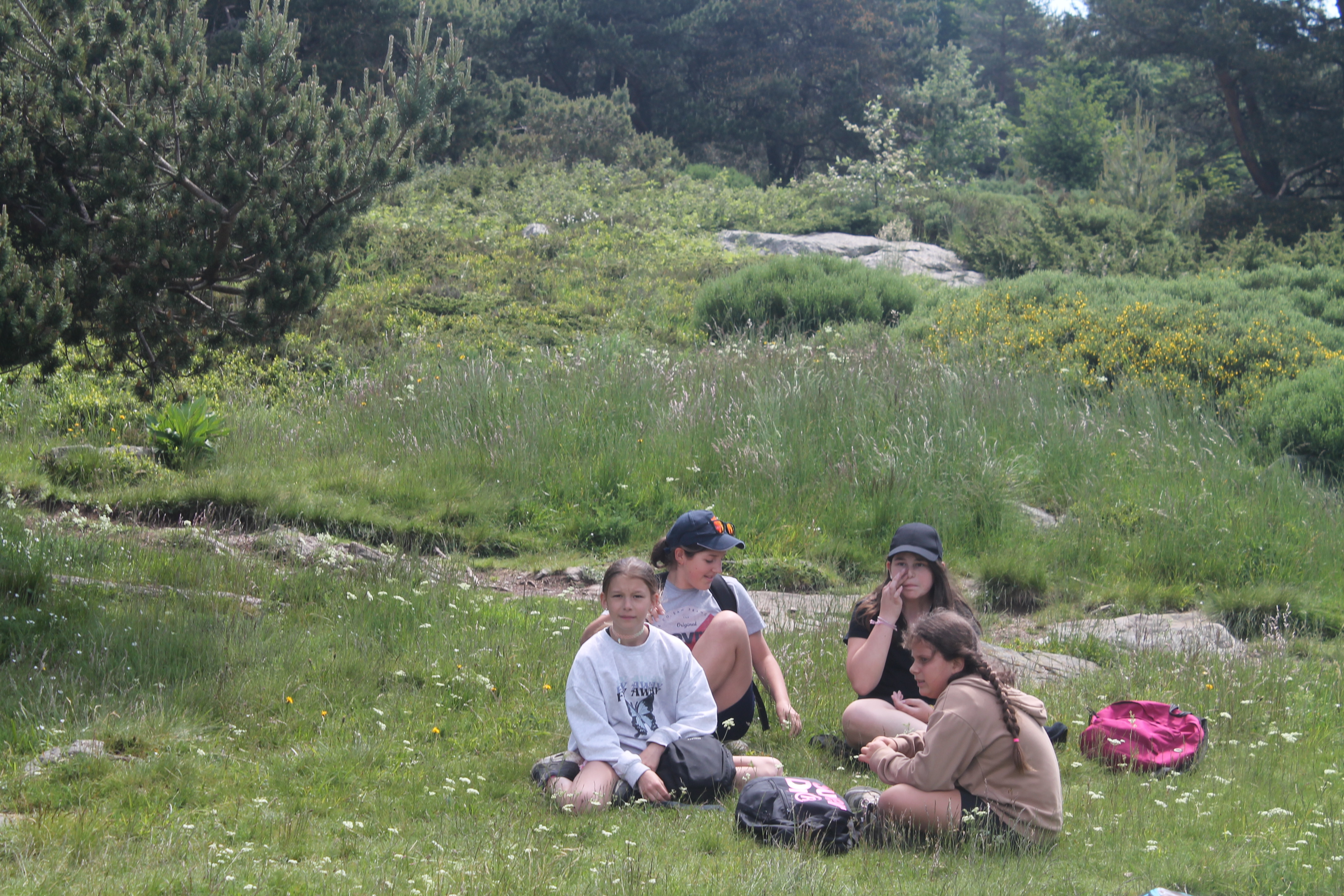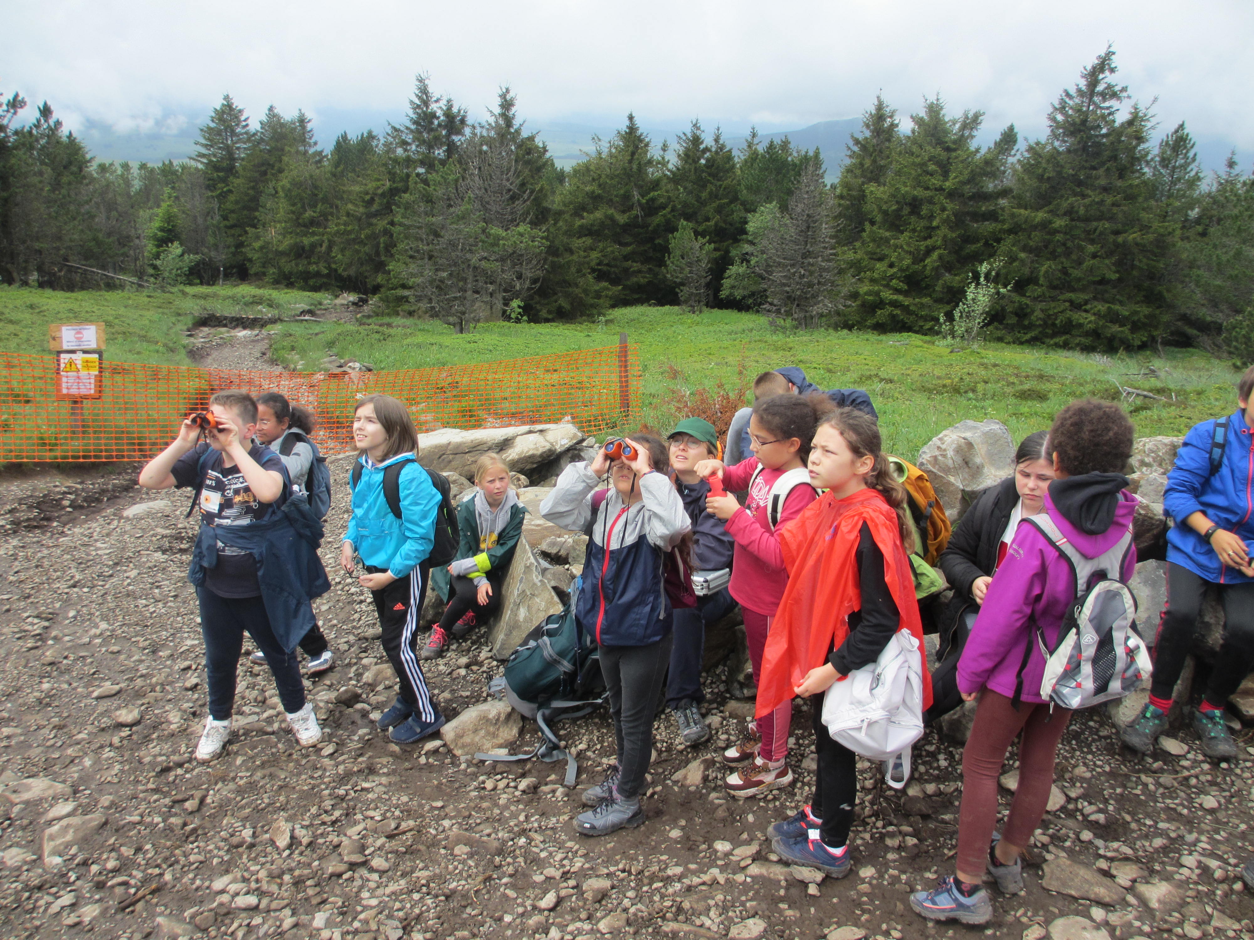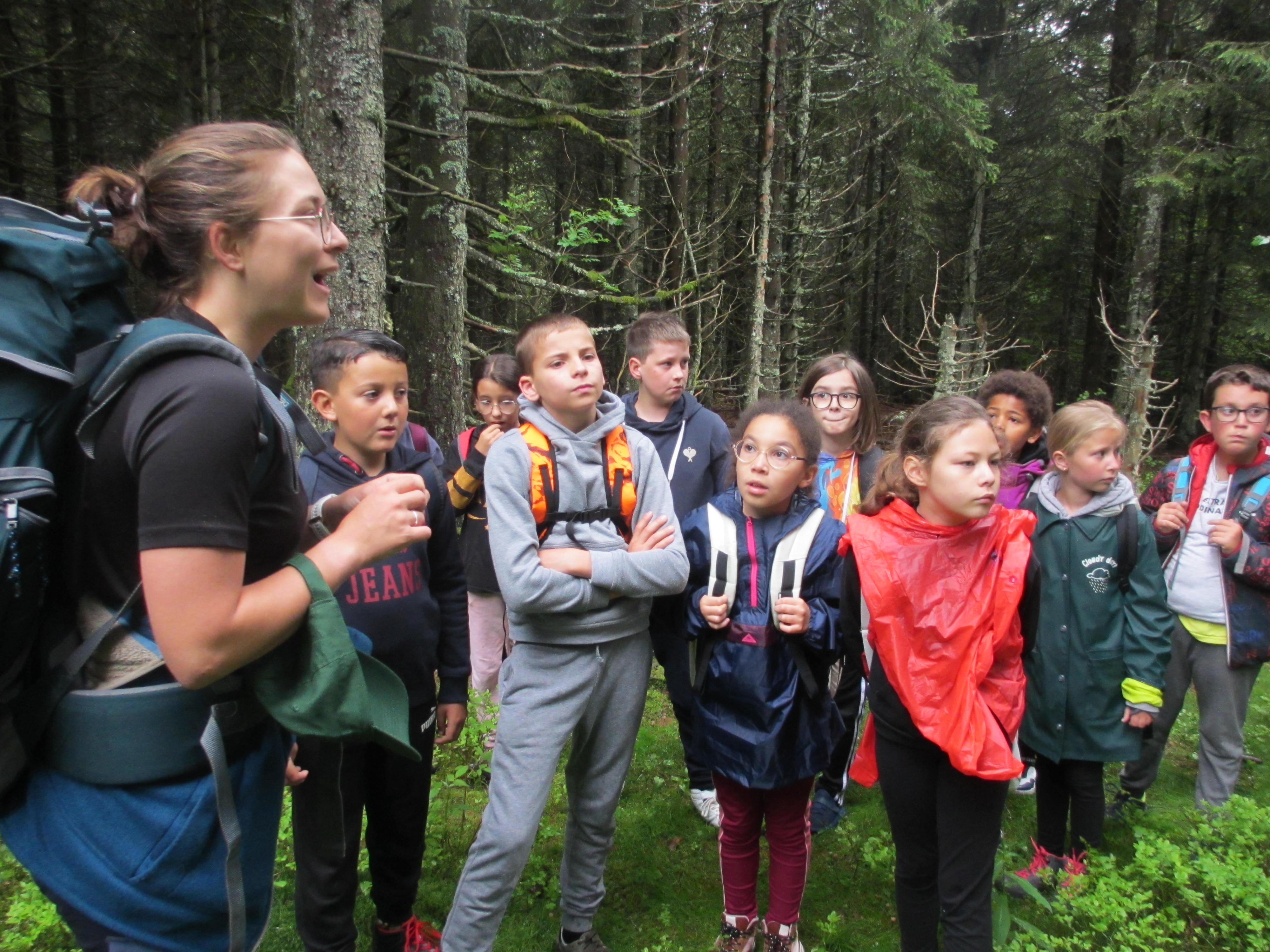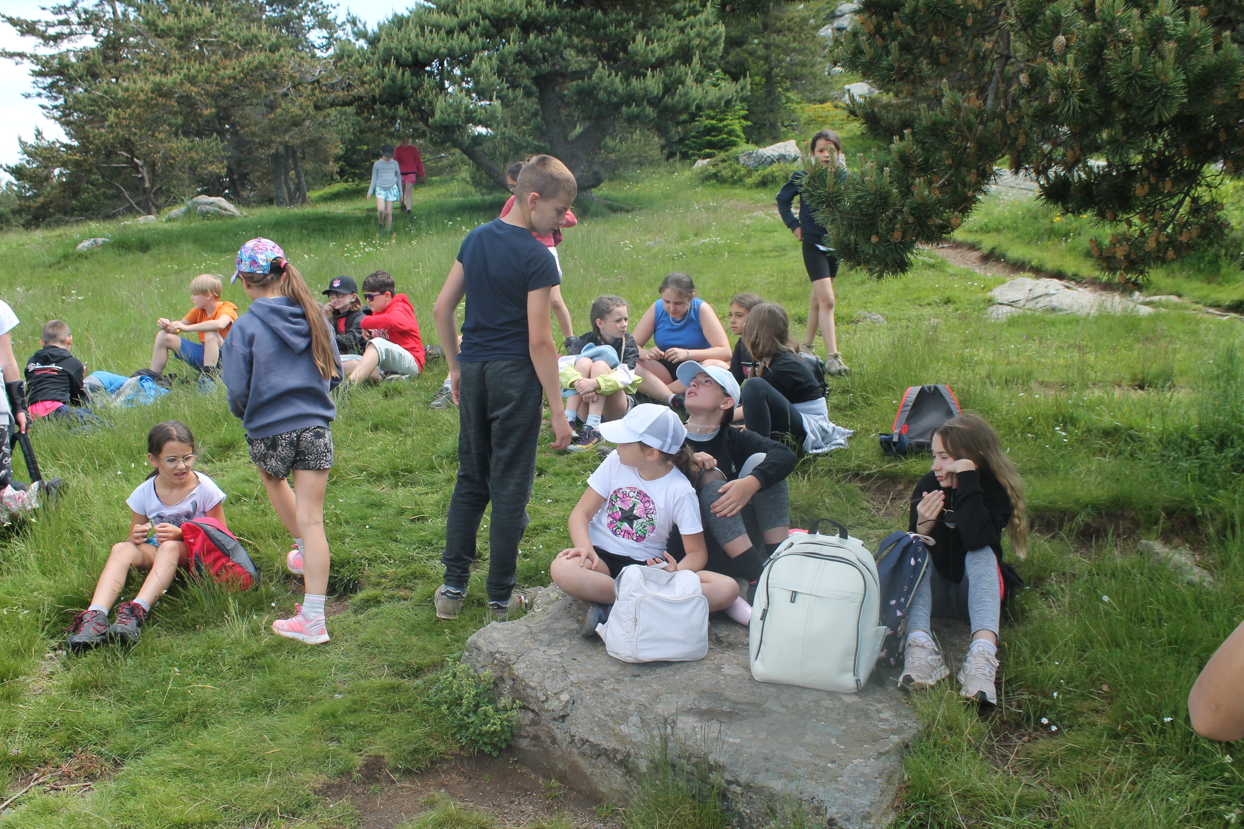 En sortant du bus, nous avons attaqué à gravir le Mont Gerbier de Jonc. En montant, nous nous sommes arrêtés quelques fois pour regarder le paysage puis, une fois arrivés au sommet, Hervé notre guide, nous a parlé du type de ce volcan et de ce qui l'entoure. A la fin, nous sommes redescendus puis nous avons pique-niqué au pied du volcan. Nous avons repris le bus pour aller au volcan du Cherche Muse où nous avons cassé des pierres (bombes volcaniques), que nous avons ramassées à l'aide d'Hervé et de Marylou une autre guide du chalet. En reprenant le bus, nous avons pris la direction du Lac d'Issarlés où nous avons parlé du volcan qu'il y avait dessous avec les deux guides. Nous avons goutté puis nous avons joué sur le sable. Nous avons repris le bus en direction du chalet où nous avons pris une douche, le soir nous avons mangé : une soupe de légumes, une poêlée forestière, de la pizza et une mousse au chocolat.