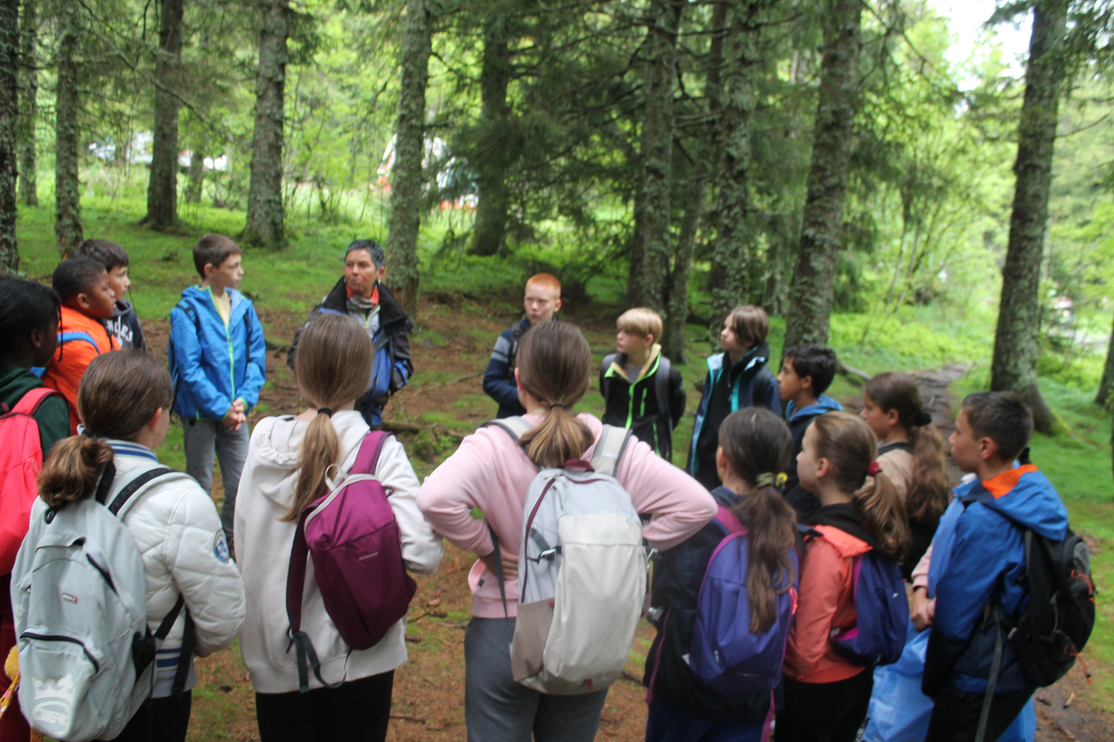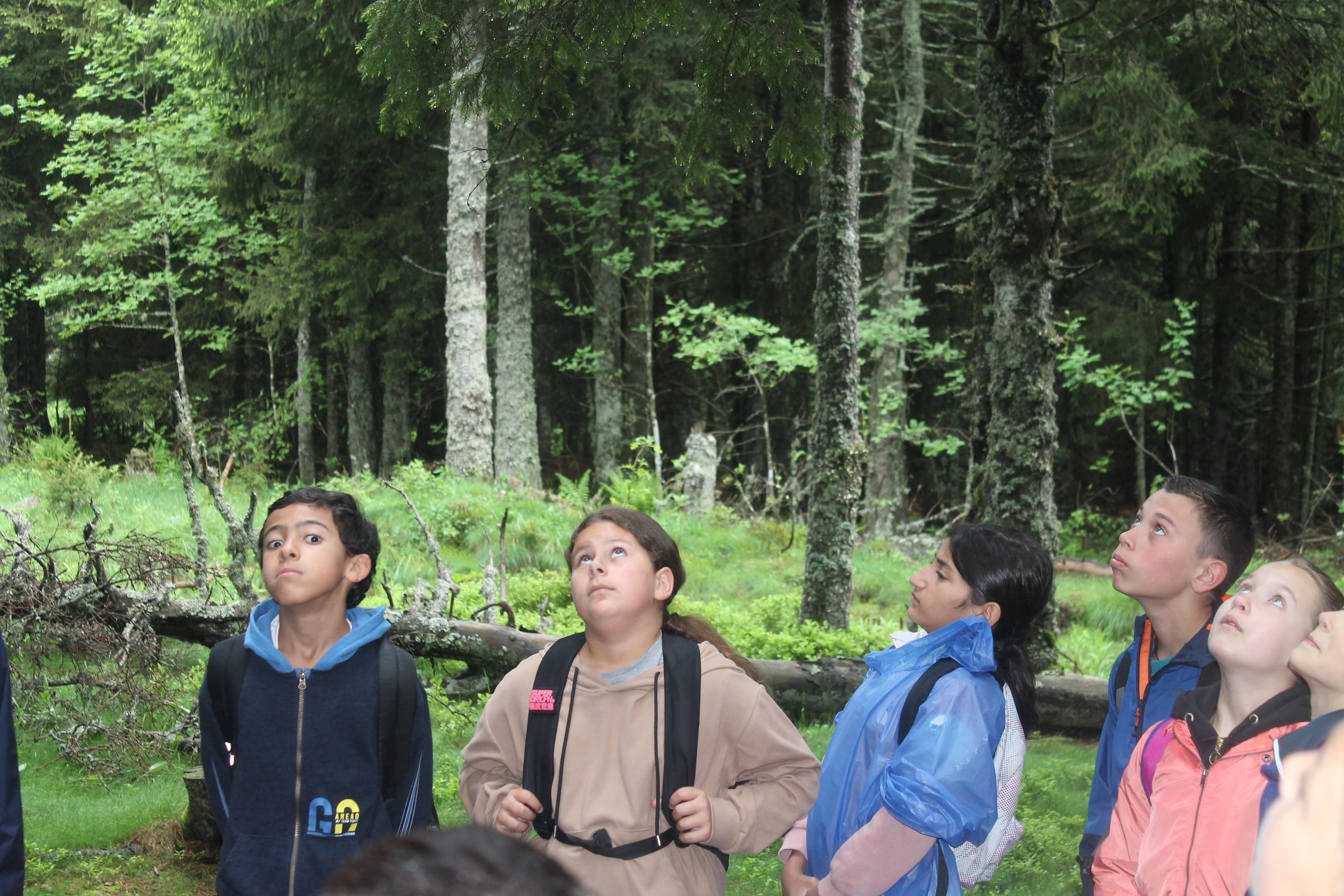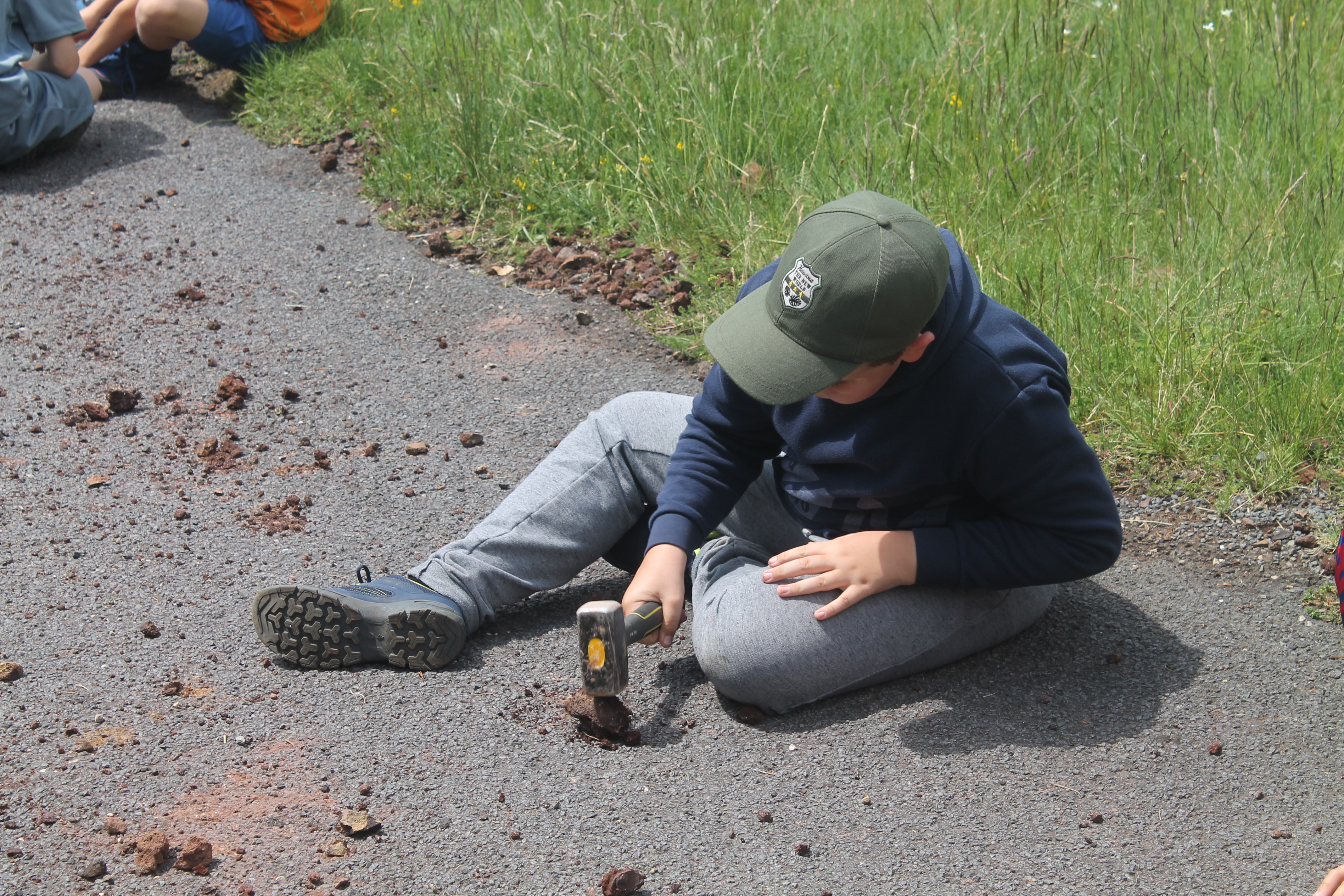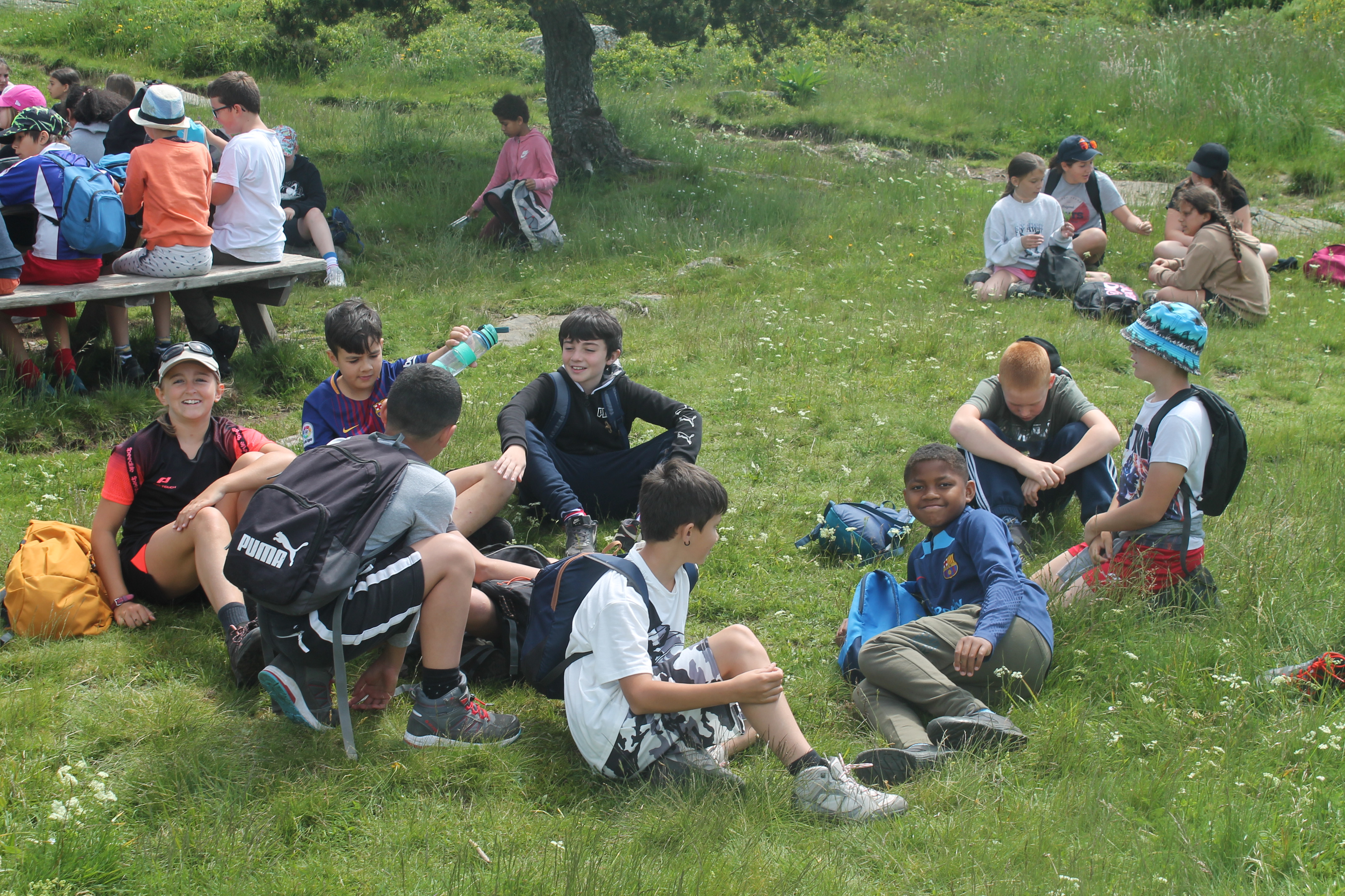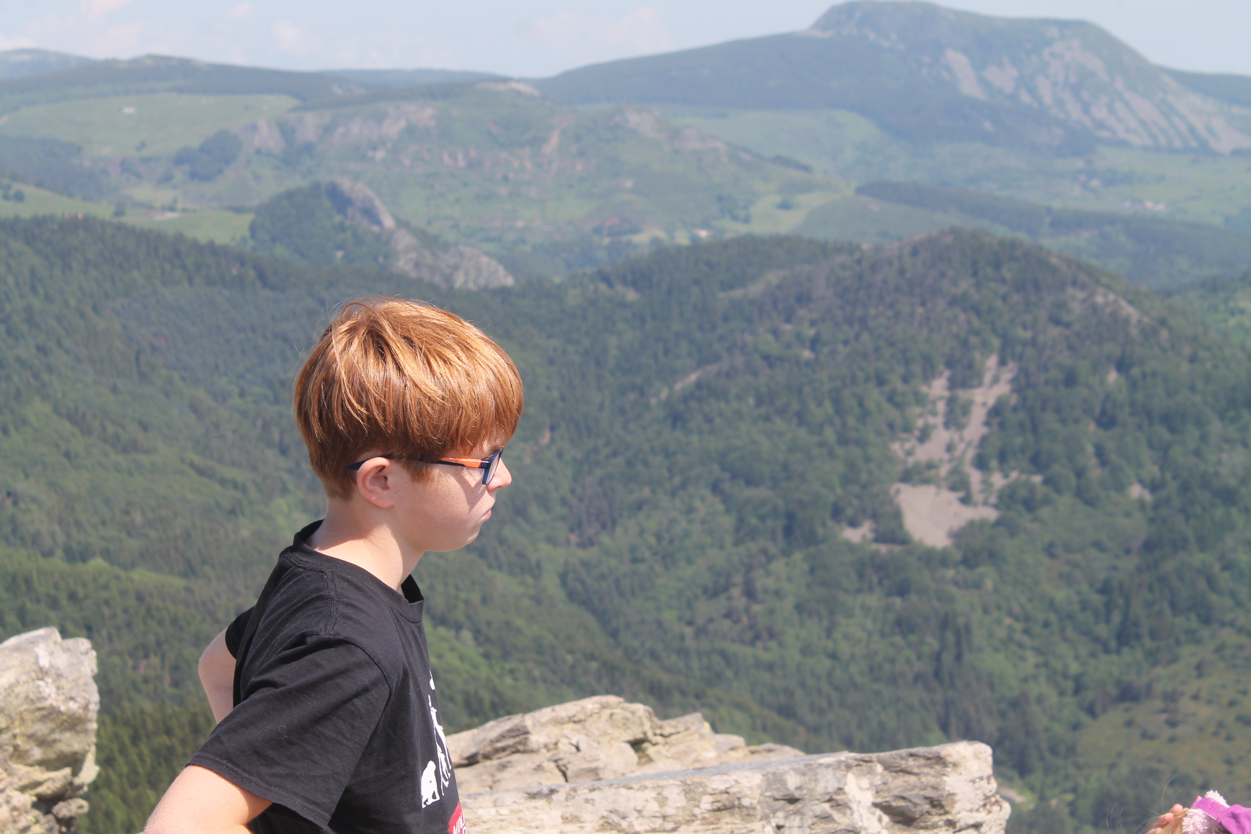 En sortant du bus, nous avons attaqué à gravir le Mont Gerbier de Jonc. En montant, nous nous sommes arrêtés quelques fois pour regarder le paysage puis, une fois arrivés au sommet, Hervé notre guide, nous a parlé du type de ce volcan et de ce qui l'entoure. A la fin, nous sommes redescendus puis nous avons pique-niqué au pied du volcan. Nous avons repris le bus pour aller au volcan du Cherche Muse où nous avons cassé des pierres (bombes volcaniques), que nous avons ramassées à l'aide d'Hervé et de Marylou une autre guide du chalet. En reprenant le bus, nous avons pris la direction du Lac d'Issarlés où nous avons parlé du volcan qu'il y avait dessous avec les deux guides. Nous avons goutté puis nous avons joué sur le sable. Nous avons repris le bus en direction du chalet où nous avons pris une douche, le soir nous avons mangé : une soupe de légumes, une poêlée forestière, de la pizza et une mousse au chocolat.