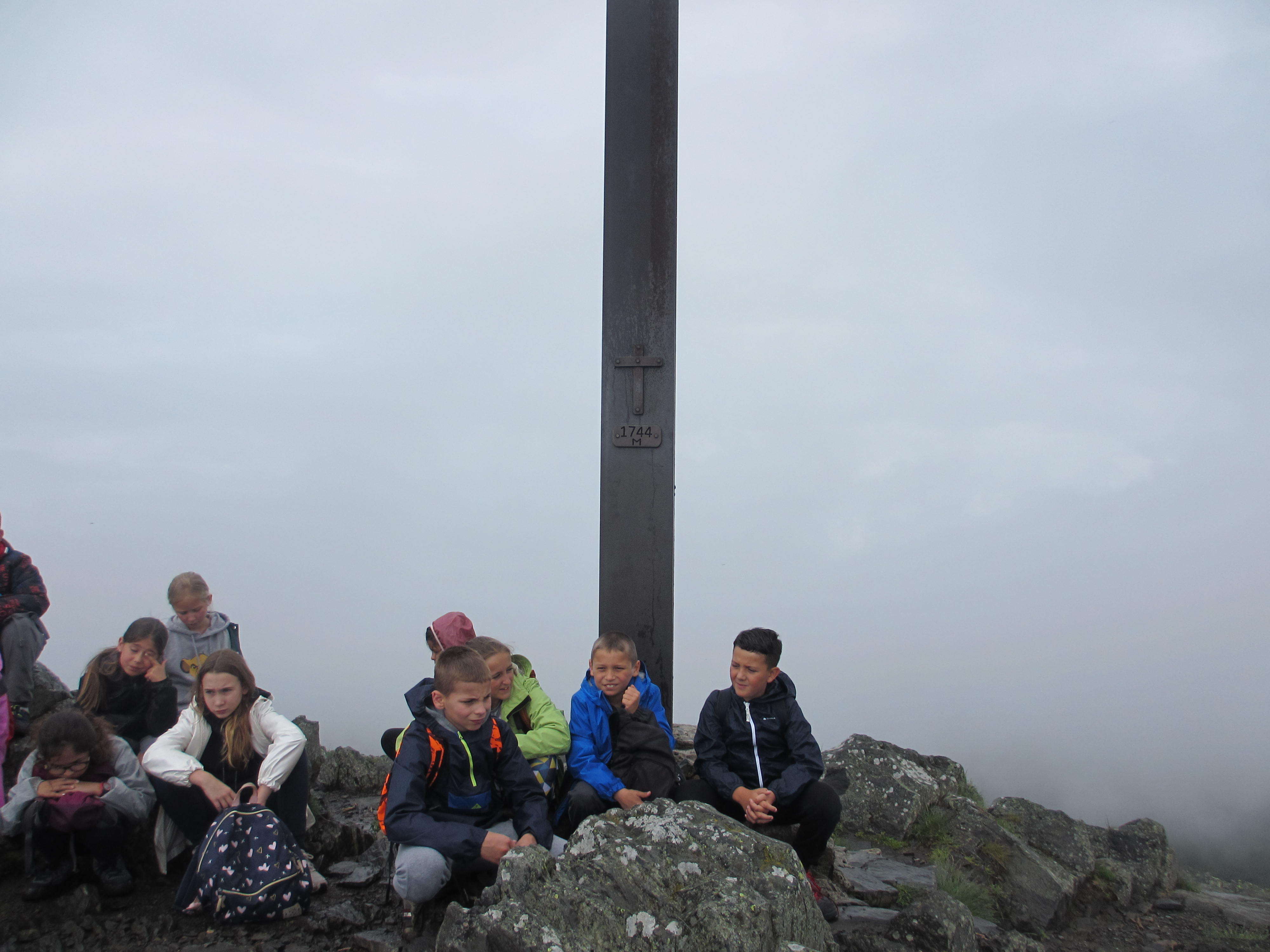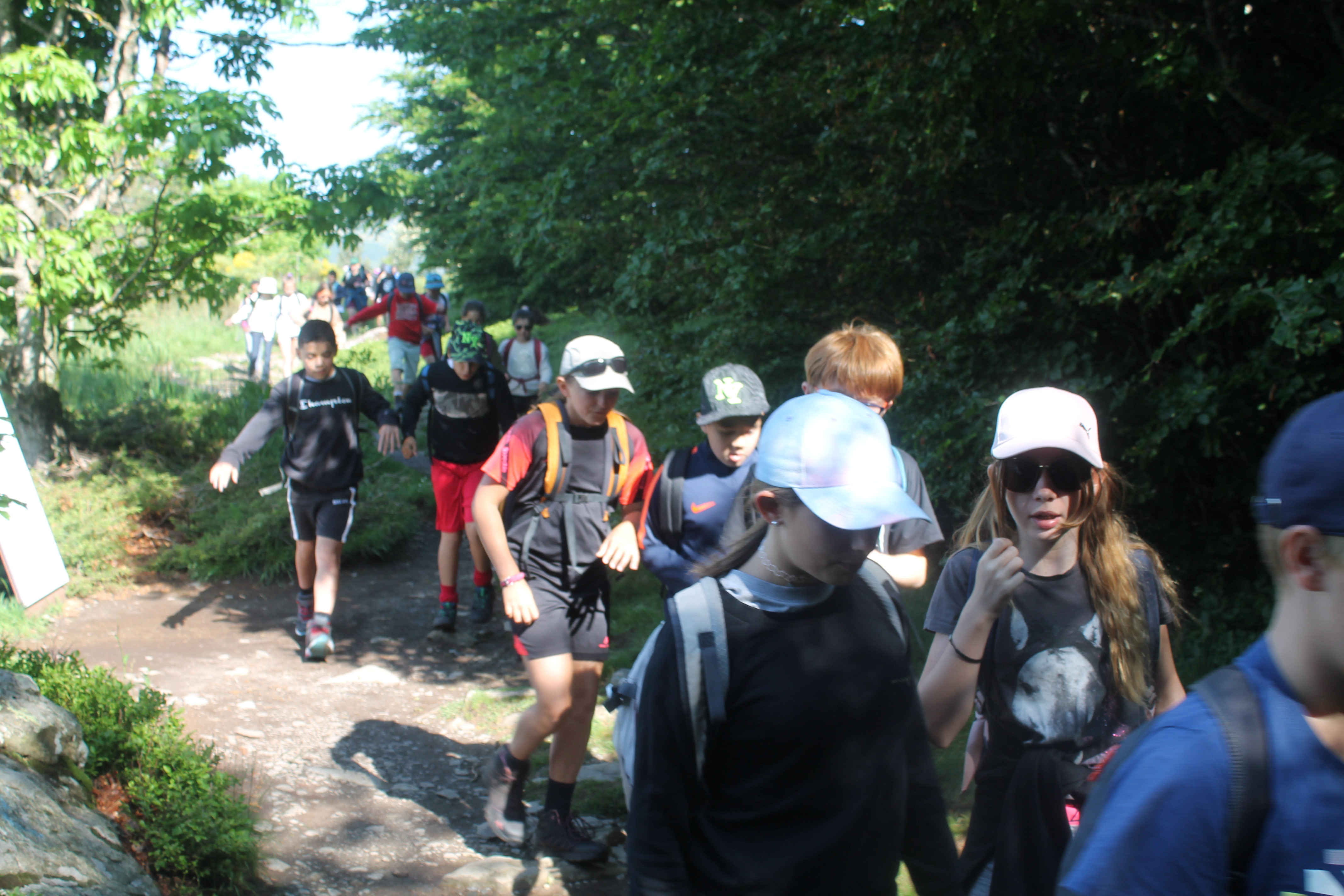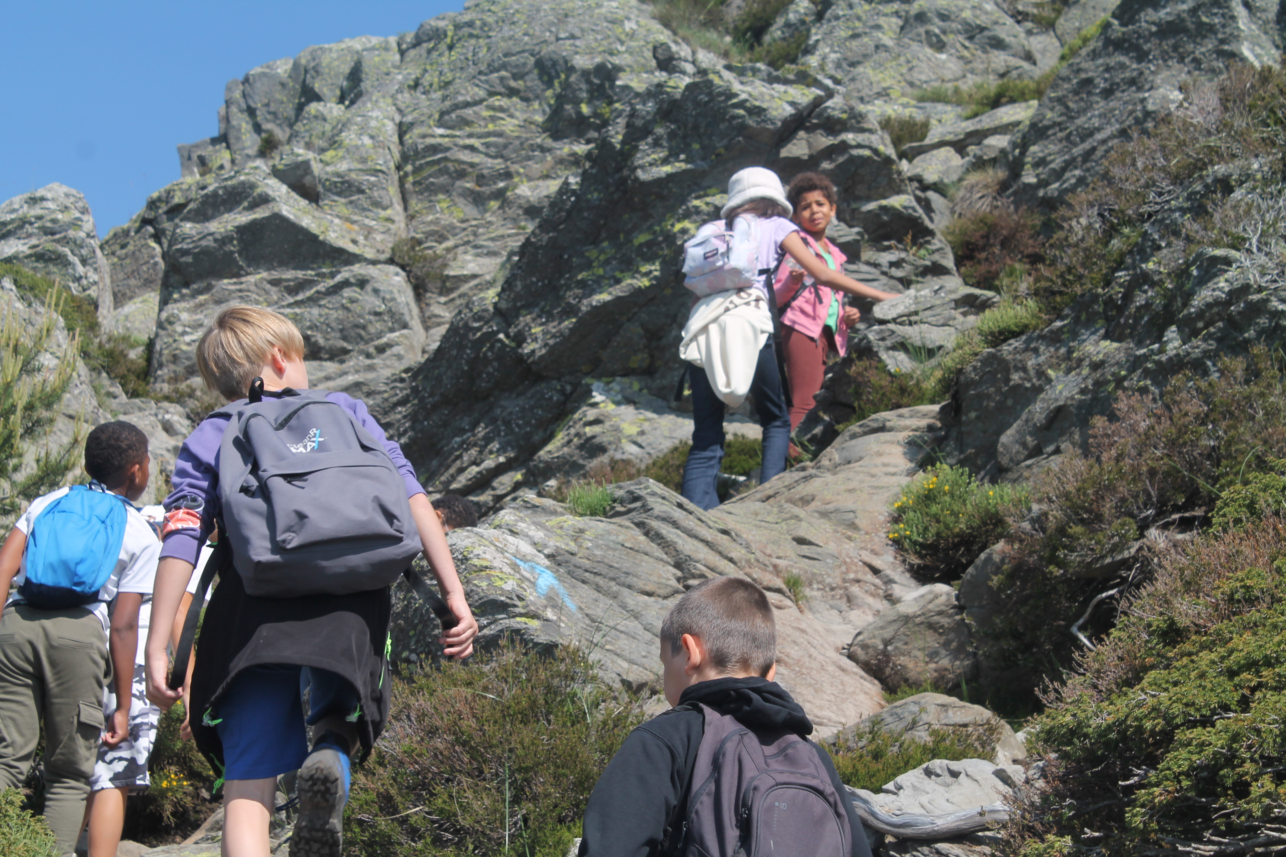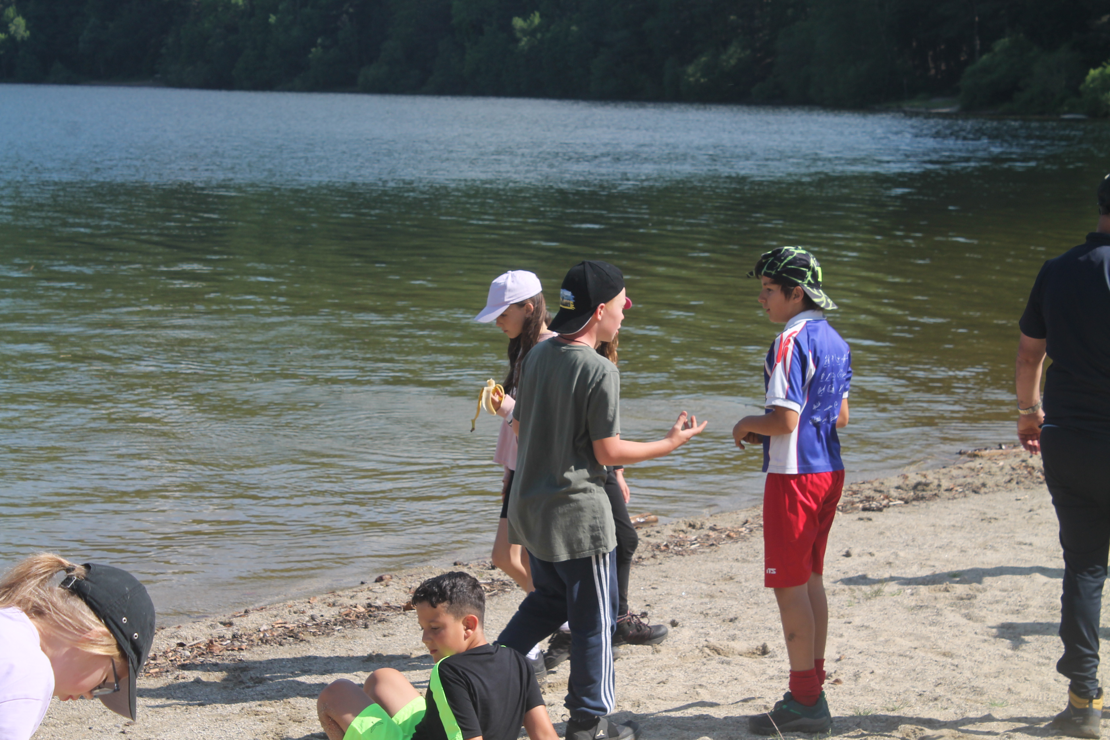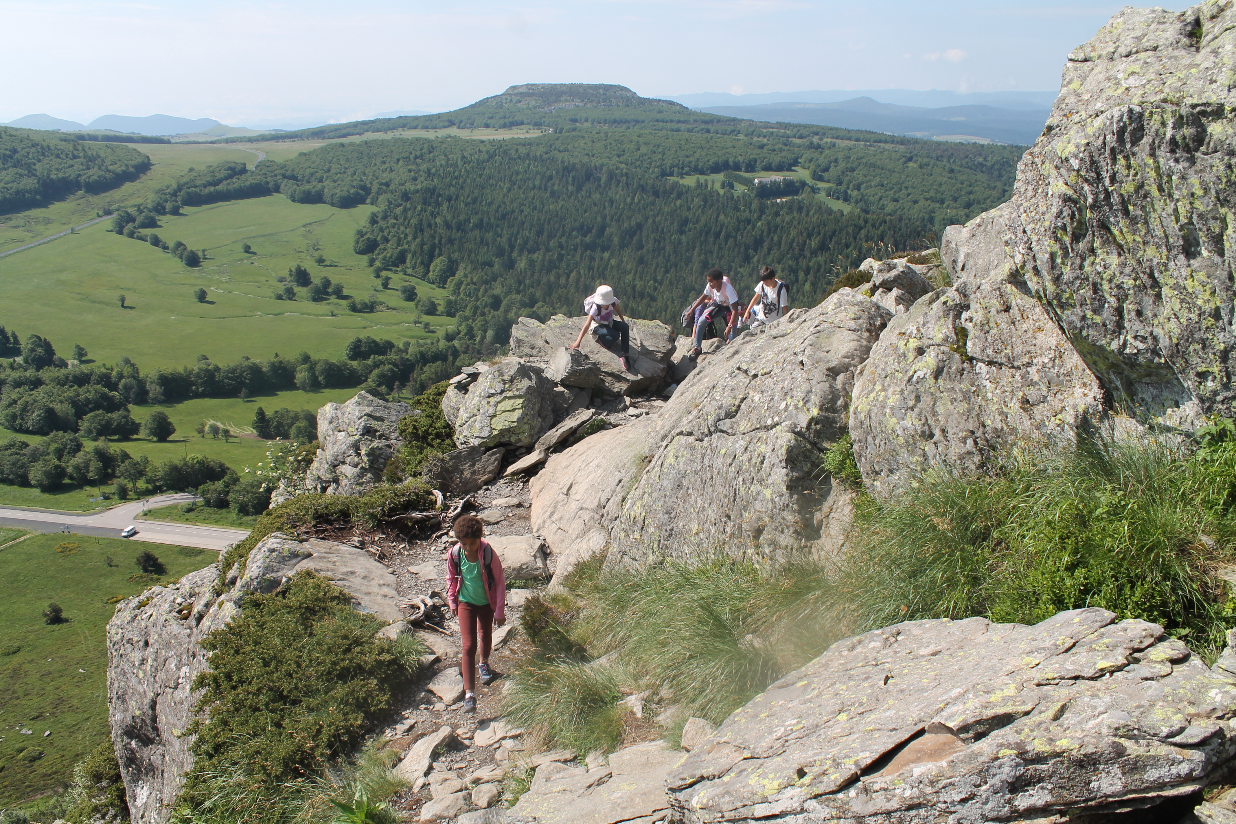 En sortant du bus, nous avons attaqué à gravir le Mont Gerbier de Jonc. En montant, nous nous sommes arrêtés quelques fois pour regarder le paysage puis, une fois arrivés au sommet, Hervé notre guide, nous a parlé du type de ce volcan et de ce qui l'entoure. A la fin, nous sommes redescendus puis nous avons pique-niqué au pied du volcan. Nous avons repris le bus pour aller au volcan du Cherche Muse où nous avons cassé des pierres (bombes volcaniques), que nous avons ramassées à l'aide d'Hervé et de Marylou une autre guide du chalet. En reprenant le bus, nous avons pris la direction du Lac d'Issarlés où nous avons parlé du volcan qu'il y avait dessous avec les deux guides. Nous avons goutté puis nous avons joué sur le sable. Nous avons repris le bus en direction du chalet où nous avons pris une douche, le soir nous avons mangé : une soupe de légumes, une poêlée forestière, de la pizza et une mousse au chocolat.