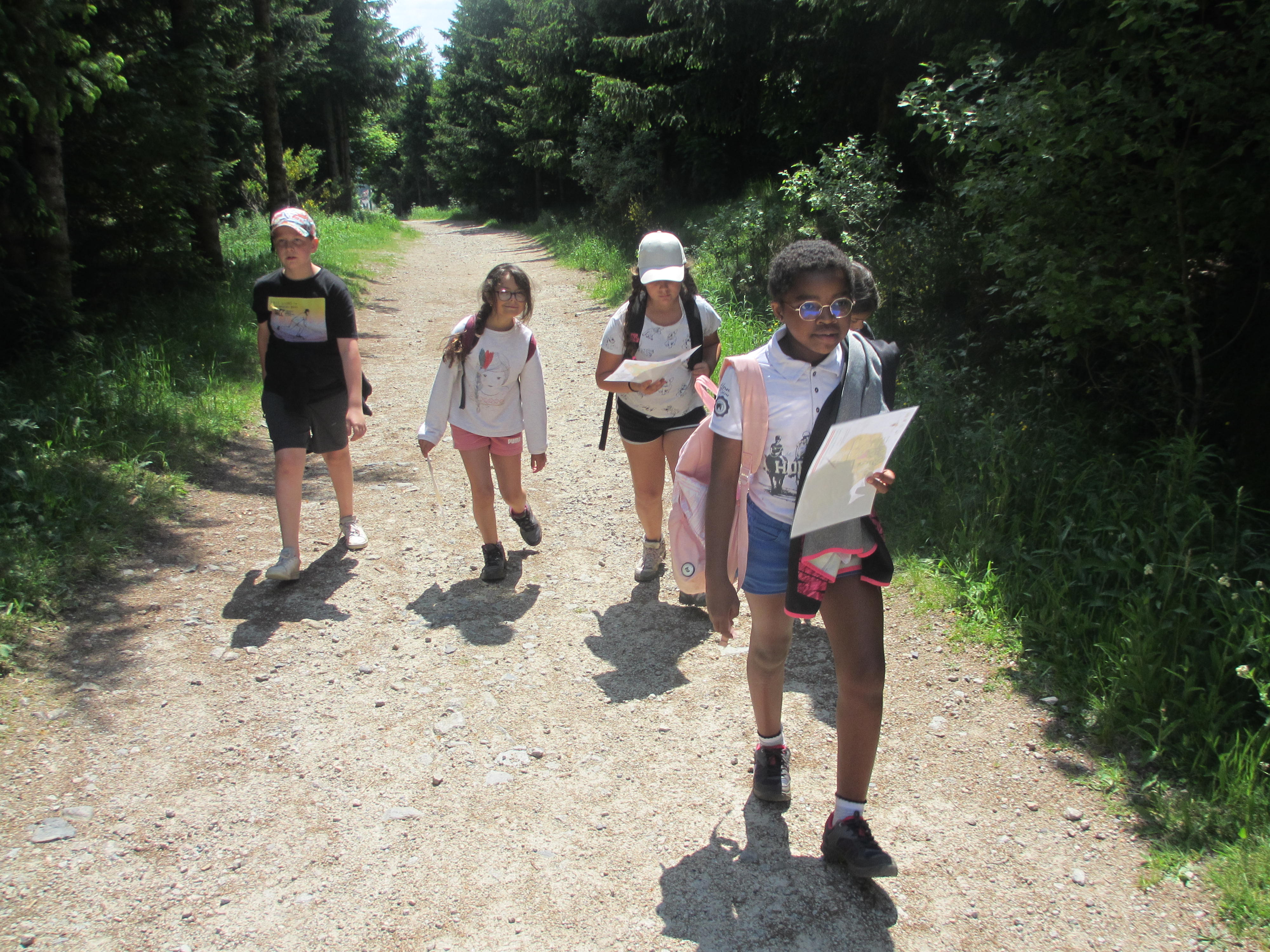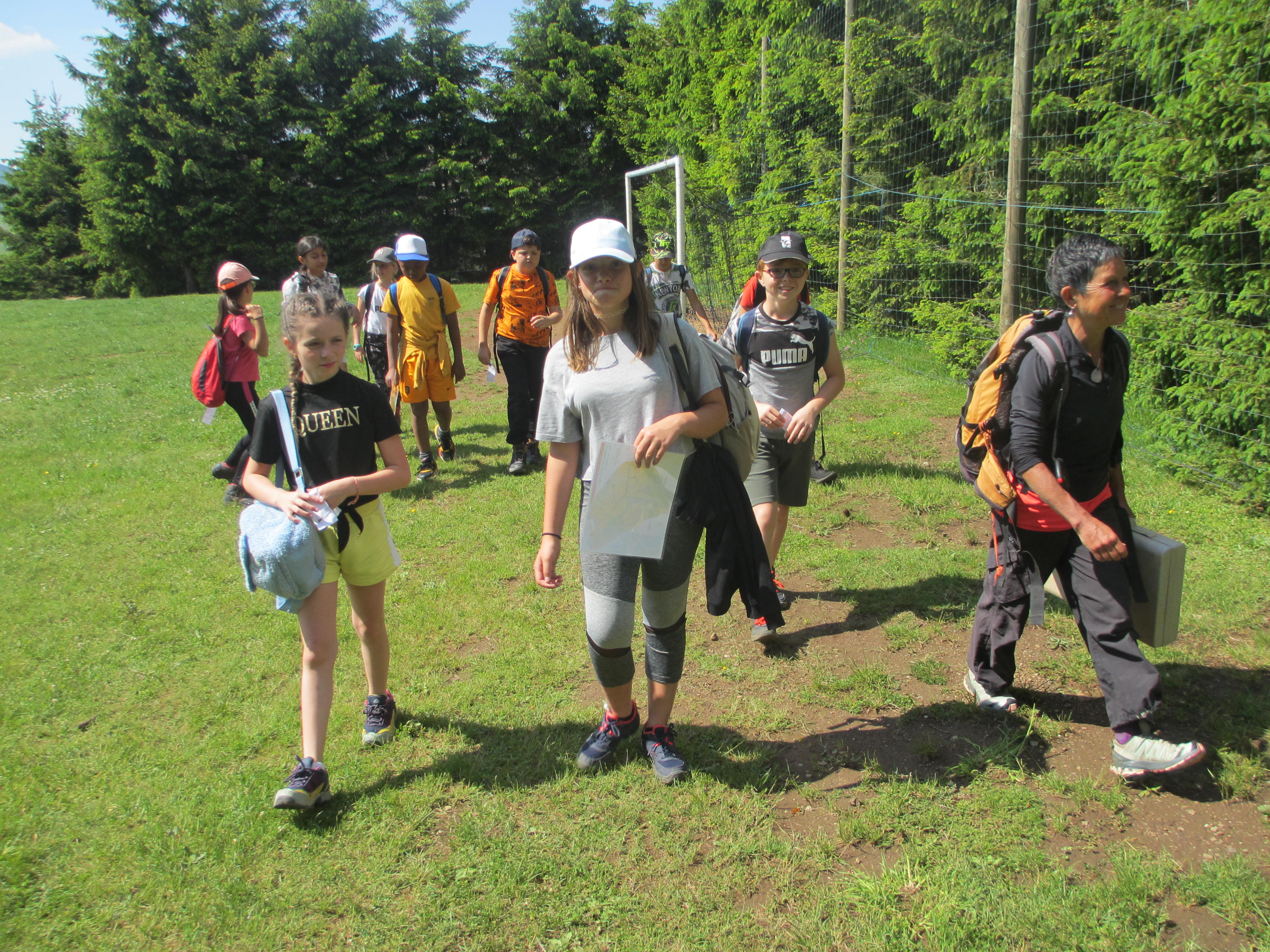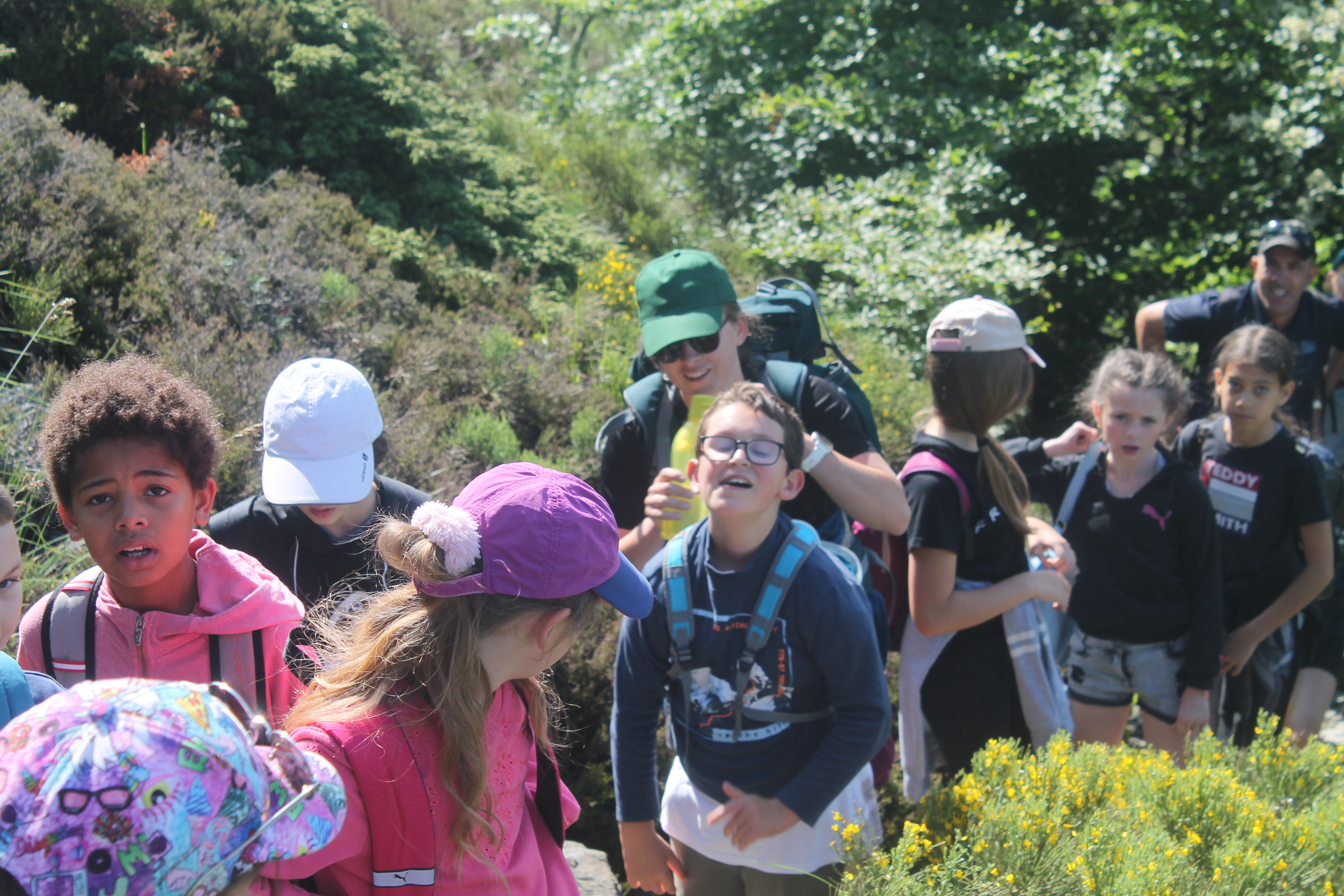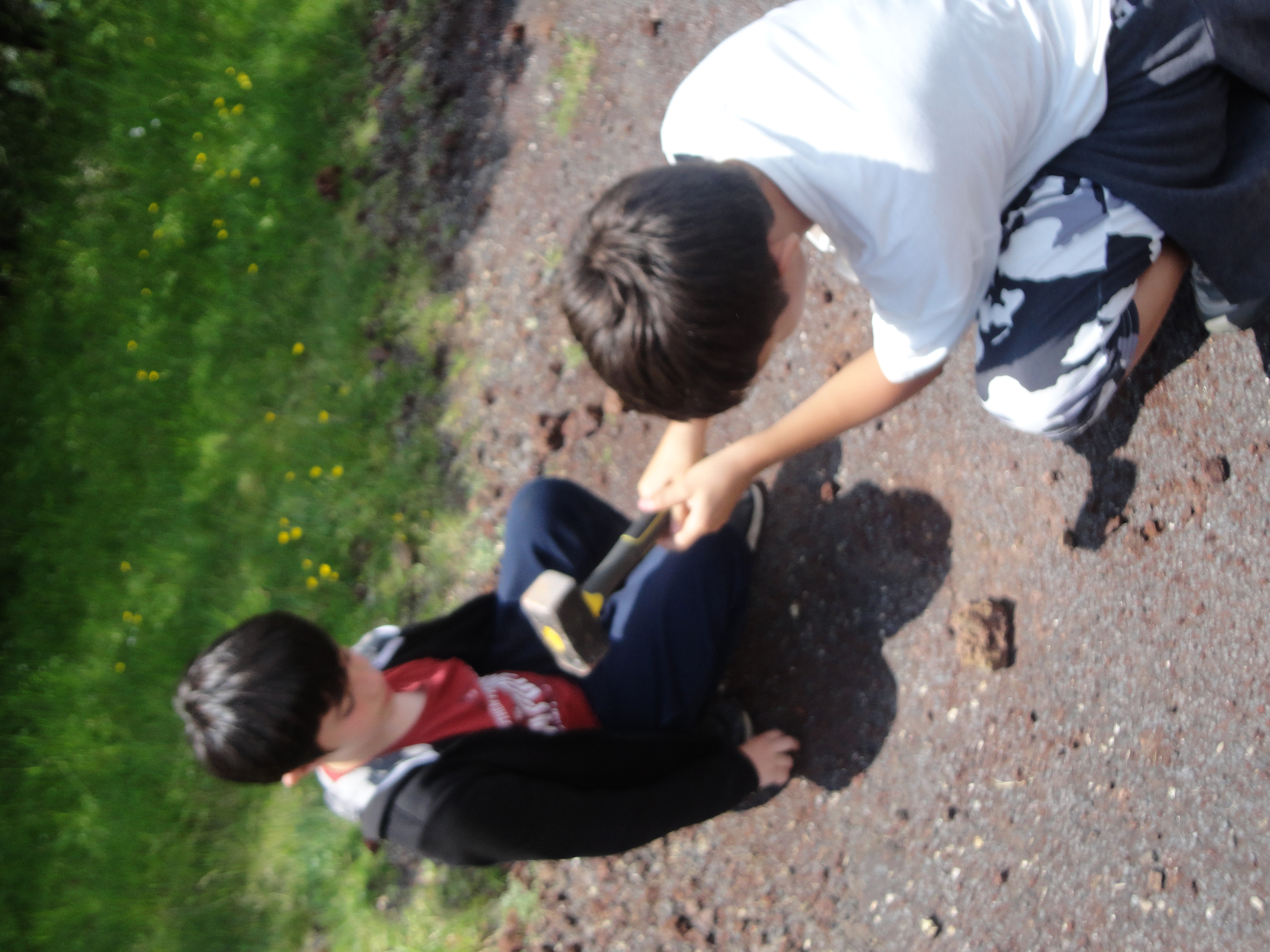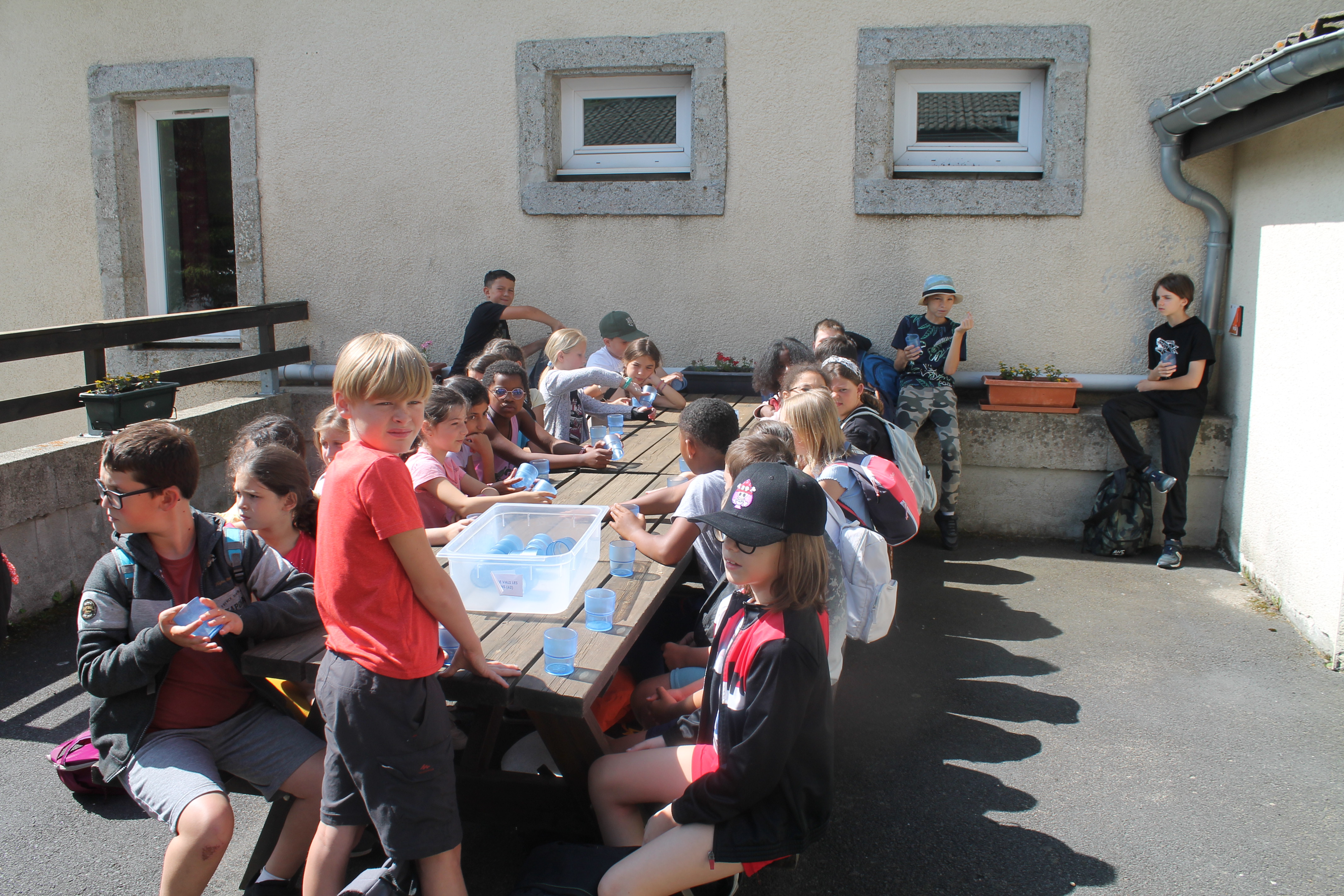 En sortant du bus, nous avons attaqué à gravir le Mont Gerbier de Jonc. En montant, nous nous sommes arrêtés quelques fois pour regarder le paysage puis, une fois arrivés au sommet, Hervé notre guide, nous a parlé du type de ce volcan et de ce qui l'entoure. A la fin, nous sommes redescendus puis nous avons pique-niqué au pied du volcan. Nous avons repris le bus pour aller au volcan du Cherche Muse où nous avons cassé des pierres (bombes volcaniques), que nous avons ramassées à l'aide d'Hervé et de Marylou une autre guide du chalet. En reprenant le bus, nous avons pris la direction du Lac d'Issarlés où nous avons parlé du volcan qu'il y avait dessous avec les deux guides. Nous avons goutté puis nous avons joué sur le sable. Nous avons repris le bus en direction du chalet où nous avons pris une douche, le soir nous avons mangé : une soupe de légumes, une poêlée forestière, de la pizza et une mousse au chocolat.