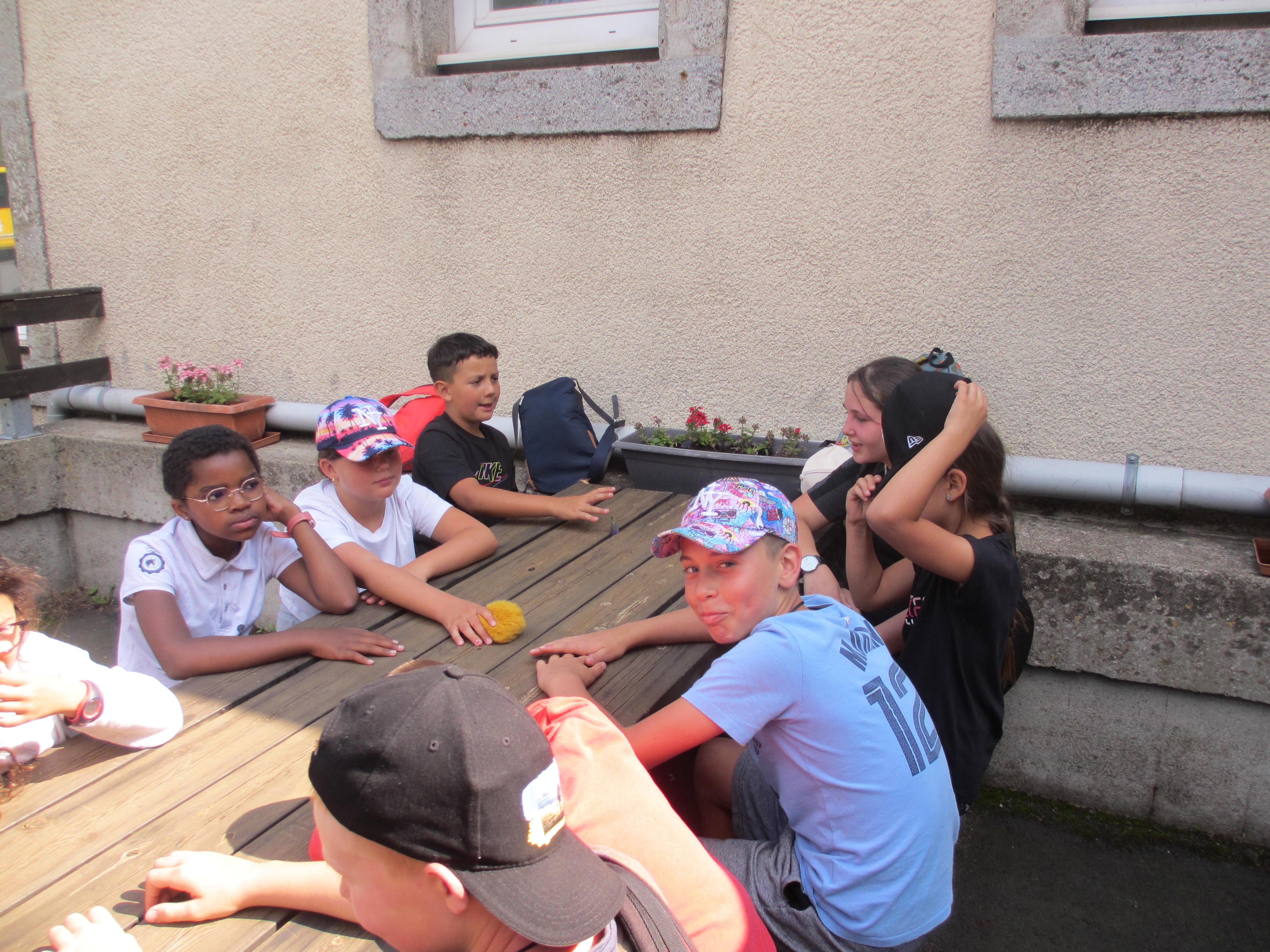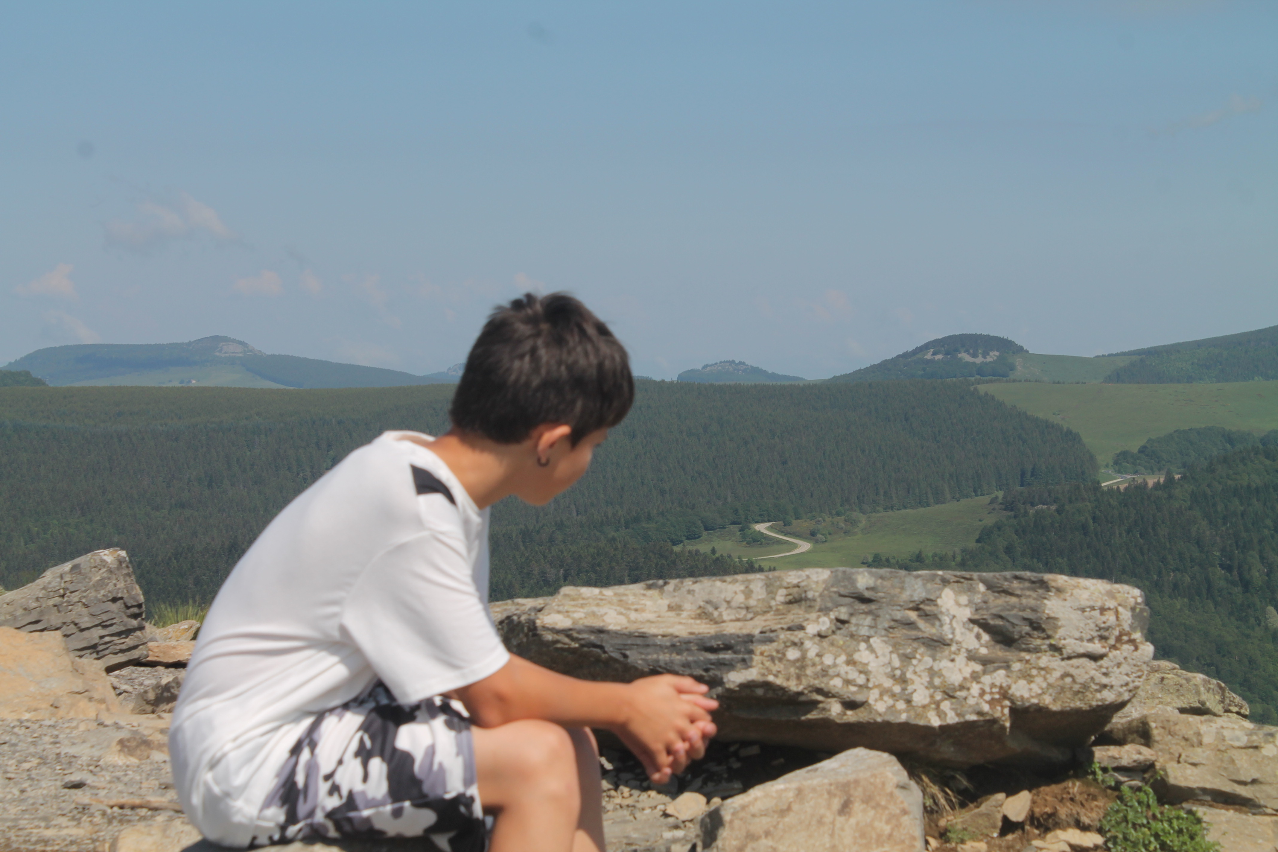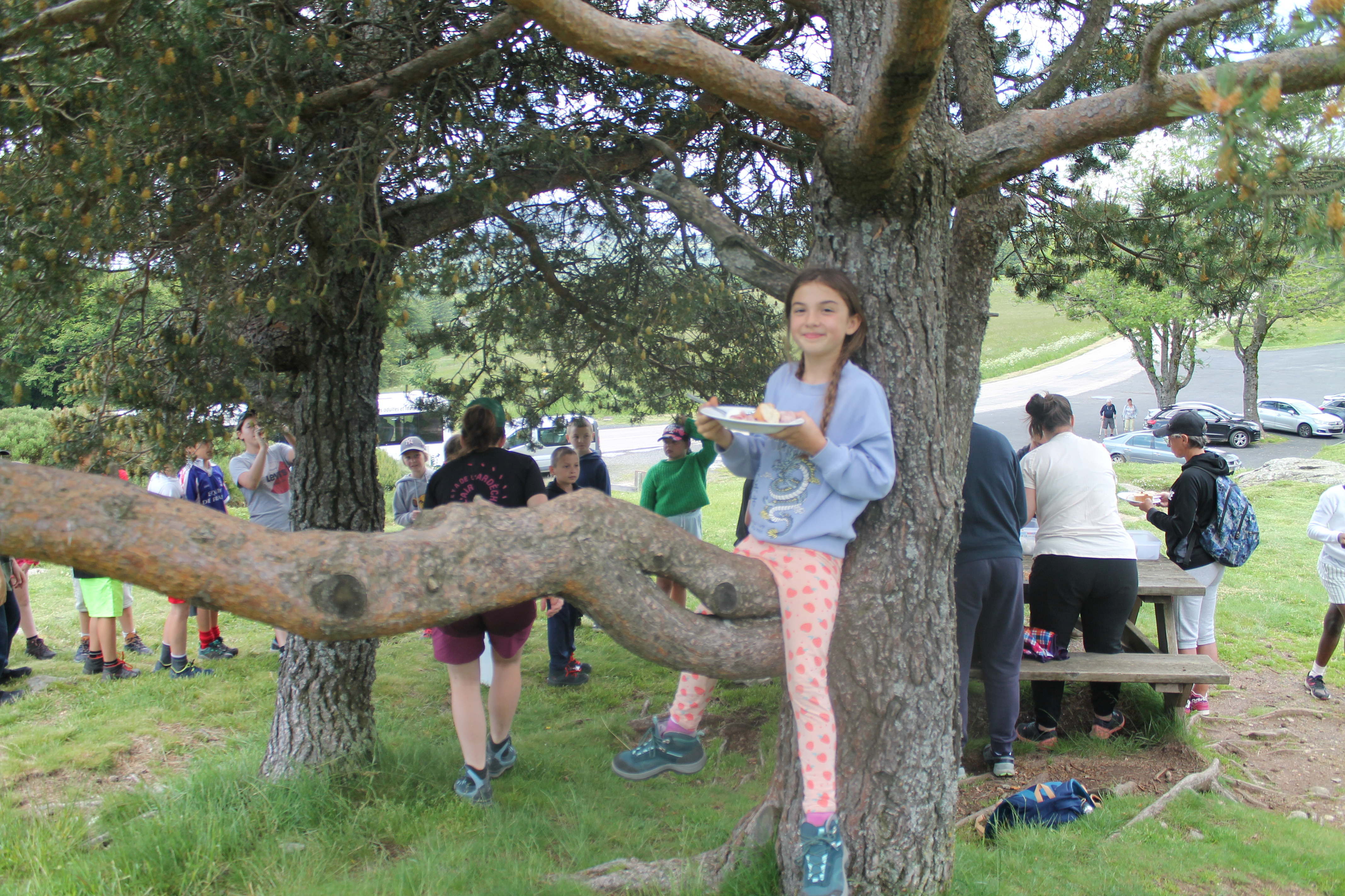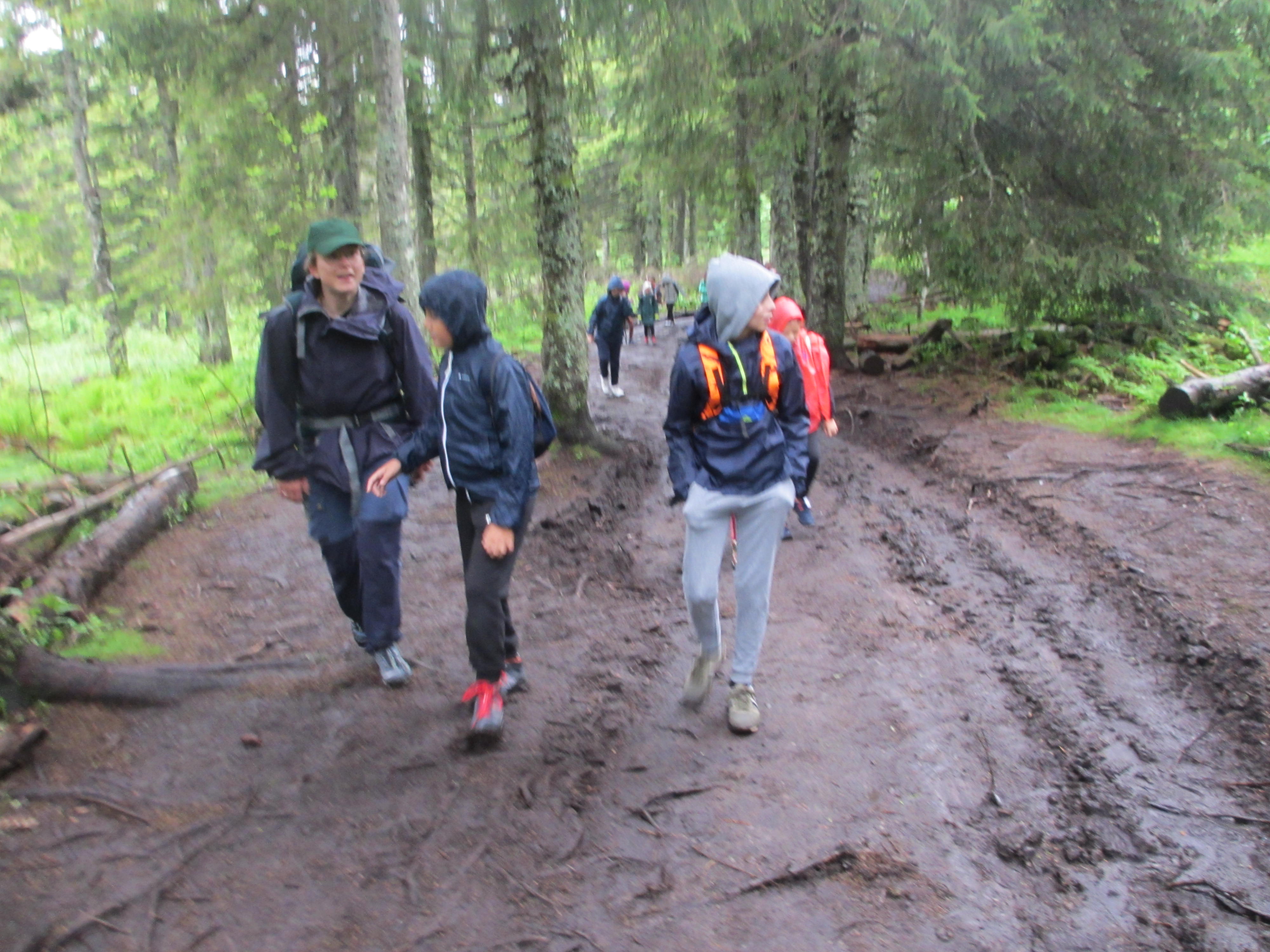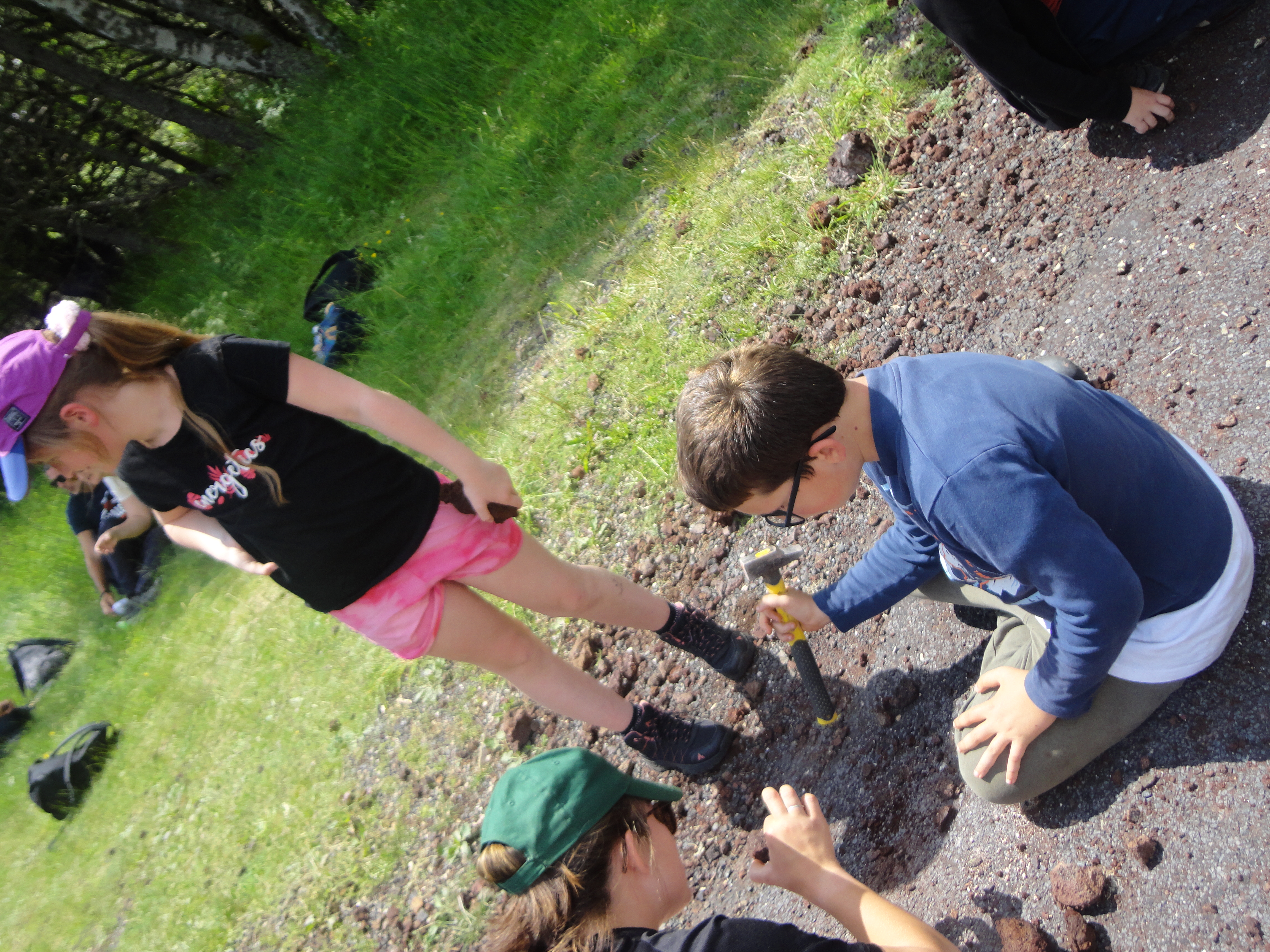 En sortant du bus, nous avons attaqué à gravir le Mont Gerbier de Jonc. En montant, nous nous sommes arrêtés quelques fois pour regarder le paysage puis, une fois arrivés au sommet, Hervé notre guide, nous a parlé du type de ce volcan et de ce qui l'entoure. A la fin, nous sommes redescendus puis nous avons pique-niqué au pied du volcan. Nous avons repris le bus pour aller au volcan du Cherche Muse où nous avons cassé des pierres (bombes volcaniques), que nous avons ramassées à l'aide d'Hervé et de Marylou une autre guide du chalet. En reprenant le bus, nous avons pris la direction du Lac d'Issarlés où nous avons parlé du volcan qu'il y avait dessous avec les deux guides. Nous avons goutté puis nous avons joué sur le sable. Nous avons repris le bus en direction du chalet où nous avons pris une douche, le soir nous avons mangé : une soupe de légumes, une poêlée forestière, de la pizza et une mousse au chocolat.
