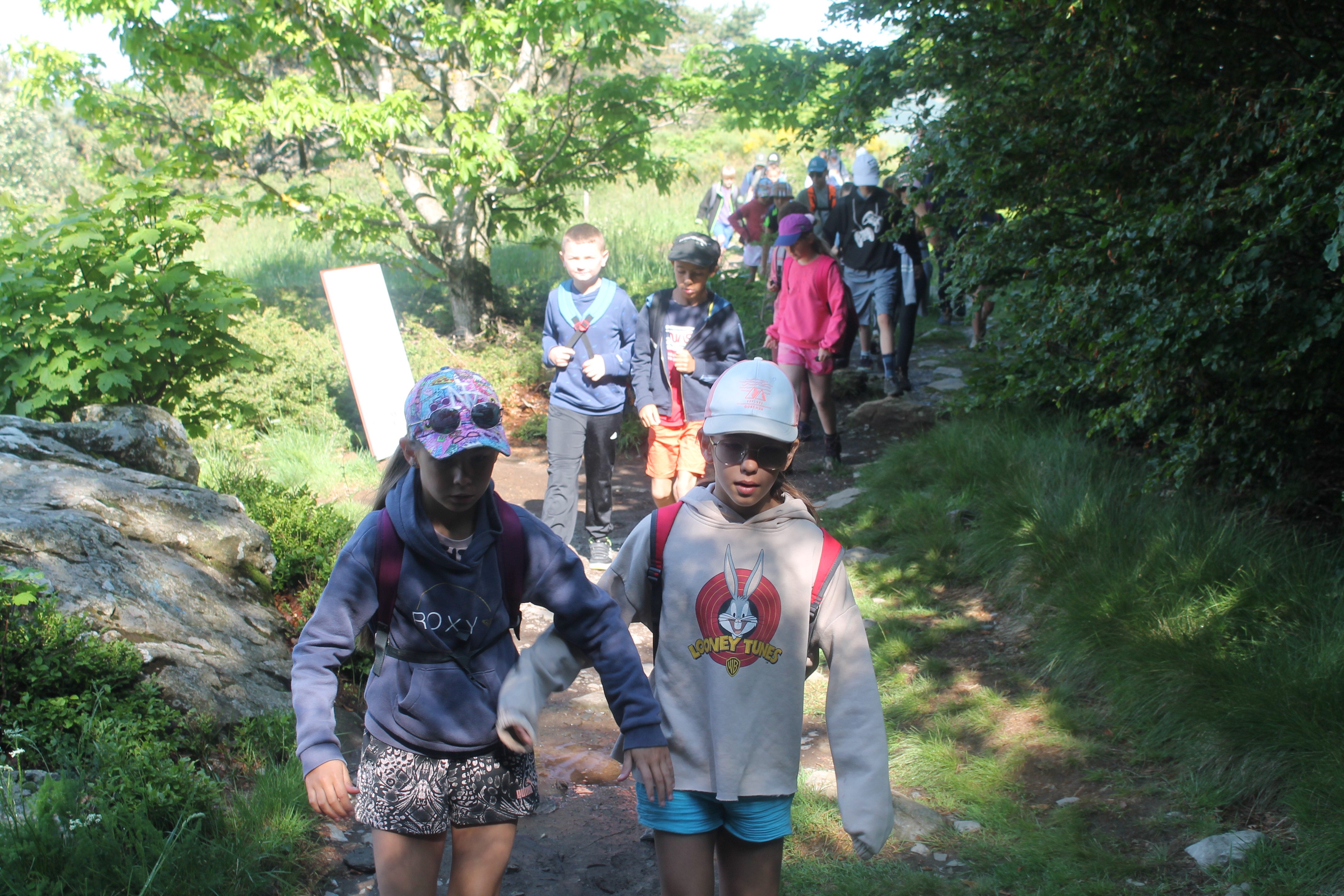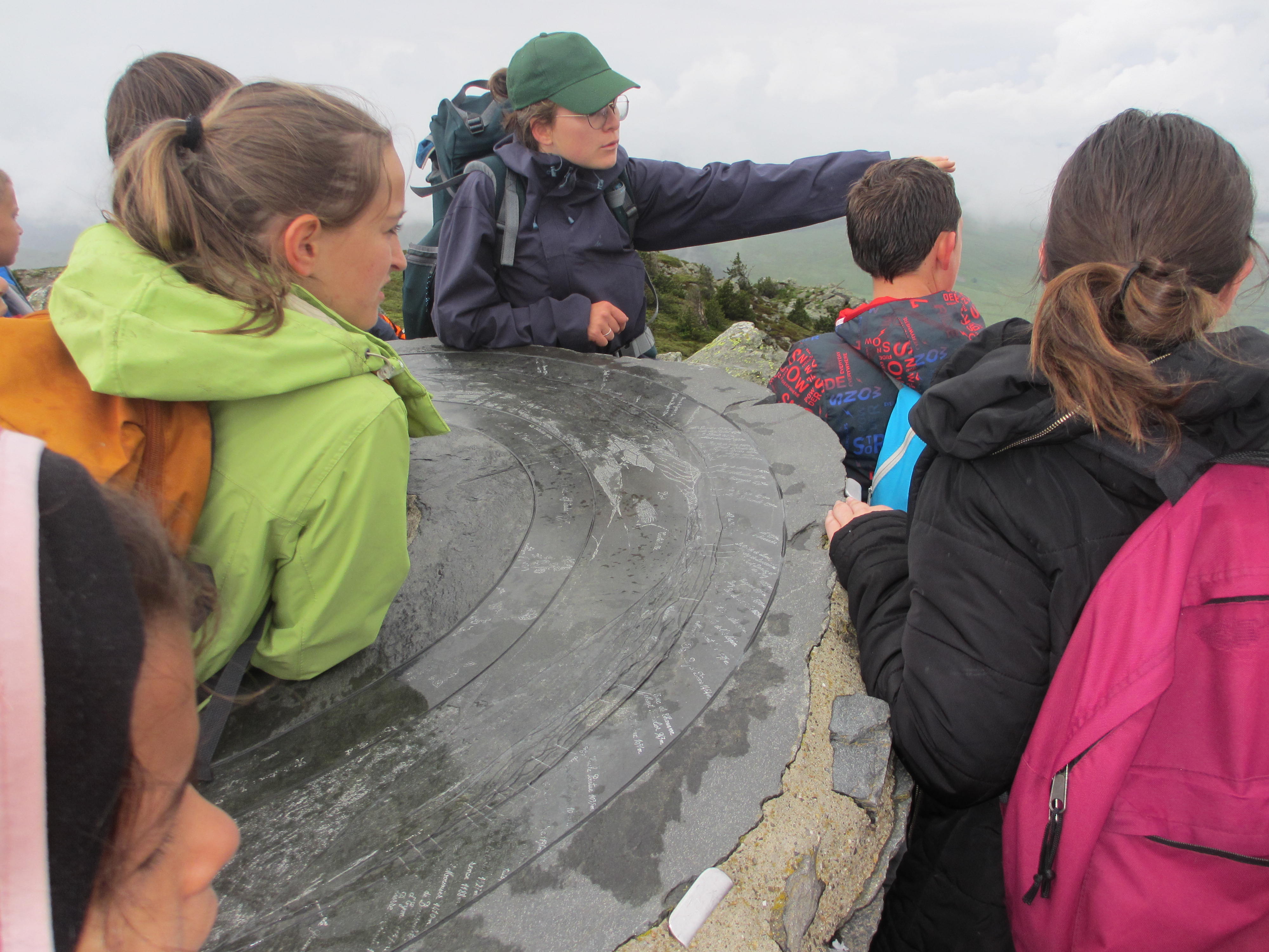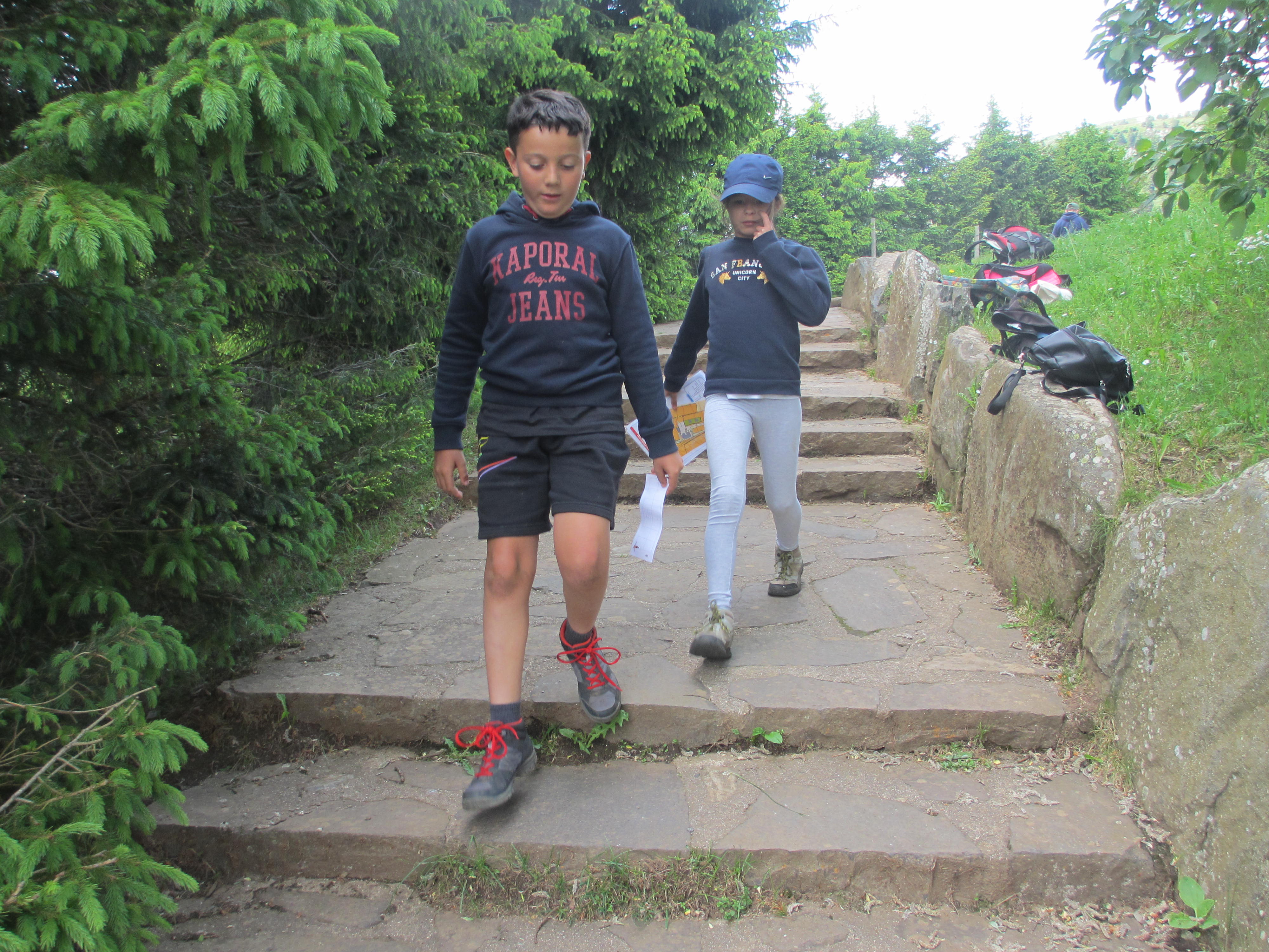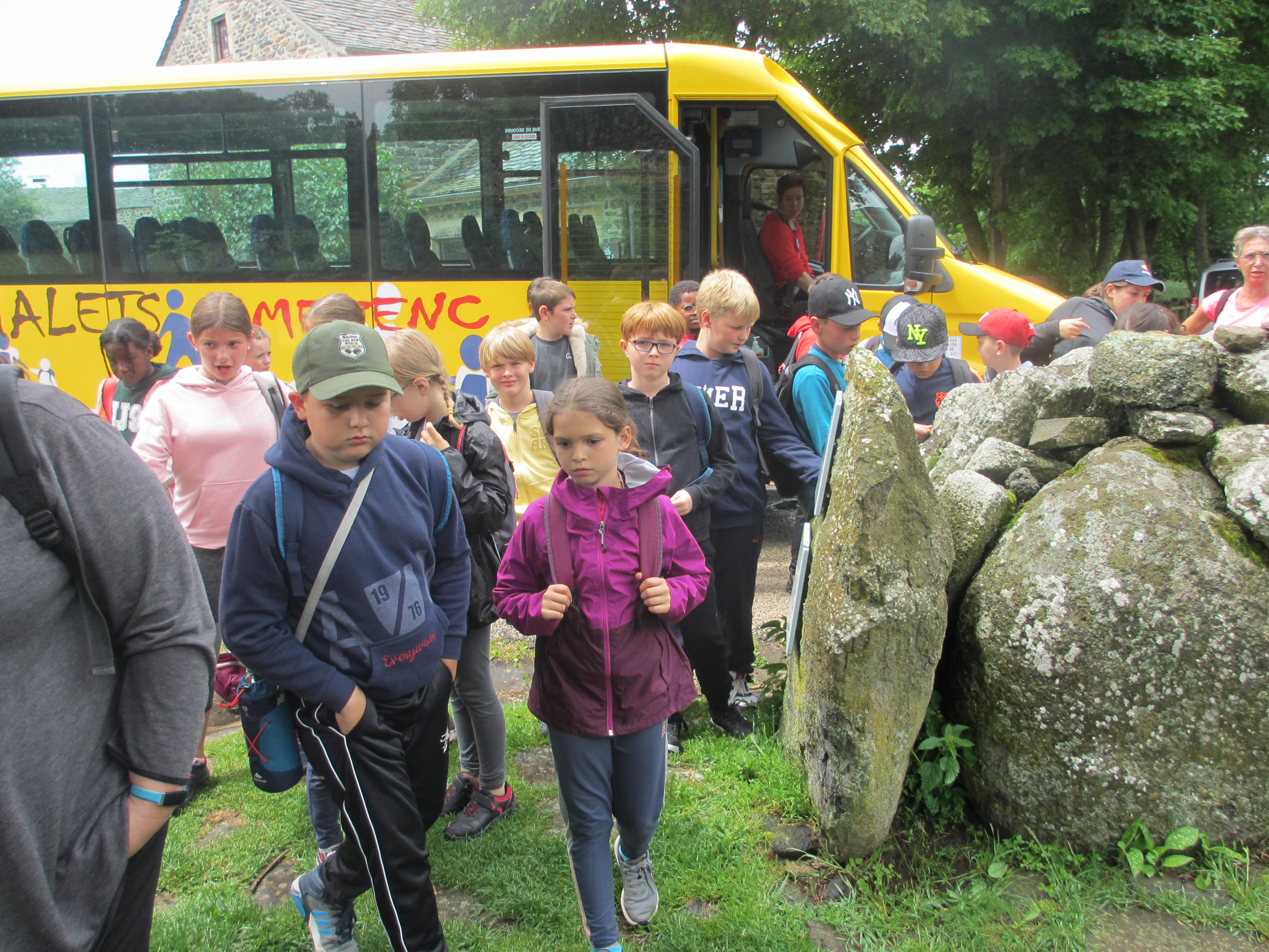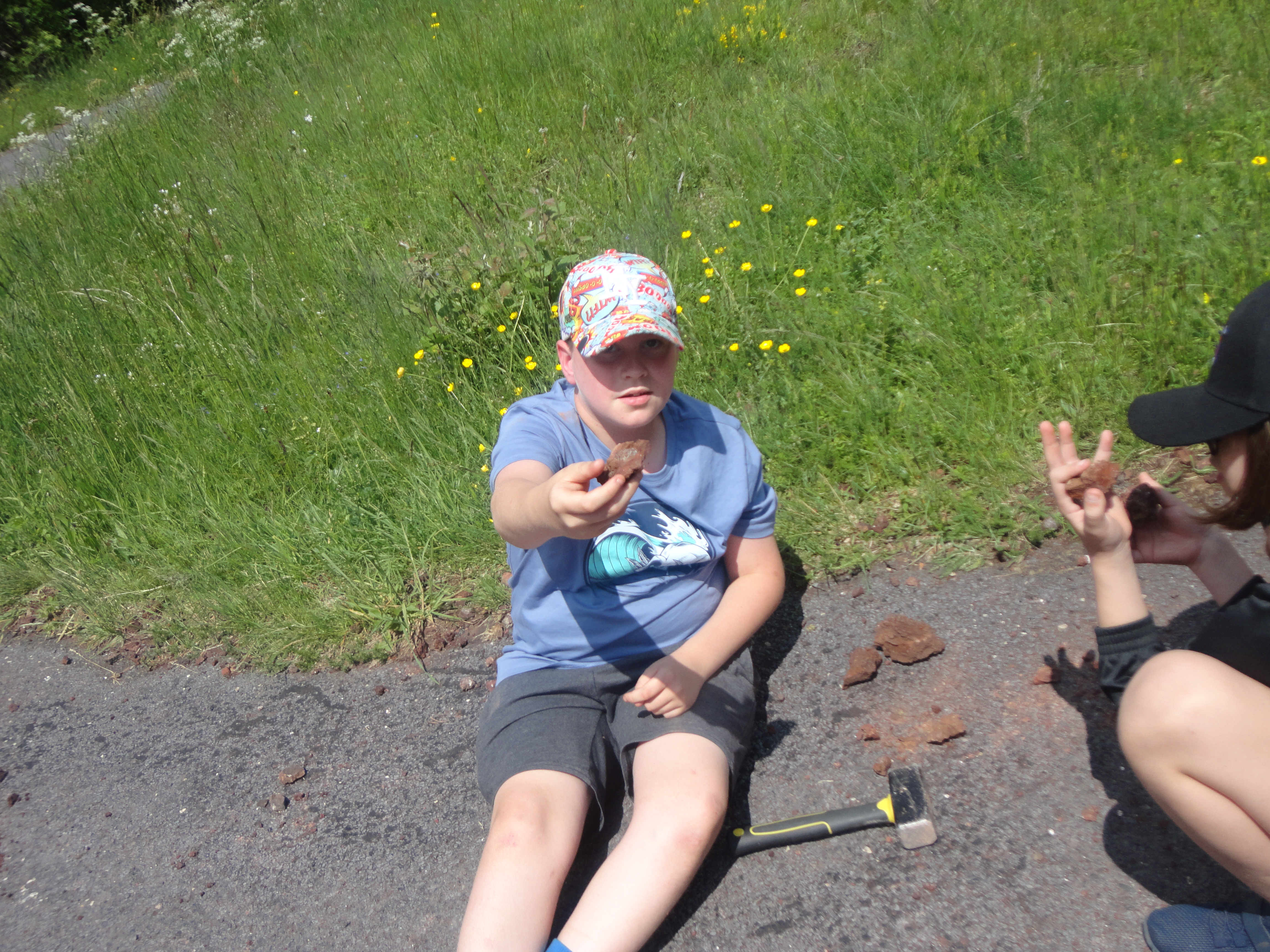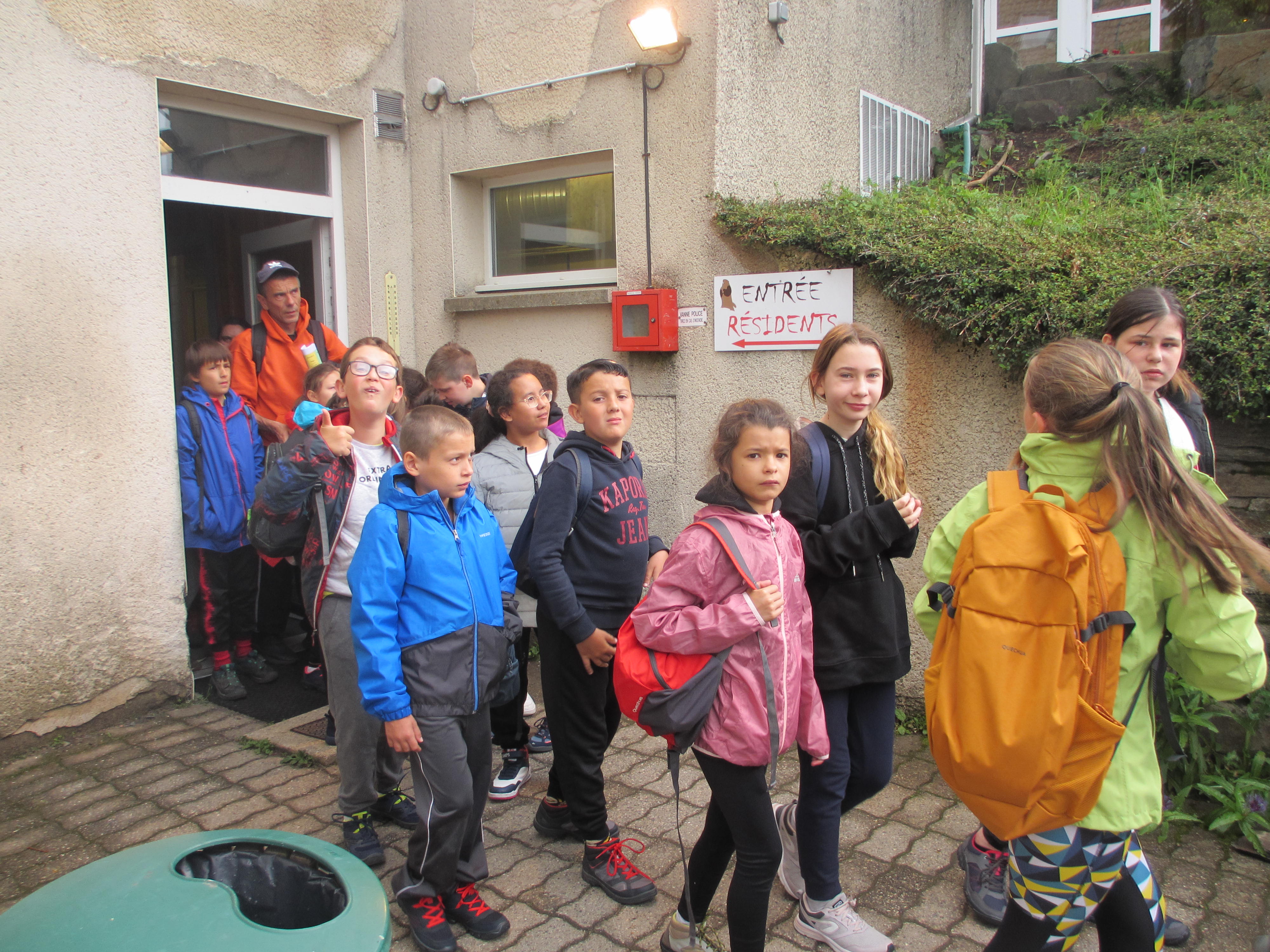 En sortant du bus, nous avons attaqué à gravir le Mont Gerbier de Jonc. En montant, nous nous sommes arrêtés quelques fois pour regarder le paysage puis, une fois arrivés au sommet, Hervé notre guide, nous a parlé du type de ce volcan et de ce qui l'entoure. A la fin, nous sommes redescendus puis nous avons pique-niqué au pied du volcan. Nous avons repris le bus pour aller au volcan du Cherche Muse où nous avons cassé des pierres (bombes volcaniques), que nous avons ramassées à l'aide d'Hervé et de Marylou une autre guide du chalet. En reprenant le bus, nous avons pris la direction du Lac d'Issarlés où nous avons parlé du volcan qu'il y avait dessous avec les deux guides. Nous avons goutté puis nous avons joué sur le sable. Nous avons repris le bus en direction du chalet où nous avons pris une douche, le soir nous avons mangé : une soupe de légumes, une poêlée forestière, de la pizza et une mousse au chocolat.