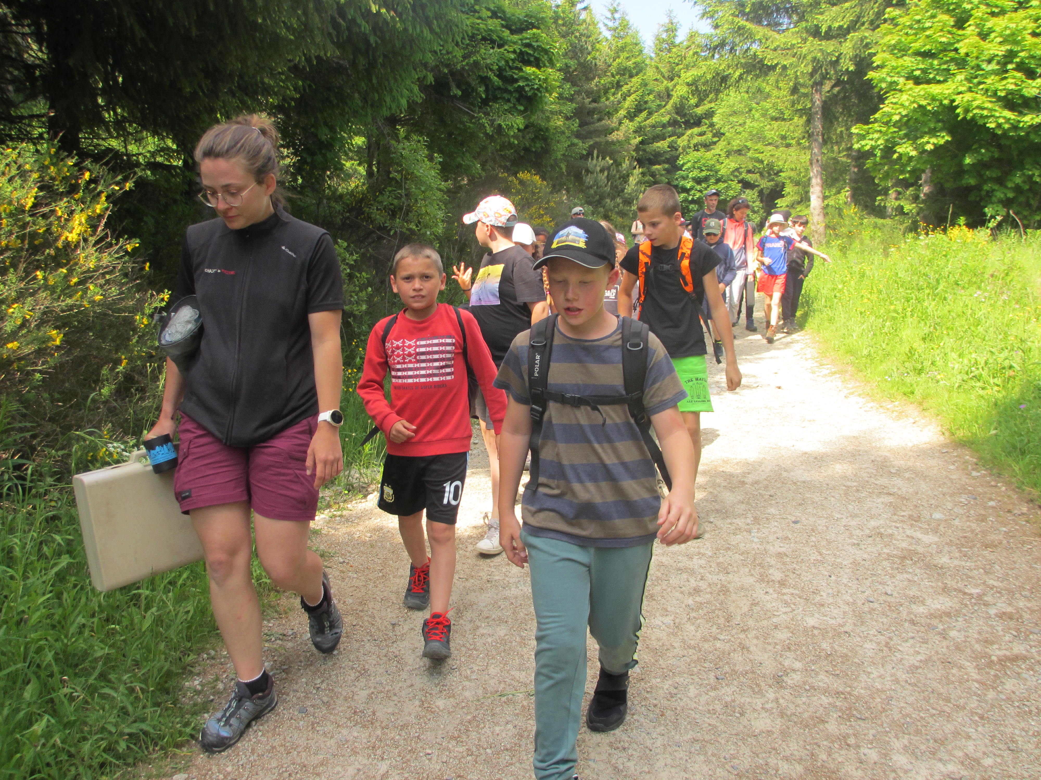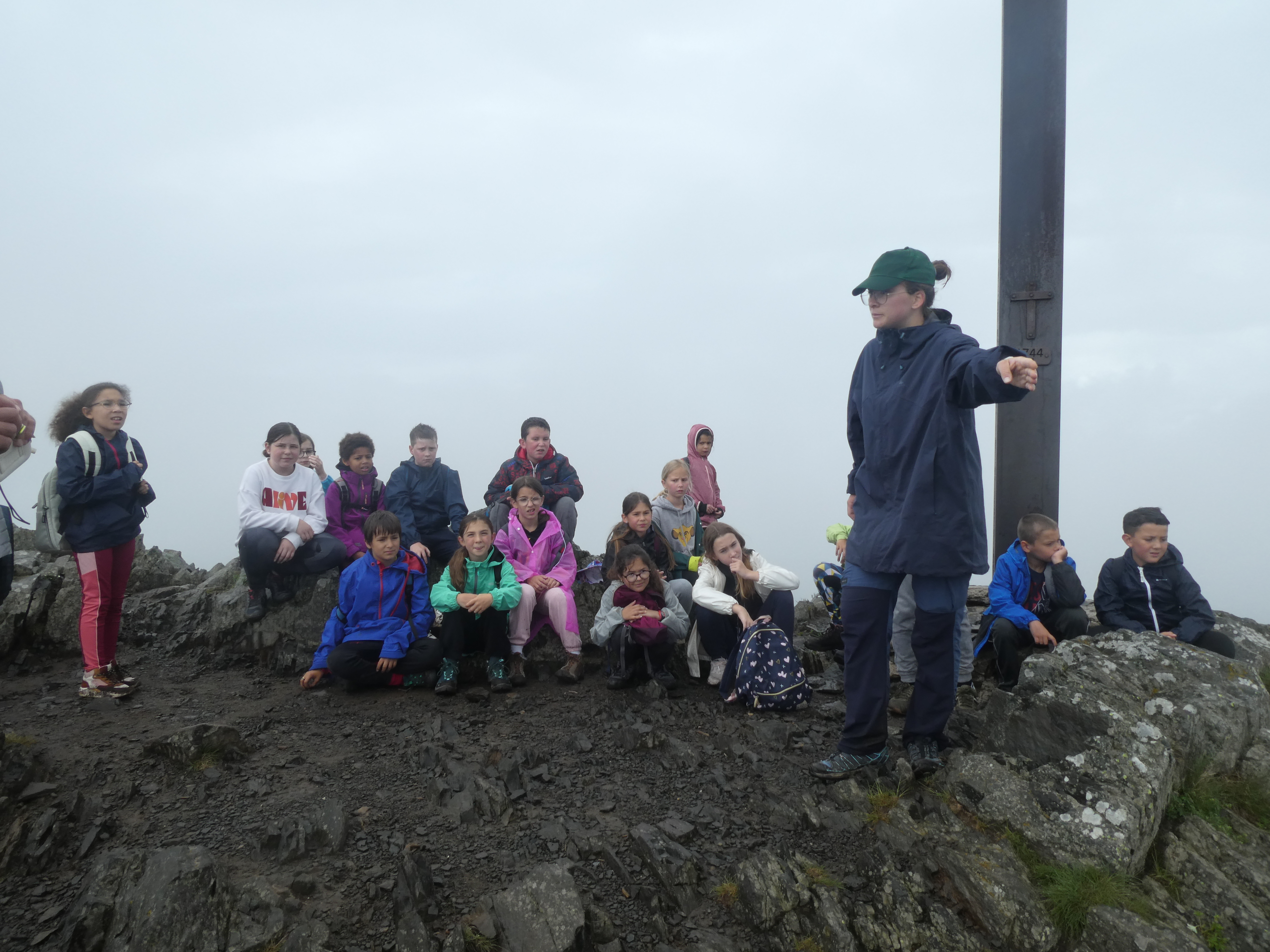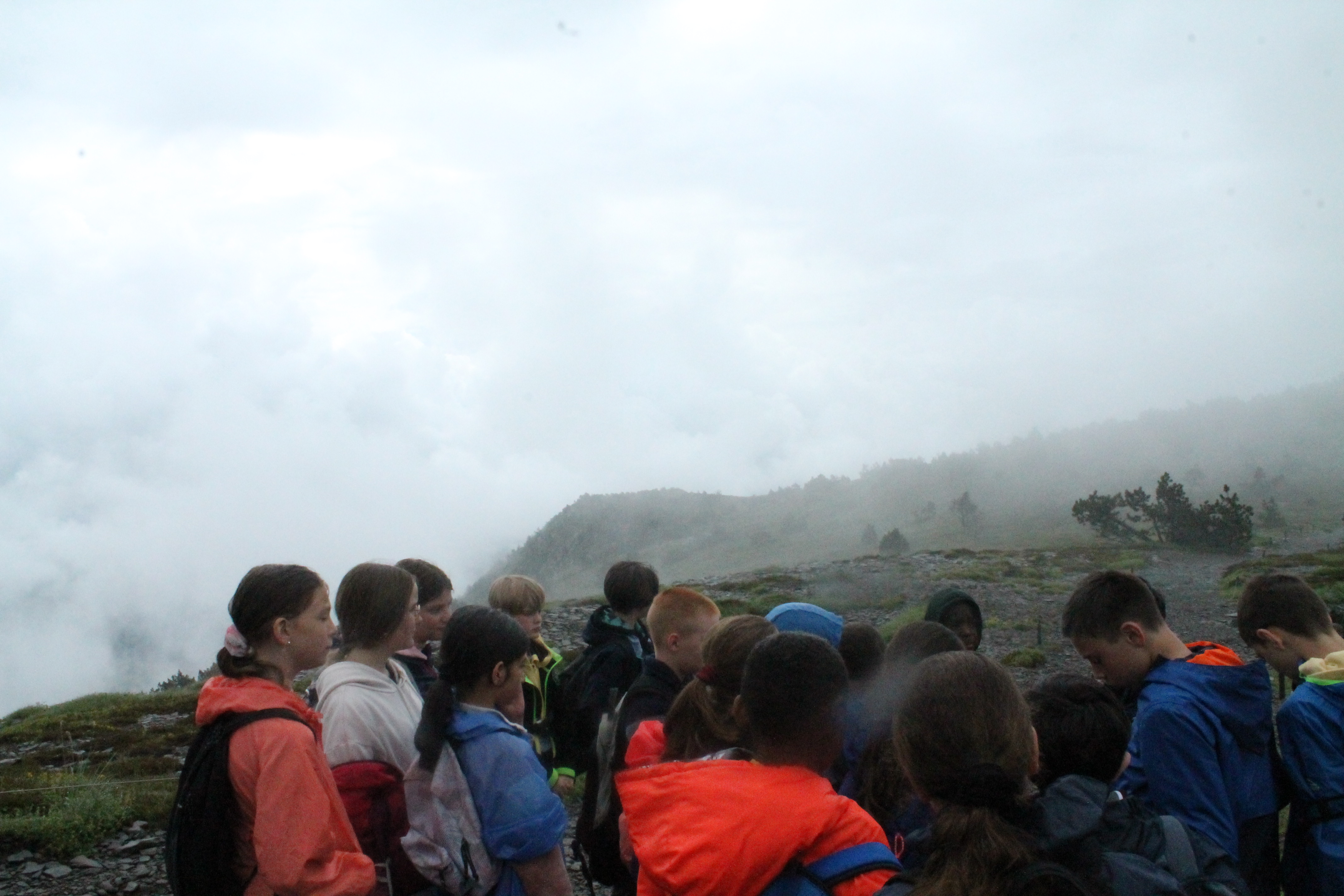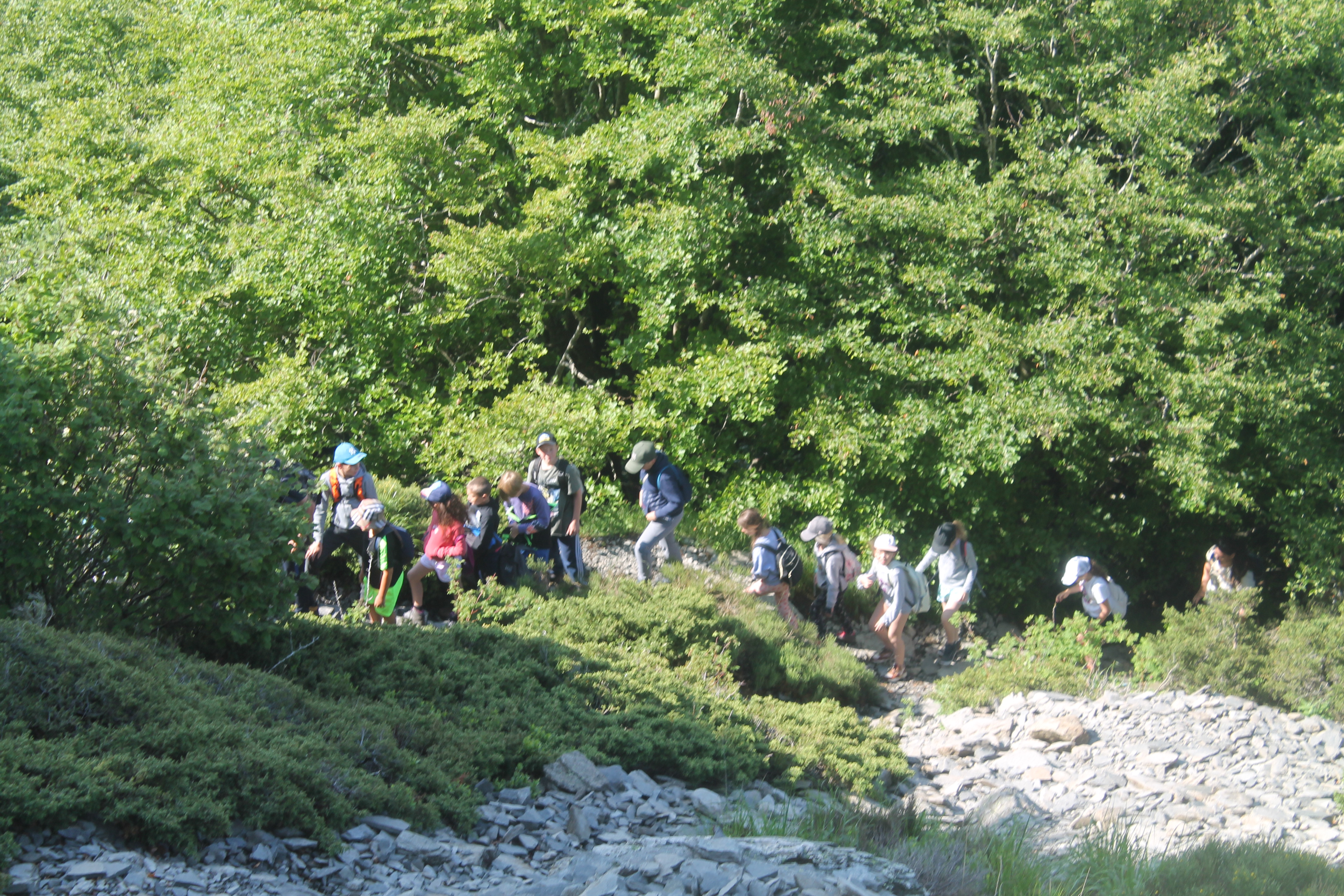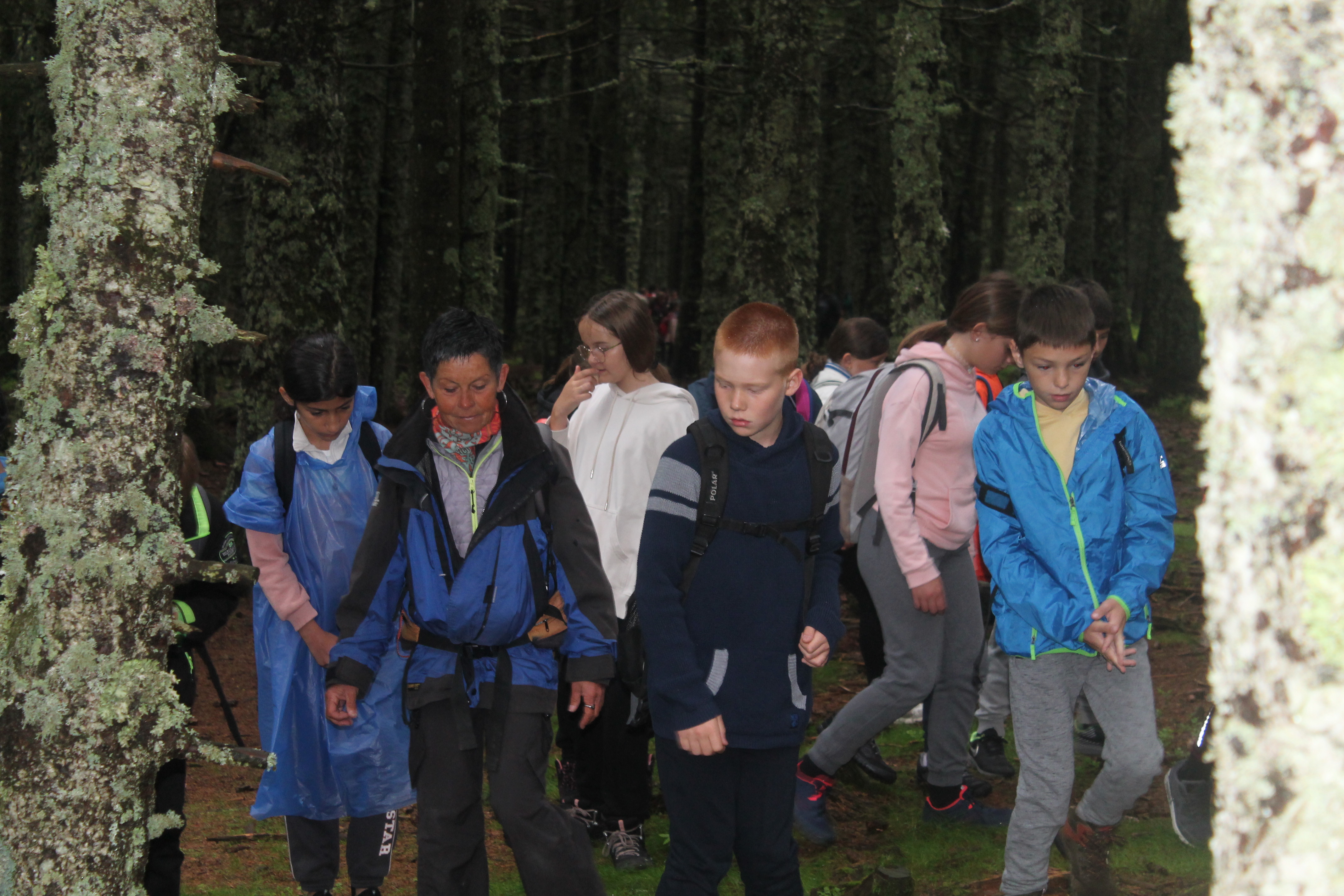 En sortant du bus, nous avons attaqué à gravir le Mont Gerbier de Jonc. En montant, nous nous sommes arrêtés quelques fois pour regarder le paysage puis, une fois arrivés au sommet, Hervé notre guide, nous a parlé du type de ce volcan et de ce qui l'entoure. A la fin, nous sommes redescendus puis nous avons pique-niqué au pied du volcan. Nous avons repris le bus pour aller au volcan du Cherche Muse où nous avons cassé des pierres (bombes volcaniques), que nous avons ramassées à l'aide d'Hervé et de Marylou une autre guide du chalet. En reprenant le bus, nous avons pris la direction du Lac d'Issarlés où nous avons parlé du volcan qu'il y avait dessous avec les deux guides. Nous avons goutté puis nous avons joué sur le sable. Nous avons repris le bus en direction du chalet où nous avons pris une douche, le soir nous avons mangé : une soupe de légumes, une poêlée forestière, de la pizza et une mousse au chocolat.