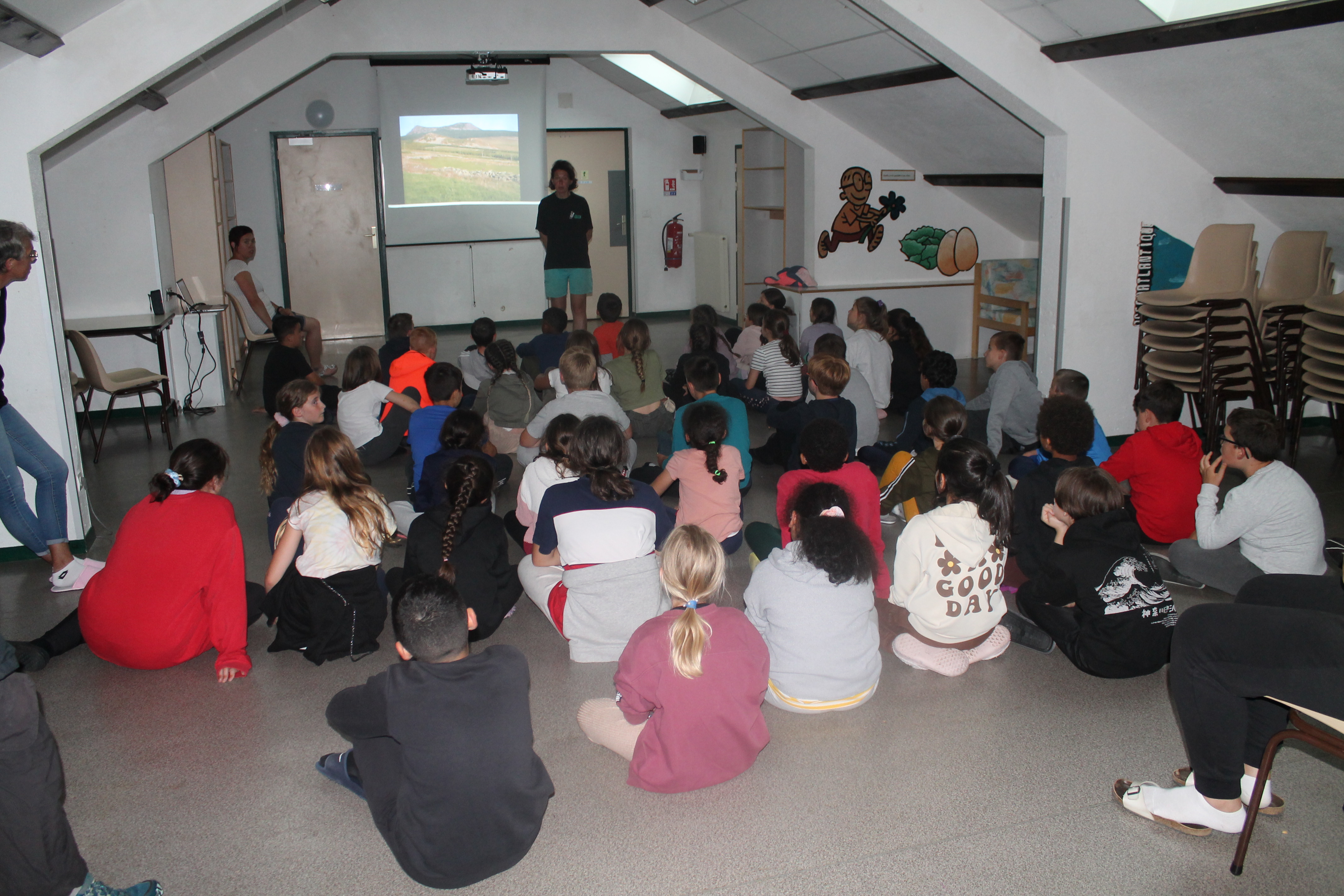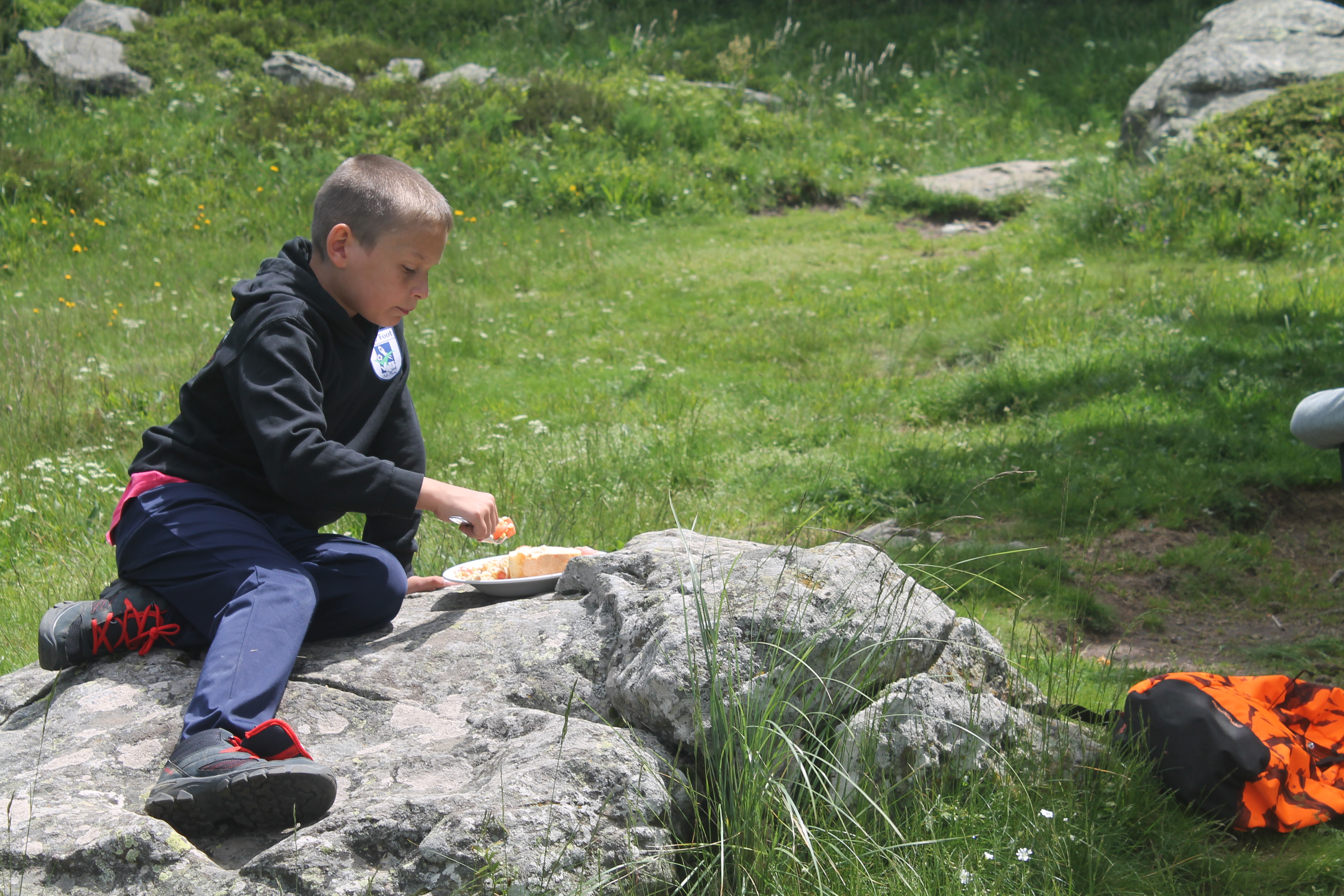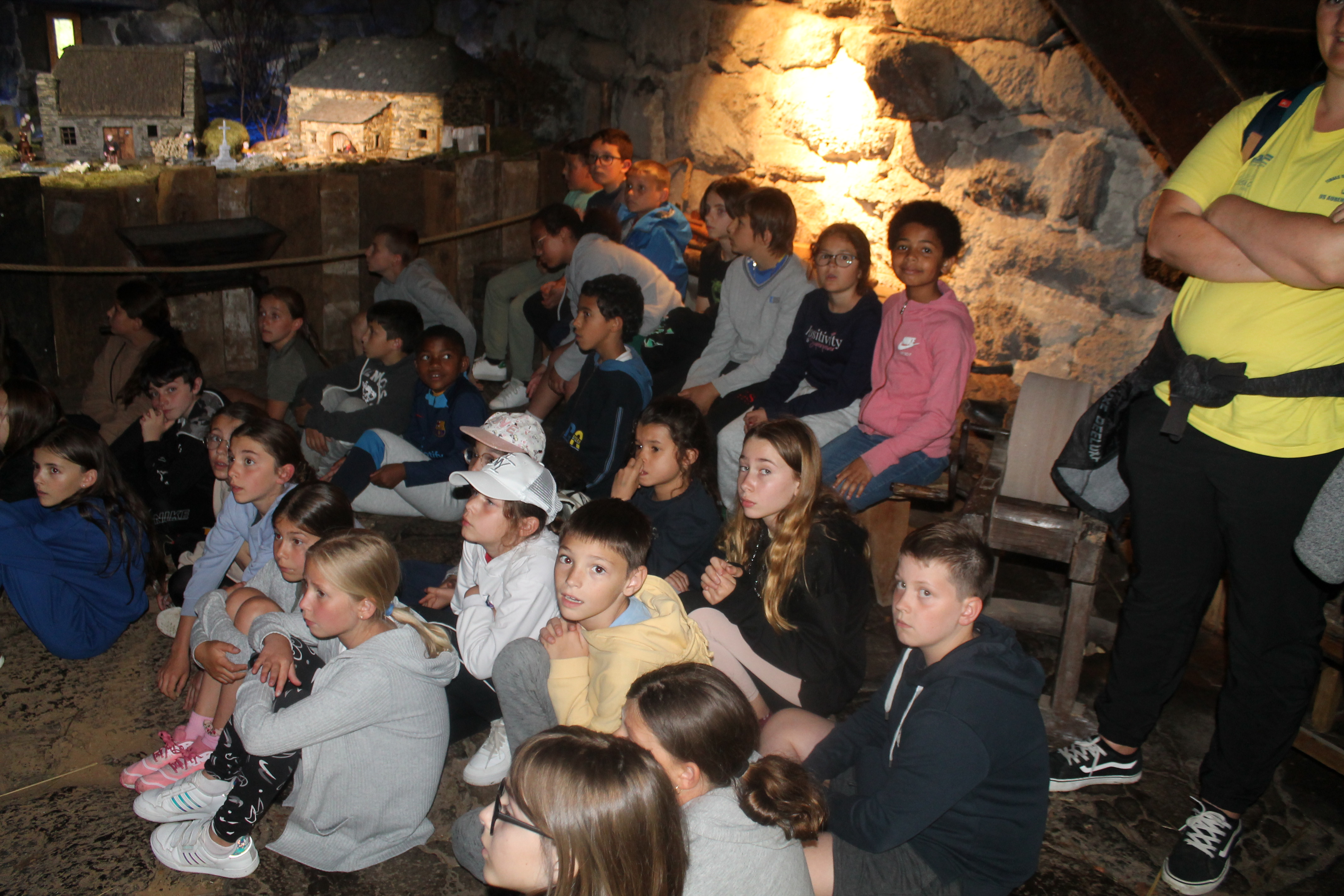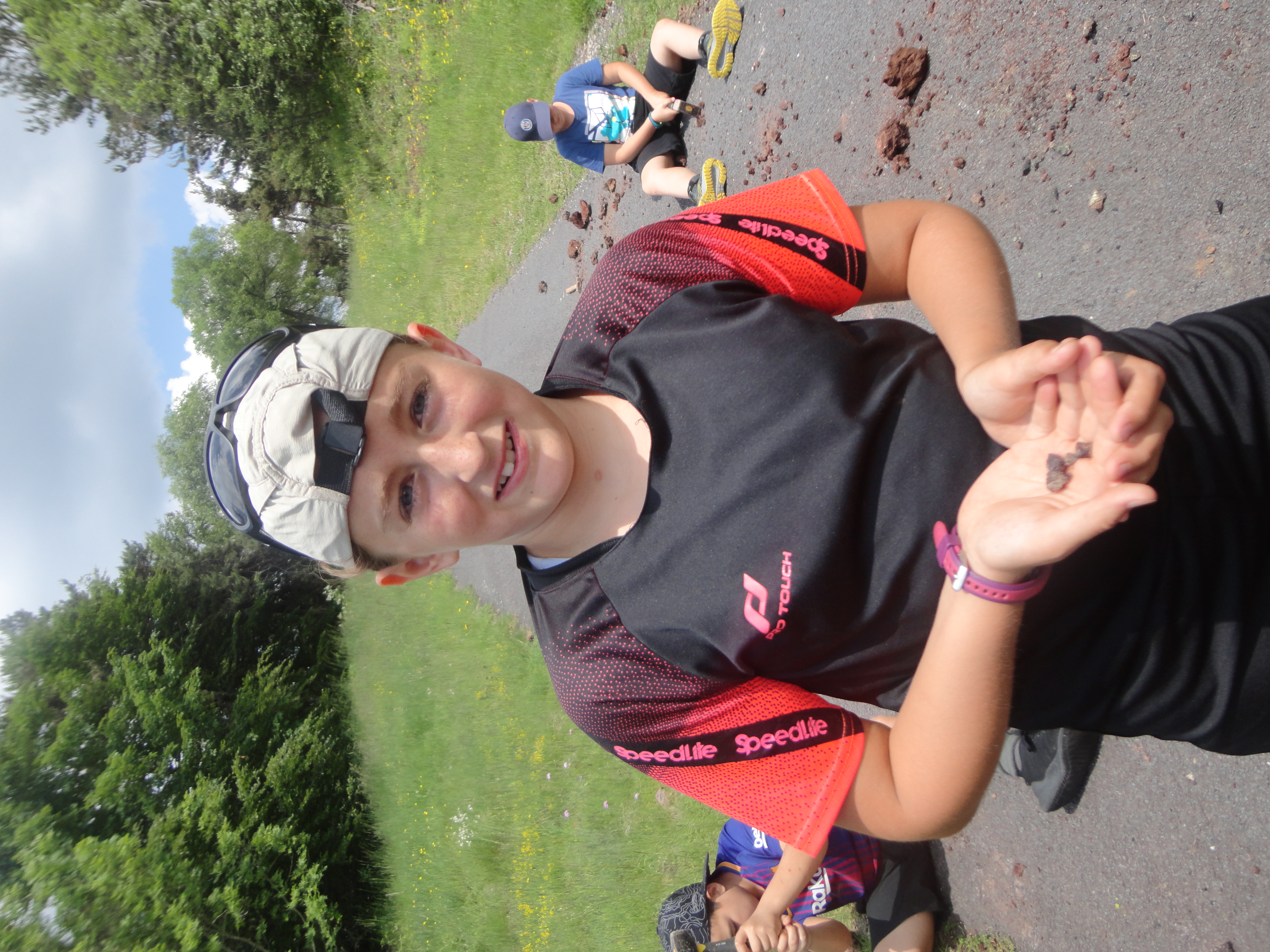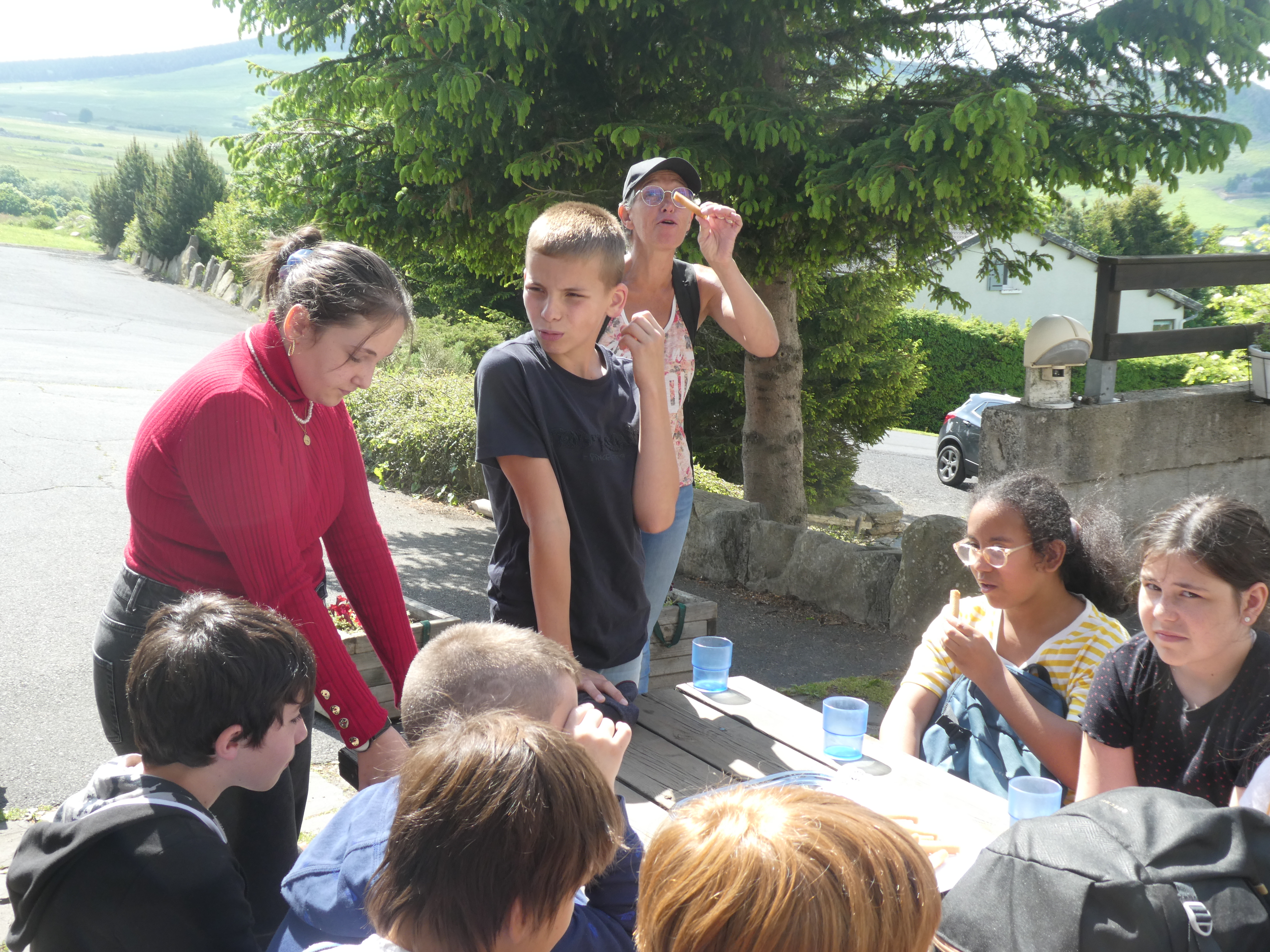 En sortant du bus, nous avons attaqué à gravir le Mont Gerbier de Jonc. En montant, nous nous sommes arrêtés quelques fois pour regarder le paysage puis, une fois arrivés au sommet, Hervé notre guide, nous a parlé du type de ce volcan et de ce qui l'entoure. A la fin, nous sommes redescendus puis nous avons pique-niqué au pied du volcan. Nous avons repris le bus pour aller au volcan du Cherche Muse où nous avons cassé des pierres (bombes volcaniques), que nous avons ramassées à l'aide d'Hervé et de Marylou une autre guide du chalet. En reprenant le bus, nous avons pris la direction du Lac d'Issarlés où nous avons parlé du volcan qu'il y avait dessous avec les deux guides. Nous avons goutté puis nous avons joué sur le sable. Nous avons repris le bus en direction du chalet où nous avons pris une douche, le soir nous avons mangé : une soupe de légumes, une poêlée forestière, de la pizza et une mousse au chocolat.