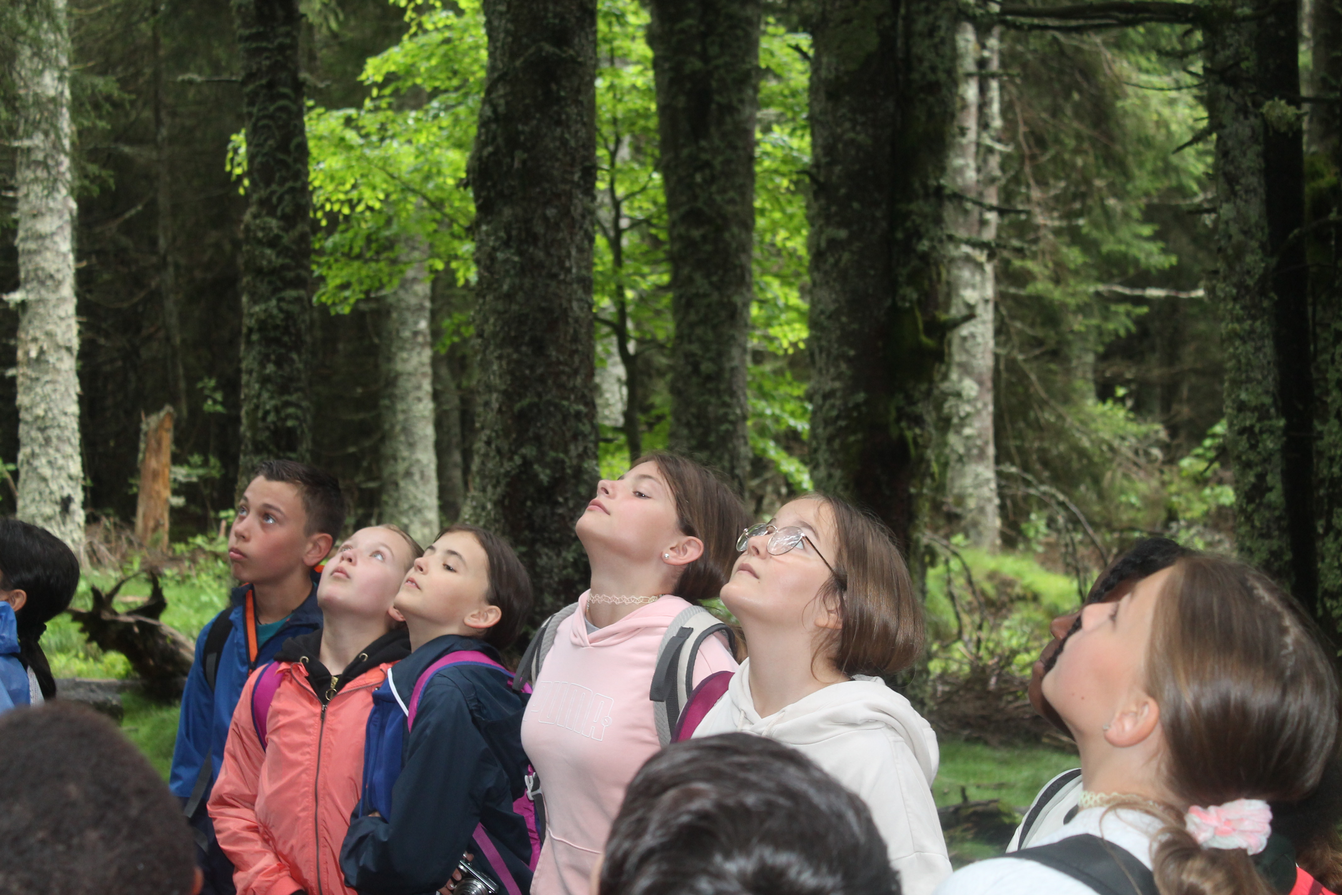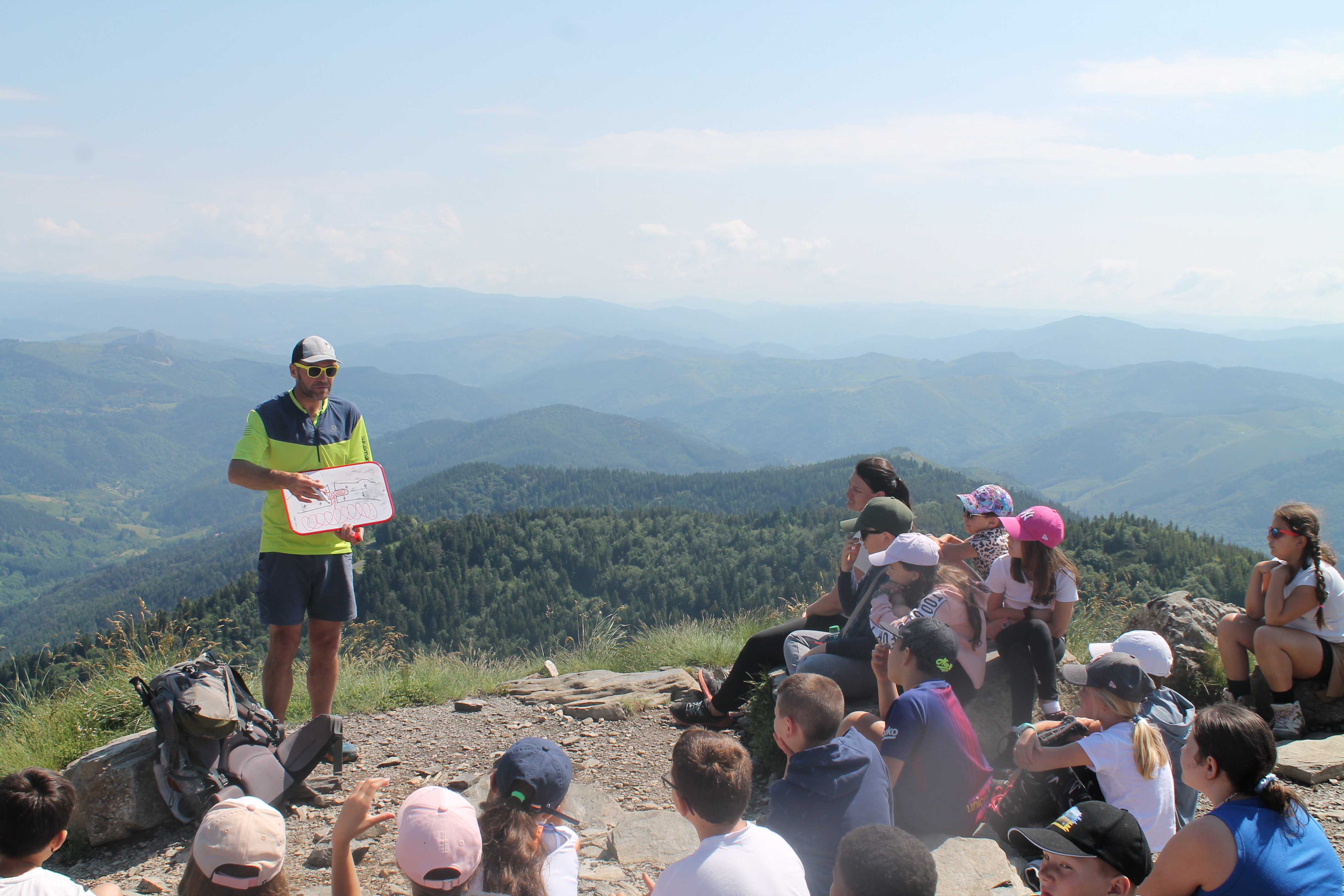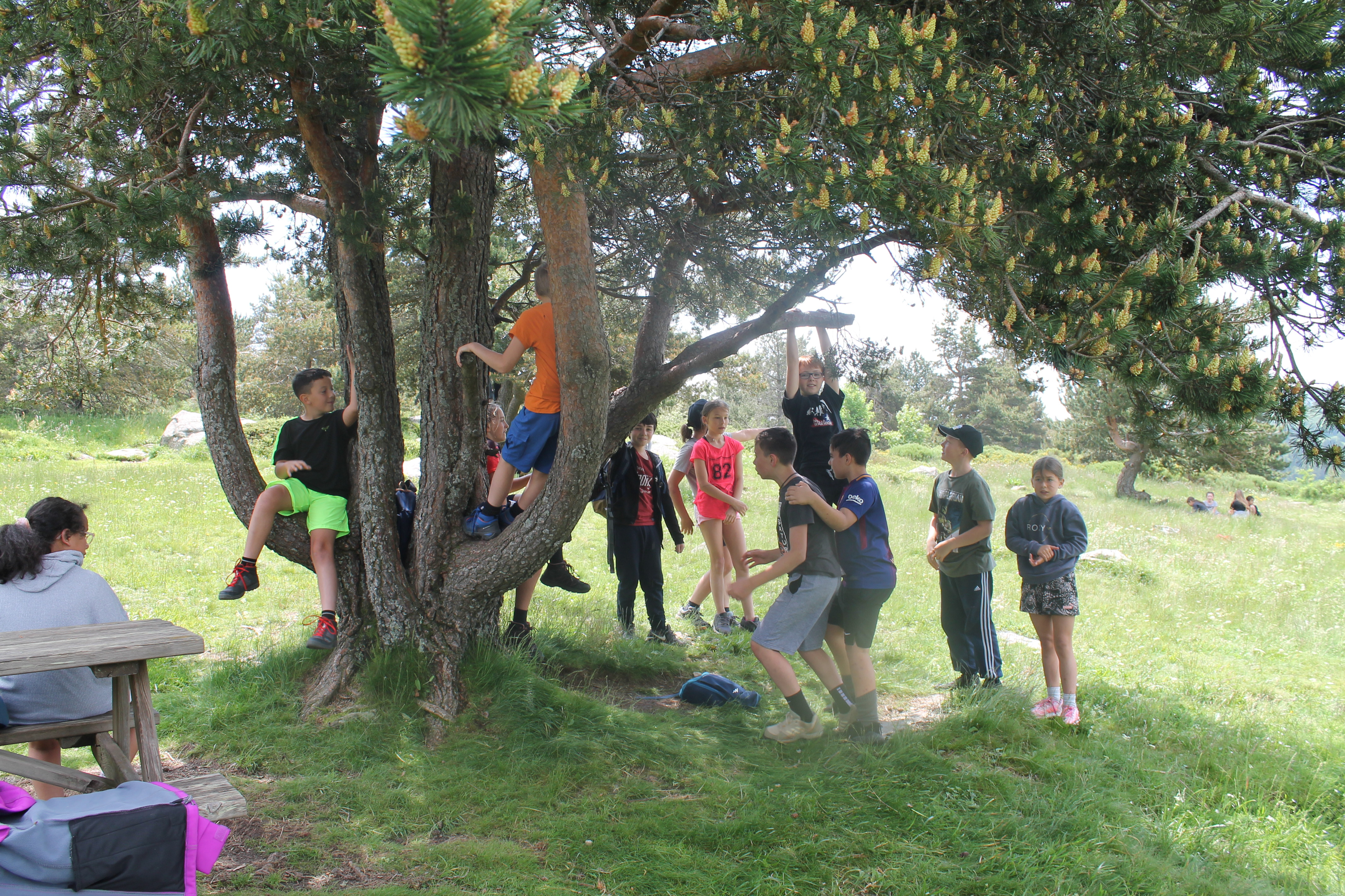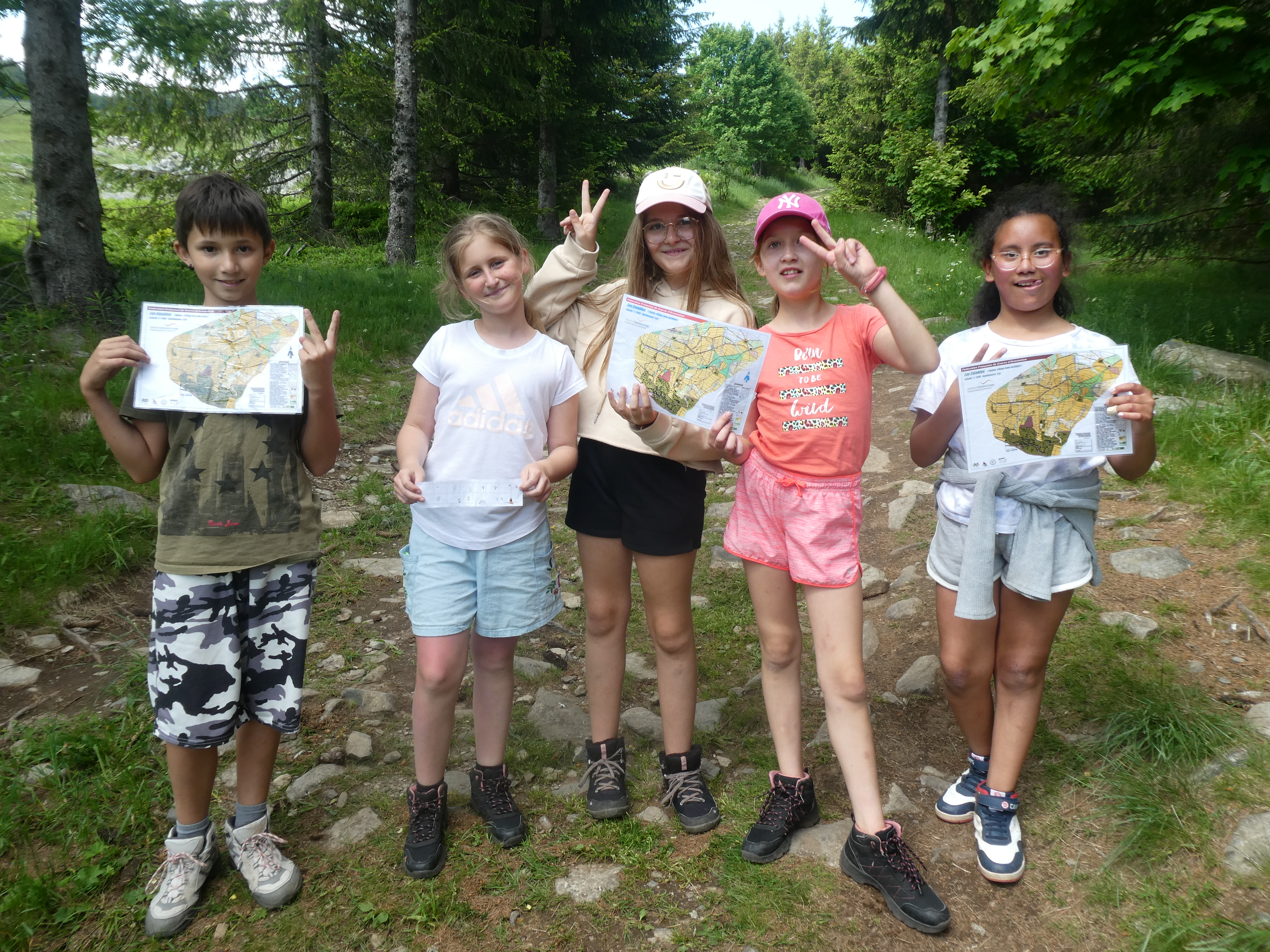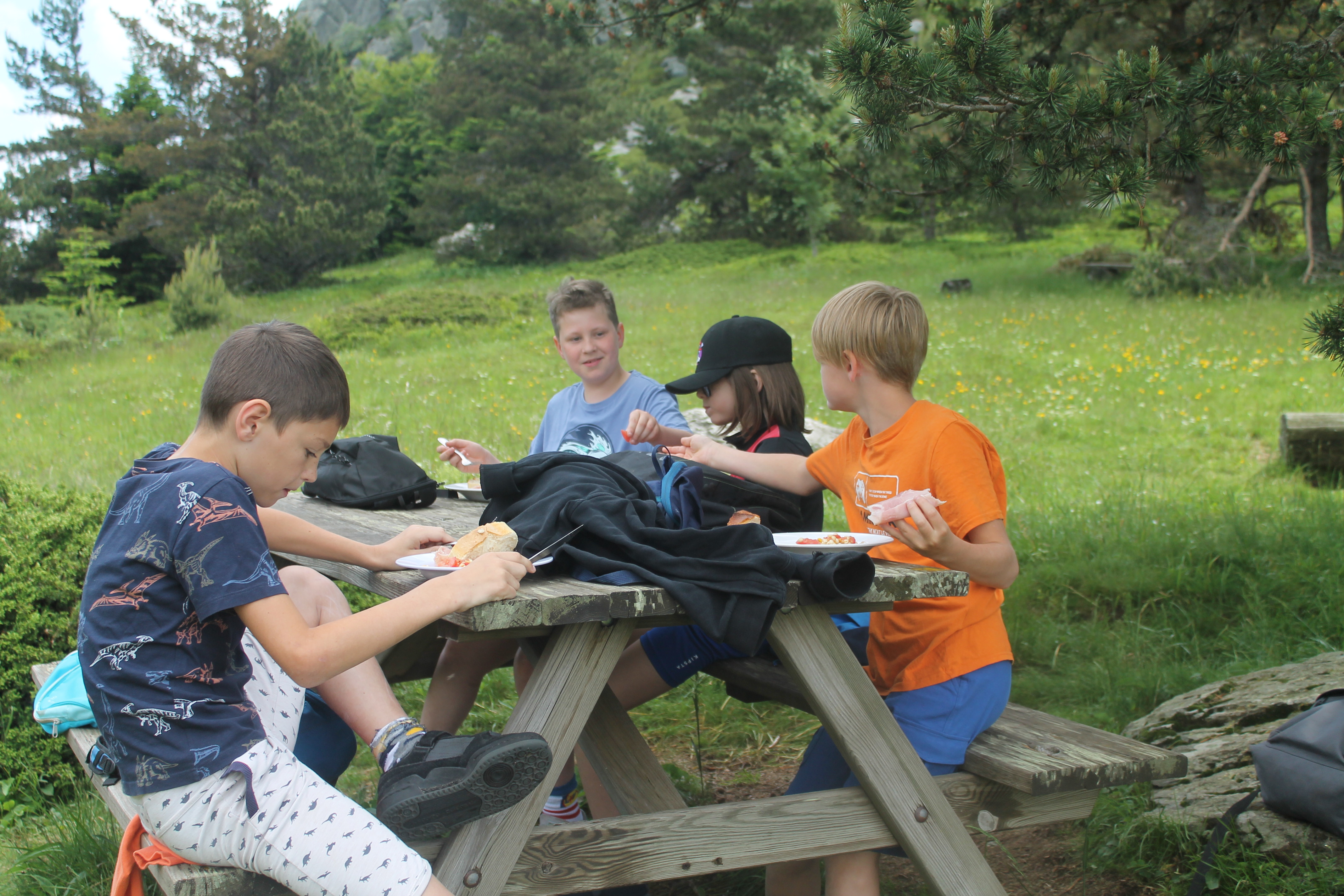 En sortant du bus, nous avons attaqué à gravir le Mont Gerbier de Jonc. En montant, nous nous sommes arrêtés quelques fois pour regarder le paysage puis, une fois arrivés au sommet, Hervé notre guide, nous a parlé du type de ce volcan et de ce qui l'entoure. A la fin, nous sommes redescendus puis nous avons pique-niqué au pied du volcan. Nous avons repris le bus pour aller au volcan du Cherche Muse où nous avons cassé des pierres (bombes volcaniques), que nous avons ramassées à l'aide d'Hervé et de Marylou une autre guide du chalet. En reprenant le bus, nous avons pris la direction du Lac d'Issarlés où nous avons parlé du volcan qu'il y avait dessous avec les deux guides. Nous avons goutté puis nous avons joué sur le sable. Nous avons repris le bus en direction du chalet où nous avons pris une douche, le soir nous avons mangé : une soupe de légumes, une poêlée forestière, de la pizza et une mousse au chocolat.