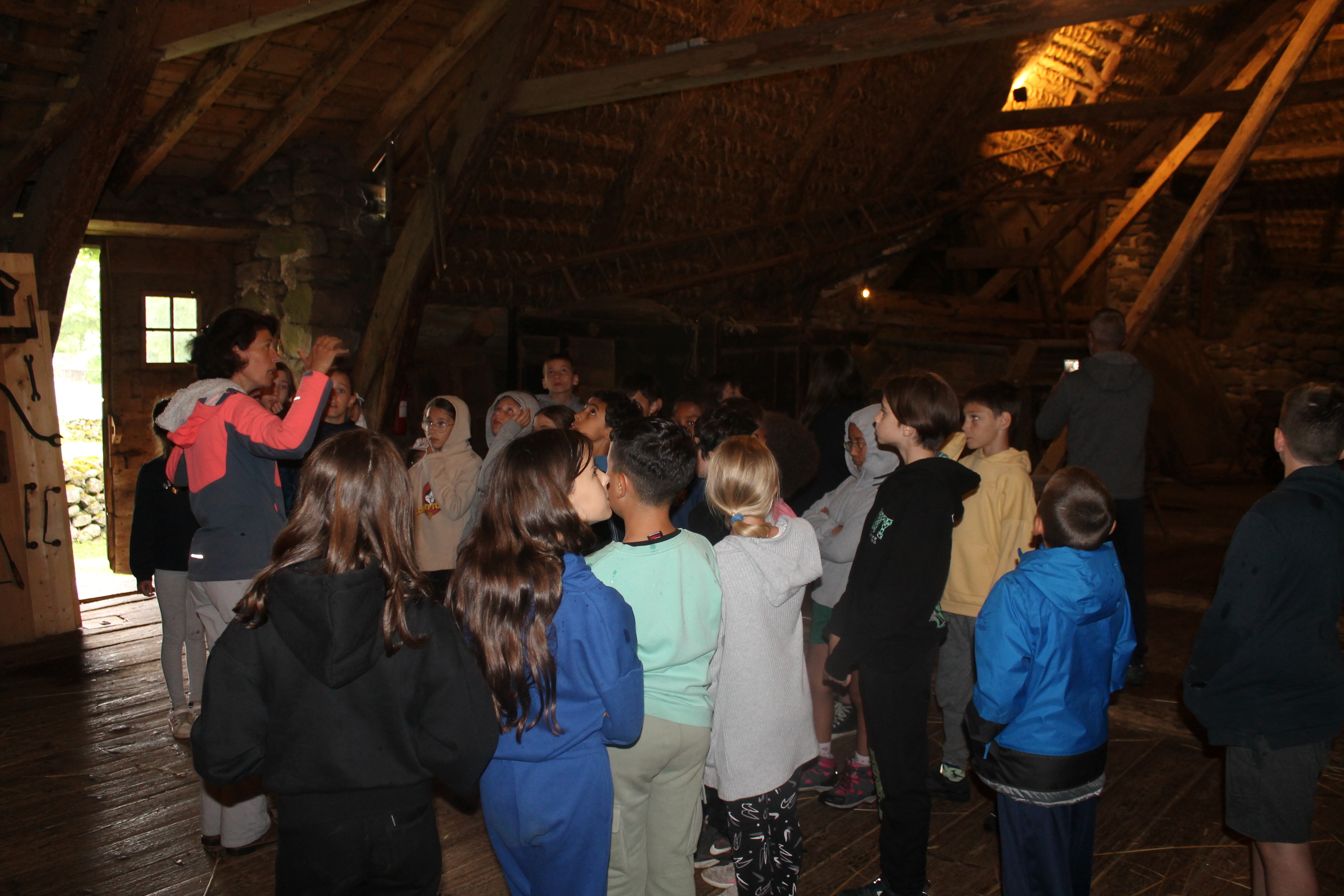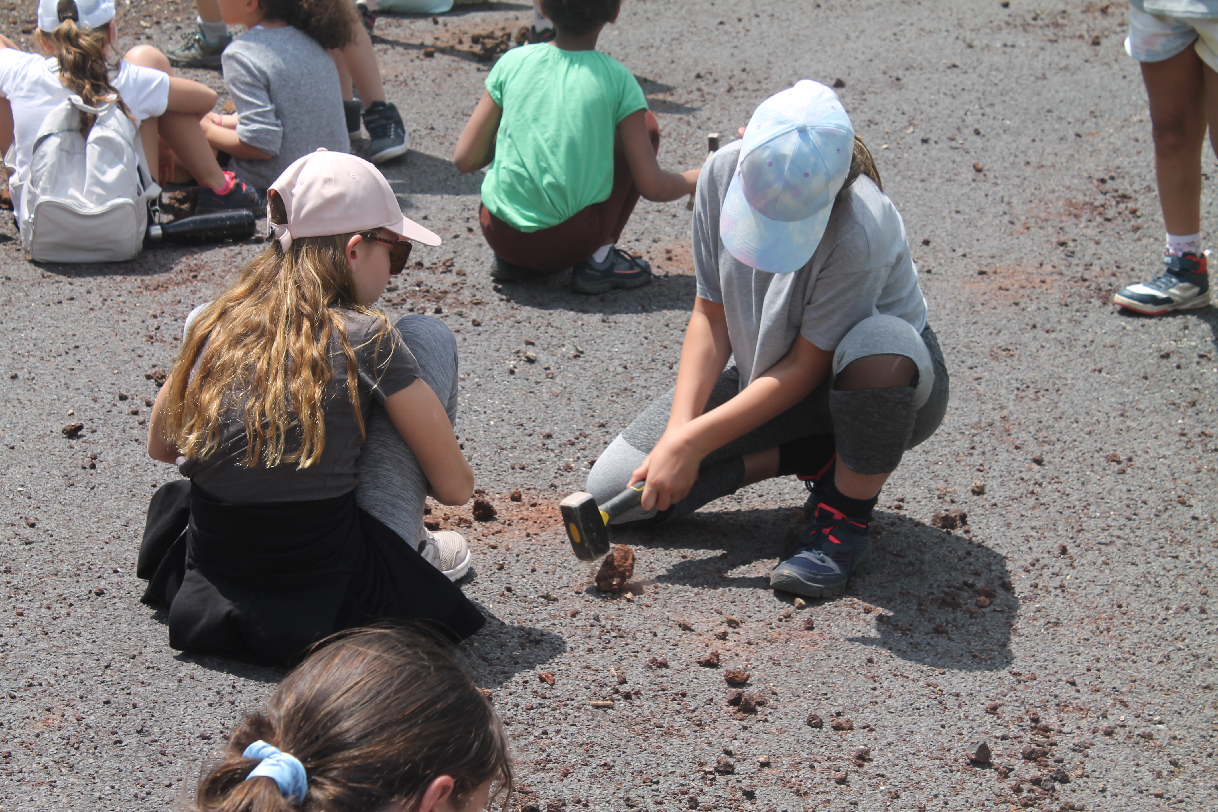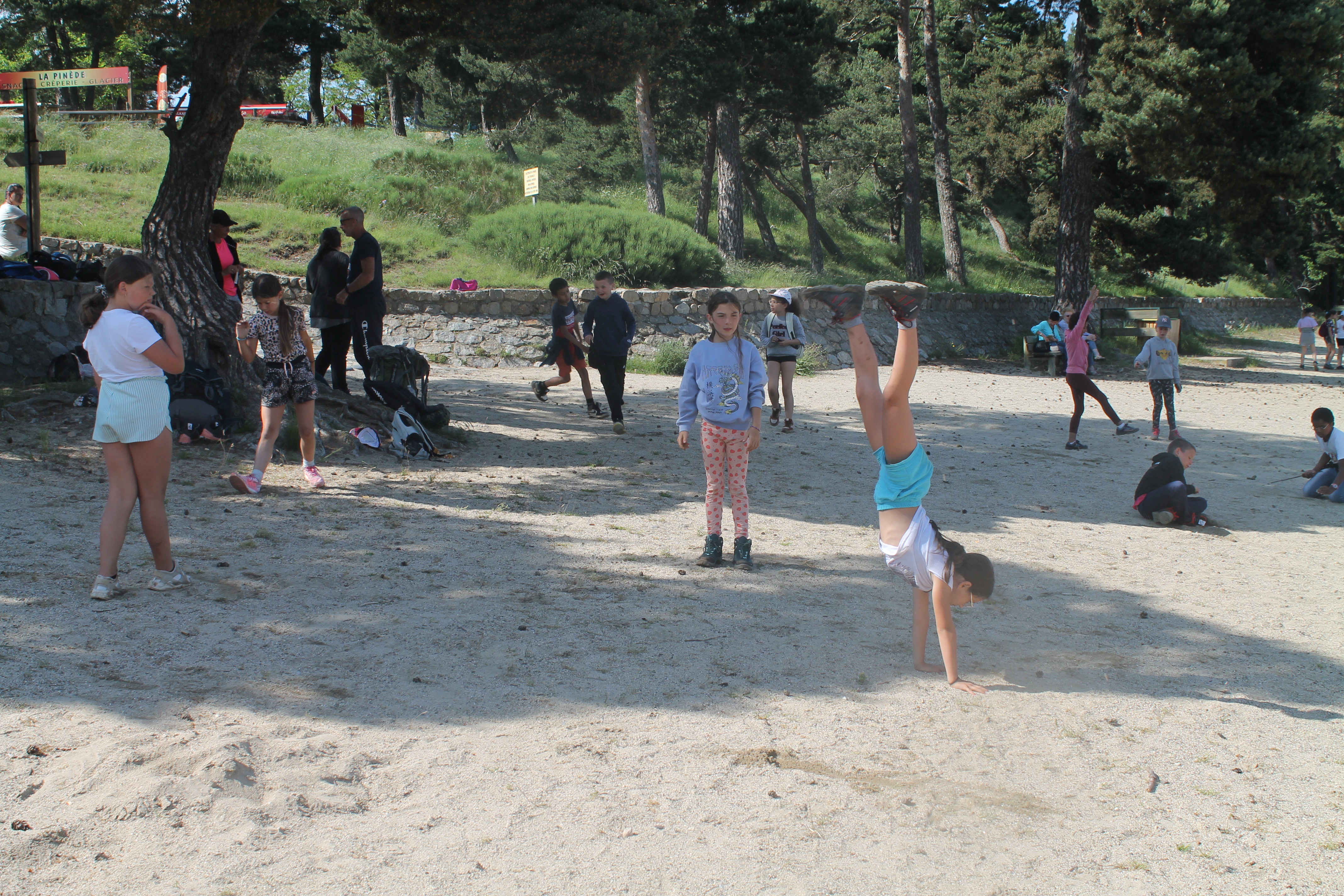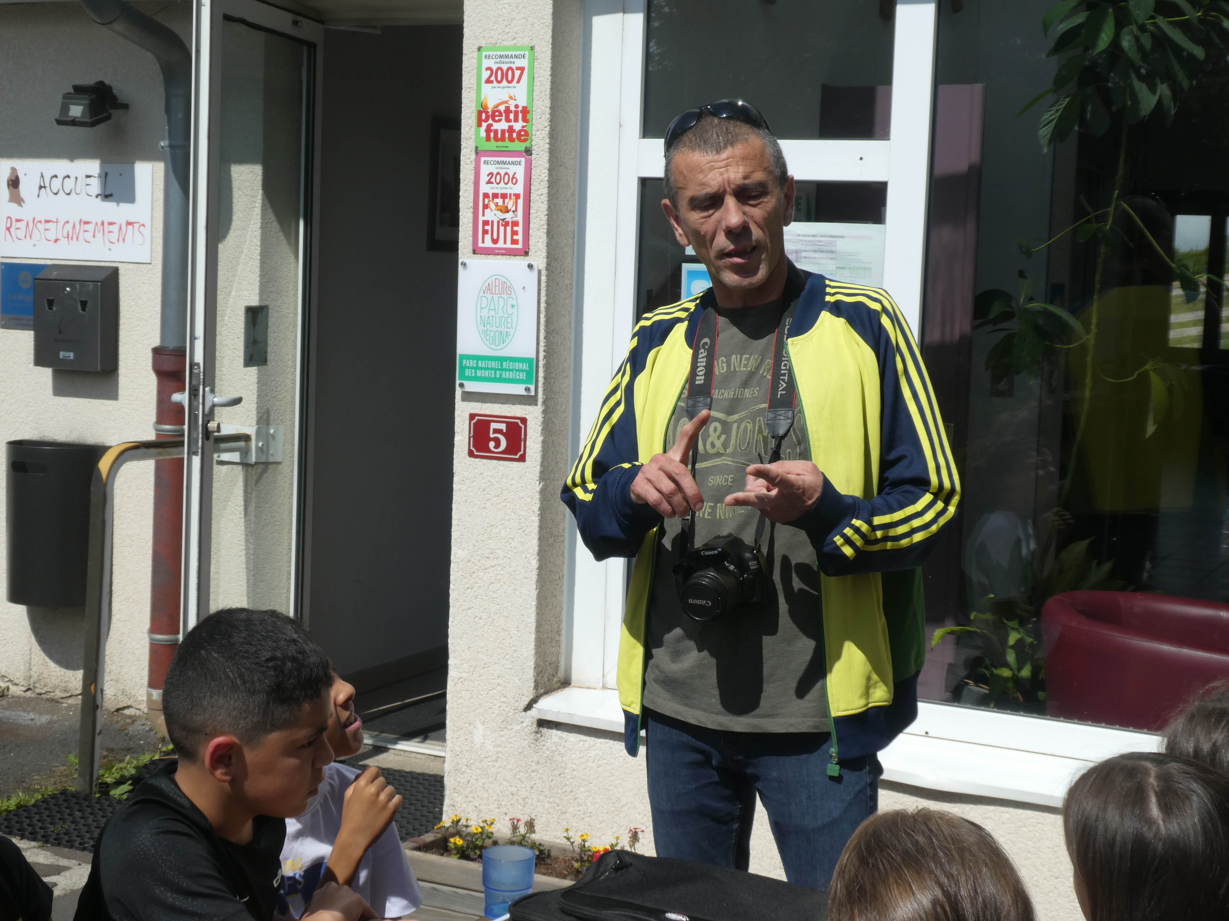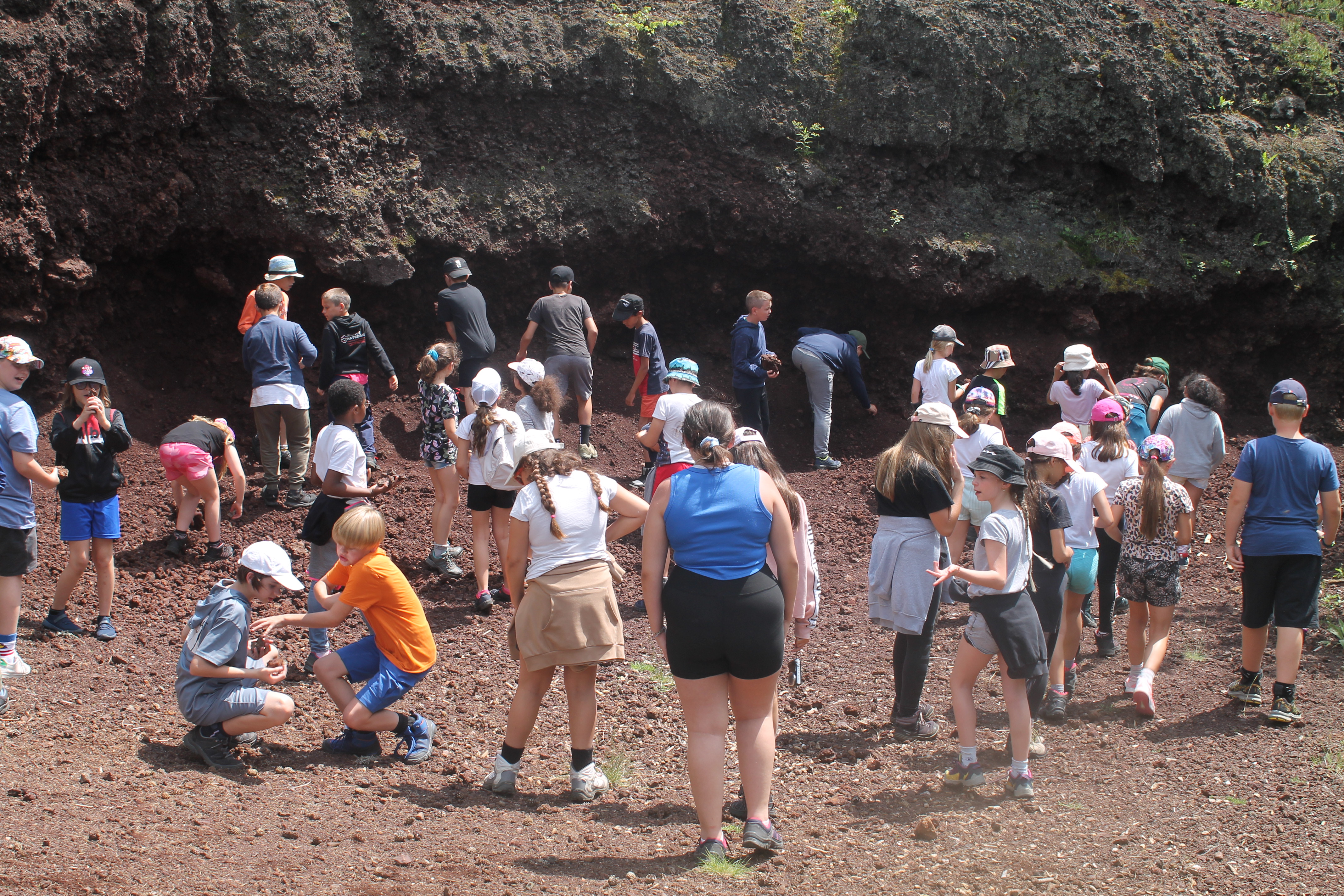 En sortant du bus, nous avons attaqué à gravir le Mont Gerbier de Jonc. En montant, nous nous sommes arrêtés quelques fois pour regarder le paysage puis, une fois arrivés au sommet, Hervé notre guide, nous a parlé du type de ce volcan et de ce qui l'entoure. A la fin, nous sommes redescendus puis nous avons pique-niqué au pied du volcan. Nous avons repris le bus pour aller au volcan du Cherche Muse où nous avons cassé des pierres (bombes volcaniques), que nous avons ramassées à l'aide d'Hervé et de Marylou une autre guide du chalet. En reprenant le bus, nous avons pris la direction du Lac d'Issarlés où nous avons parlé du volcan qu'il y avait dessous avec les deux guides. Nous avons goutté puis nous avons joué sur le sable. Nous avons repris le bus en direction du chalet où nous avons pris une douche, le soir nous avons mangé : une soupe de légumes, une poêlée forestière, de la pizza et une mousse au chocolat.