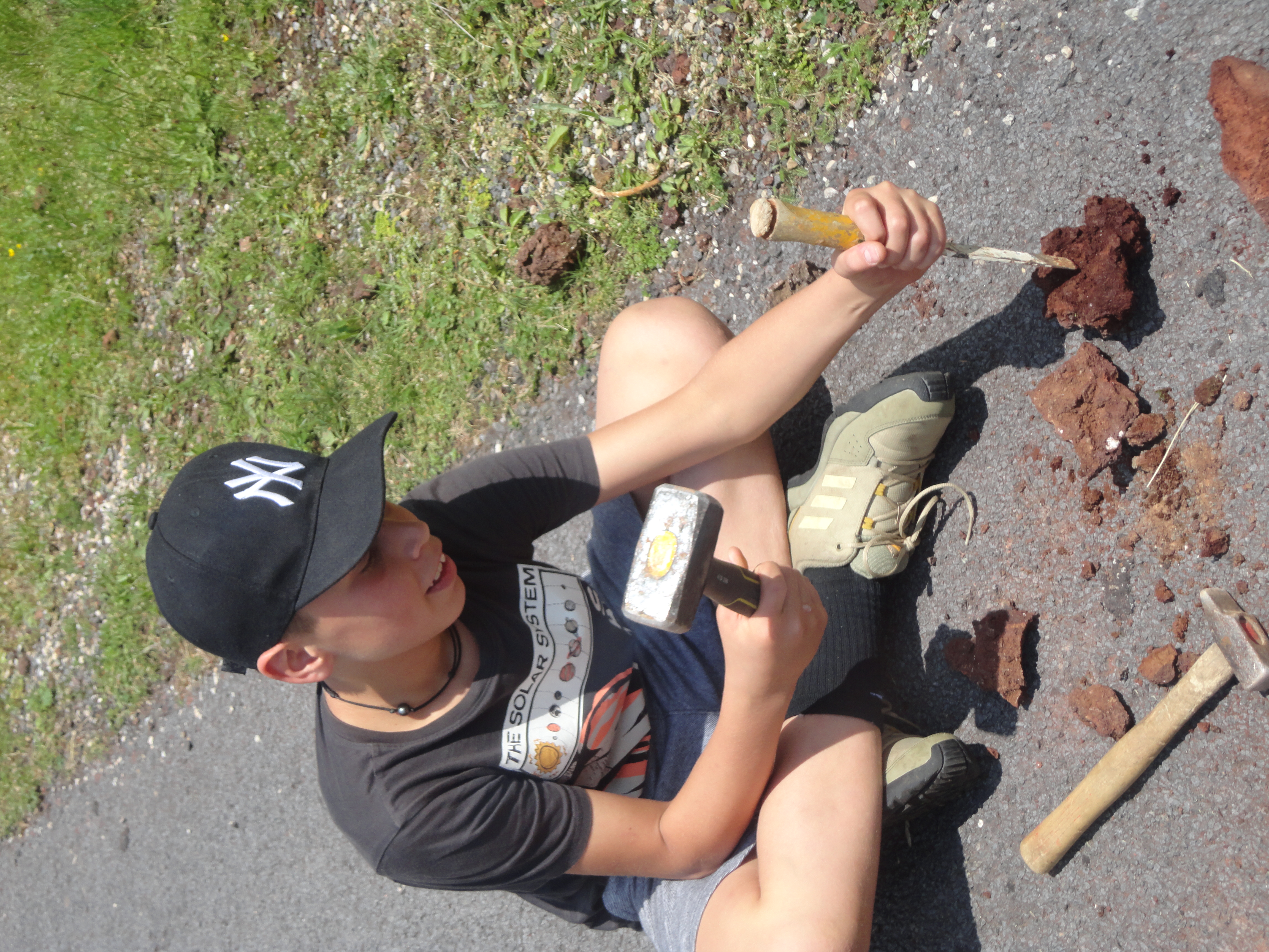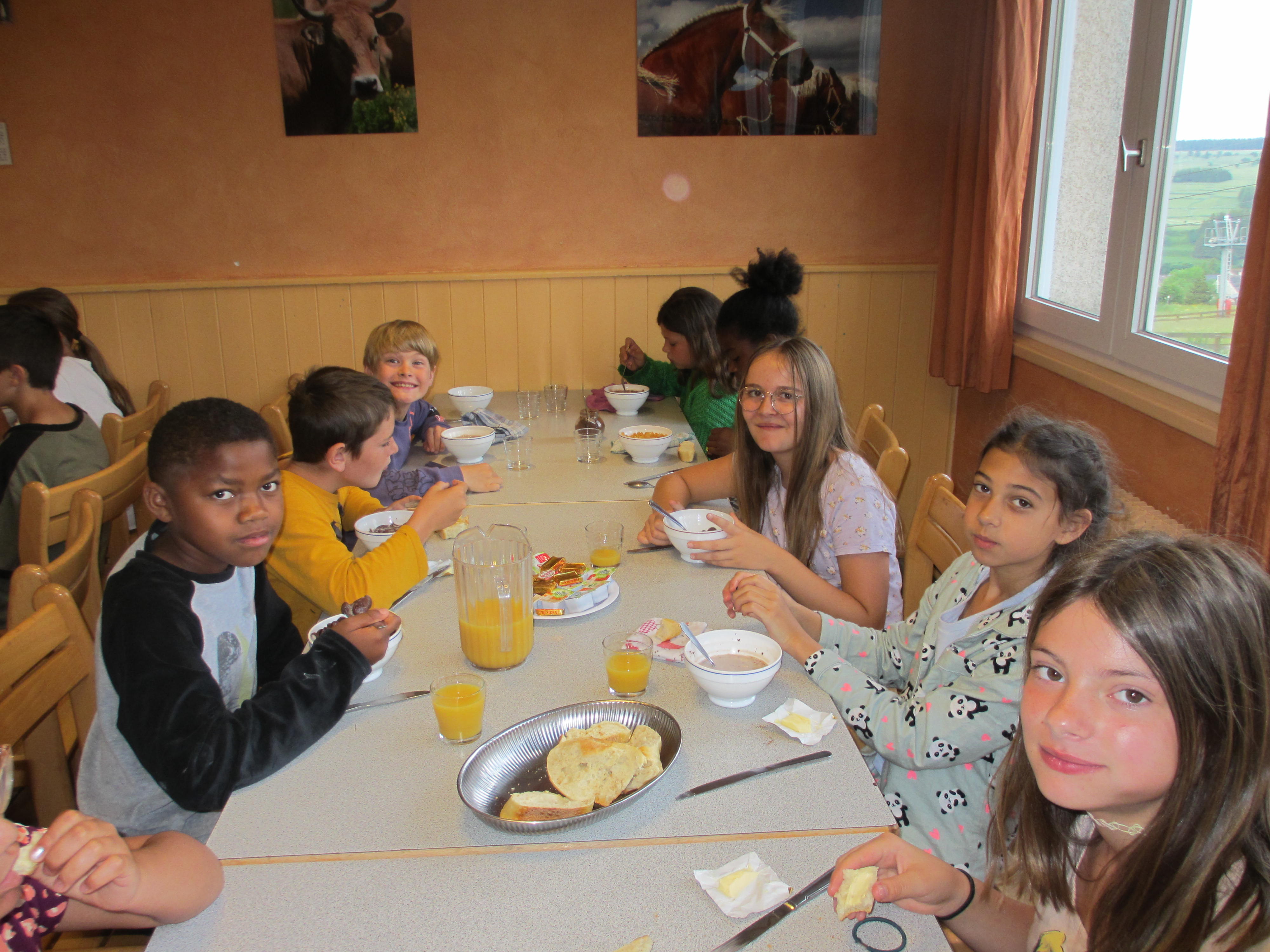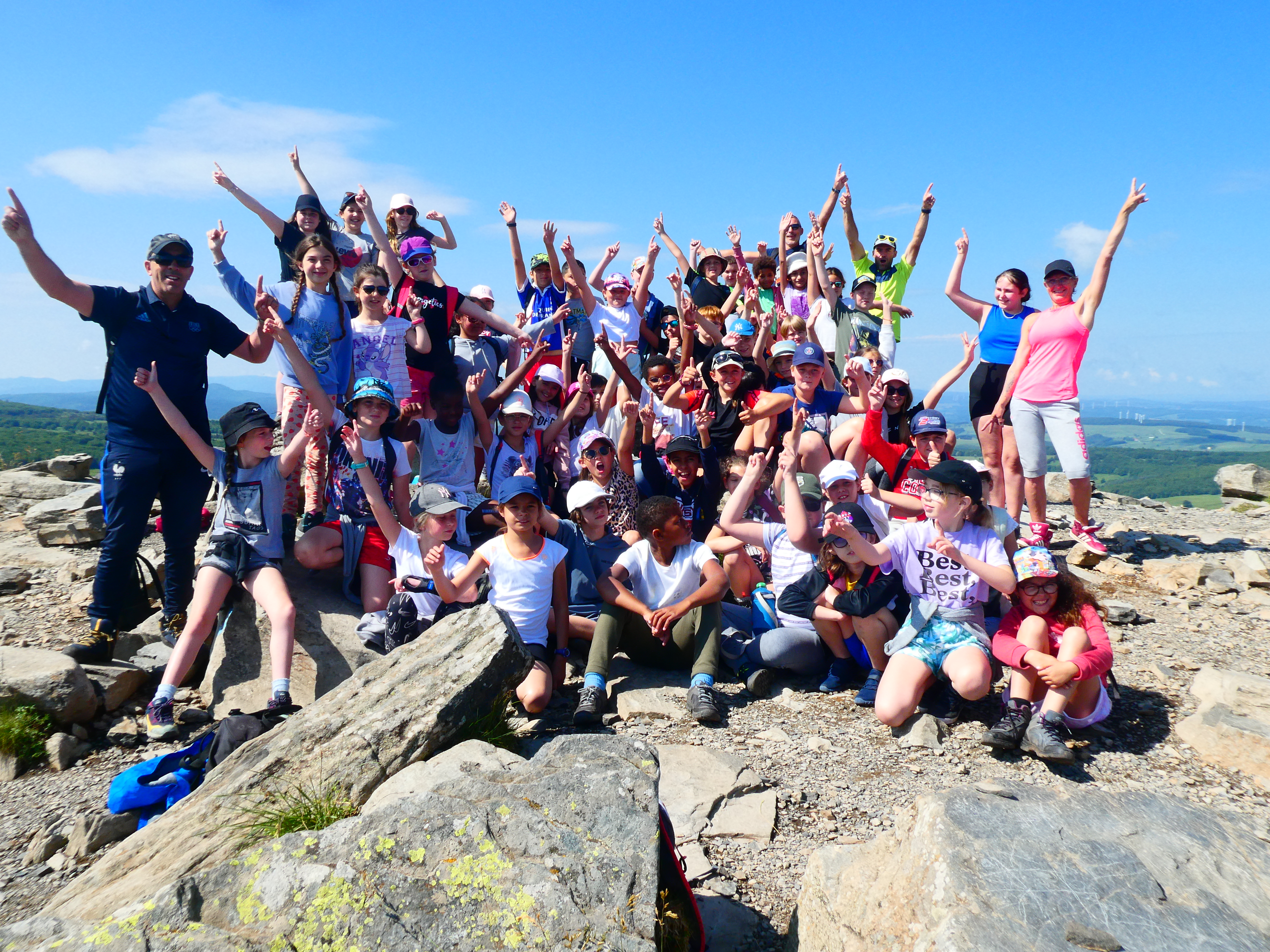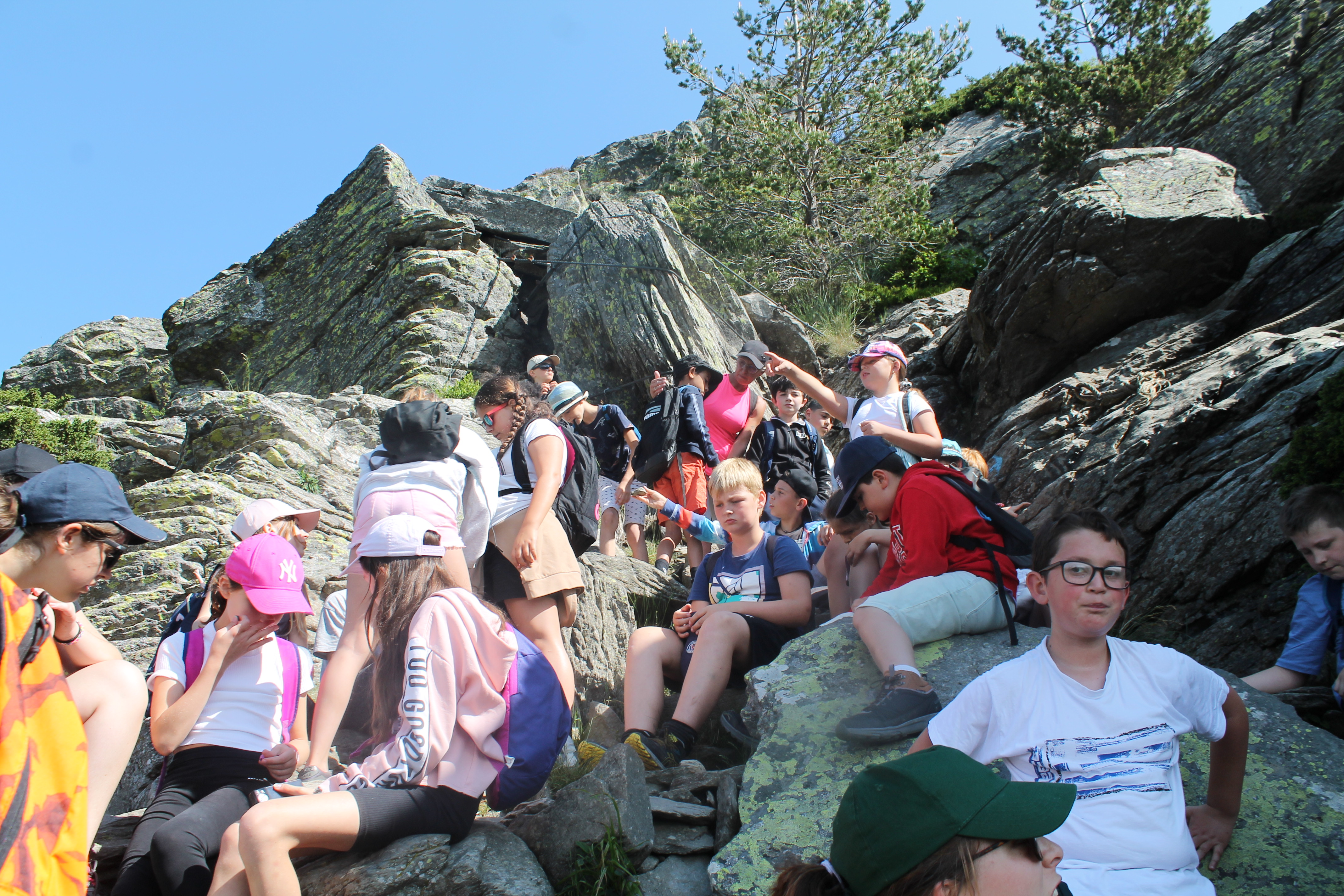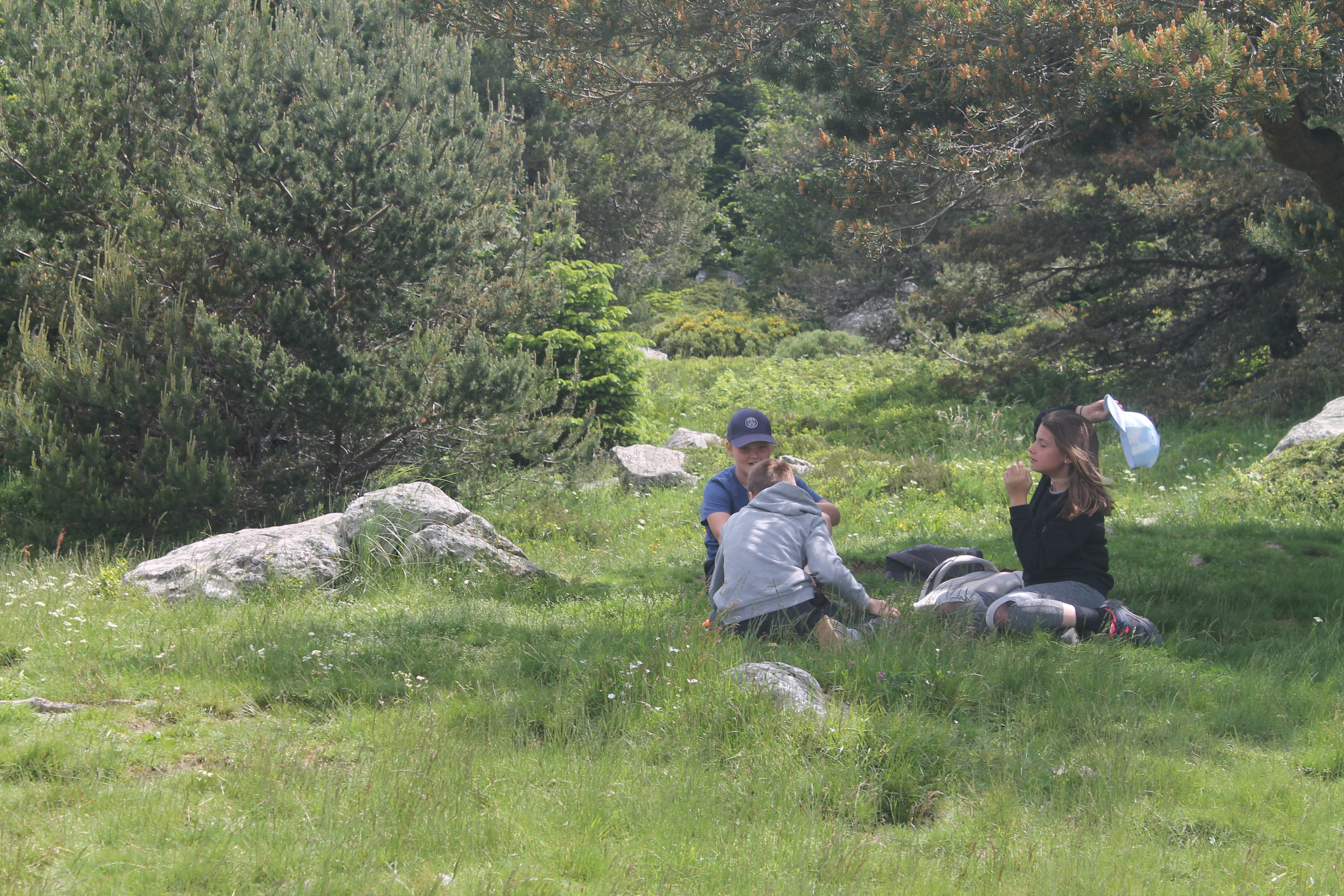 En sortant du bus, nous avons attaqué à gravir le Mont Gerbier de Jonc. En montant, nous nous sommes arrêtés quelques fois pour regarder le paysage puis, une fois arrivés au sommet, Hervé notre guide, nous a parlé du type de ce volcan et de ce qui l'entoure. A la fin, nous sommes redescendus puis nous avons pique-niqué au pied du volcan. Nous avons repris le bus pour aller au volcan du Cherche Muse où nous avons cassé des pierres (bombes volcaniques), que nous avons ramassées à l'aide d'Hervé et de Marylou une autre guide du chalet. En reprenant le bus, nous avons pris la direction du Lac d'Issarlés où nous avons parlé du volcan qu'il y avait dessous avec les deux guides. Nous avons goutté puis nous avons joué sur le sable. Nous avons repris le bus en direction du chalet où nous avons pris une douche, le soir nous avons mangé : une soupe de légumes, une poêlée forestière, de la pizza et une mousse au chocolat.