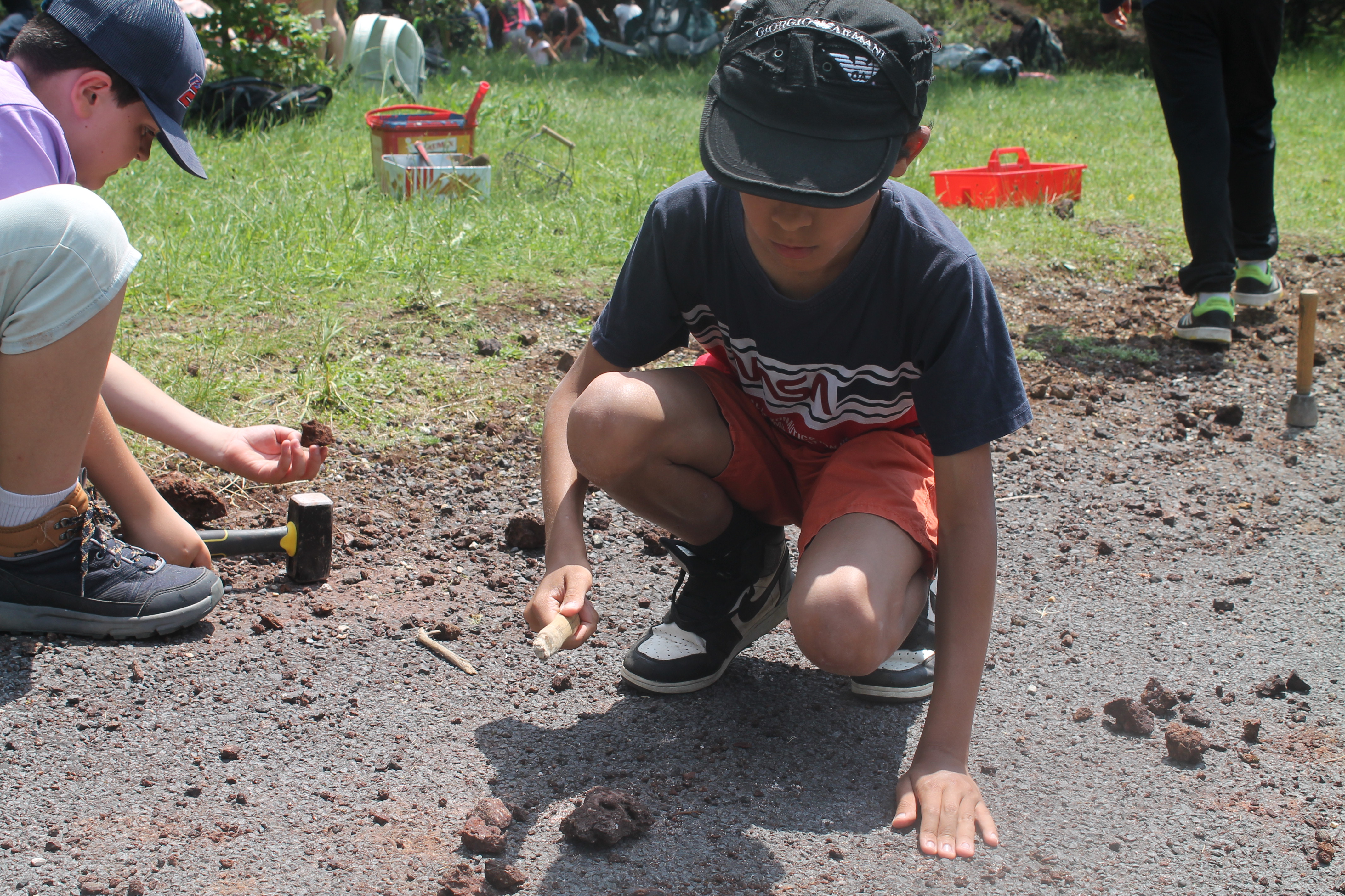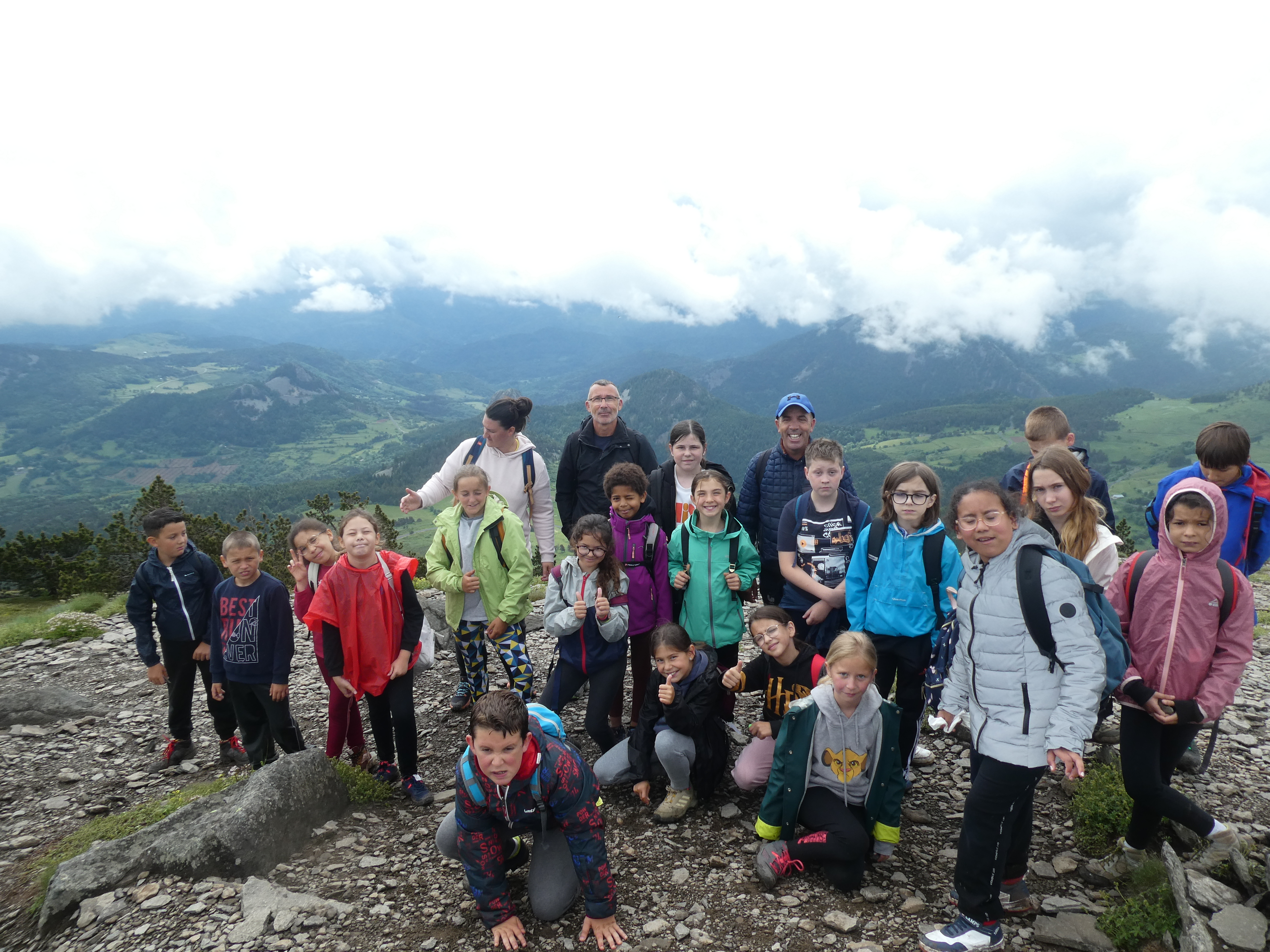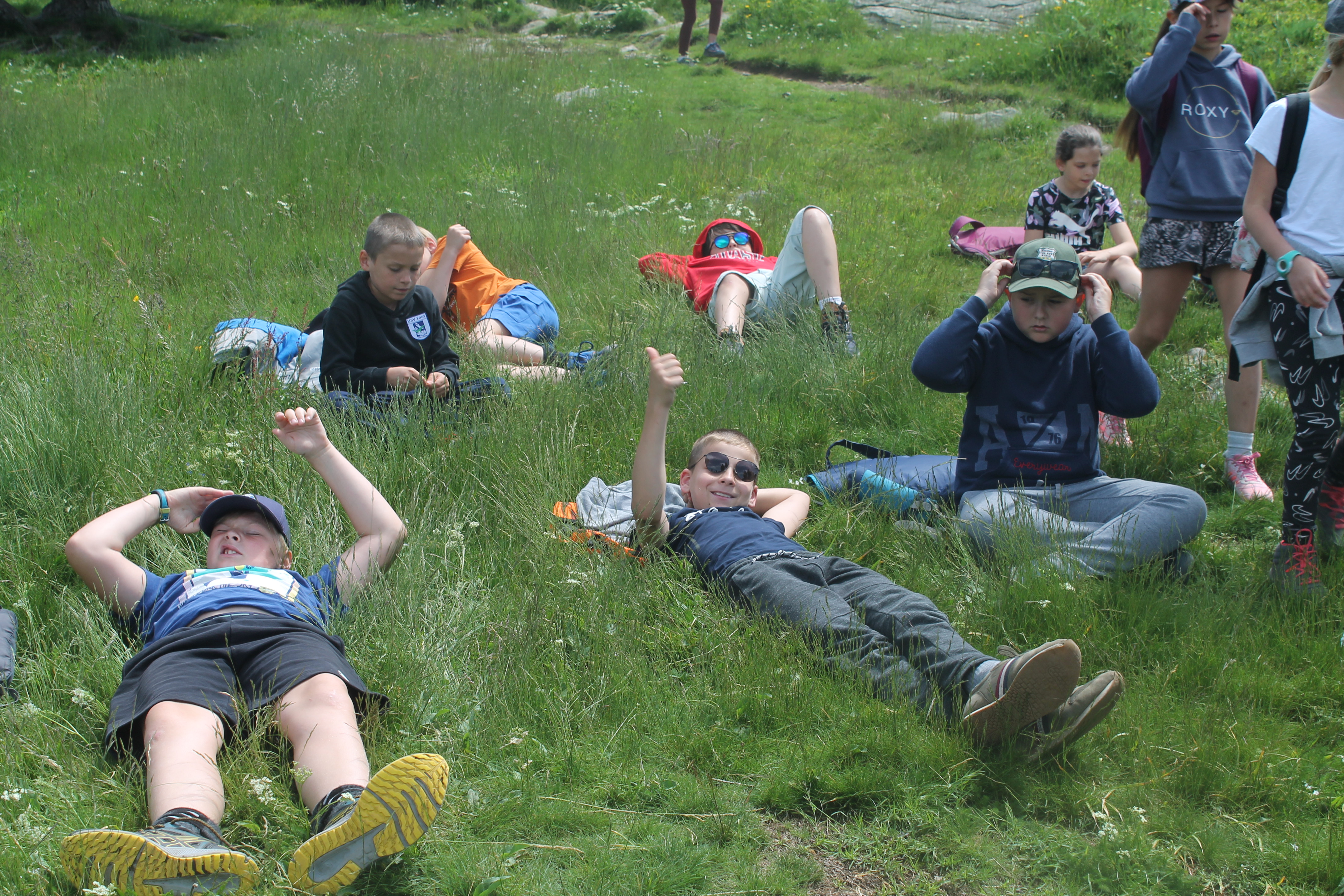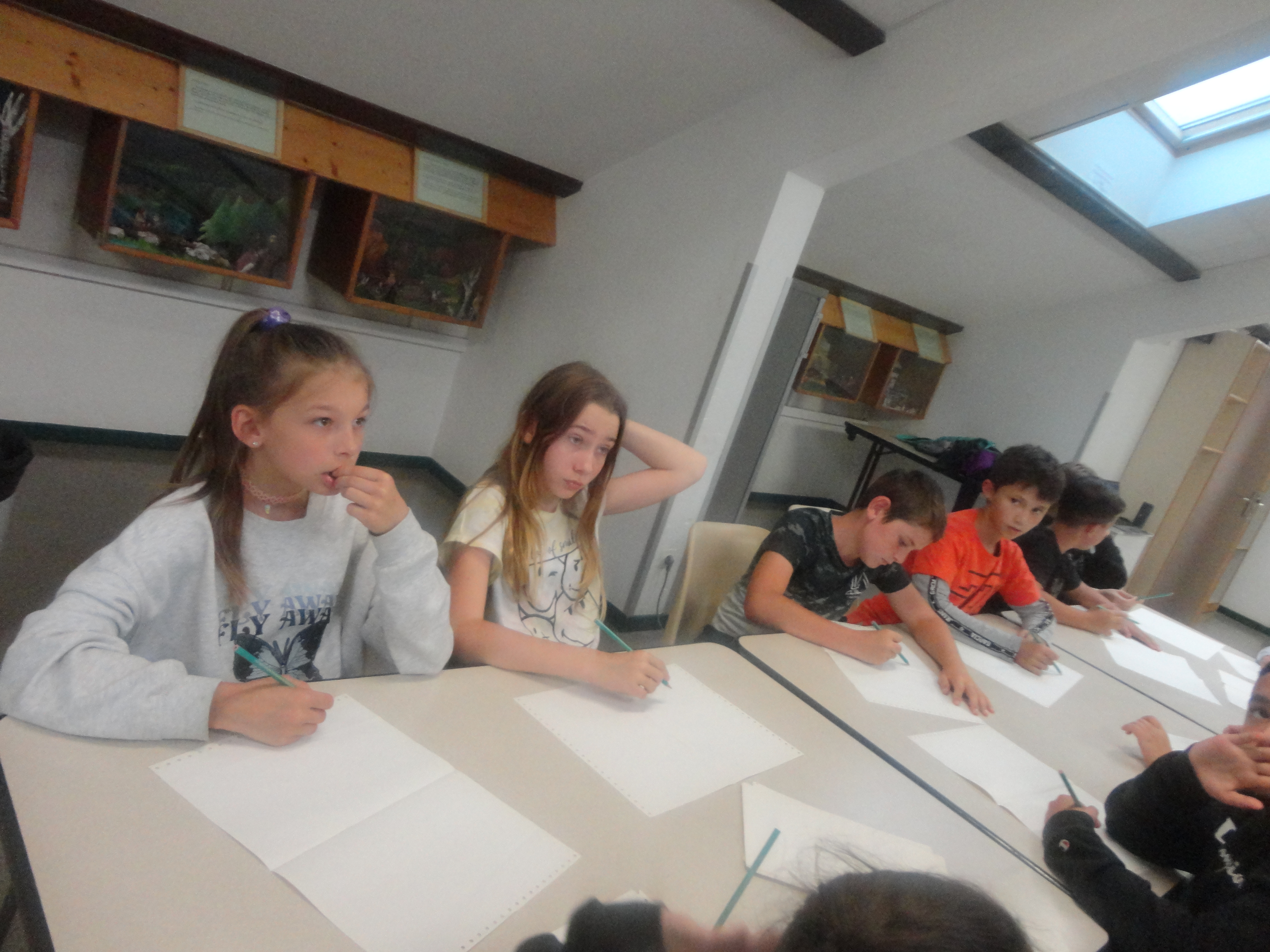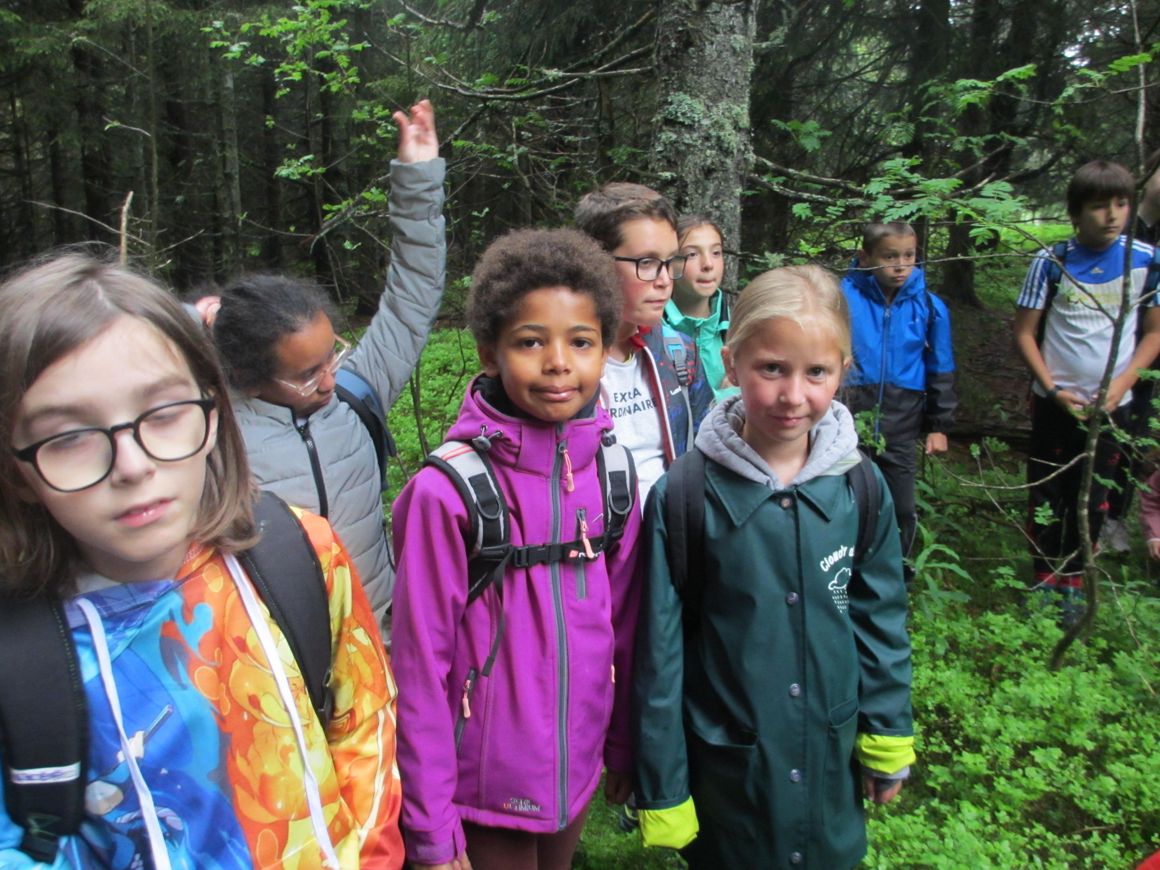 En sortant du bus, nous avons attaqué à gravir le Mont Gerbier de Jonc. En montant, nous nous sommes arrêtés quelques fois pour regarder le paysage puis, une fois arrivés au sommet, Hervé notre guide, nous a parlé du type de ce volcan et de ce qui l'entoure. A la fin, nous sommes redescendus puis nous avons pique-niqué au pied du volcan. Nous avons repris le bus pour aller au volcan du Cherche Muse où nous avons cassé des pierres (bombes volcaniques), que nous avons ramassées à l'aide d'Hervé et de Marylou une autre guide du chalet. En reprenant le bus, nous avons pris la direction du Lac d'Issarlés où nous avons parlé du volcan qu'il y avait dessous avec les deux guides. Nous avons goutté puis nous avons joué sur le sable. Nous avons repris le bus en direction du chalet où nous avons pris une douche, le soir nous avons mangé : une soupe de légumes, une poêlée forestière, de la pizza et une mousse au chocolat.