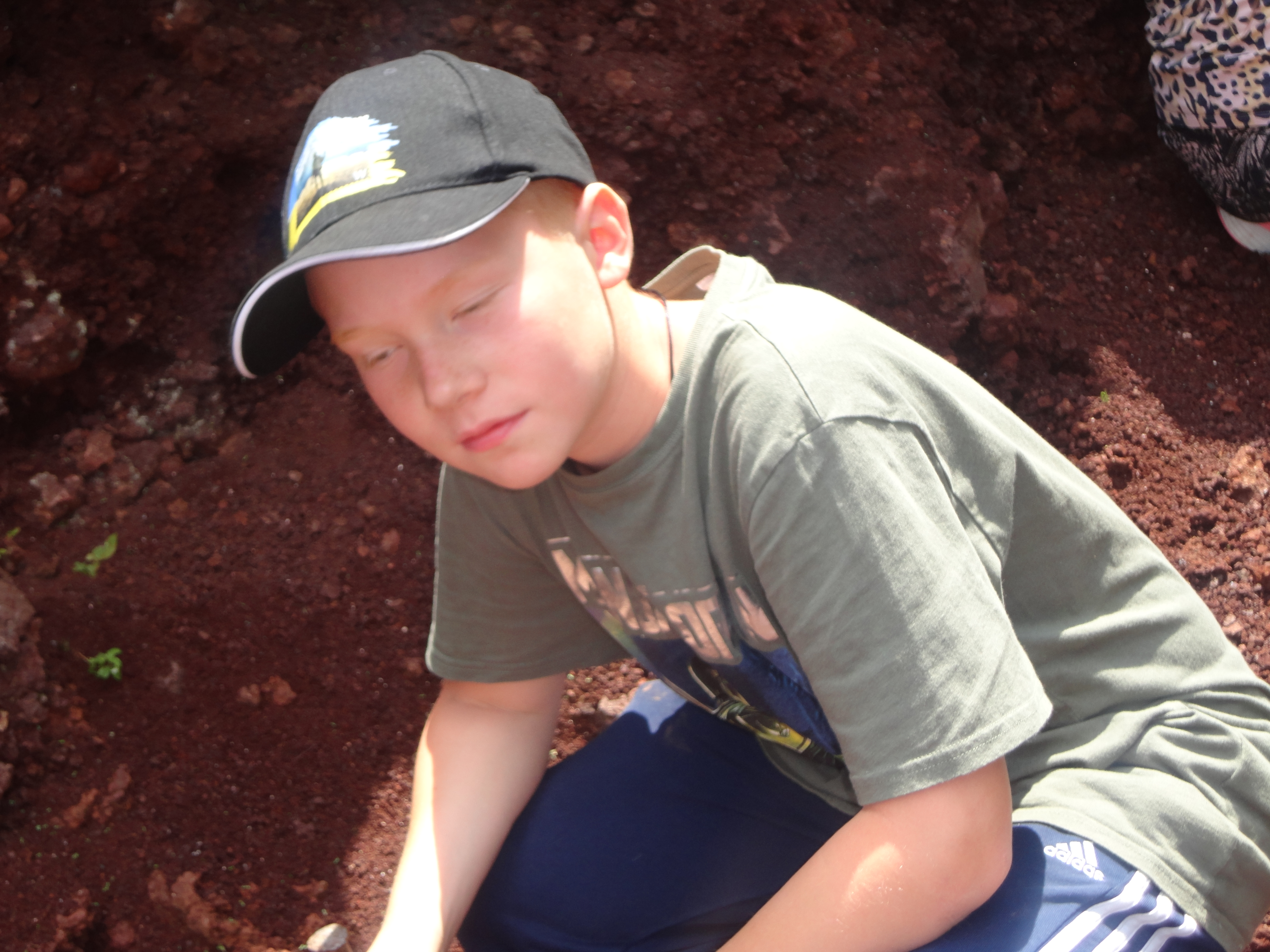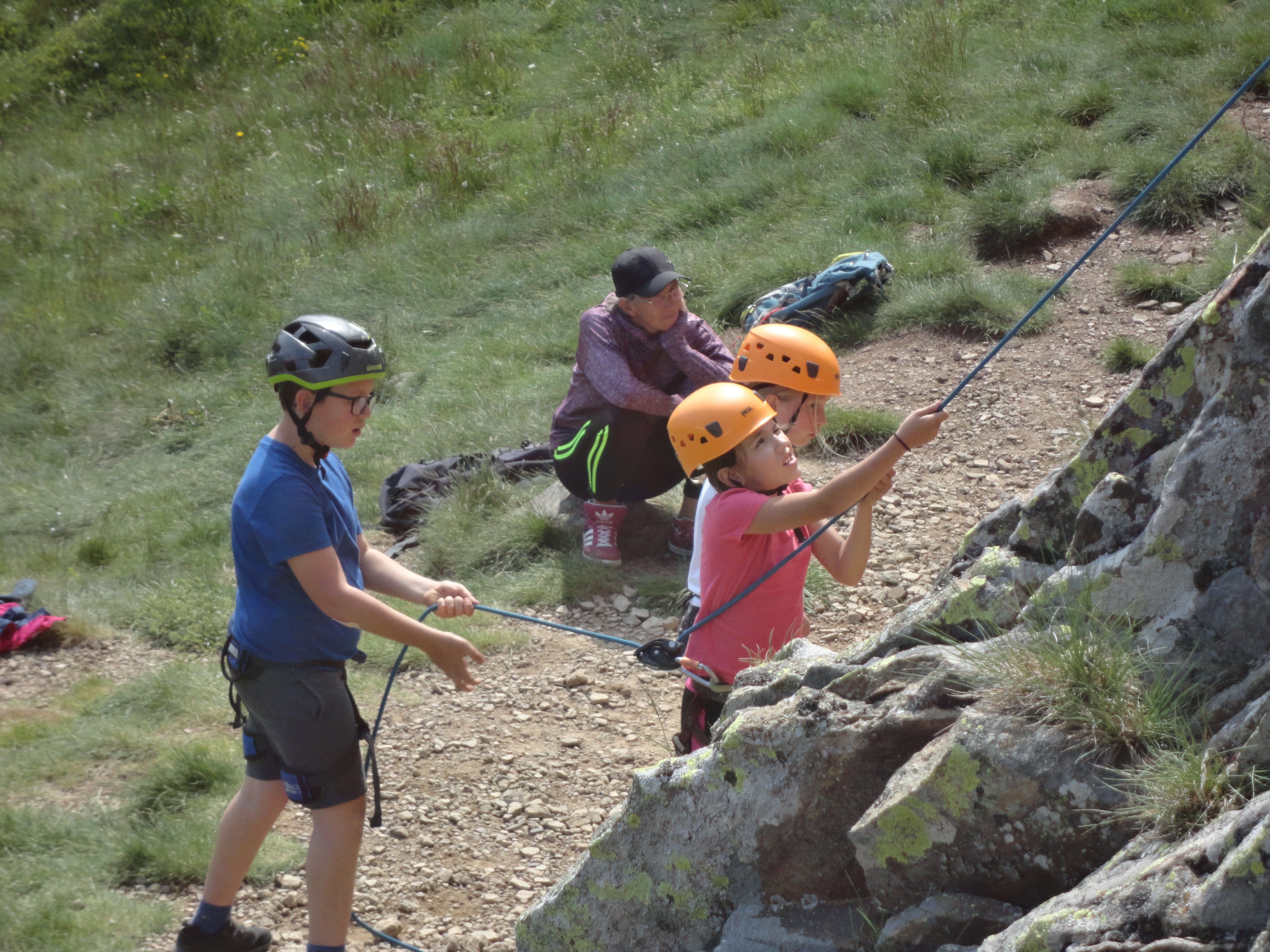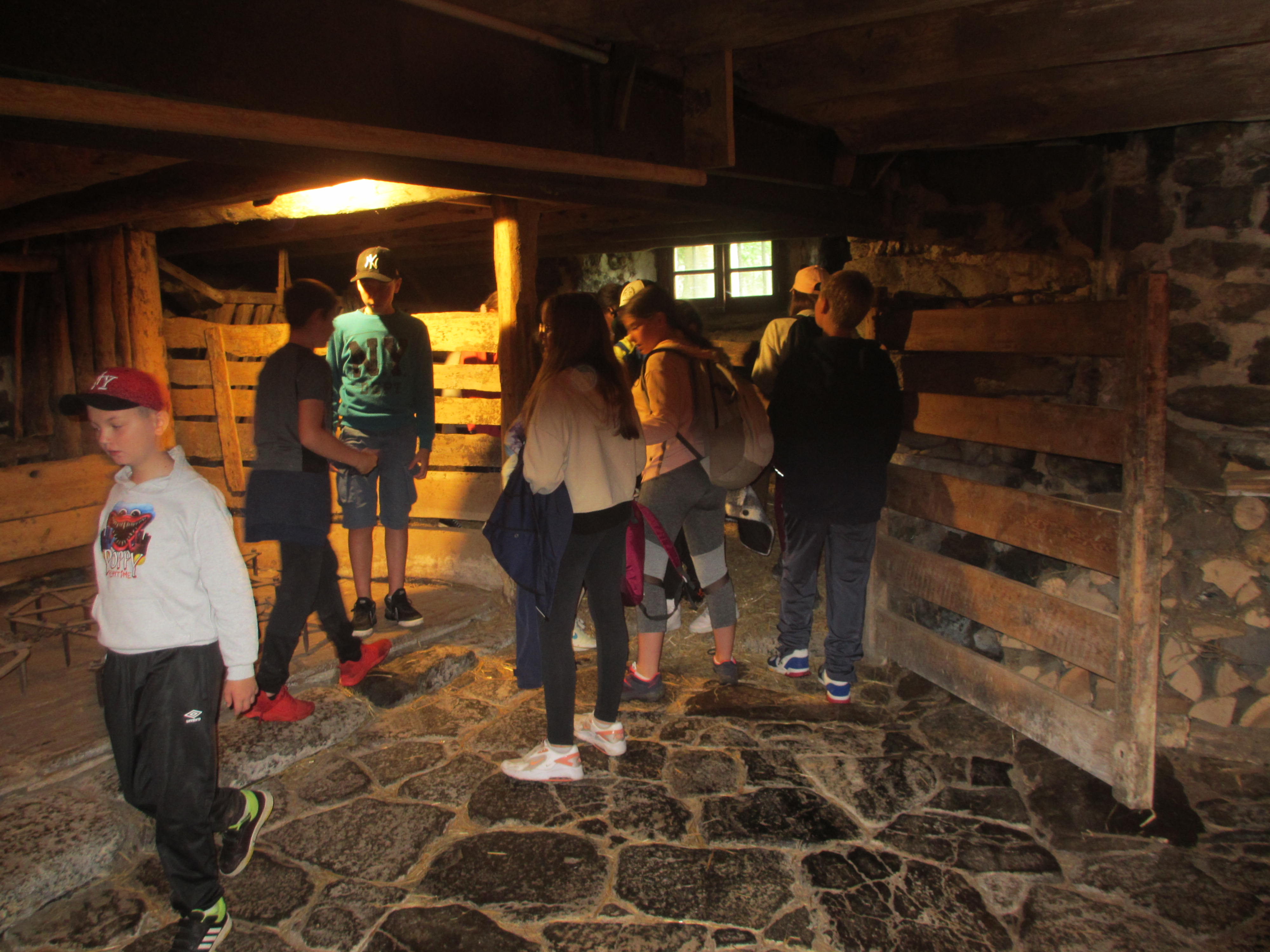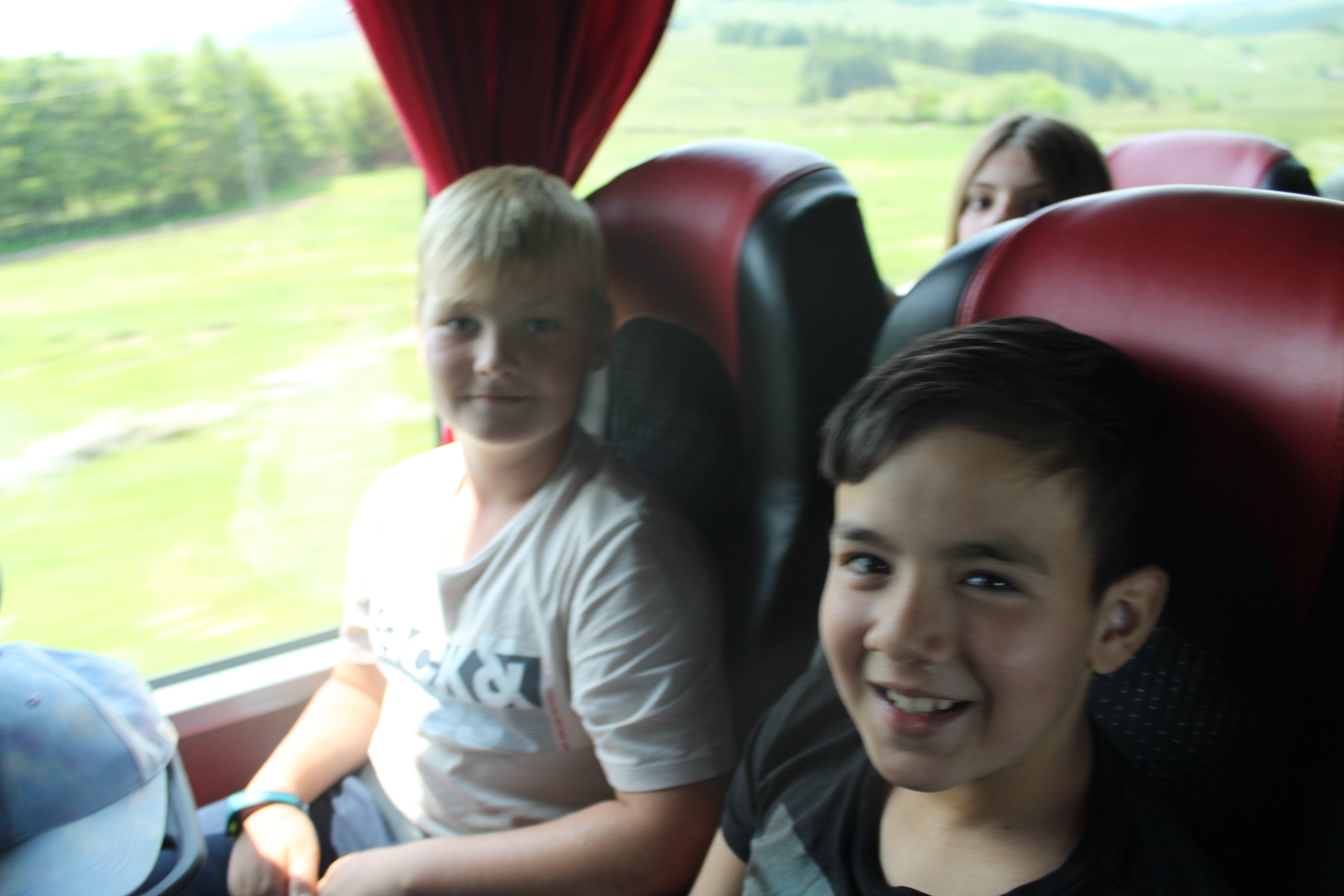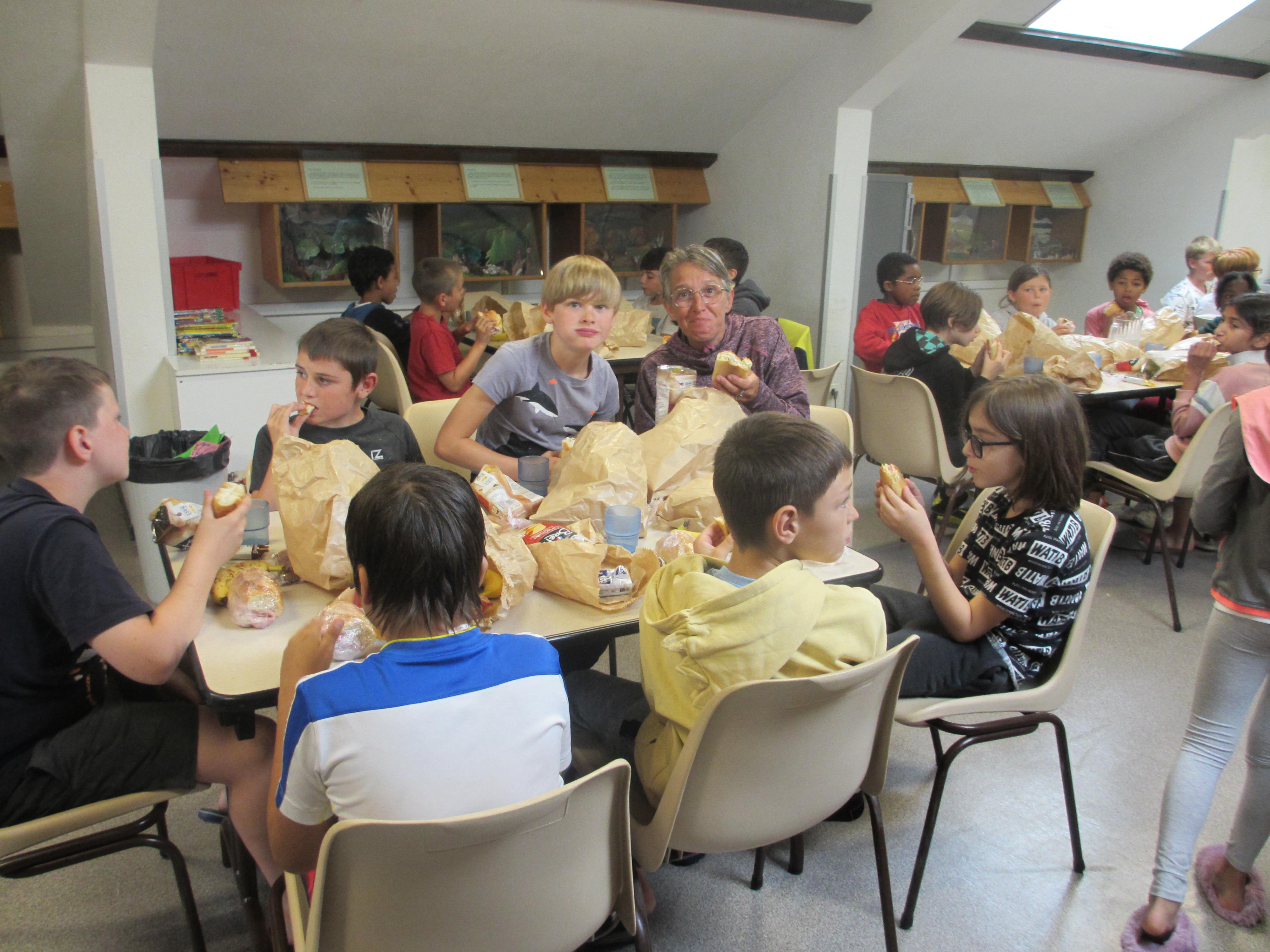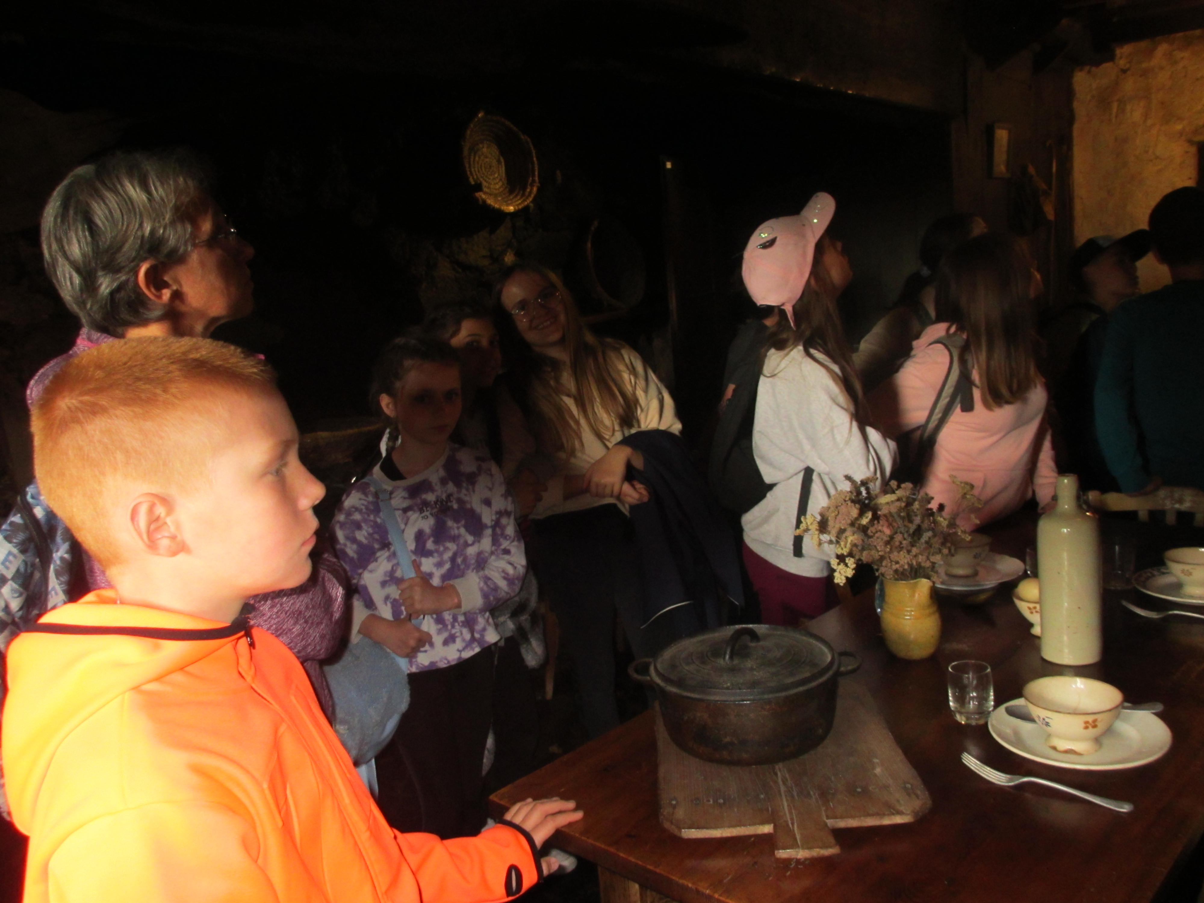 En sortant du bus, nous avons attaqué à gravir le Mont Gerbier de Jonc. En montant, nous nous sommes arrêtés quelques fois pour regarder le paysage puis, une fois arrivés au sommet, Hervé notre guide, nous a parlé du type de ce volcan et de ce qui l'entoure. A la fin, nous sommes redescendus puis nous avons pique-niqué au pied du volcan. Nous avons repris le bus pour aller au volcan du Cherche Muse où nous avons cassé des pierres (bombes volcaniques), que nous avons ramassées à l'aide d'Hervé et de Marylou une autre guide du chalet. En reprenant le bus, nous avons pris la direction du Lac d'Issarlés où nous avons parlé du volcan qu'il y avait dessous avec les deux guides. Nous avons goutté puis nous avons joué sur le sable. Nous avons repris le bus en direction du chalet où nous avons pris une douche, le soir nous avons mangé : une soupe de légumes, une poêlée forestière, de la pizza et une mousse au chocolat.