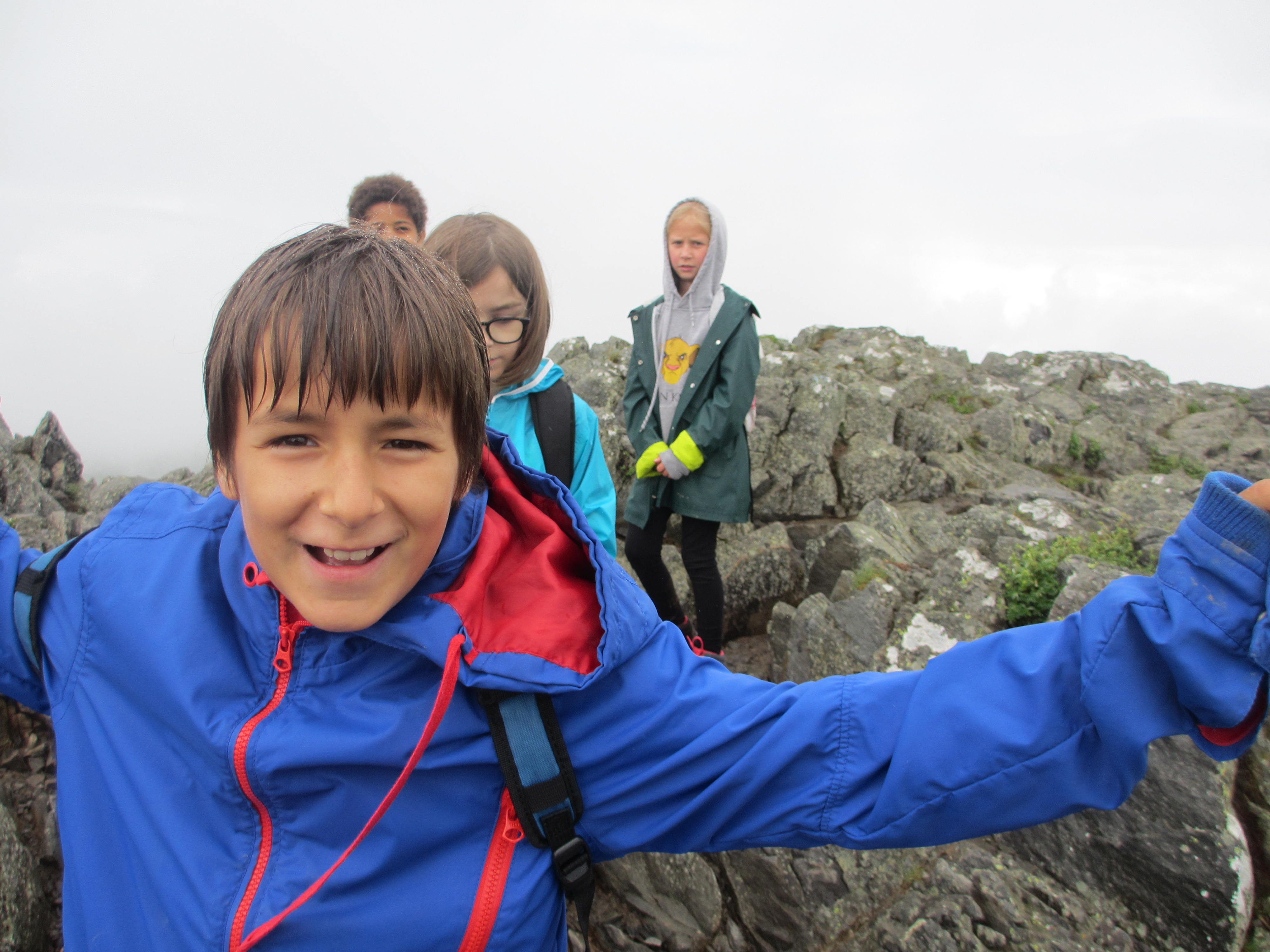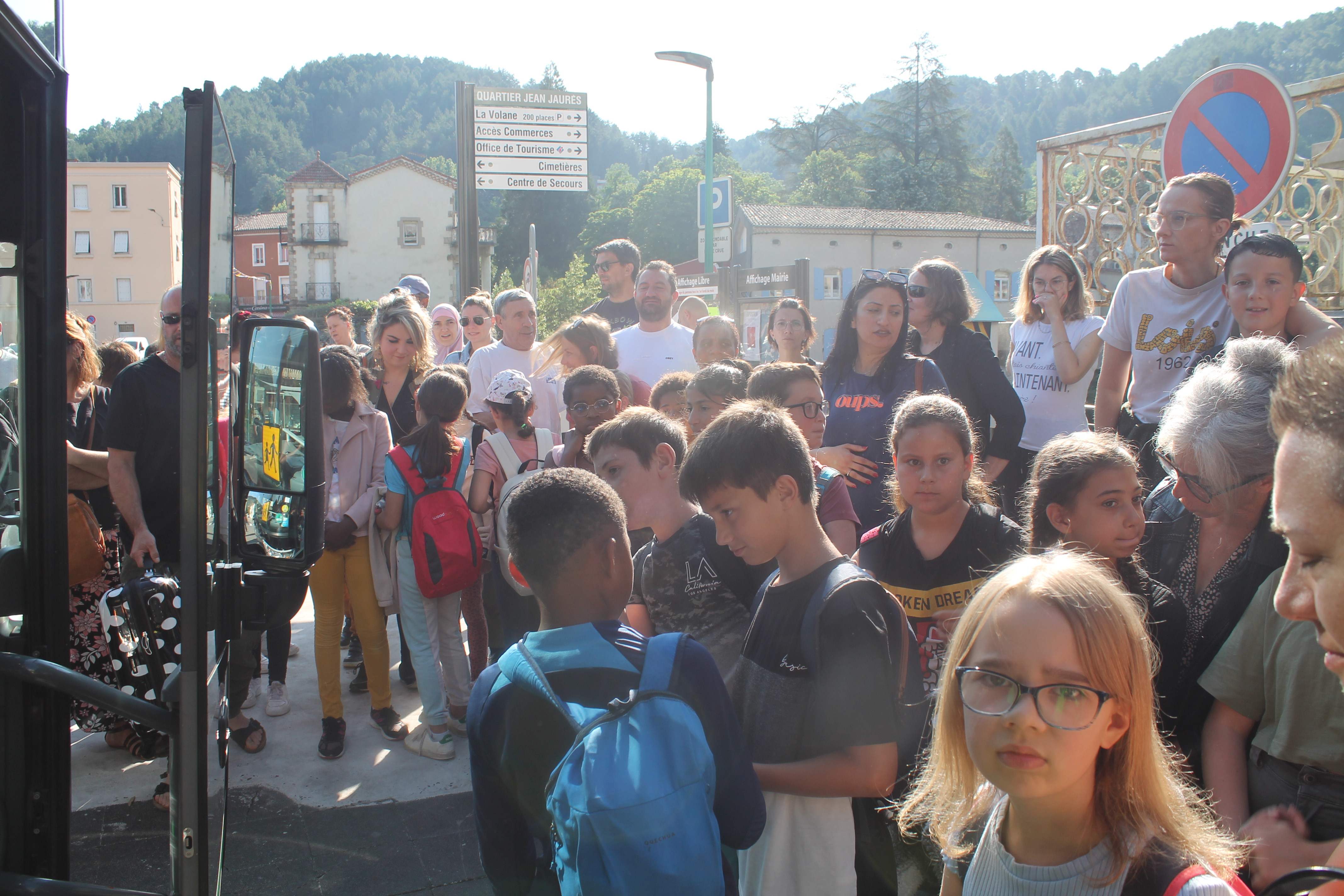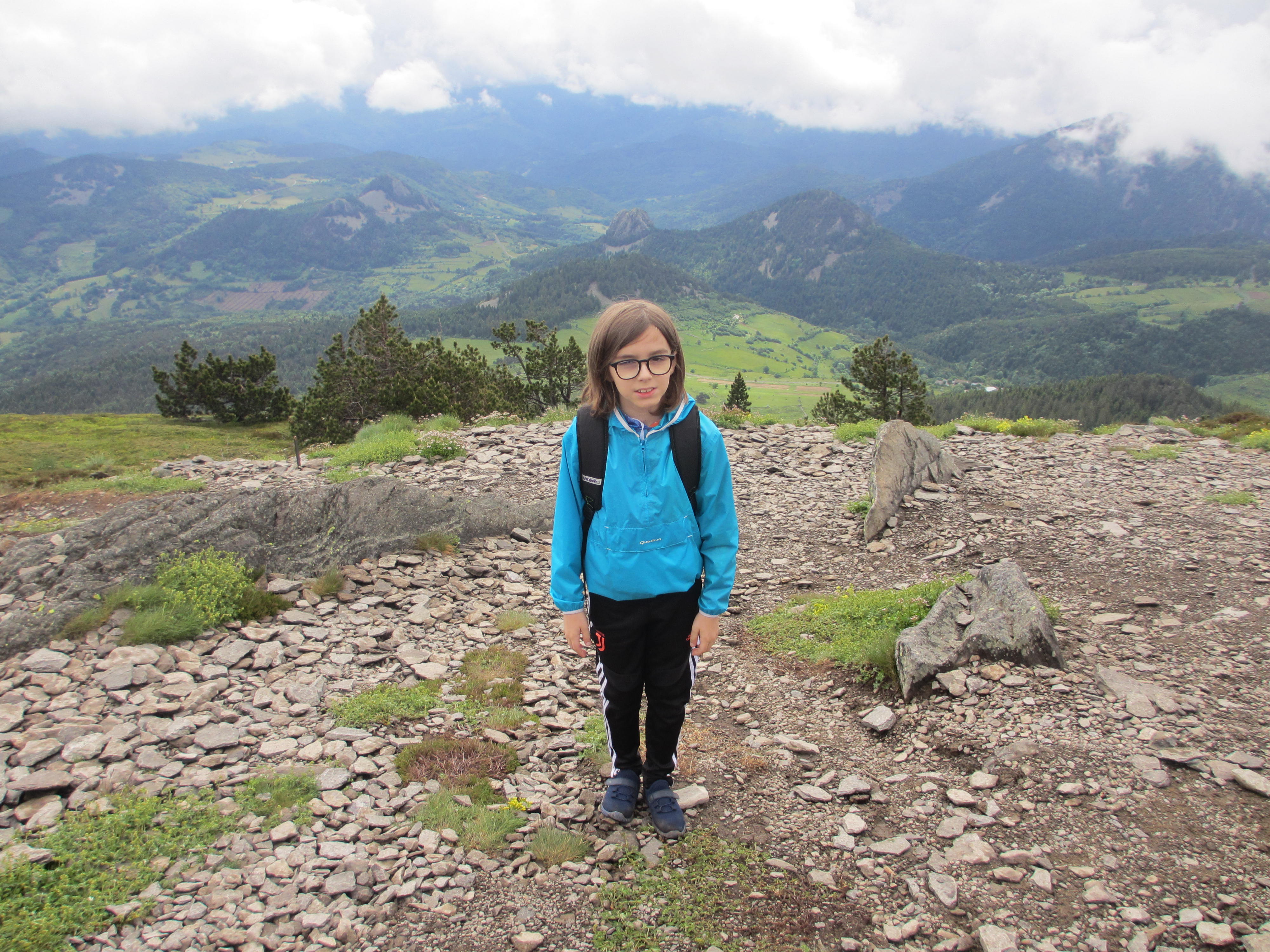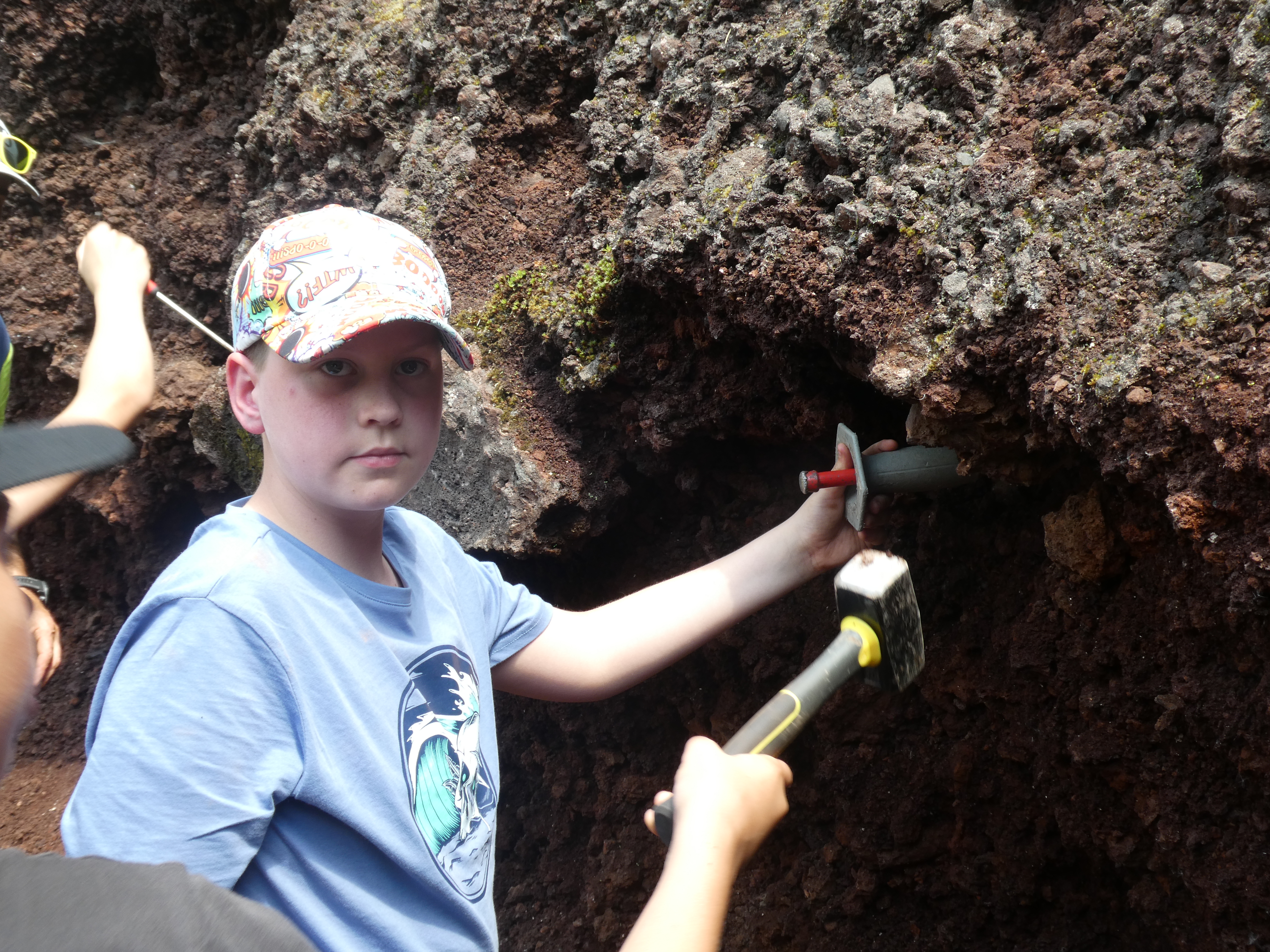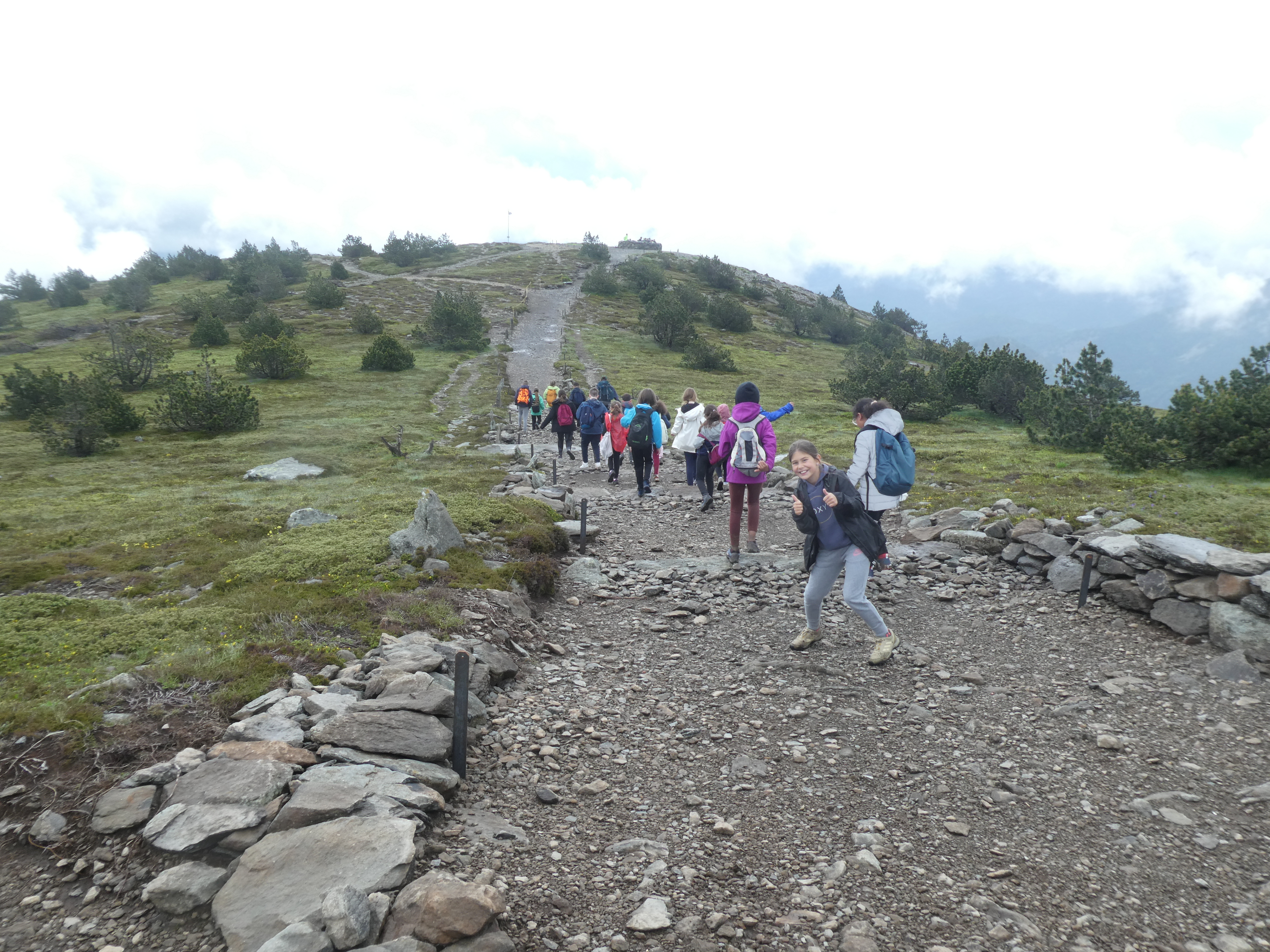 En sortant du bus, nous avons attaqué à gravir le Mont Gerbier de Jonc. En montant, nous nous sommes arrêtés quelques fois pour regarder le paysage puis, une fois arrivés au sommet, Hervé notre guide, nous a parlé du type de ce volcan et de ce qui l'entoure. A la fin, nous sommes redescendus puis nous avons pique-niqué au pied du volcan. Nous avons repris le bus pour aller au volcan du Cherche Muse où nous avons cassé des pierres (bombes volcaniques), que nous avons ramassées à l'aide d'Hervé et de Marylou une autre guide du chalet. En reprenant le bus, nous avons pris la direction du Lac d'Issarlés où nous avons parlé du volcan qu'il y avait dessous avec les deux guides. Nous avons goutté puis nous avons joué sur le sable. Nous avons repris le bus en direction du chalet où nous avons pris une douche, le soir nous avons mangé : une soupe de légumes, une poêlée forestière, de la pizza et une mousse au chocolat.