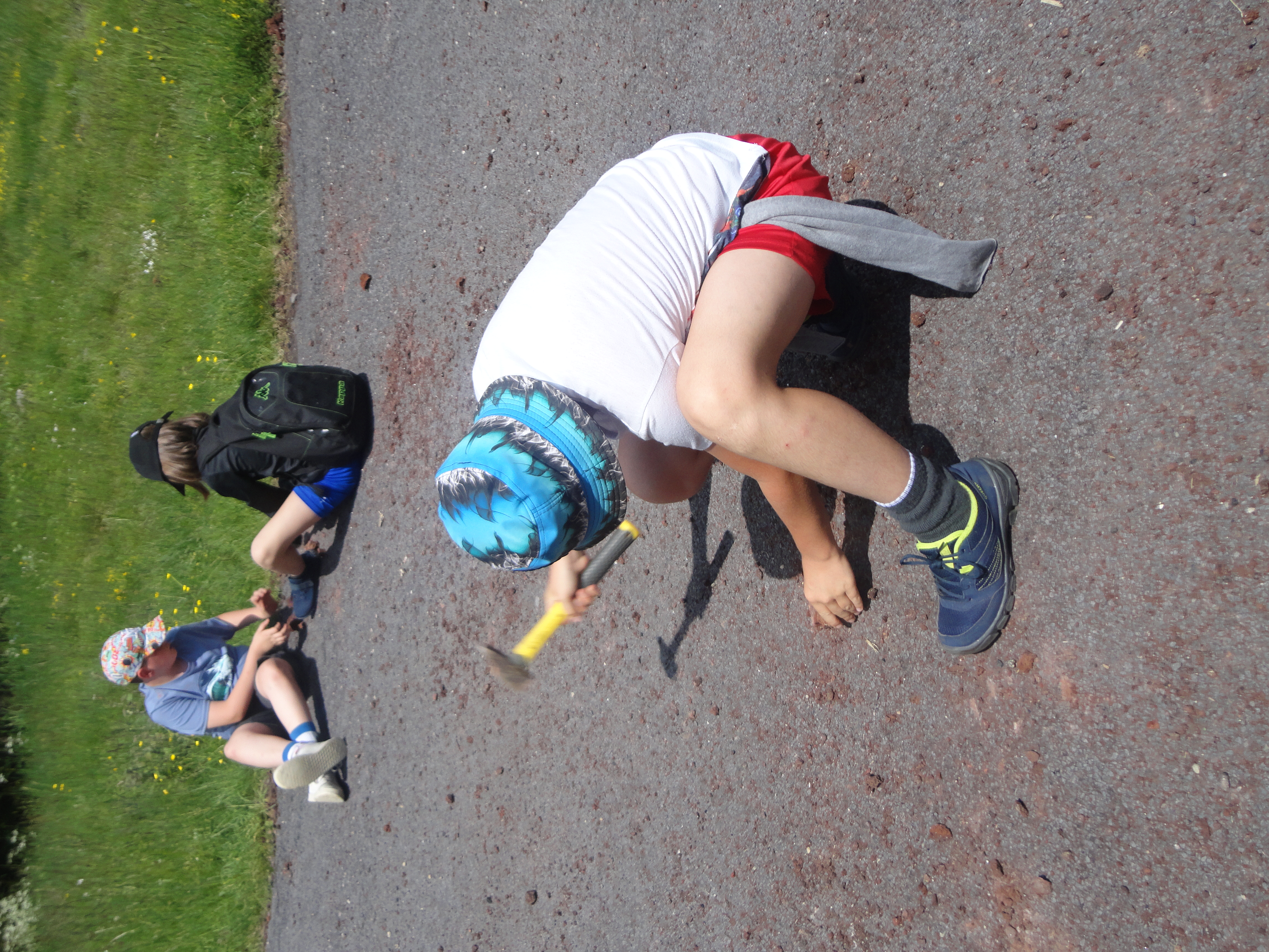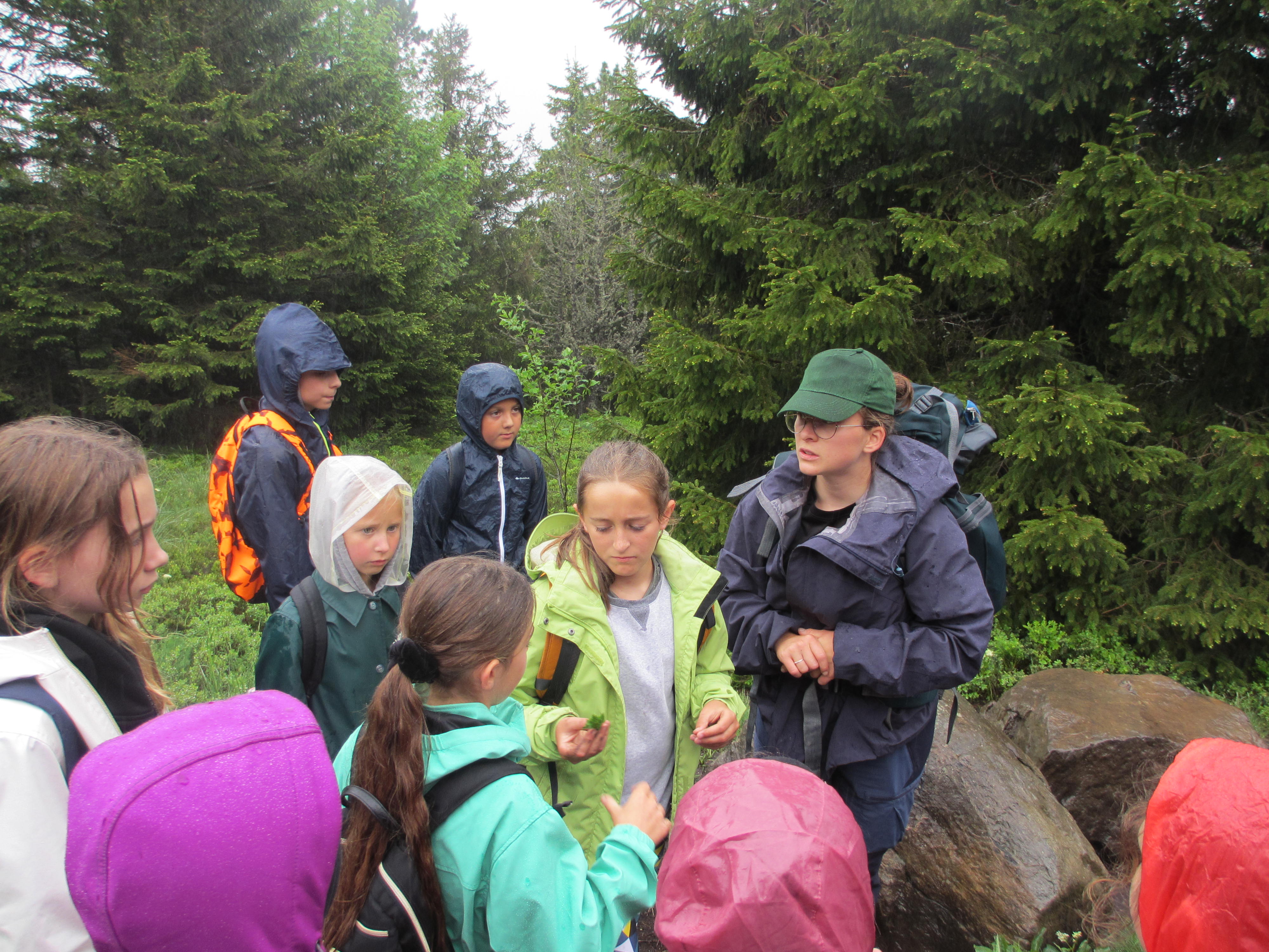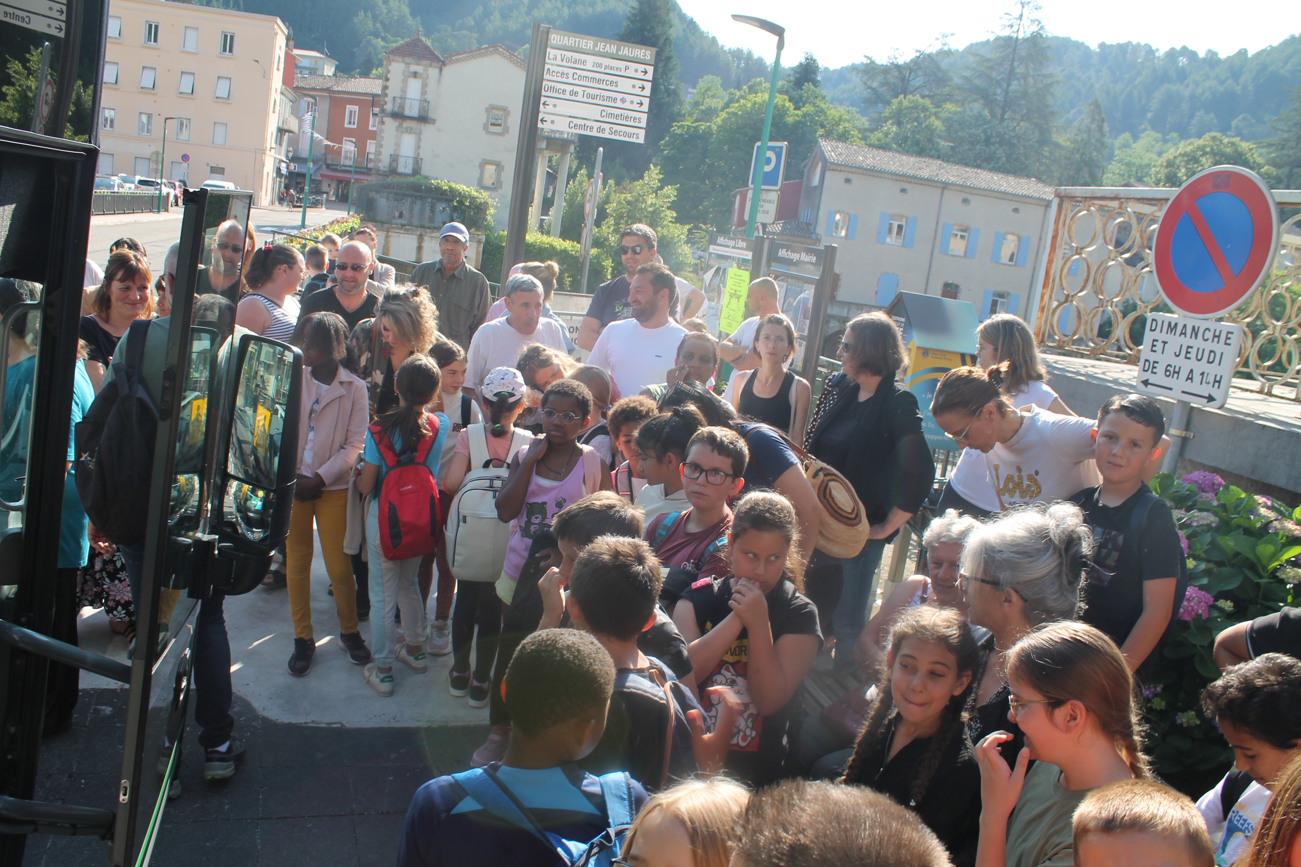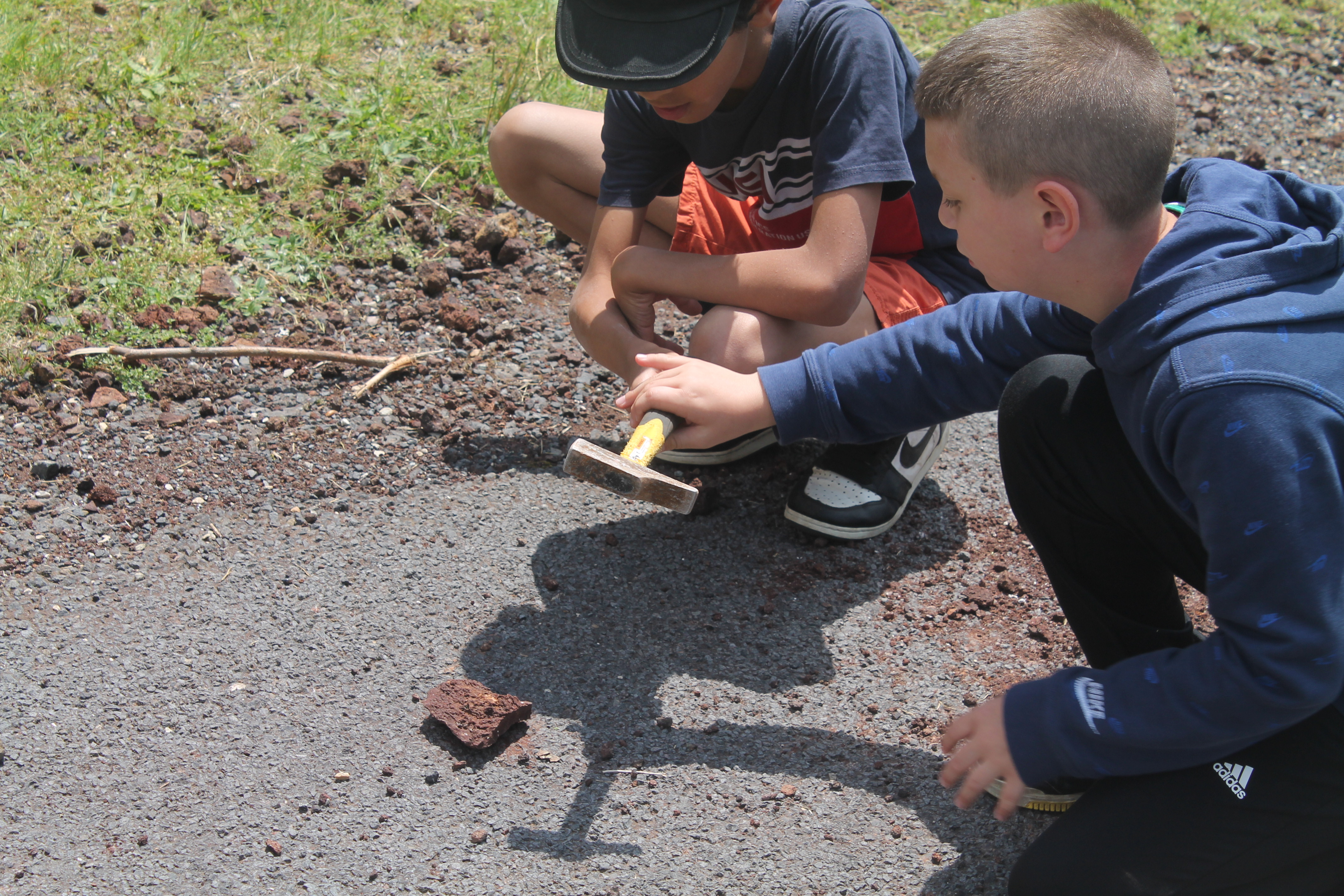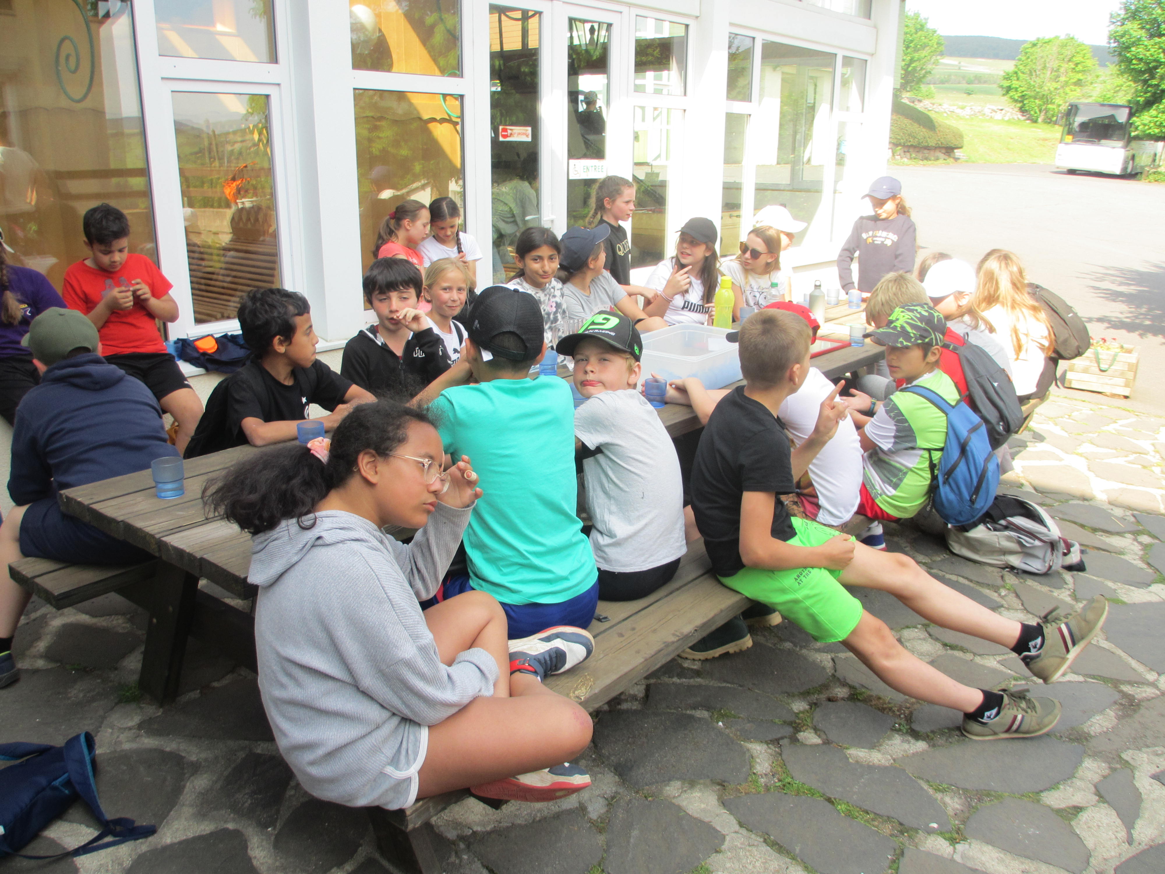 En sortant du bus, nous avons attaqué à gravir le Mont Gerbier de Jonc. En montant, nous nous sommes arrêtés quelques fois pour regarder le paysage puis, une fois arrivés au sommet, Hervé notre guide, nous a parlé du type de ce volcan et de ce qui l'entoure. A la fin, nous sommes redescendus puis nous avons pique-niqué au pied du volcan. Nous avons repris le bus pour aller au volcan du Cherche Muse où nous avons cassé des pierres (bombes volcaniques), que nous avons ramassées à l'aide d'Hervé et de Marylou une autre guide du chalet. En reprenant le bus, nous avons pris la direction du Lac d'Issarlés où nous avons parlé du volcan qu'il y avait dessous avec les deux guides. Nous avons goutté puis nous avons joué sur le sable. Nous avons repris le bus en direction du chalet où nous avons pris une douche, le soir nous avons mangé : une soupe de légumes, une poêlée forestière, de la pizza et une mousse au chocolat.