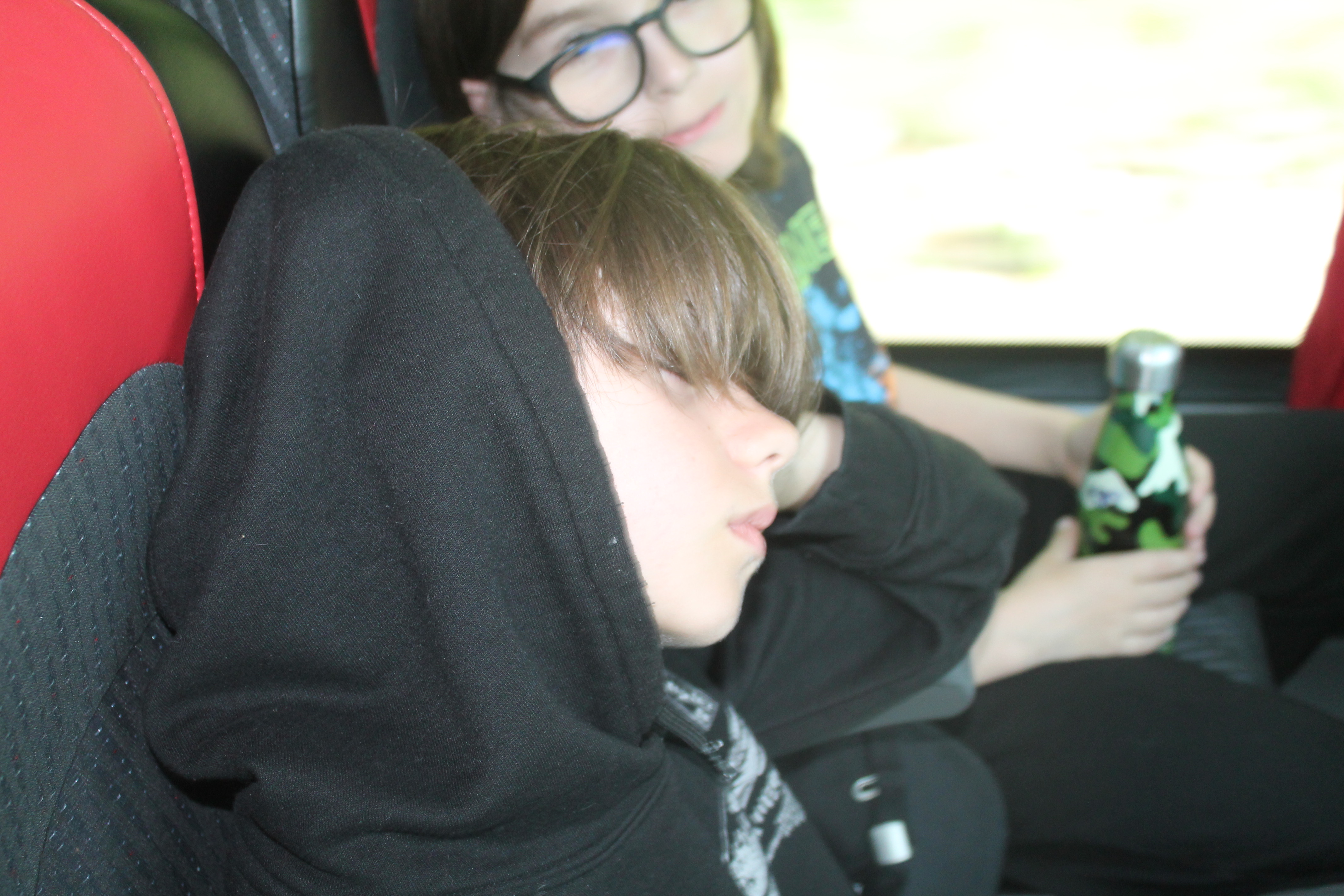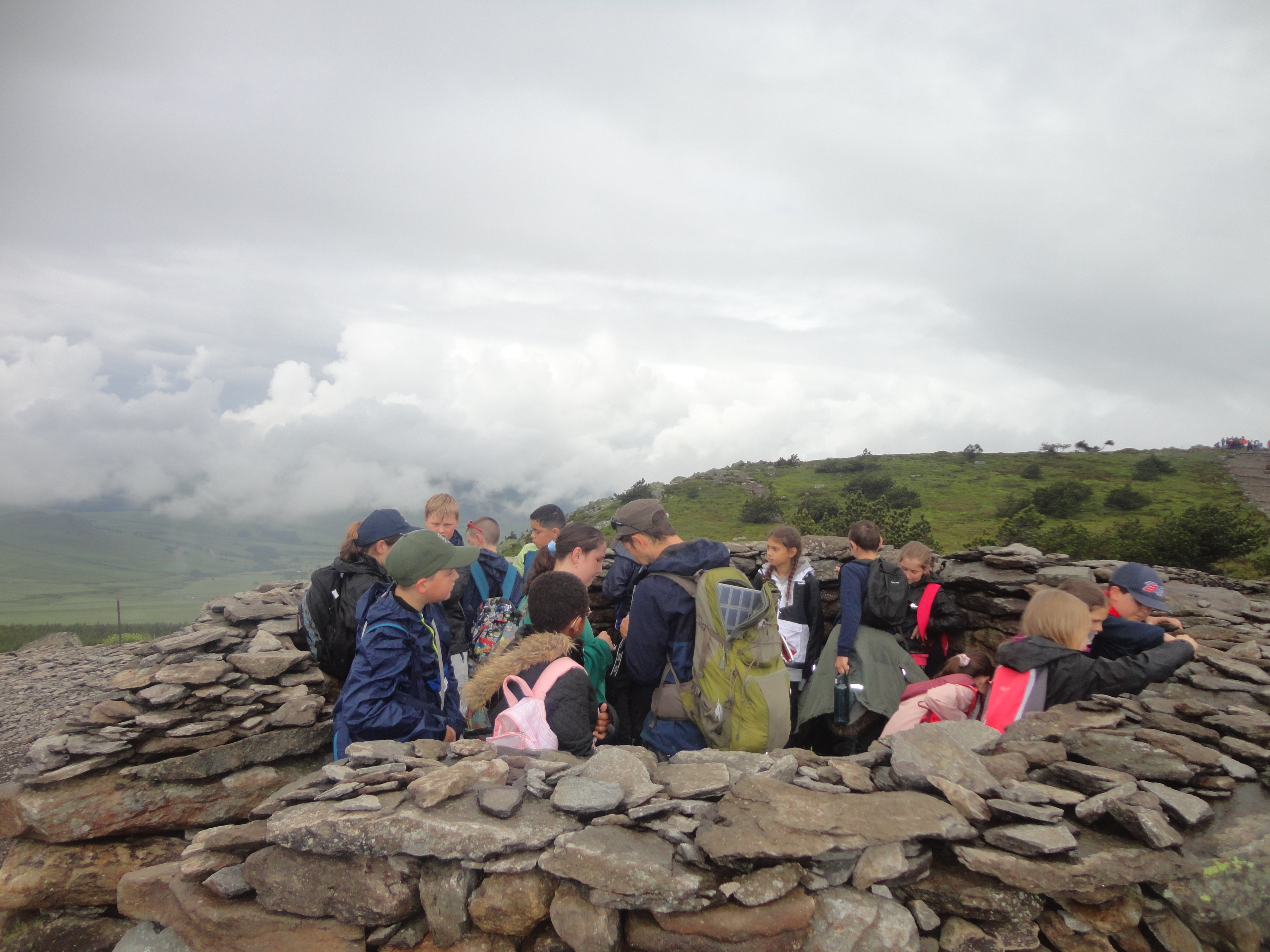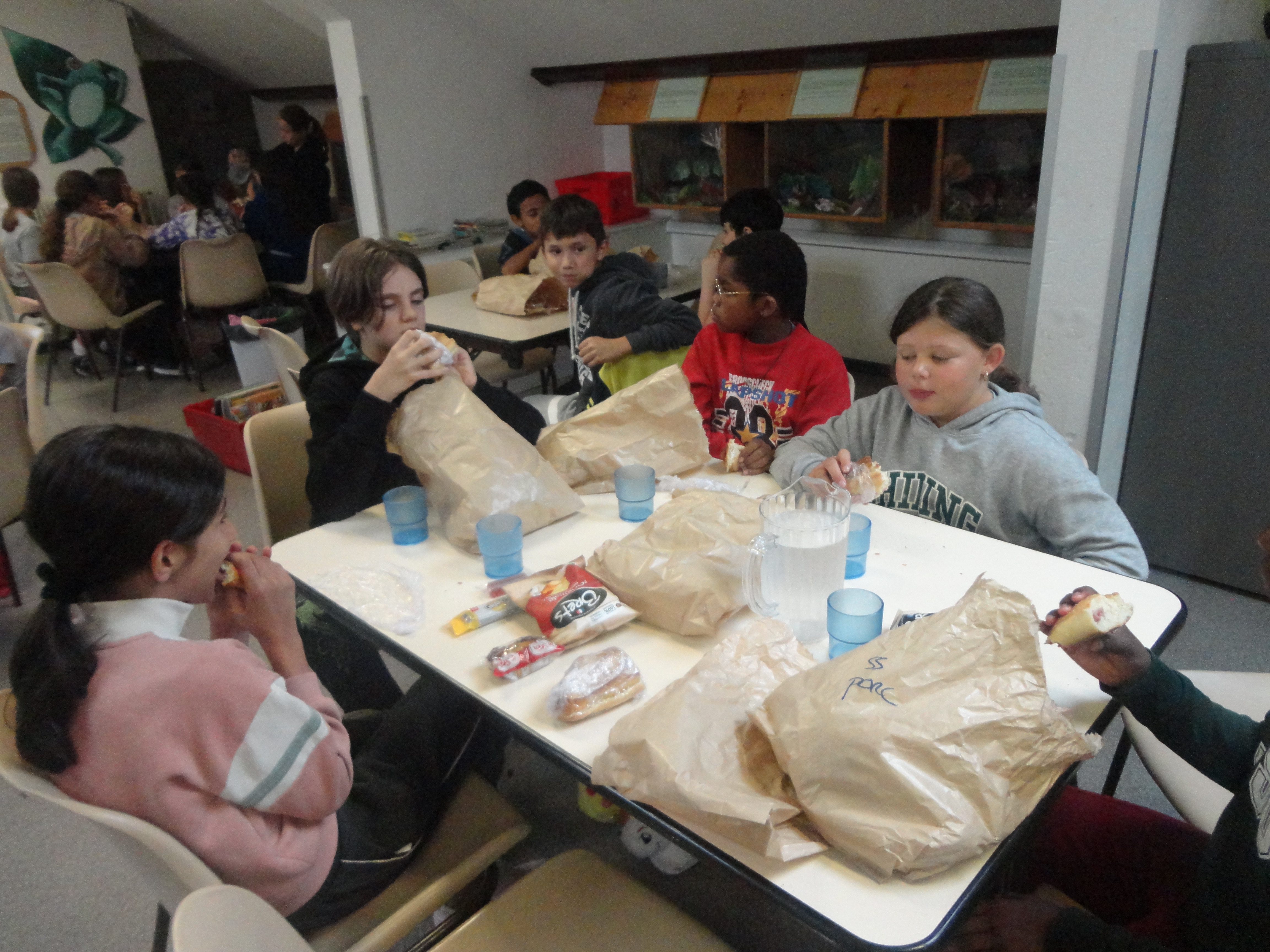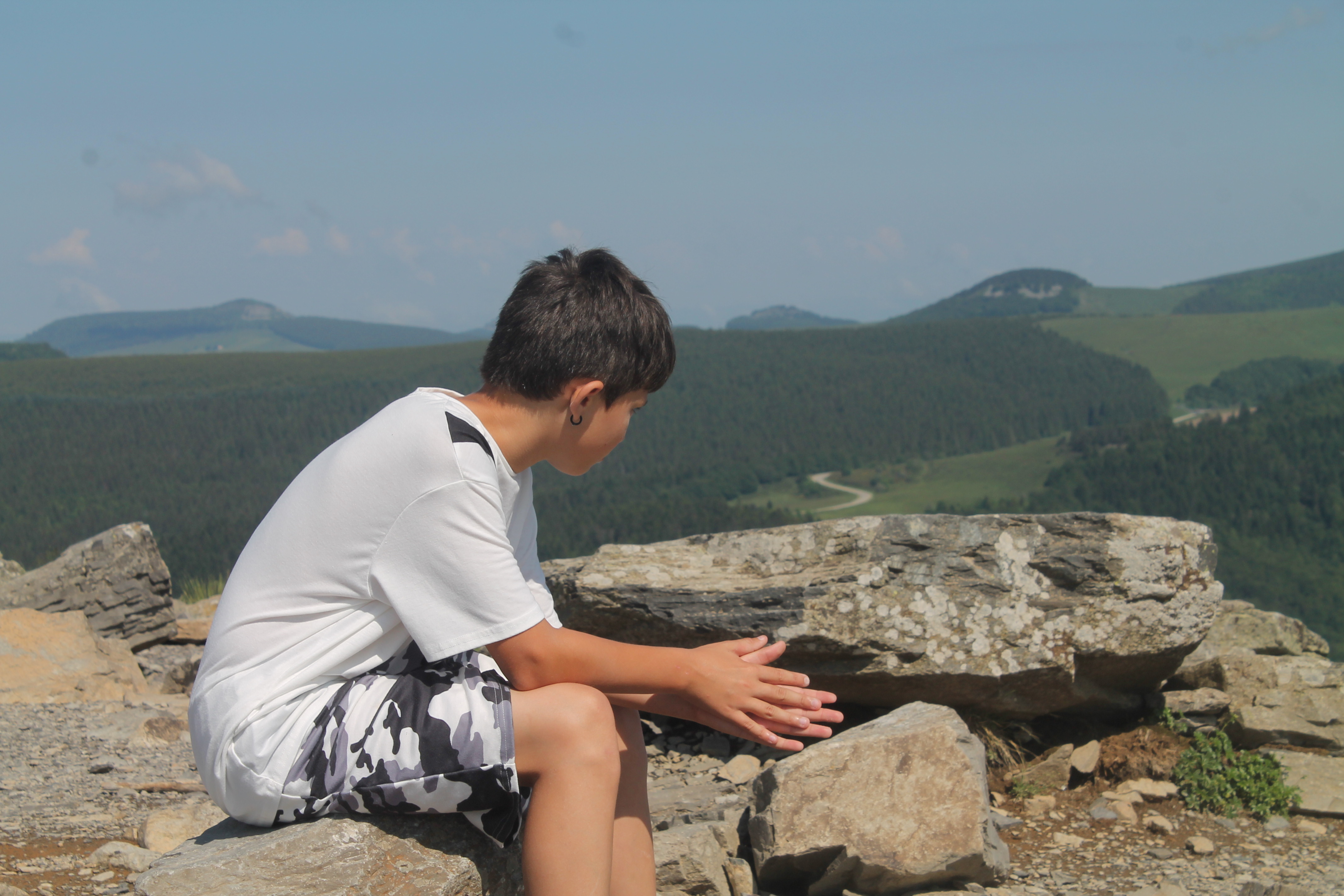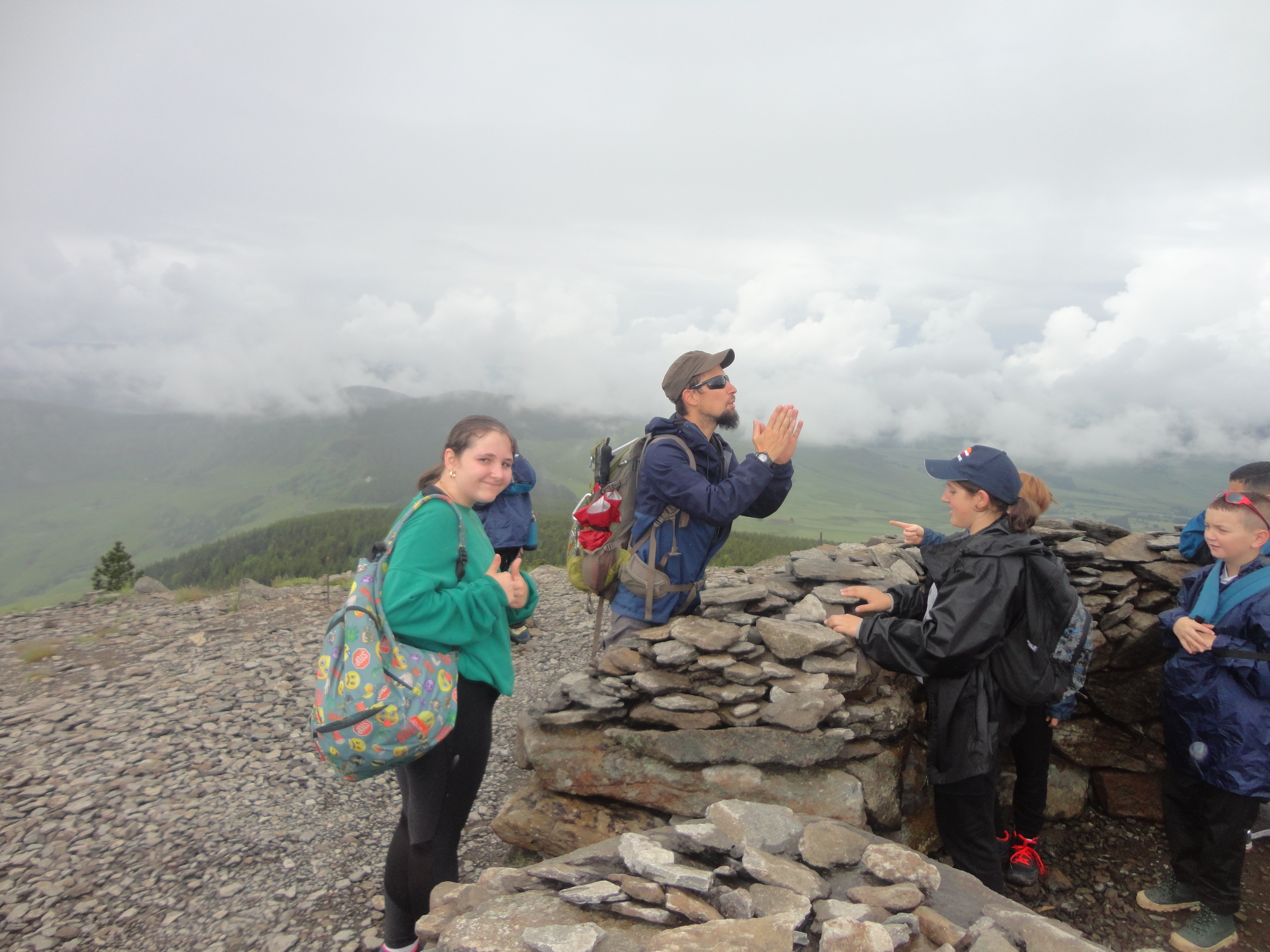 En sortant du bus, nous avons attaqué à gravir le Mont Gerbier de Jonc. En montant, nous nous sommes arrêtés quelques fois pour regarder le paysage puis, une fois arrivés au sommet, Hervé notre guide, nous a parlé du type de ce volcan et de ce qui l'entoure. A la fin, nous sommes redescendus puis nous avons pique-niqué au pied du volcan. Nous avons repris le bus pour aller au volcan du Cherche Muse où nous avons cassé des pierres (bombes volcaniques), que nous avons ramassées à l'aide d'Hervé et de Marylou une autre guide du chalet. En reprenant le bus, nous avons pris la direction du Lac d'Issarlés où nous avons parlé du volcan qu'il y avait dessous avec les deux guides. Nous avons goutté puis nous avons joué sur le sable. Nous avons repris le bus en direction du chalet où nous avons pris une douche, le soir nous avons mangé : une soupe de légumes, une poêlée forestière, de la pizza et une mousse au chocolat.