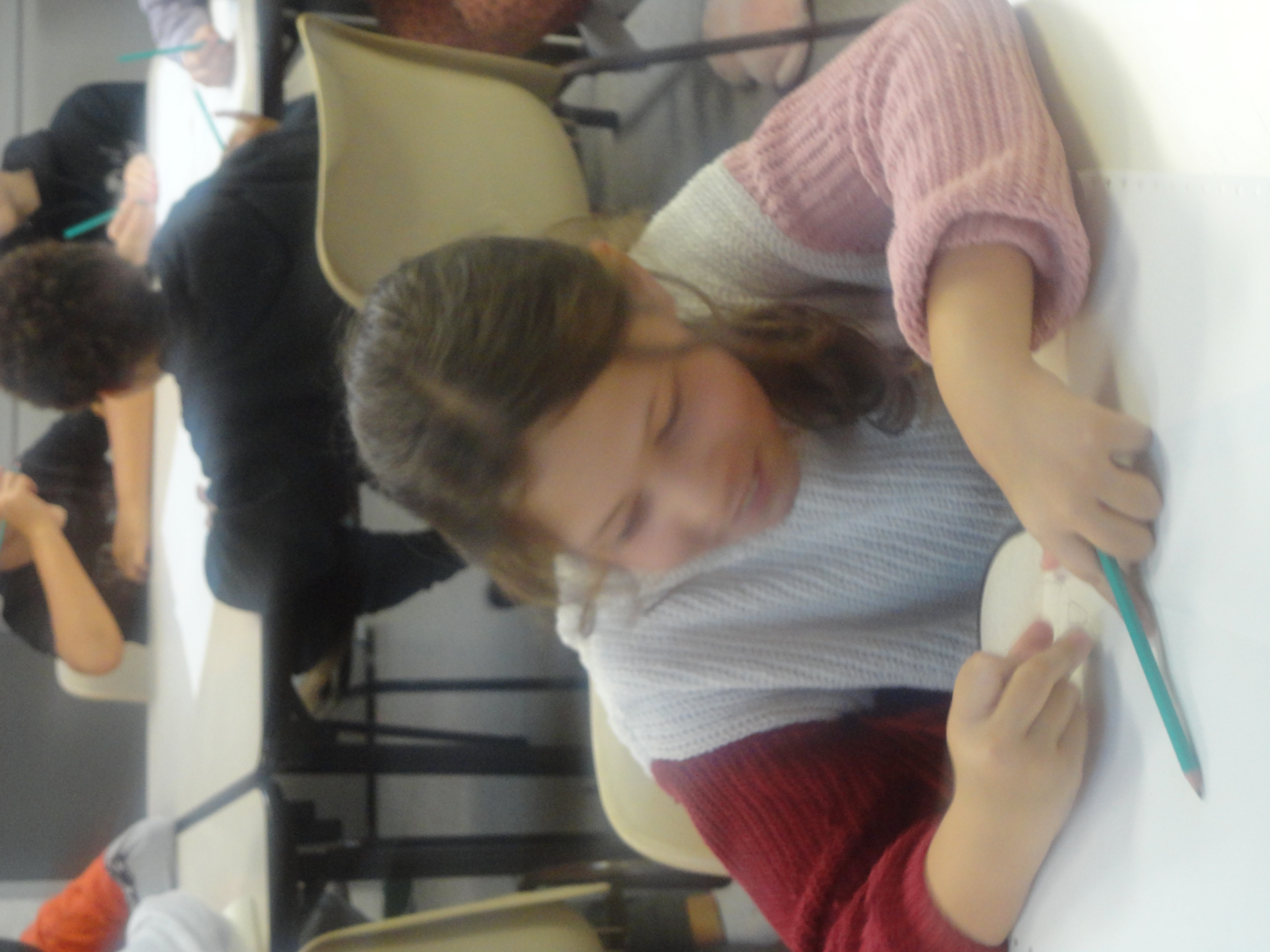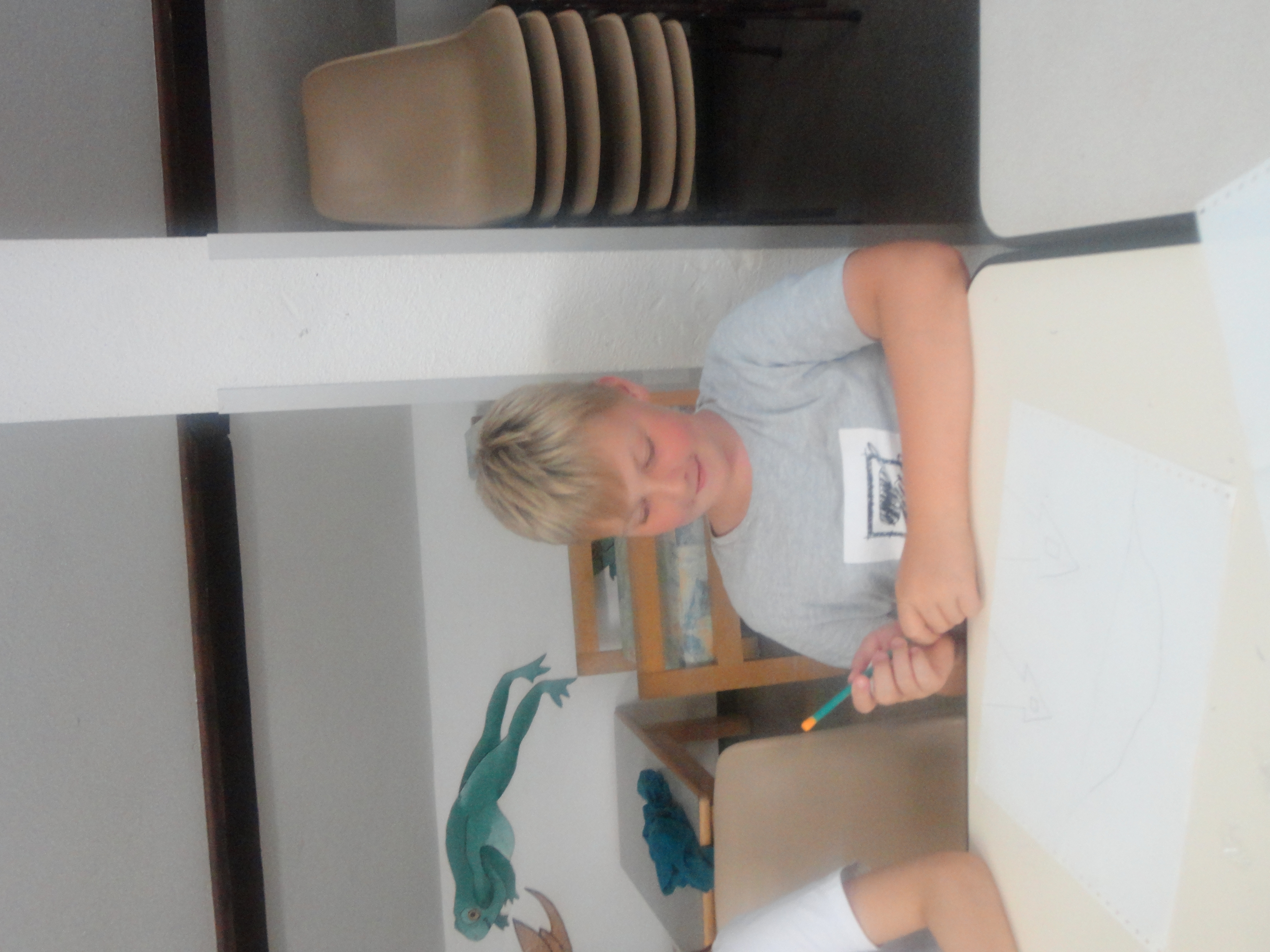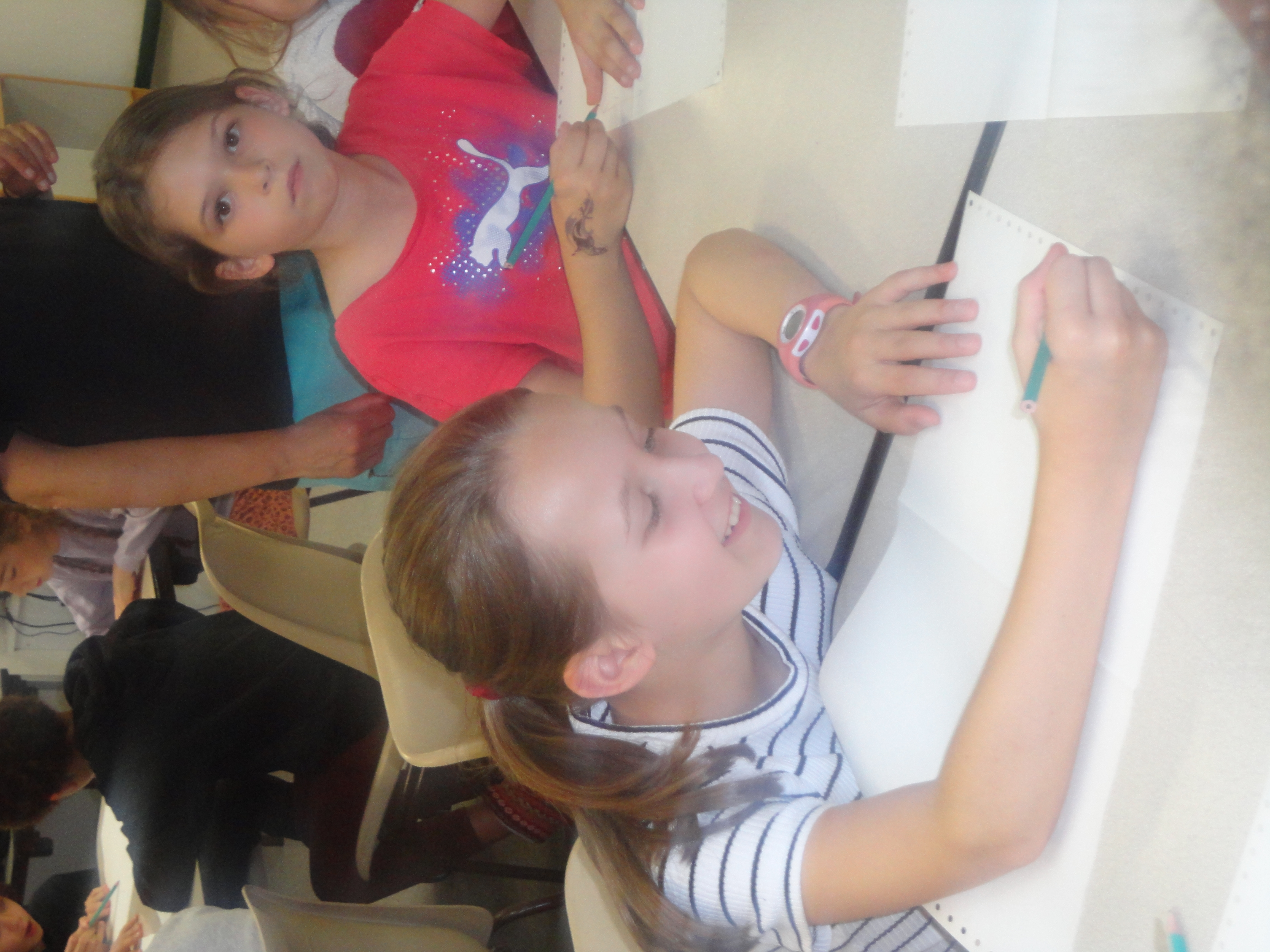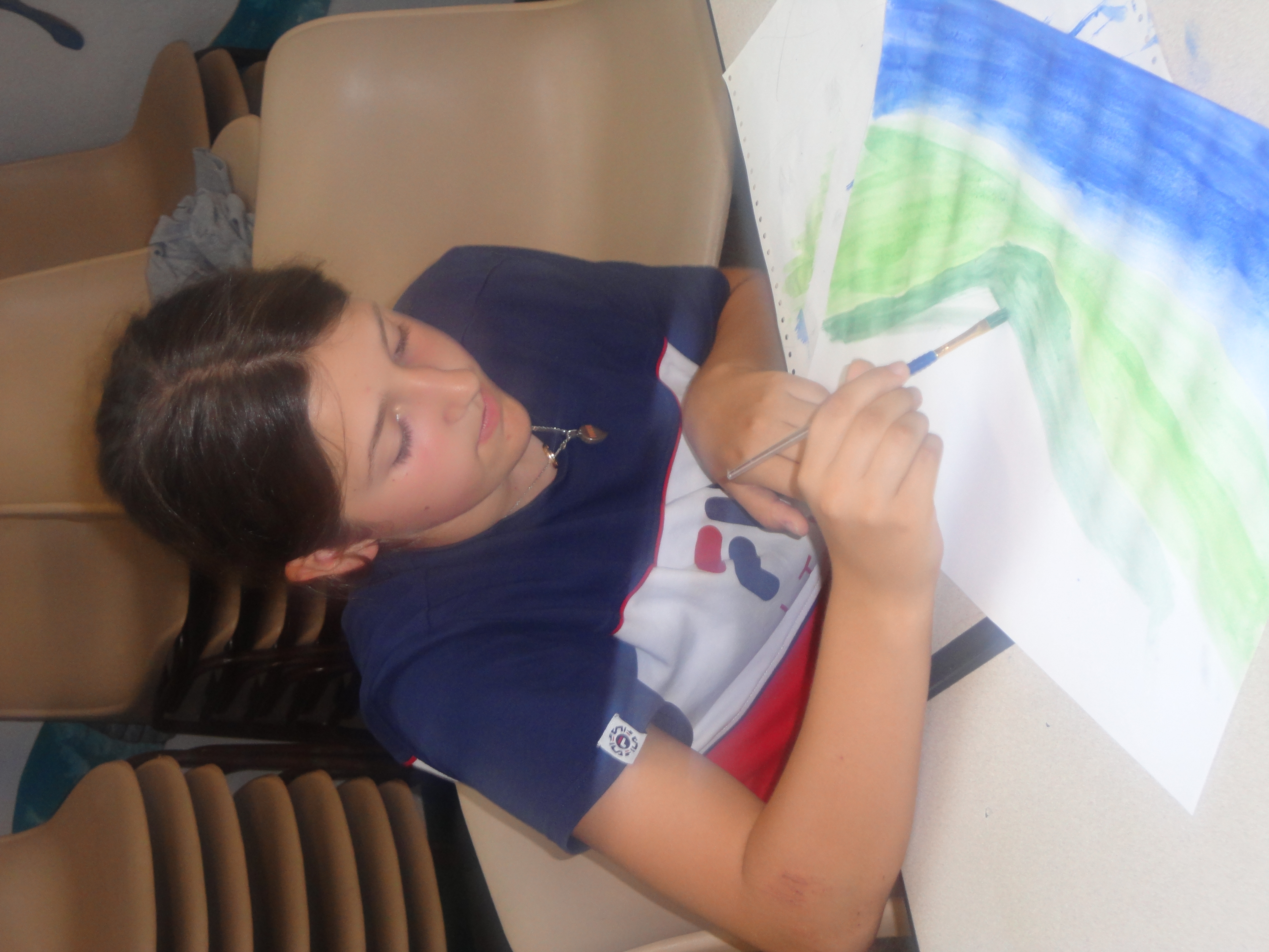 Cette après midi au moment des orages nous avons peint avec de l'aquarelle ( pierre, craie ) , nous avons représenté des lieux qui se trouvent aux Estables.