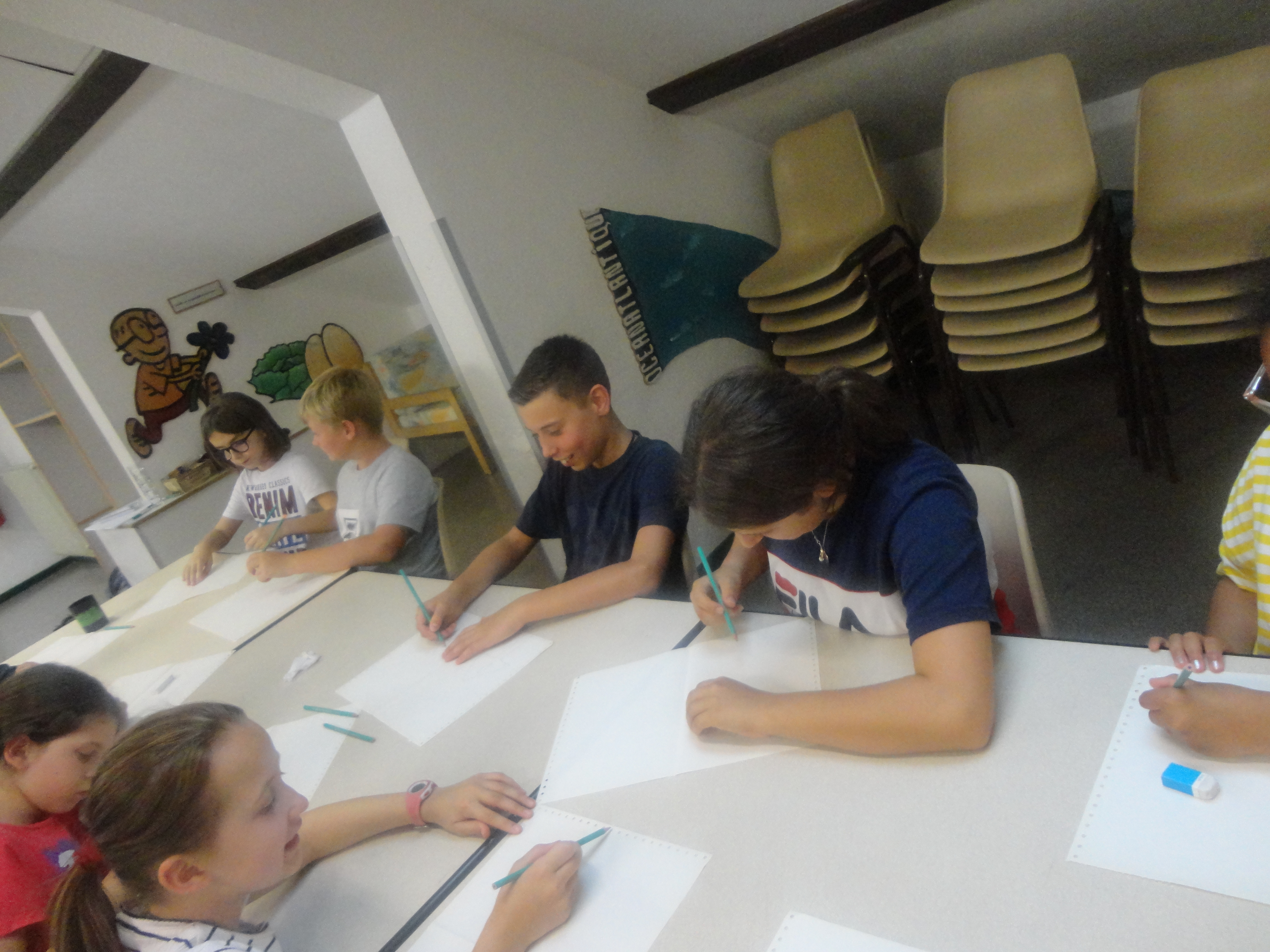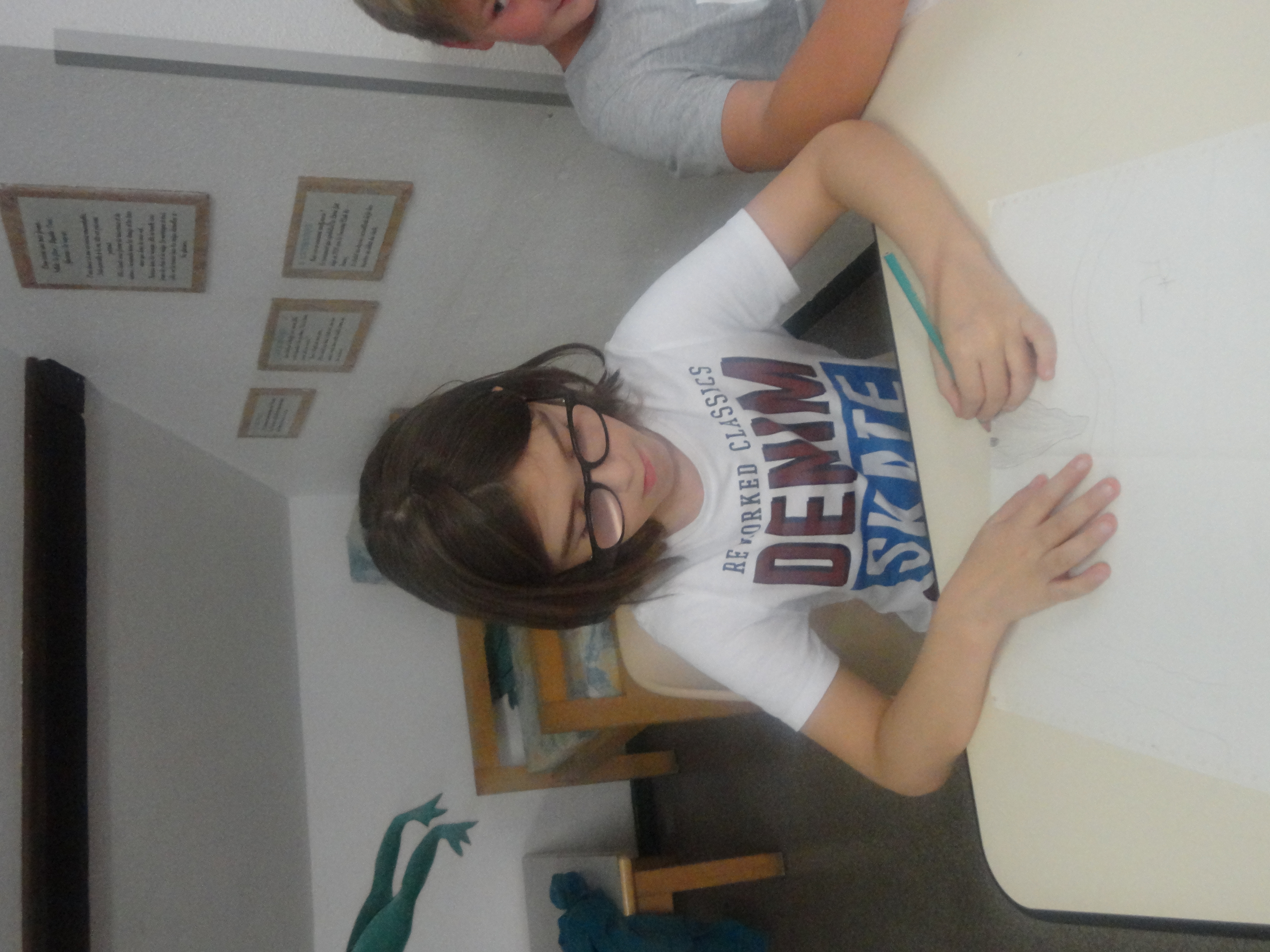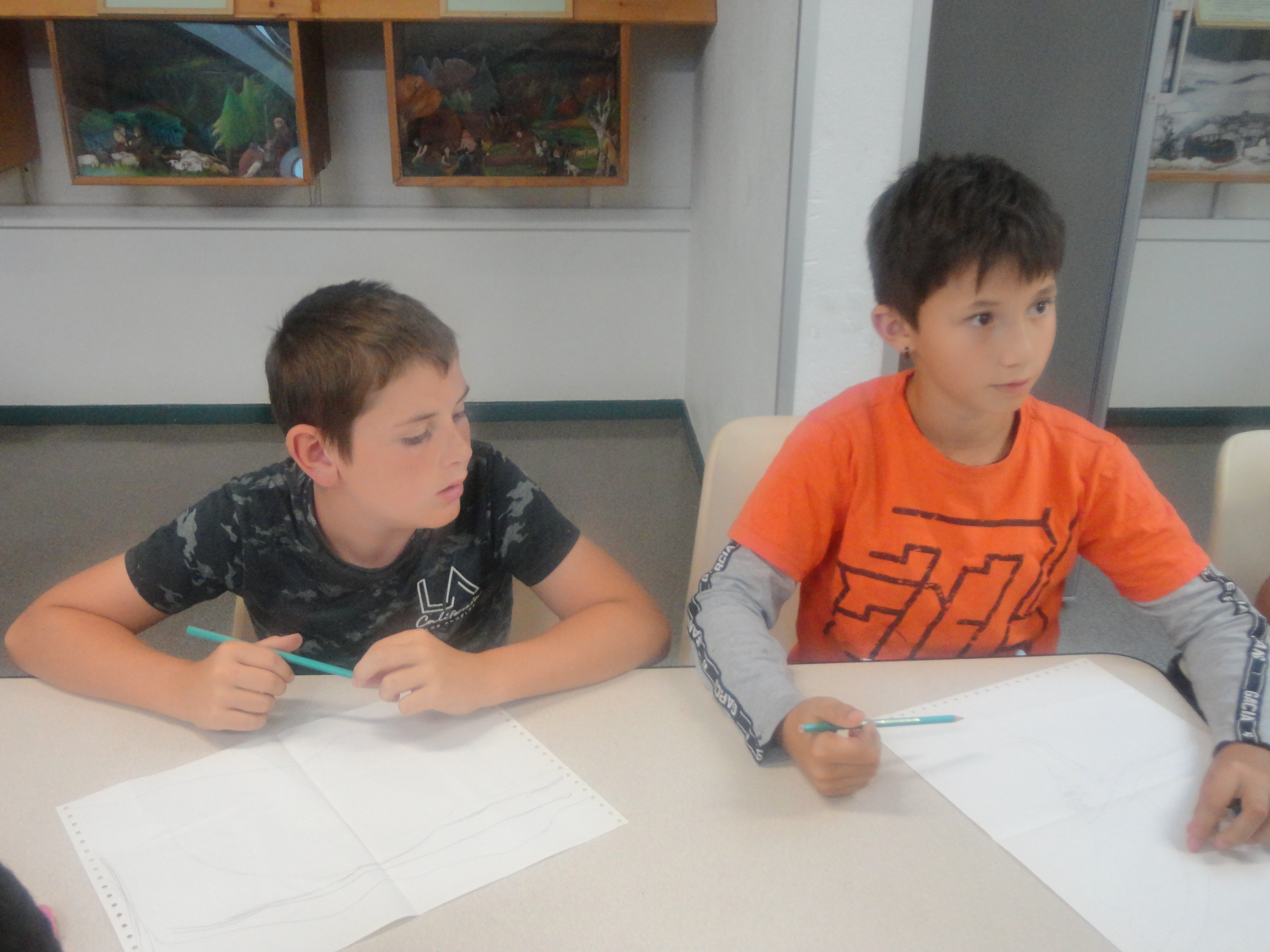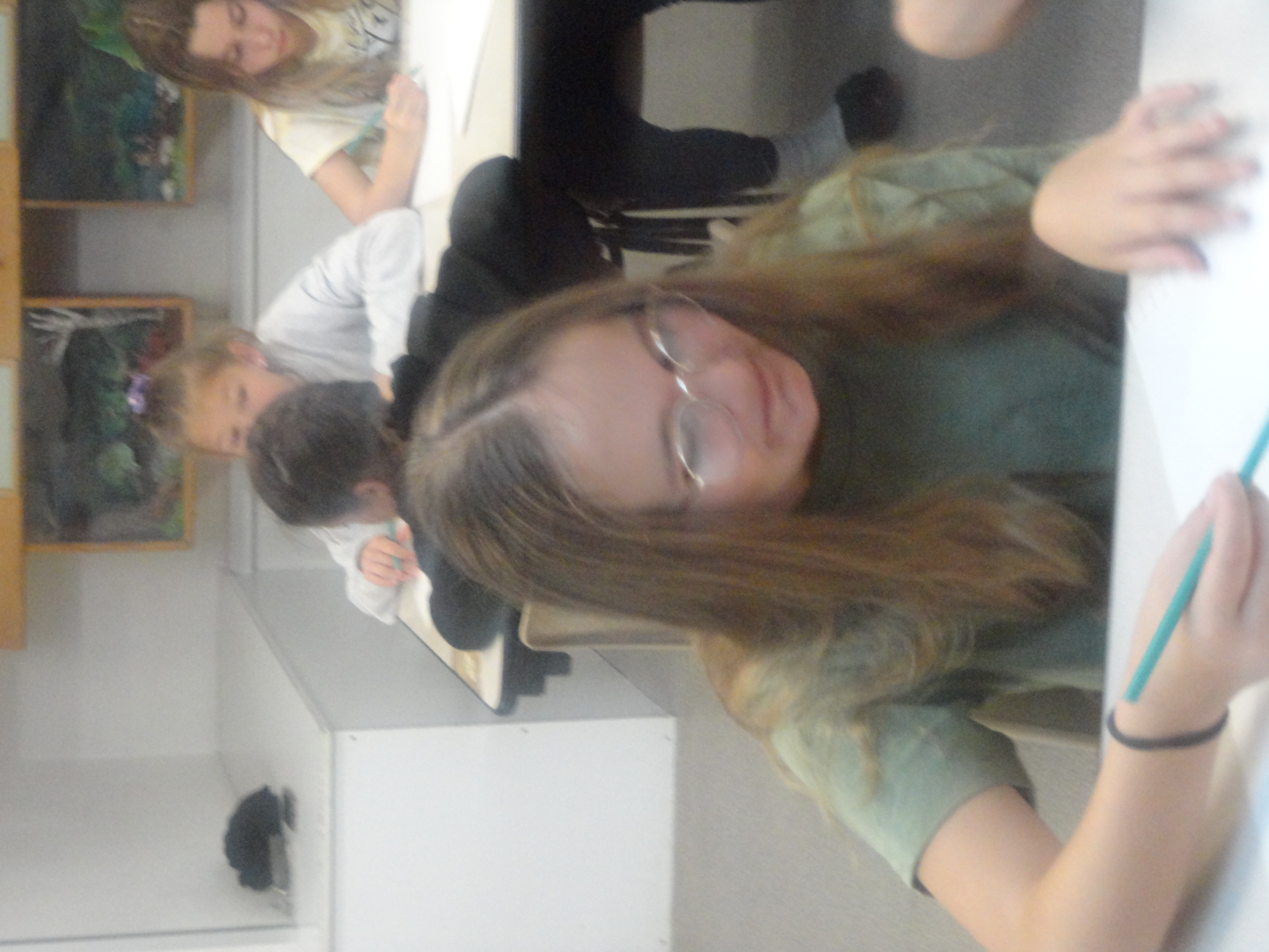 Cette après midi au moment des orages nous avons peint avec de l'aquarelle ( pierre, craie ) , nous avons représenté des lieux qui se trouvent aux Estables.