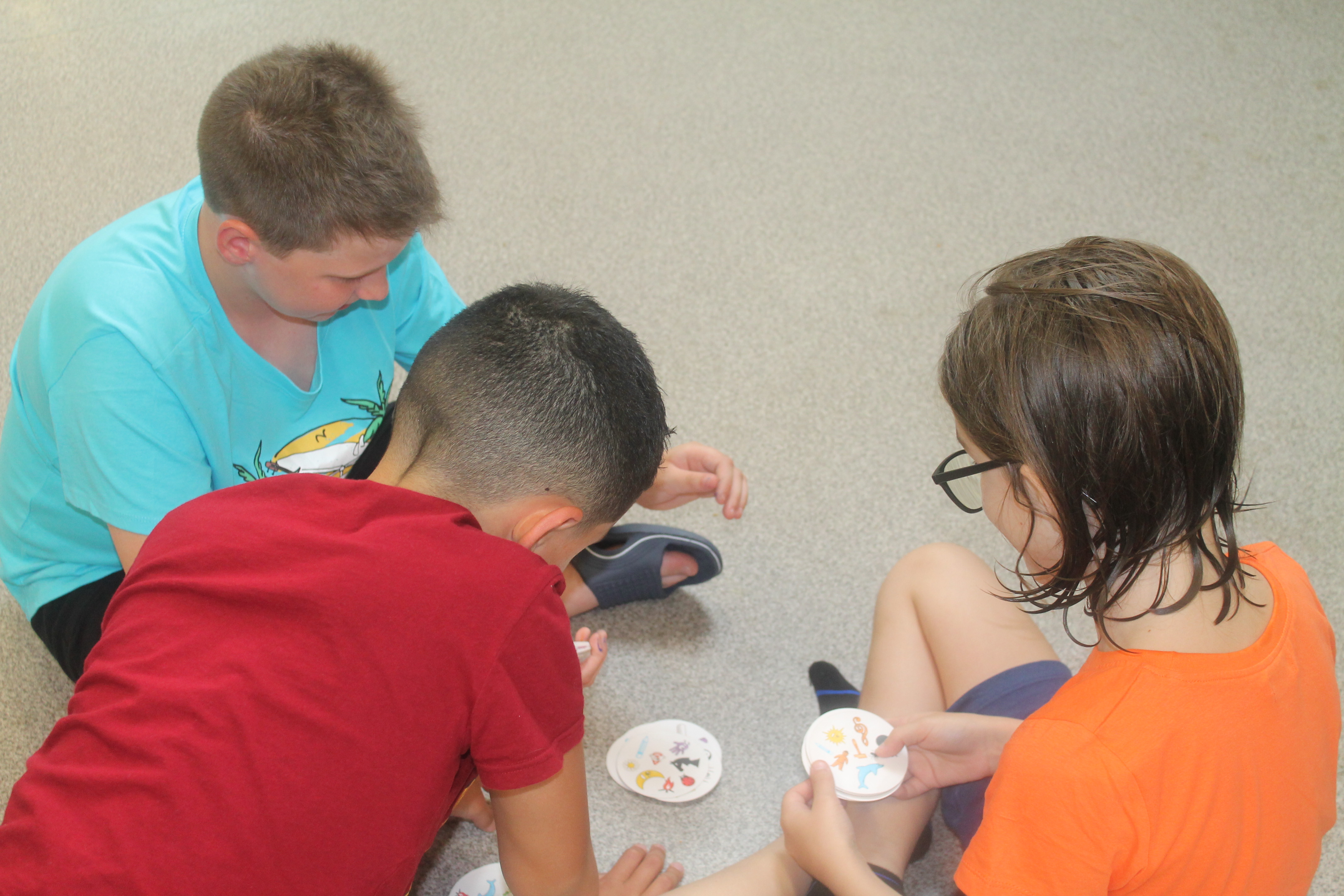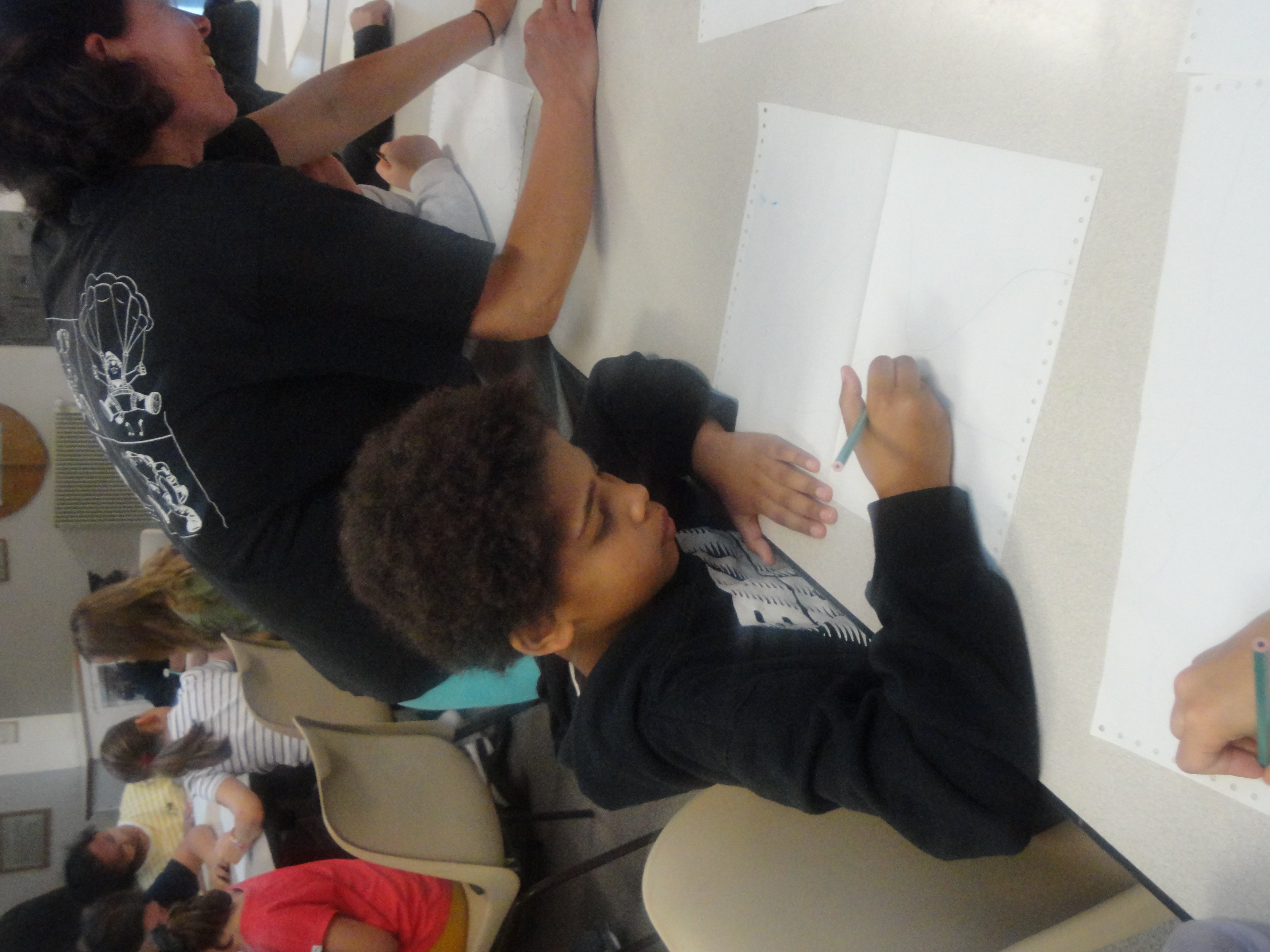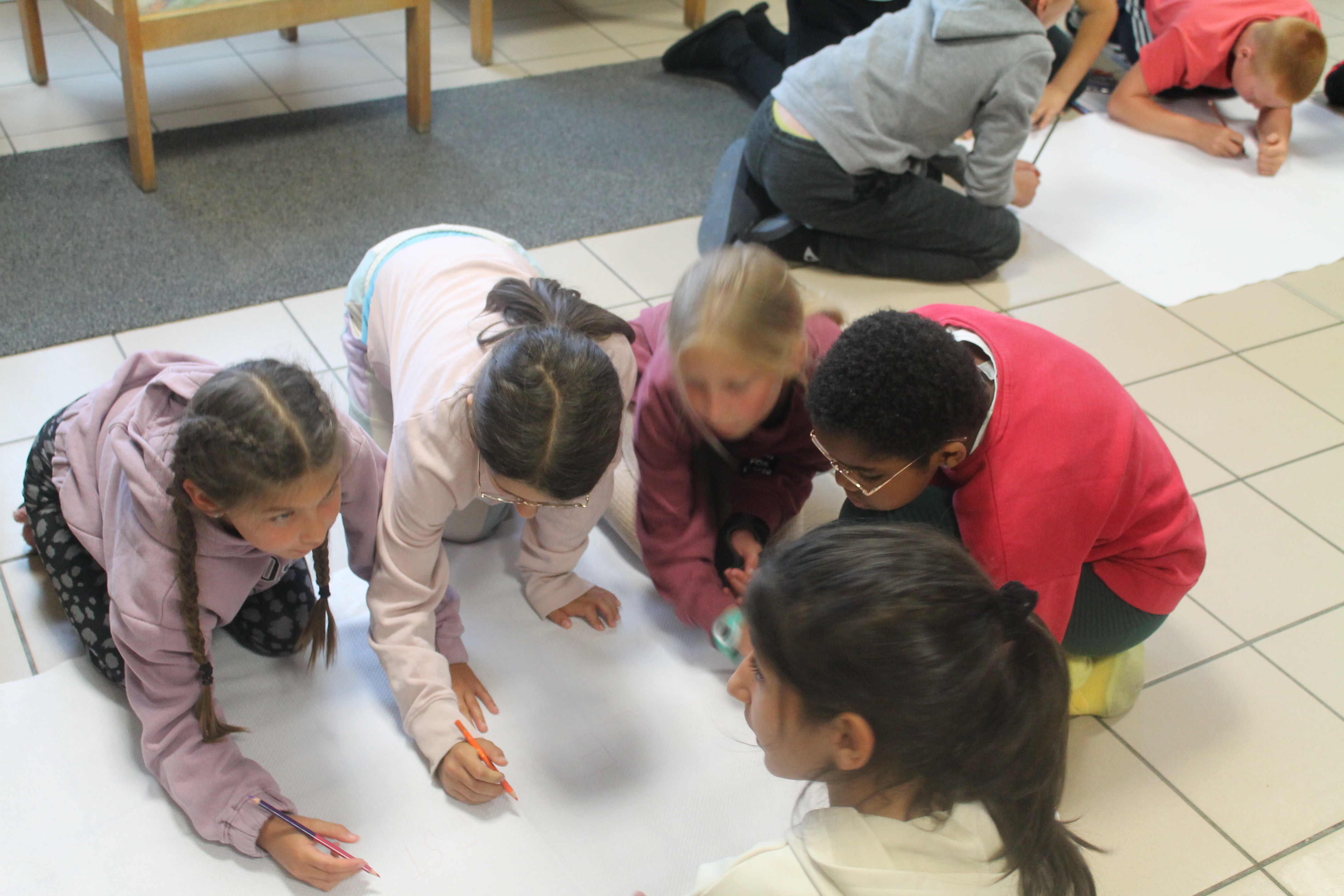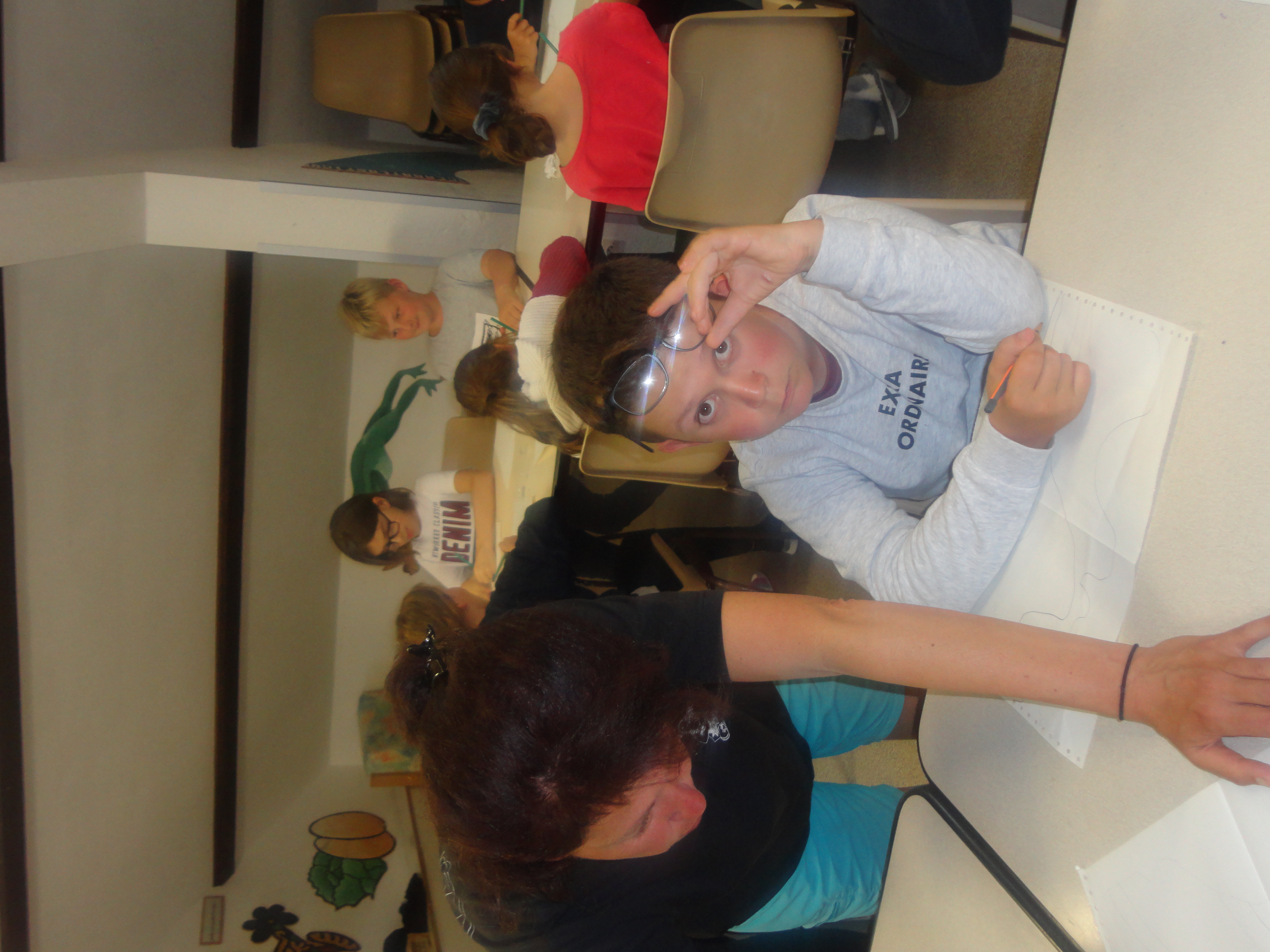 Cette après midi au moment des orages nous avons peint avec de l'aquarelle ( pierre, craie ) , nous avons représenté des lieux qui se trouvent aux Estables.