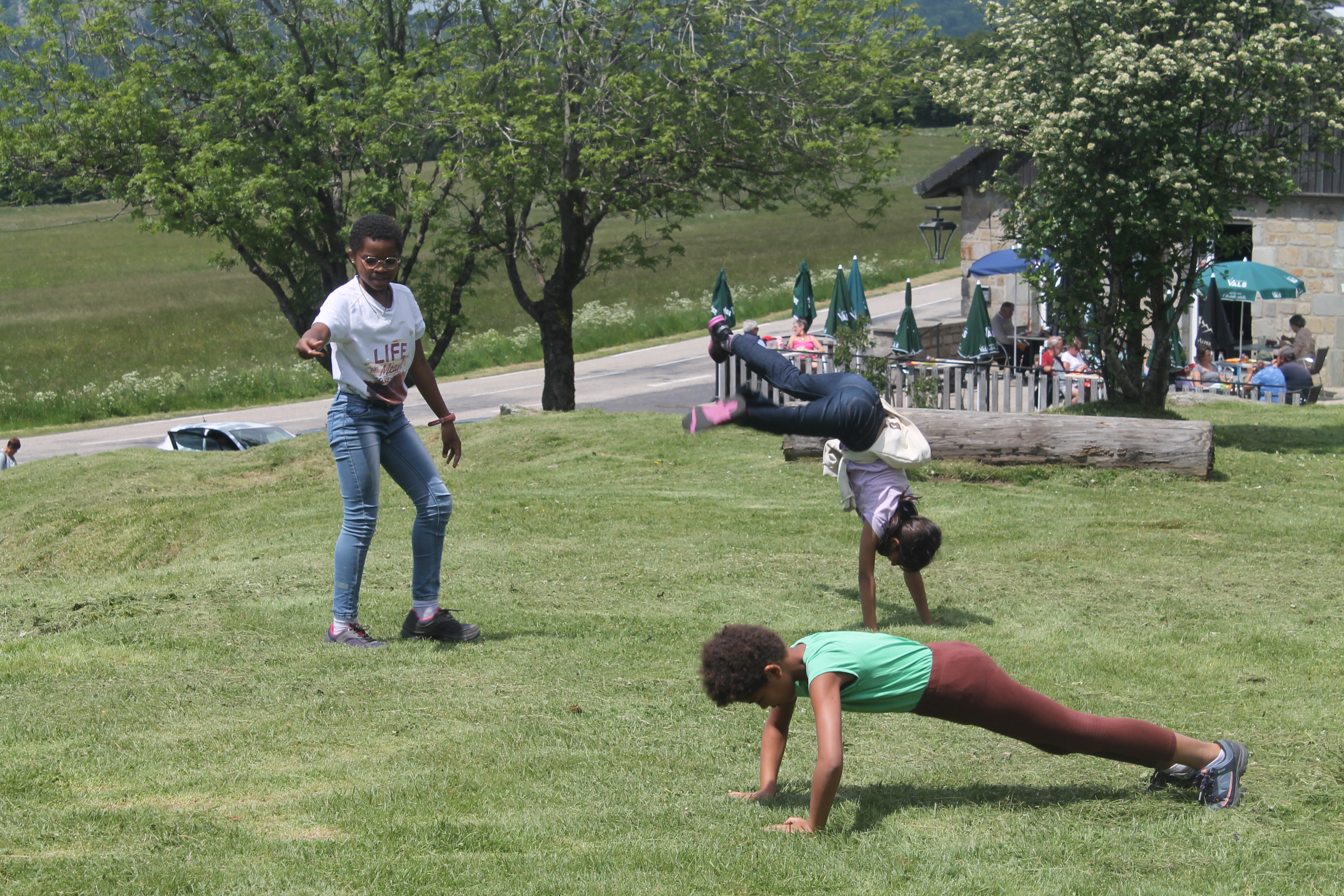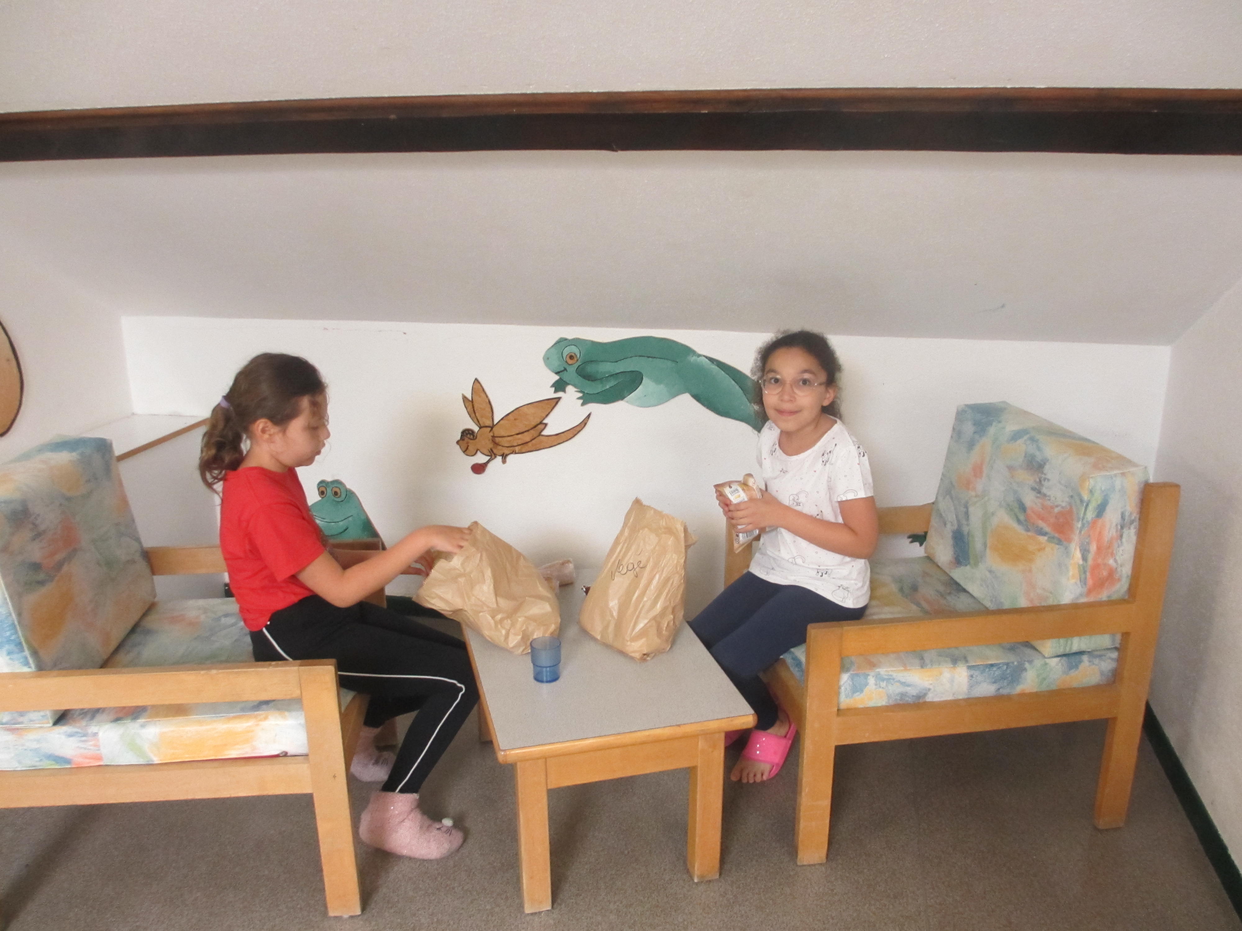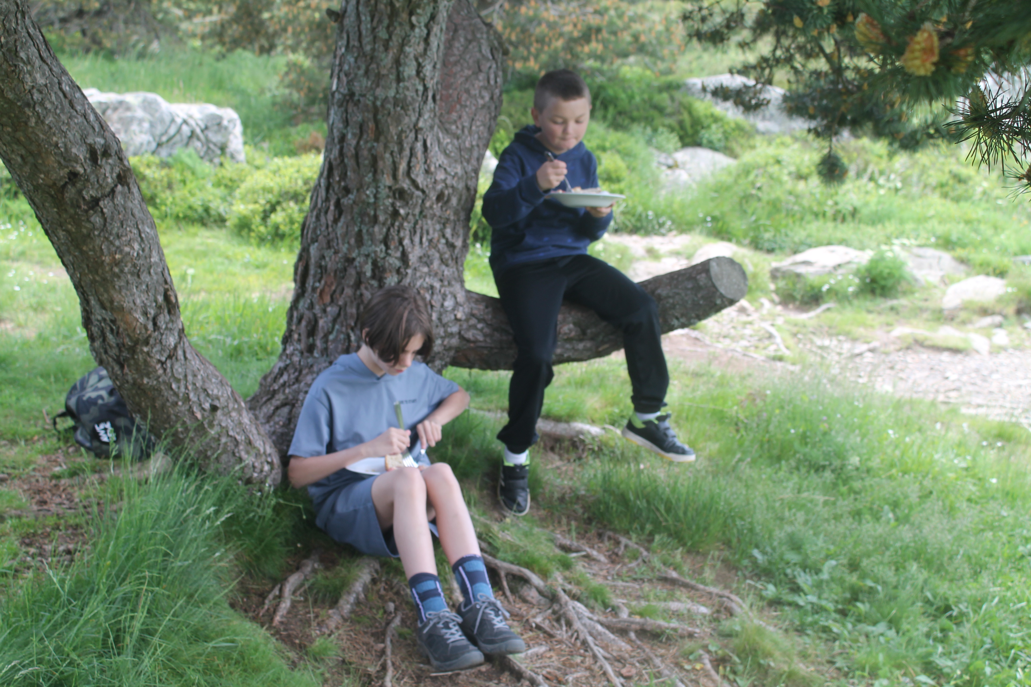 Quand nous sommes arrivés aux Estables nous avons étés accueillis nous avons pris une collation puis on nous a expliqué les règles puis l'après-midi nous avons fait une petite balade pour visiter le village.
