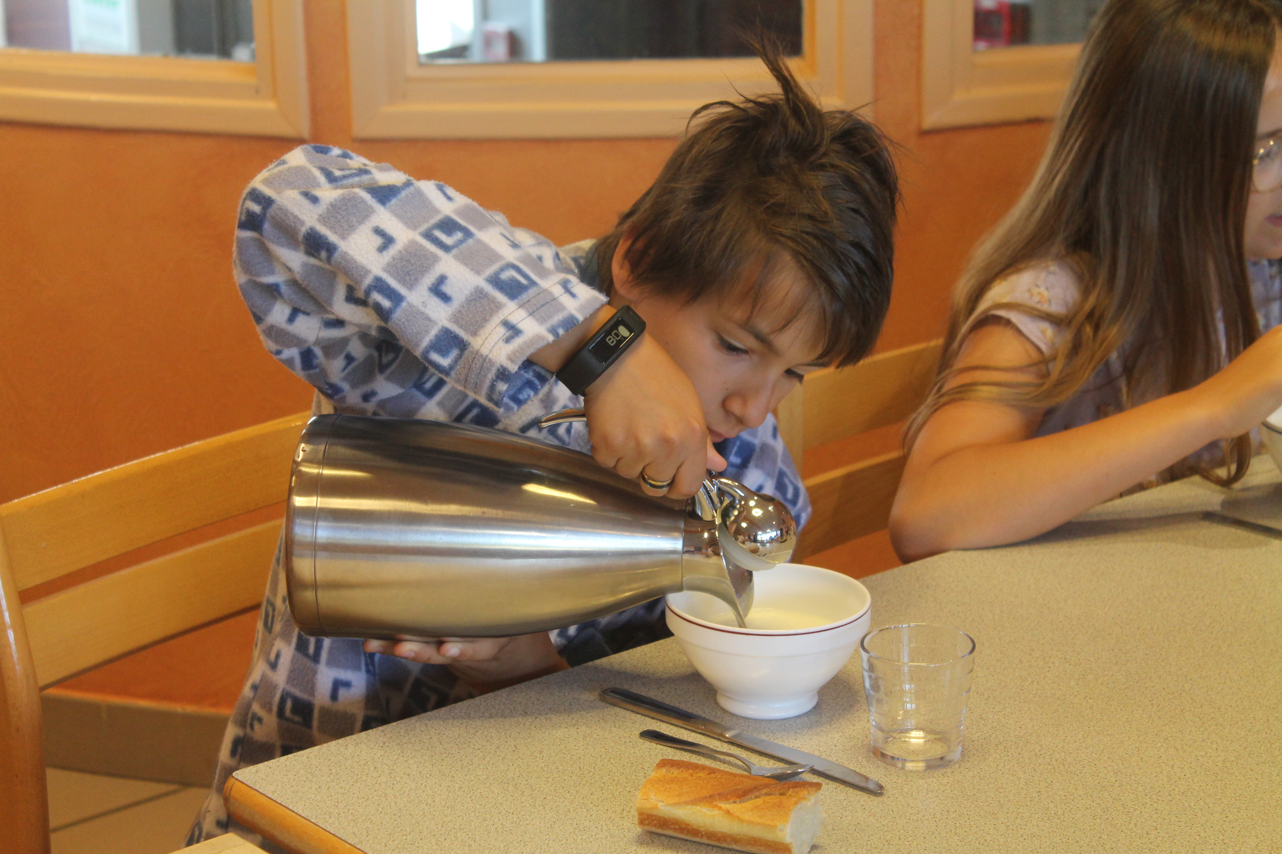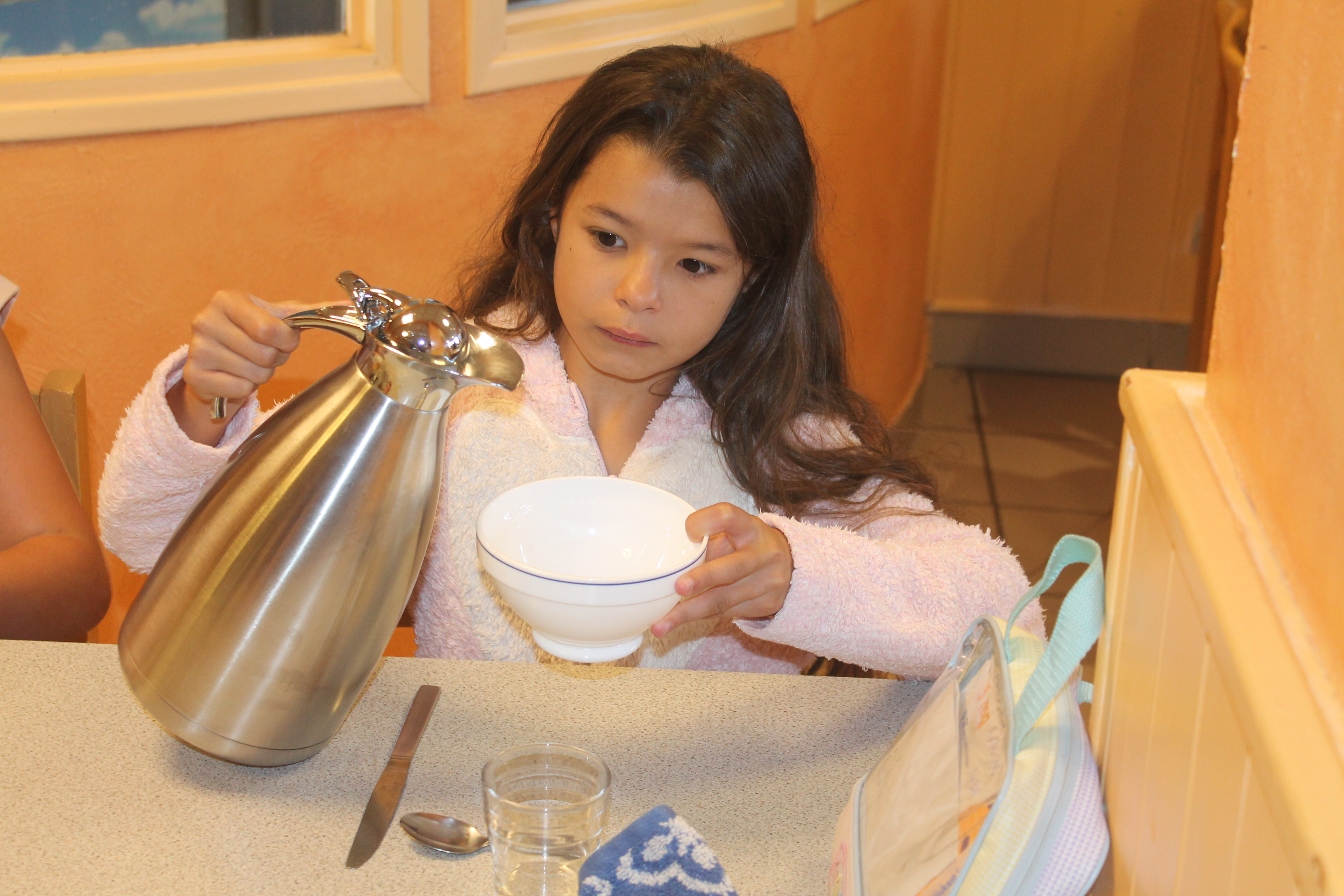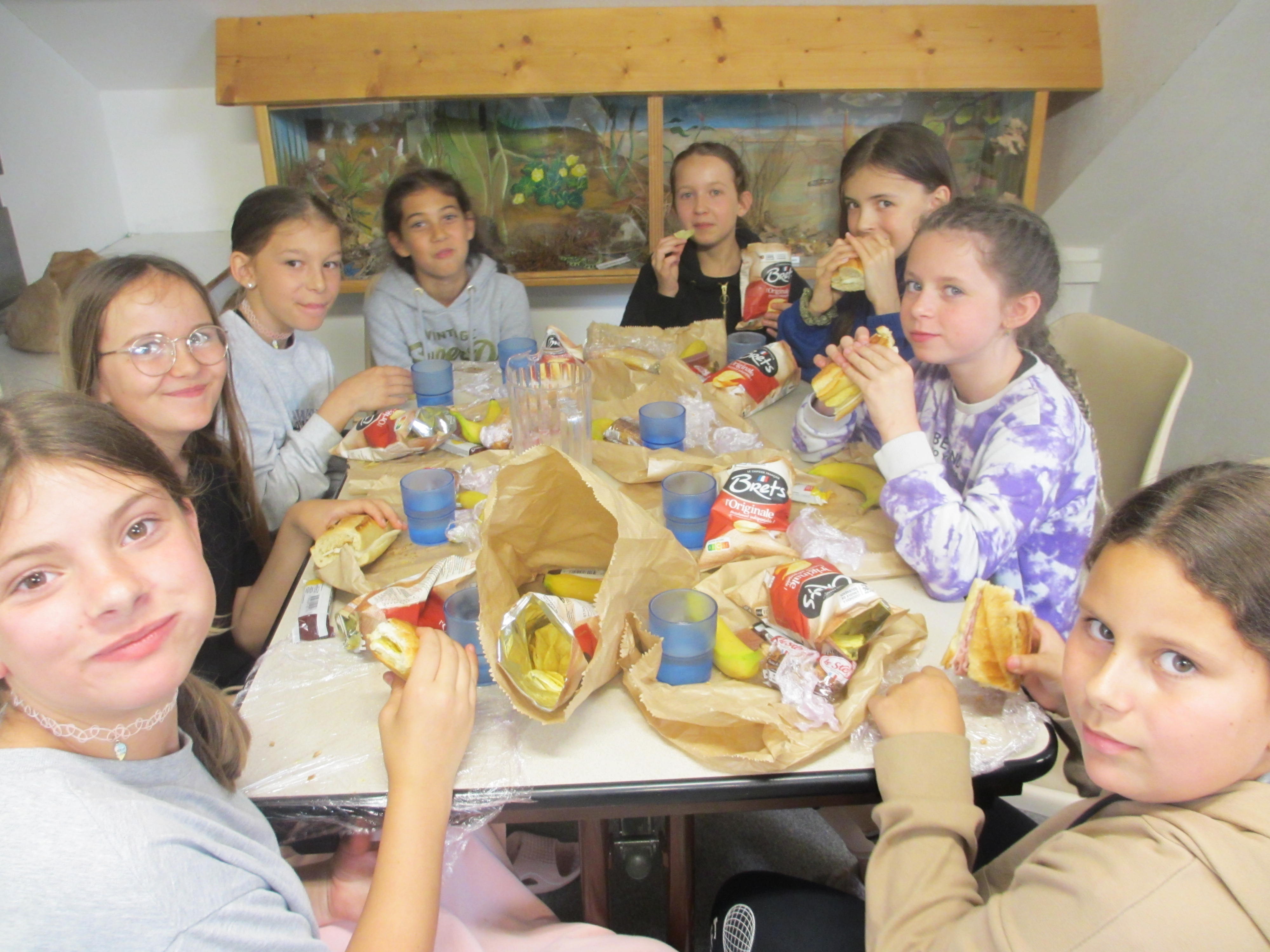 Quand nous sommes arrivés aux Estables nous avons étés accueillis nous avons pris une collation puis on nous a expliqué les règles puis l'après-midi nous avons fait une petite balade pour visiter le village.