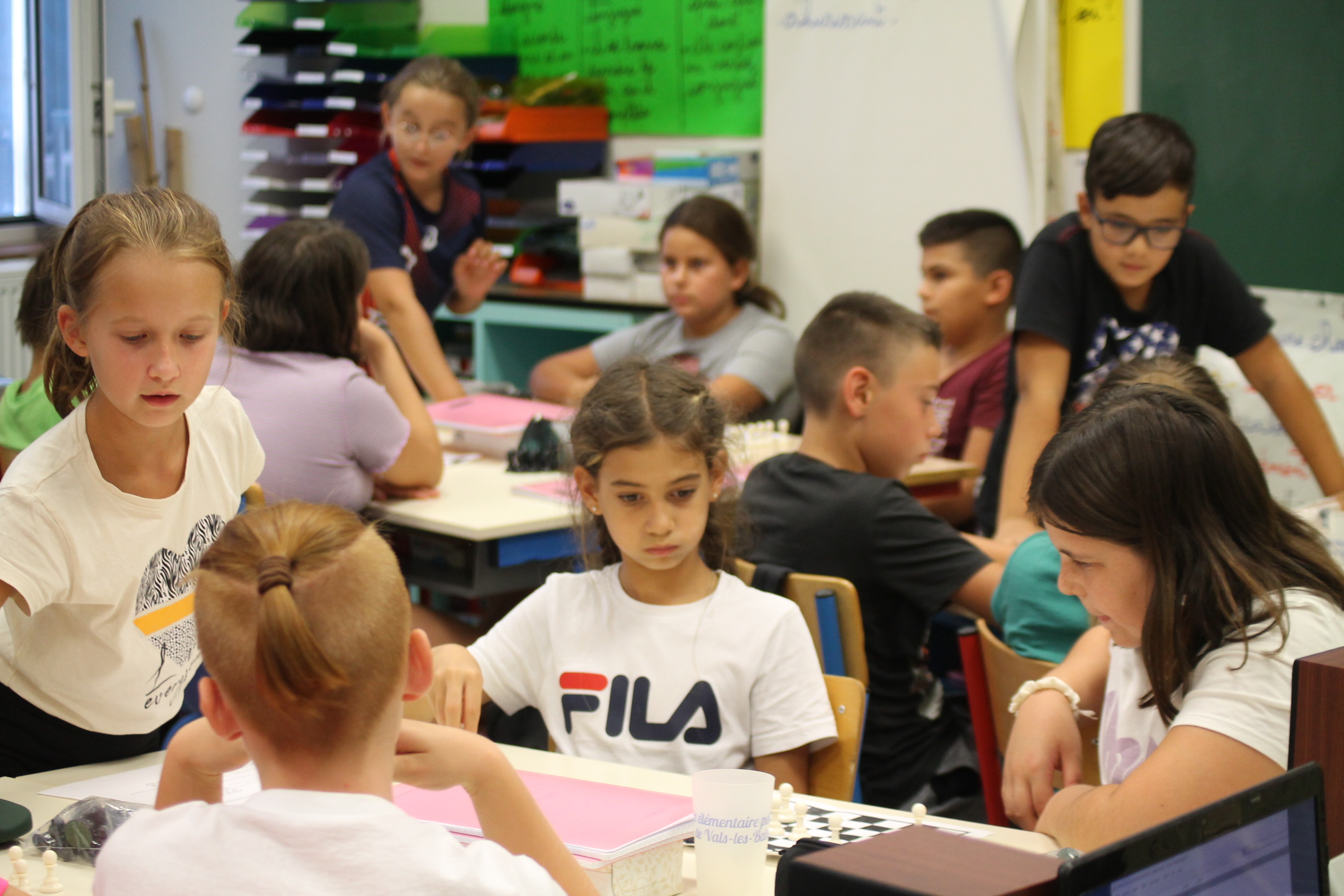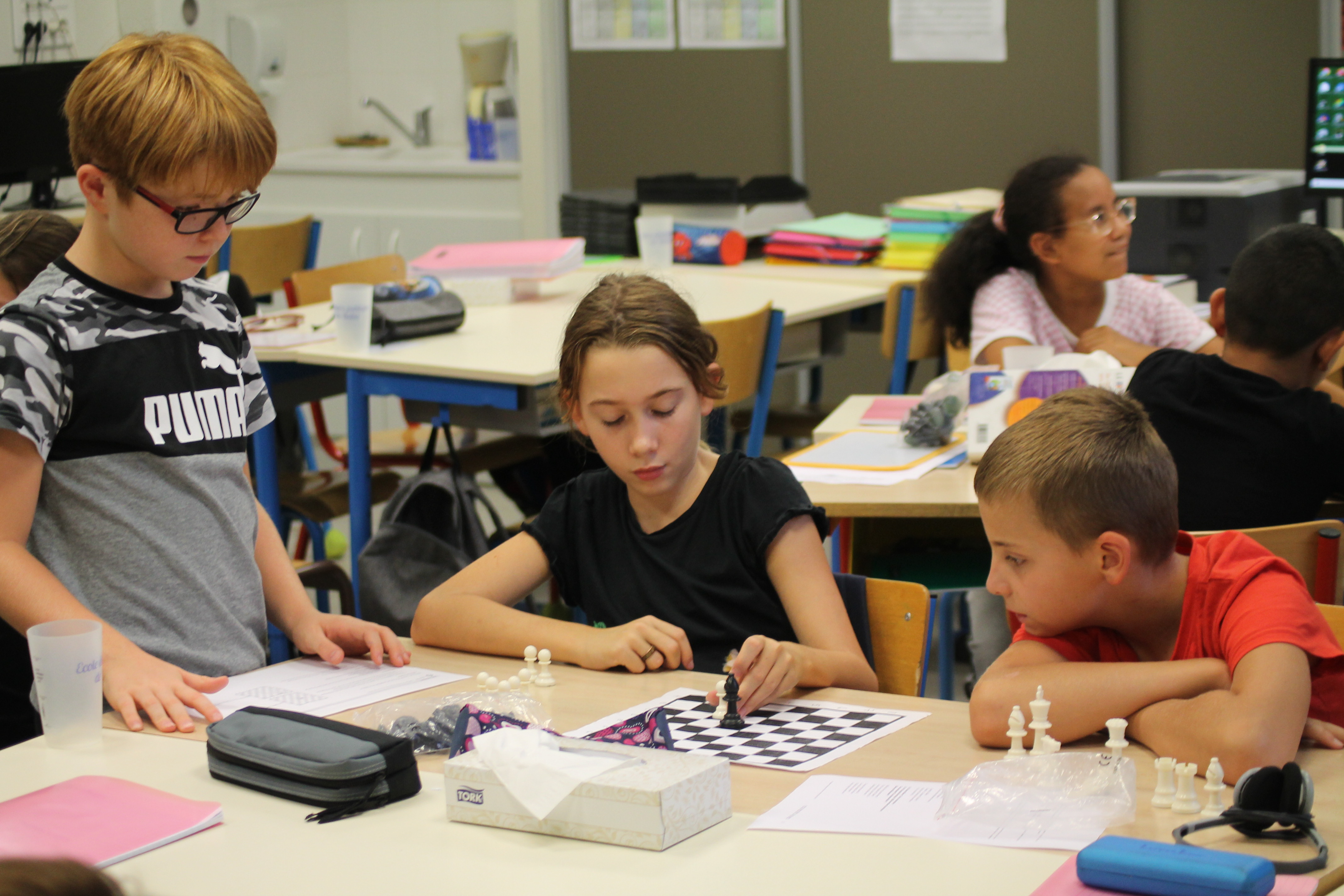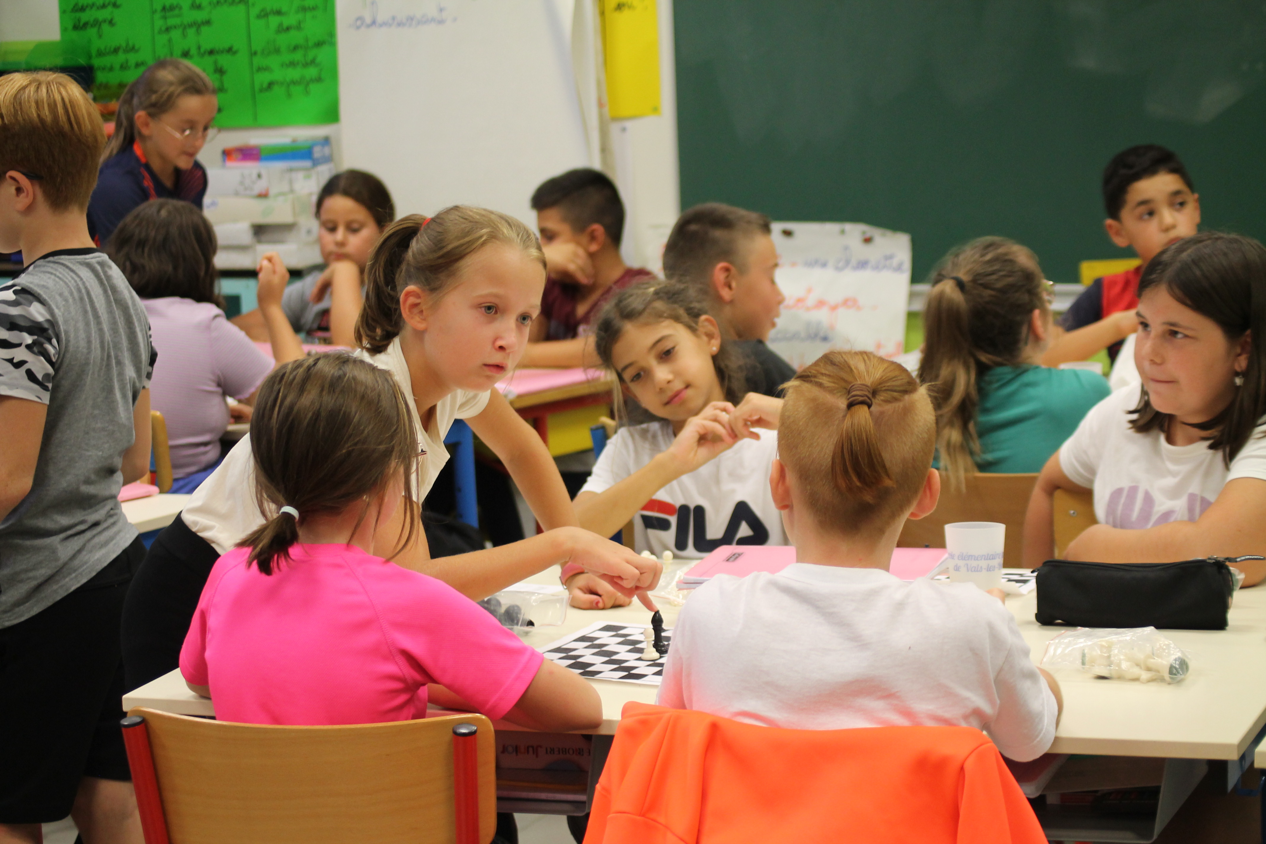 Cliquer sur chaque image pour la visualiser en pleine taille Les élèves de l'année dernière apprennent aux élèves qui étaient dans une autre classe à jouer aux échecs. Yanis B