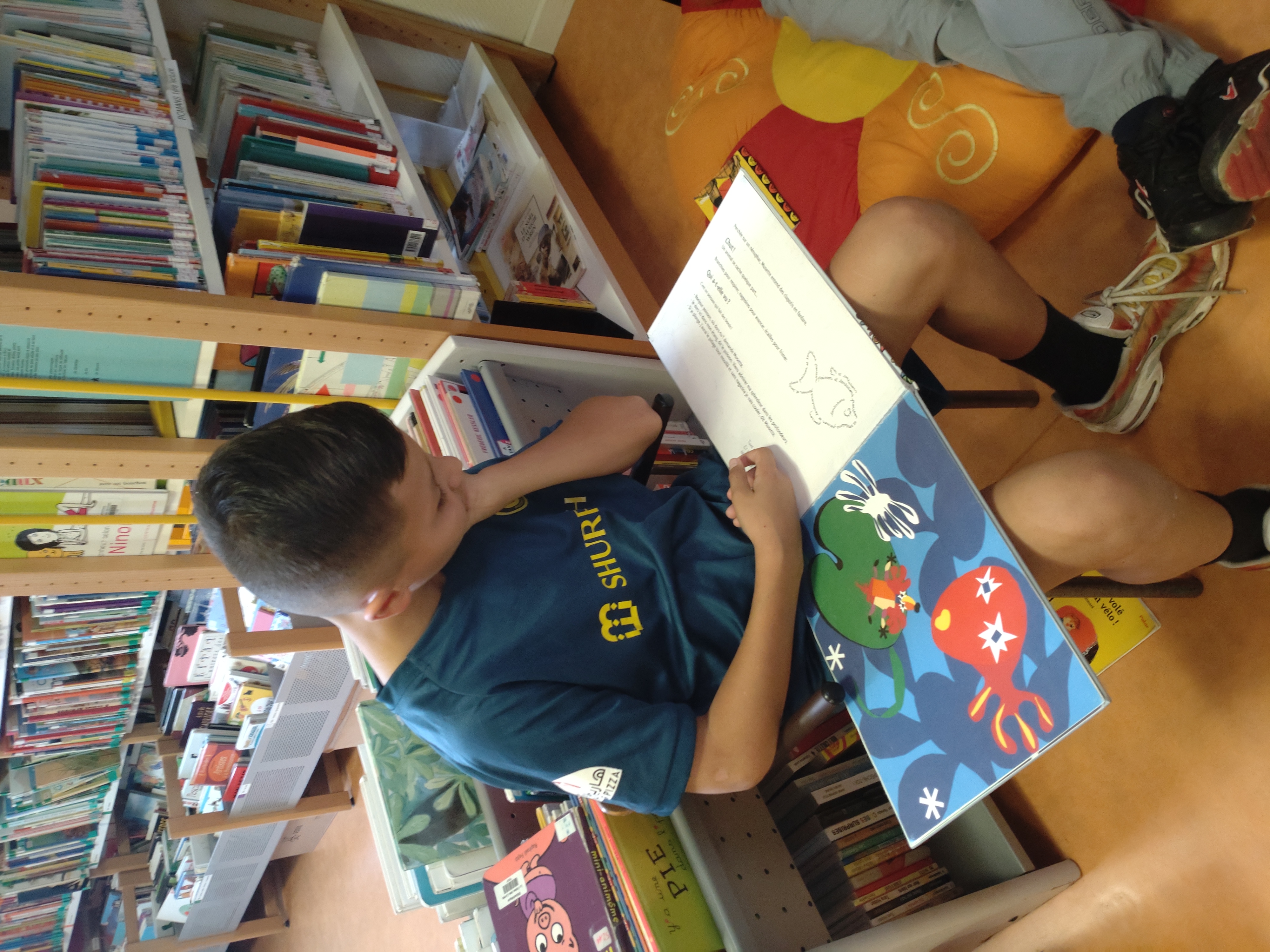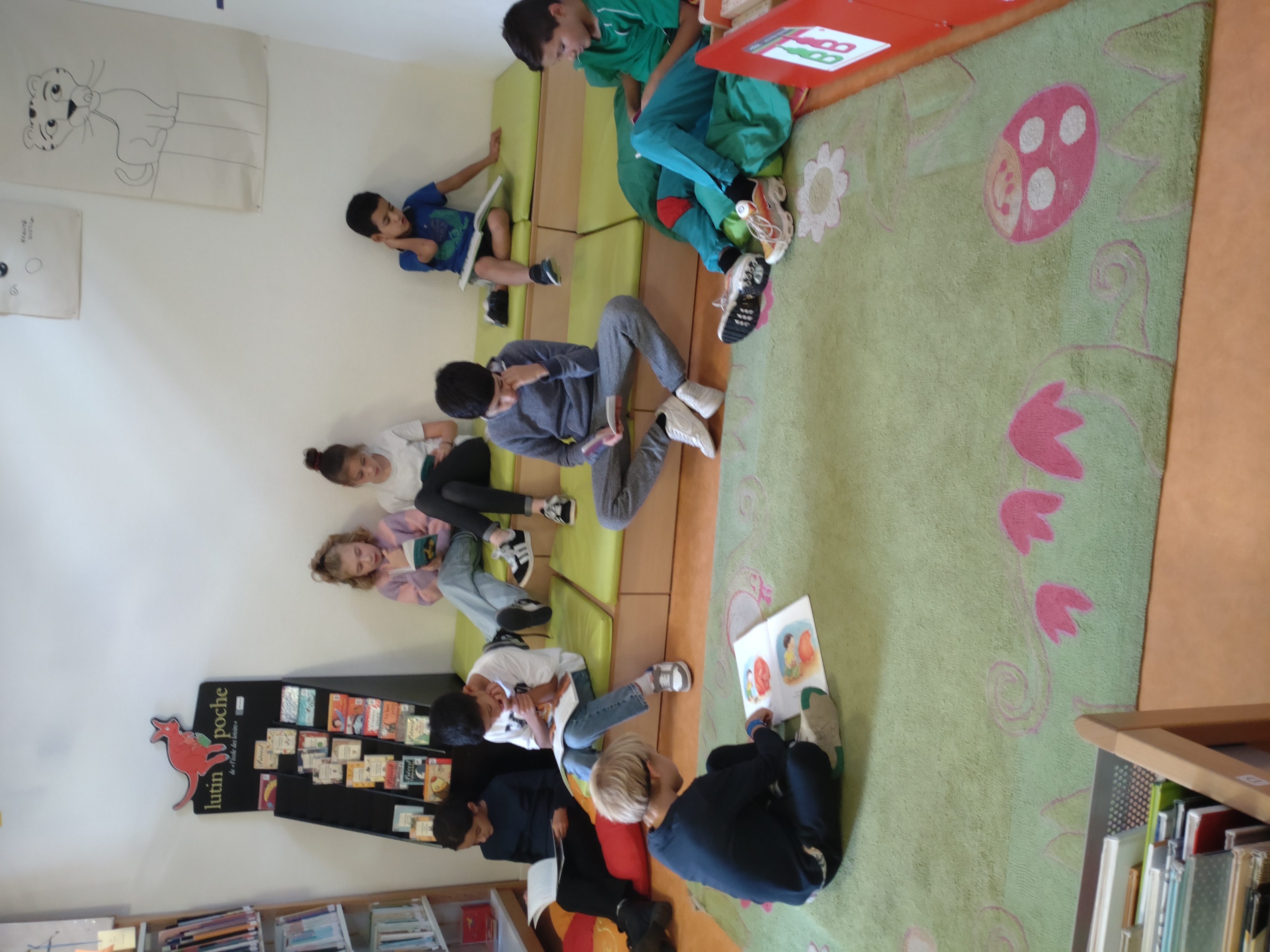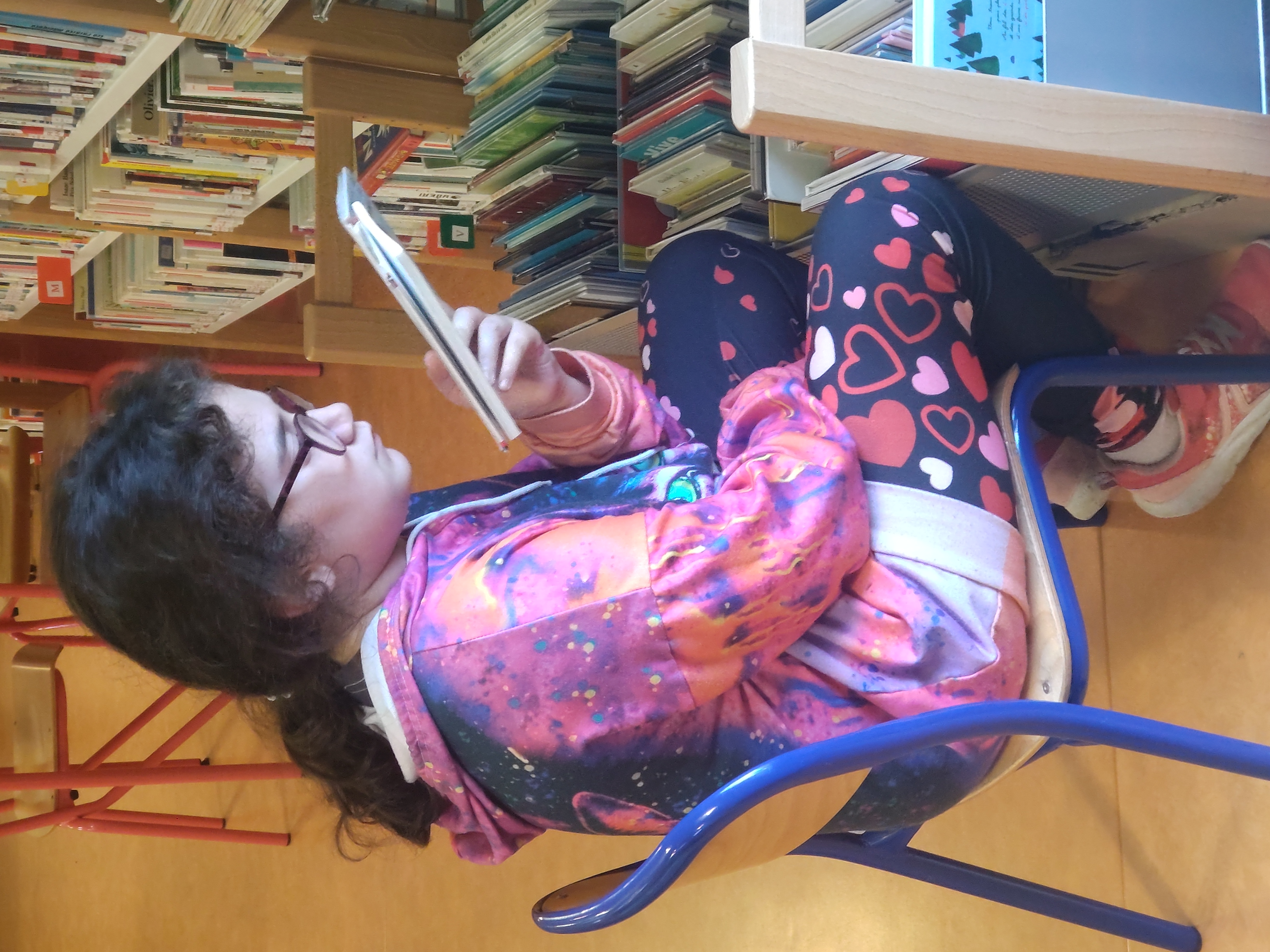 En bibliothèque on n’a pas le droit de parler fort, on doit chuchoter. En bibliothèque on fait notre rallye-lecture, parfois Rachel nous lit un livre, et après la lecture elle nous pose des questions. Ce que je n'aime pas c’est qu’on n'a pas trop de temps pour lire un livre. Ce que j’aime bien c’est qu'on peut emprunter un livre.
