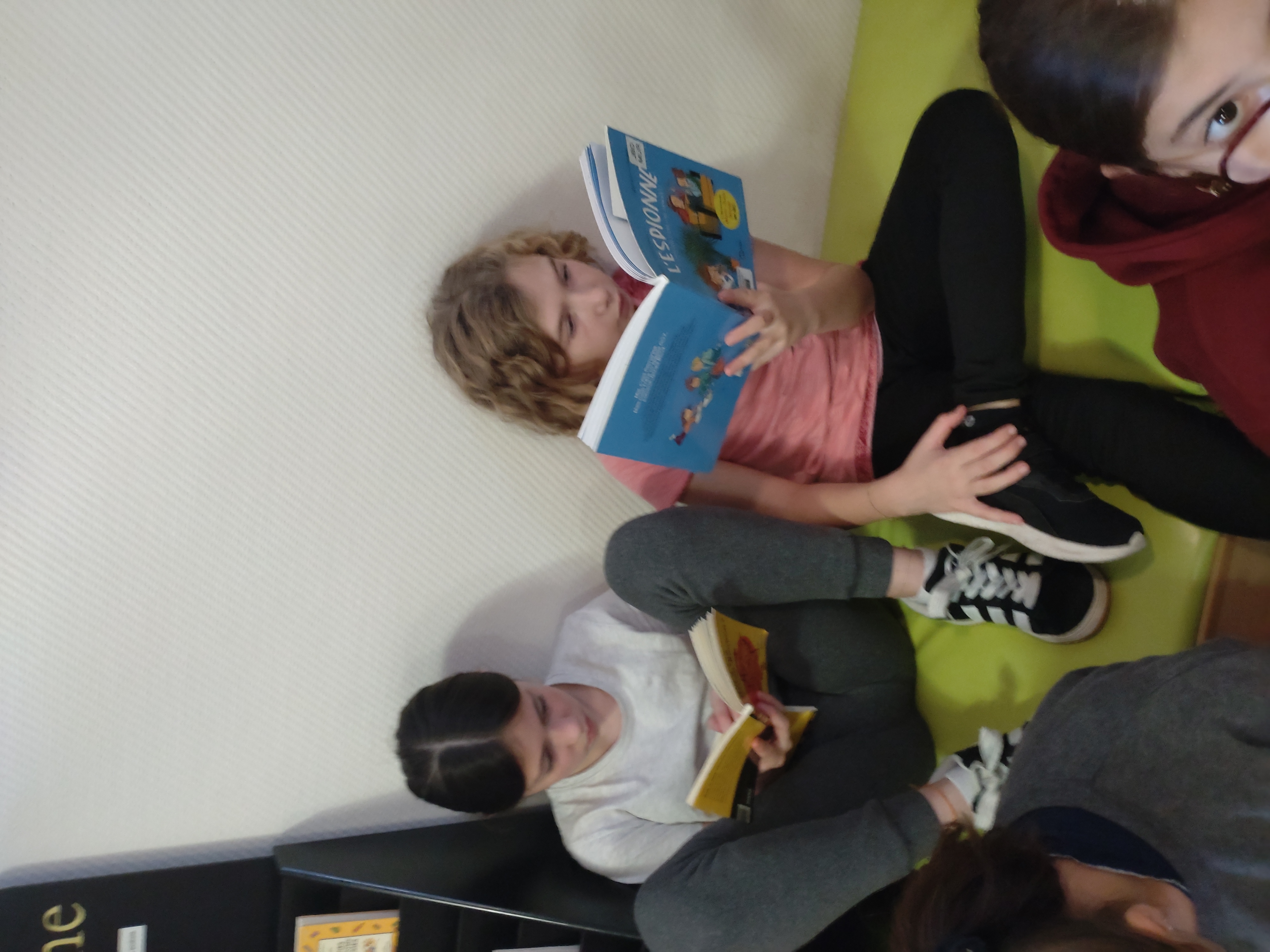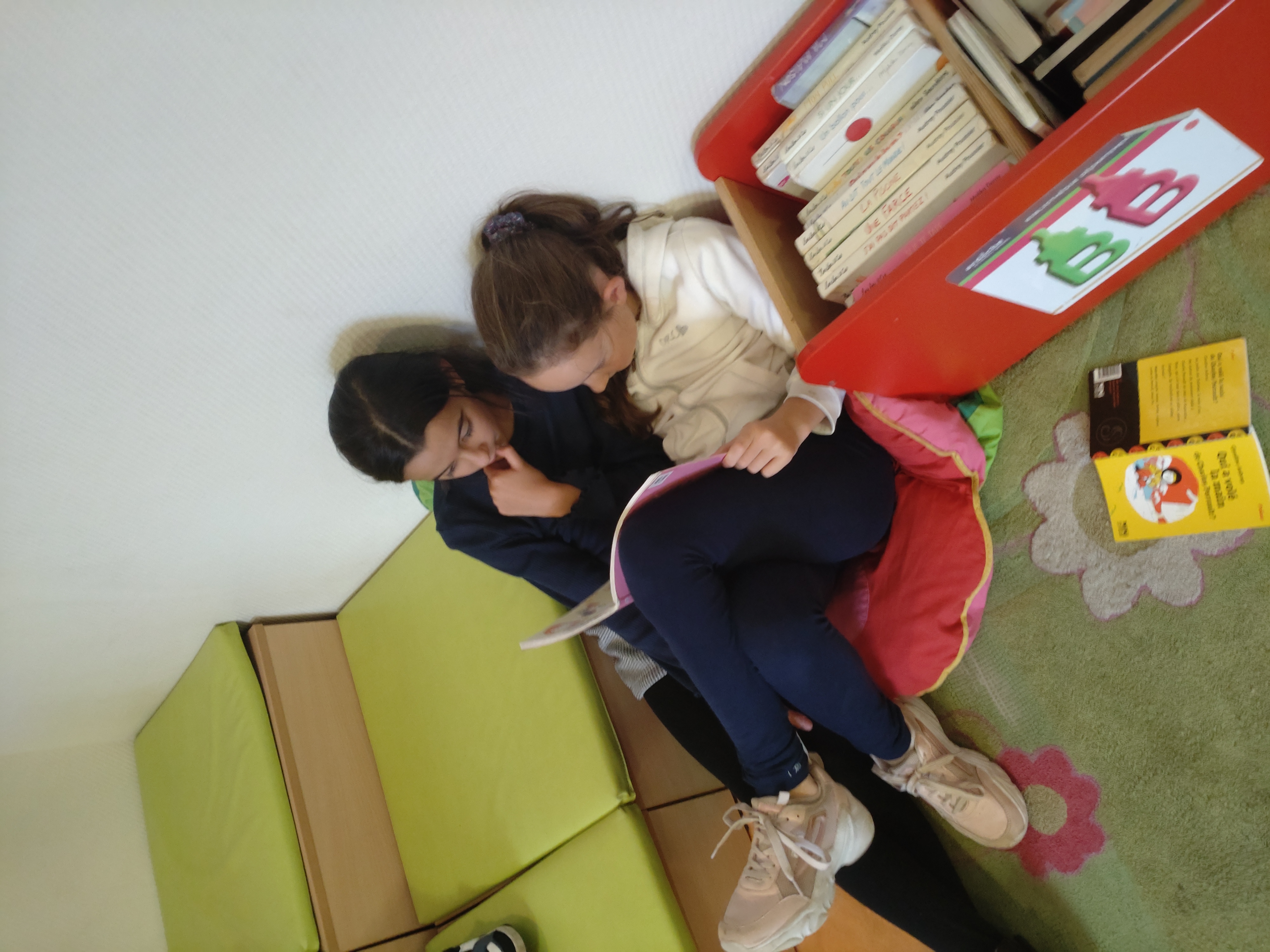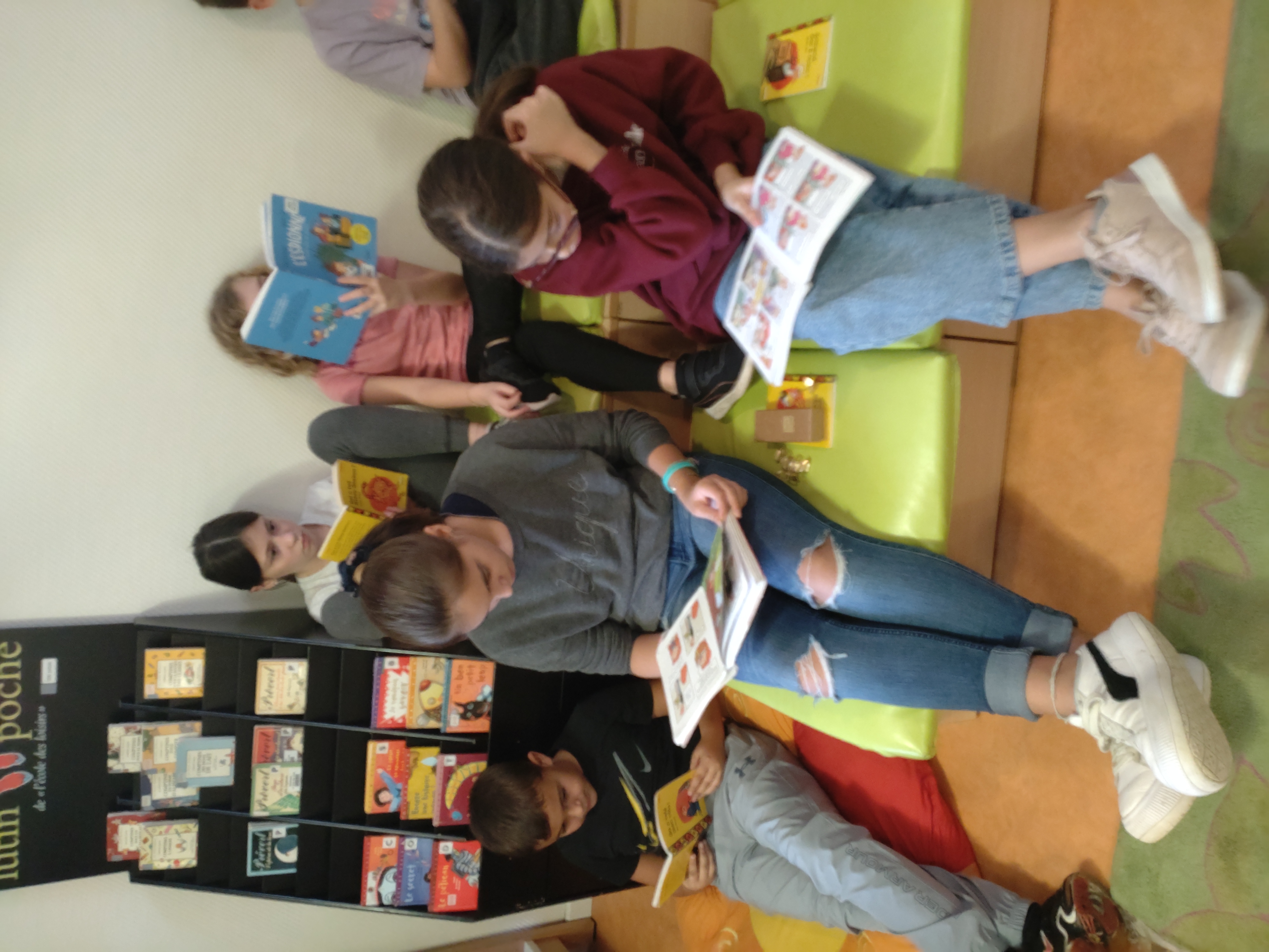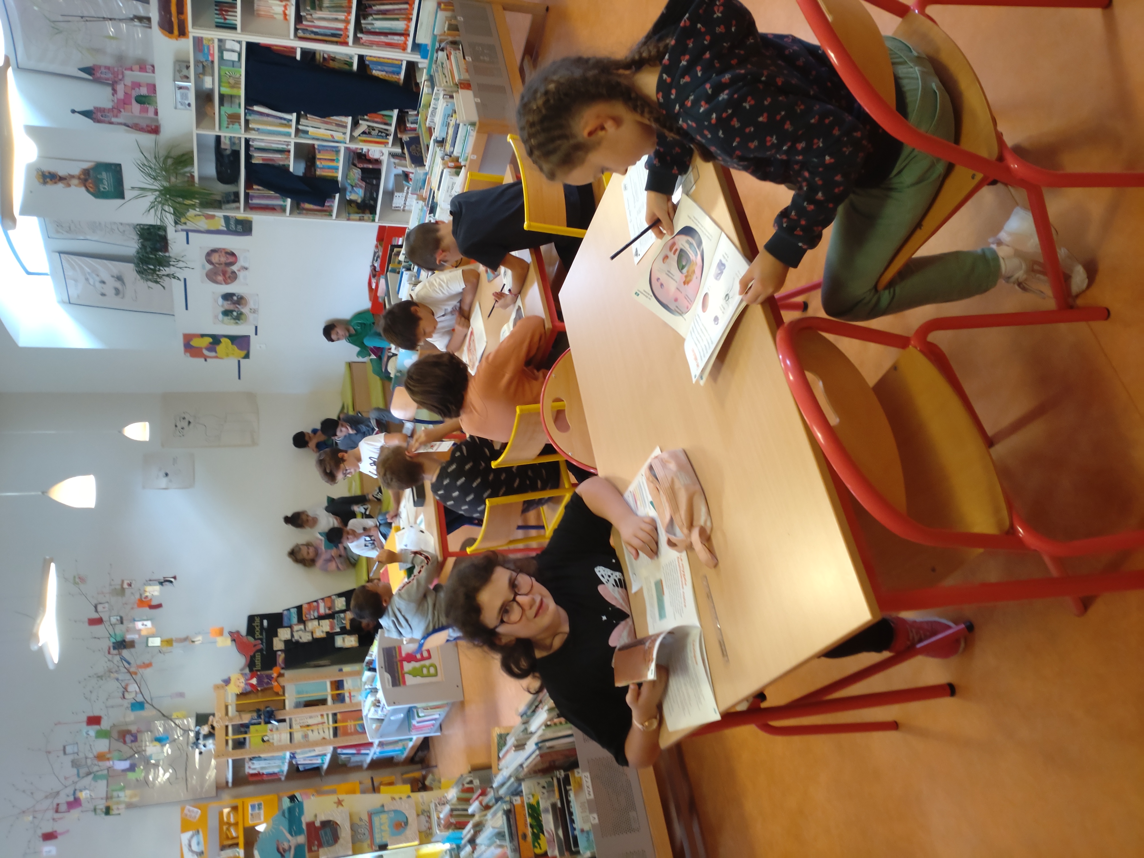 En bibliothèque on n’a pas le droit de parler fort, on doit chuchoter. En bibliothèque on fait notre rallye-lecture, parfois Rachel nous lit un livre, et après la lecture elle nous pose des questions. Ce que je n'aime pas c’est qu’on n'a pas trop de temps pour lire un livre. Ce que j’aime bien c’est qu'on peut emprunter un livre.