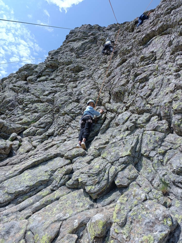Mon groupe et moi nous avons fait de l’escalade. L’endroit où nous étions était gigantesque! Nous étions sur un vrai site naturel, c’était incroyable. La roche était très très haute! J’avais déjà le vertige, alors que le cours n’avais même pas commencé. Pour monter, nous étions accrochés à celui qui était en bas. Au début c’était facile on pouvait trouver des prises faciles, mais au fur et à mesure c’était compliqué. Les prise étaient moins faciles, soit elles glissaient, soit elles étaient trop petites. Quand tu montais tout en haut il y avait une vue majestueuse.