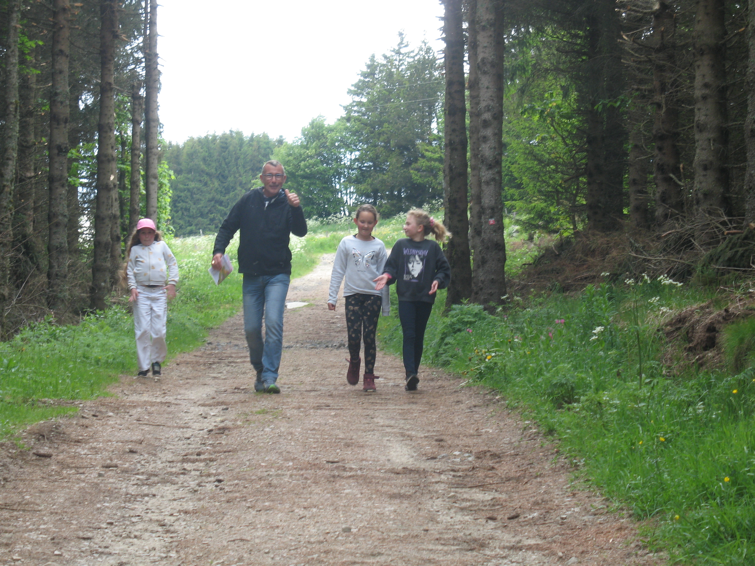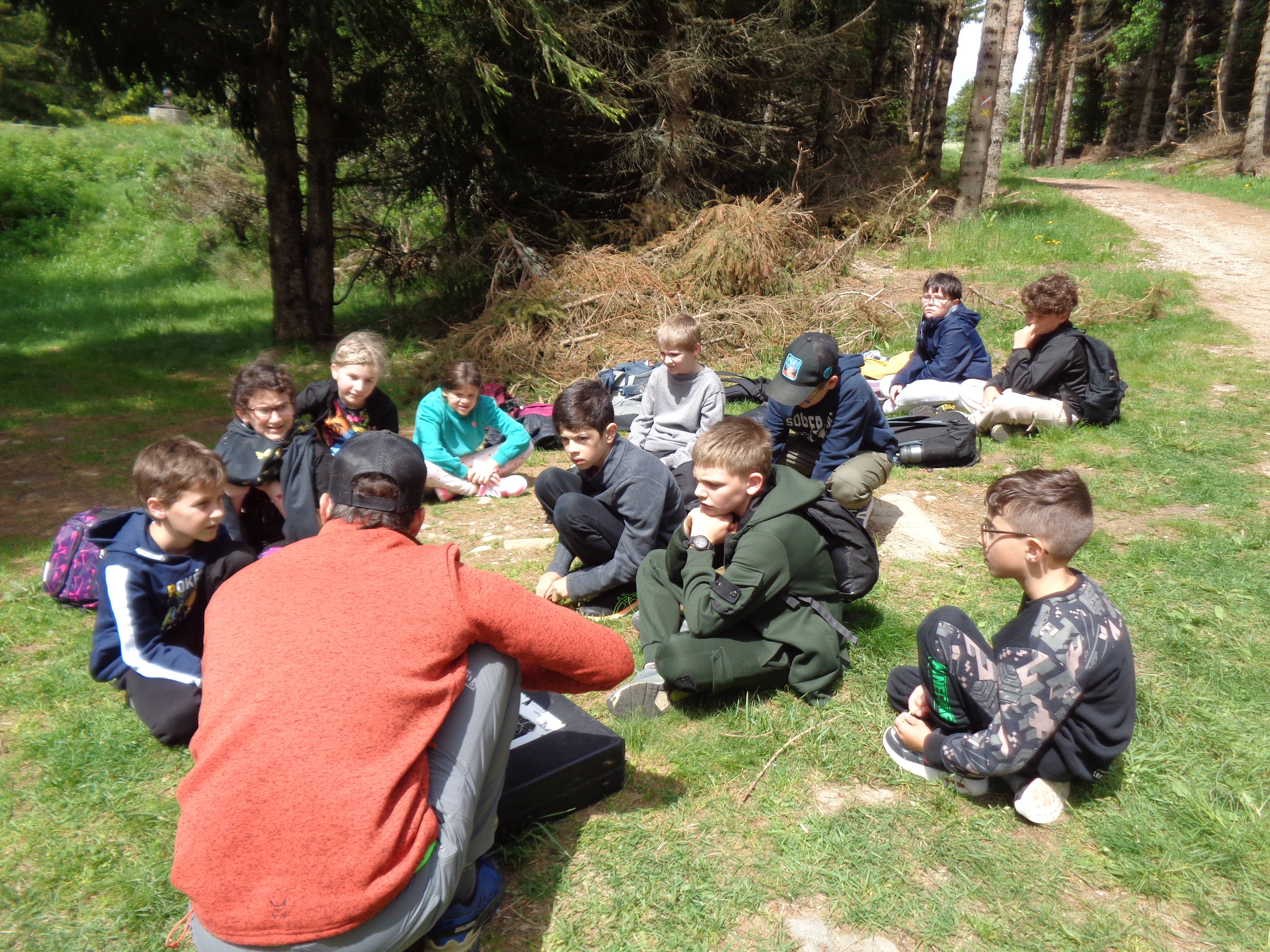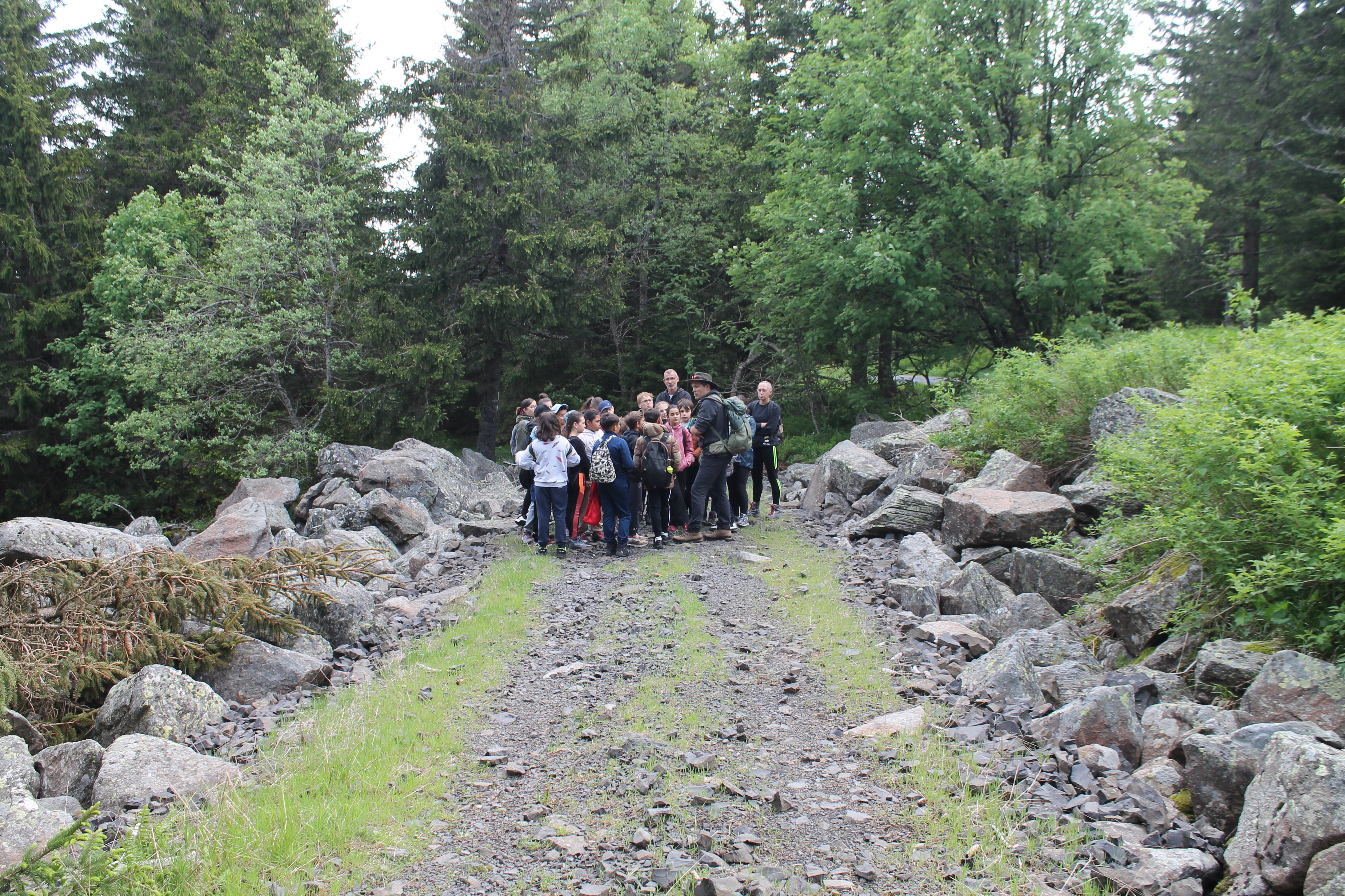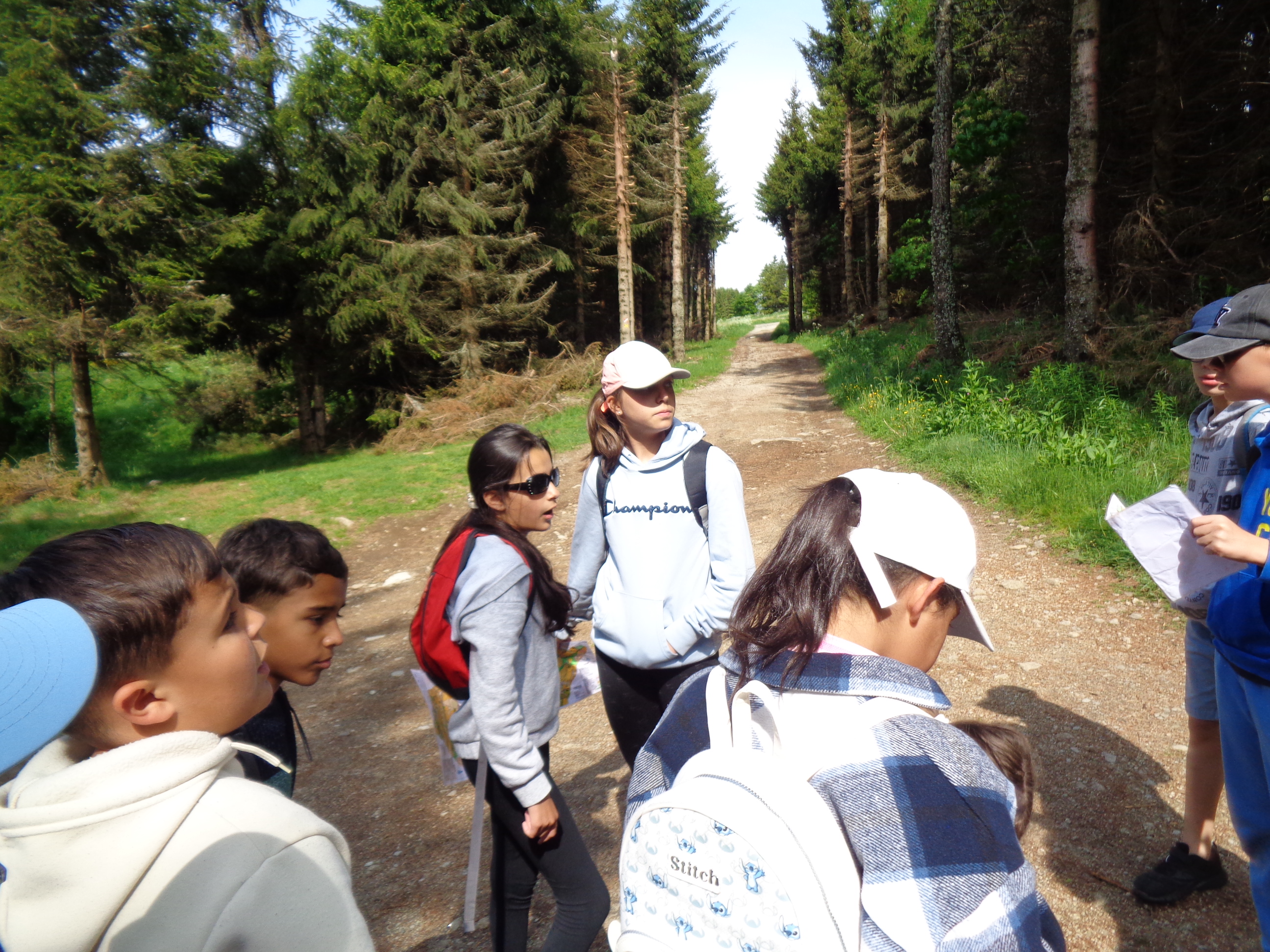 Pendant notre première randonnée nous étions avec Thierry. Nous marchions dans la forêt domaniale du Mézenc. J’ai appris beaucoup de choses ce jour là. Il nous a parlé de géographie, d’animaux, de deux sortes de forêts, celle qui son plantées, et celle qui apparaissent naturellement etc… La balade était agréable ainsi que le moniteur.