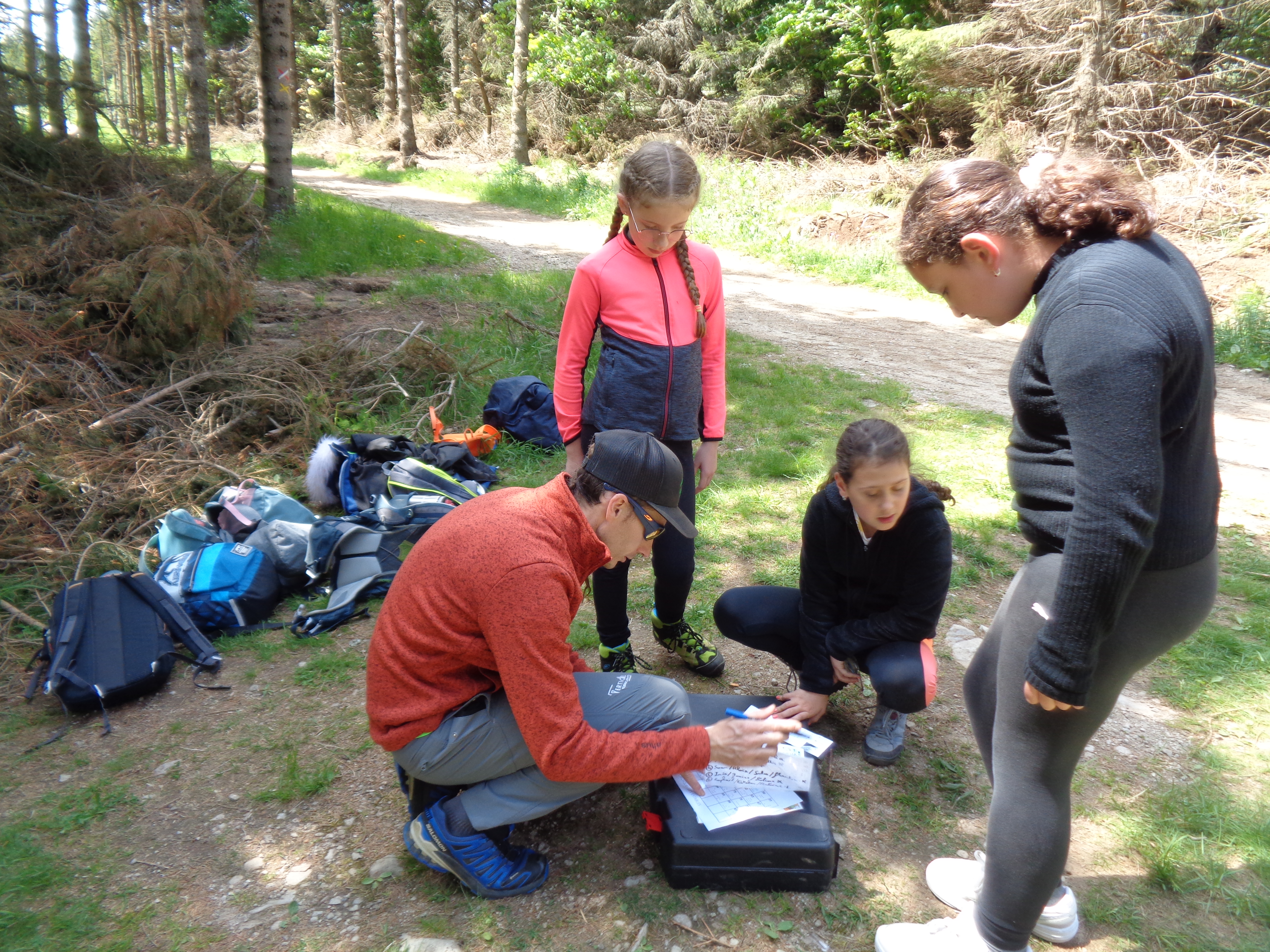 2- Dans la semaine nous avons fait deux courses d’orientation, la deuxième était plus facile parce que les balises étaient rapprochées. Dans mon équipe de la deuxième course d’orientation il y avait Romane, Luis,Timéo, Kimia et moi (Manon) et bien sur les adultes, comme adultes il y avait Simon et Sylvie.