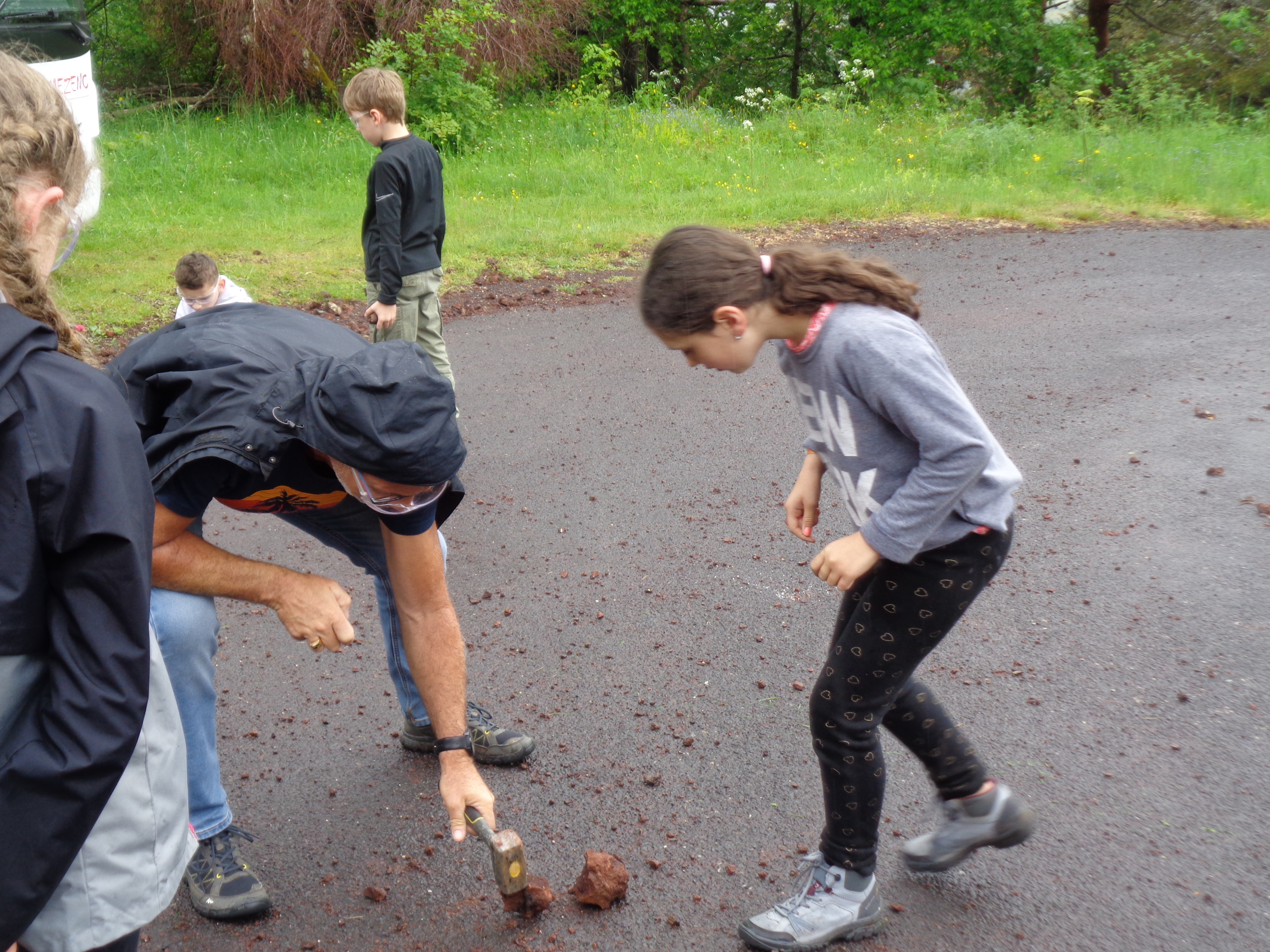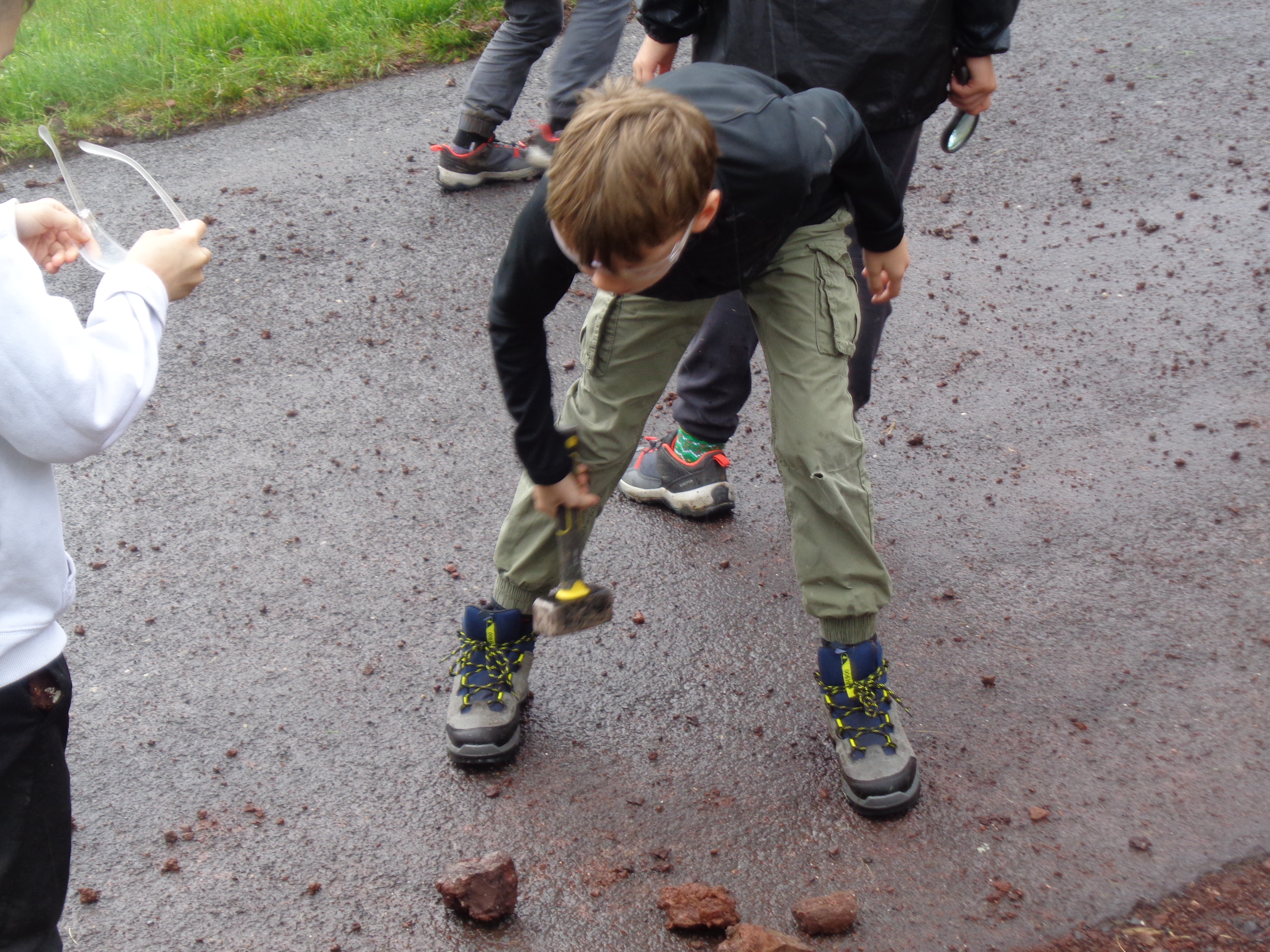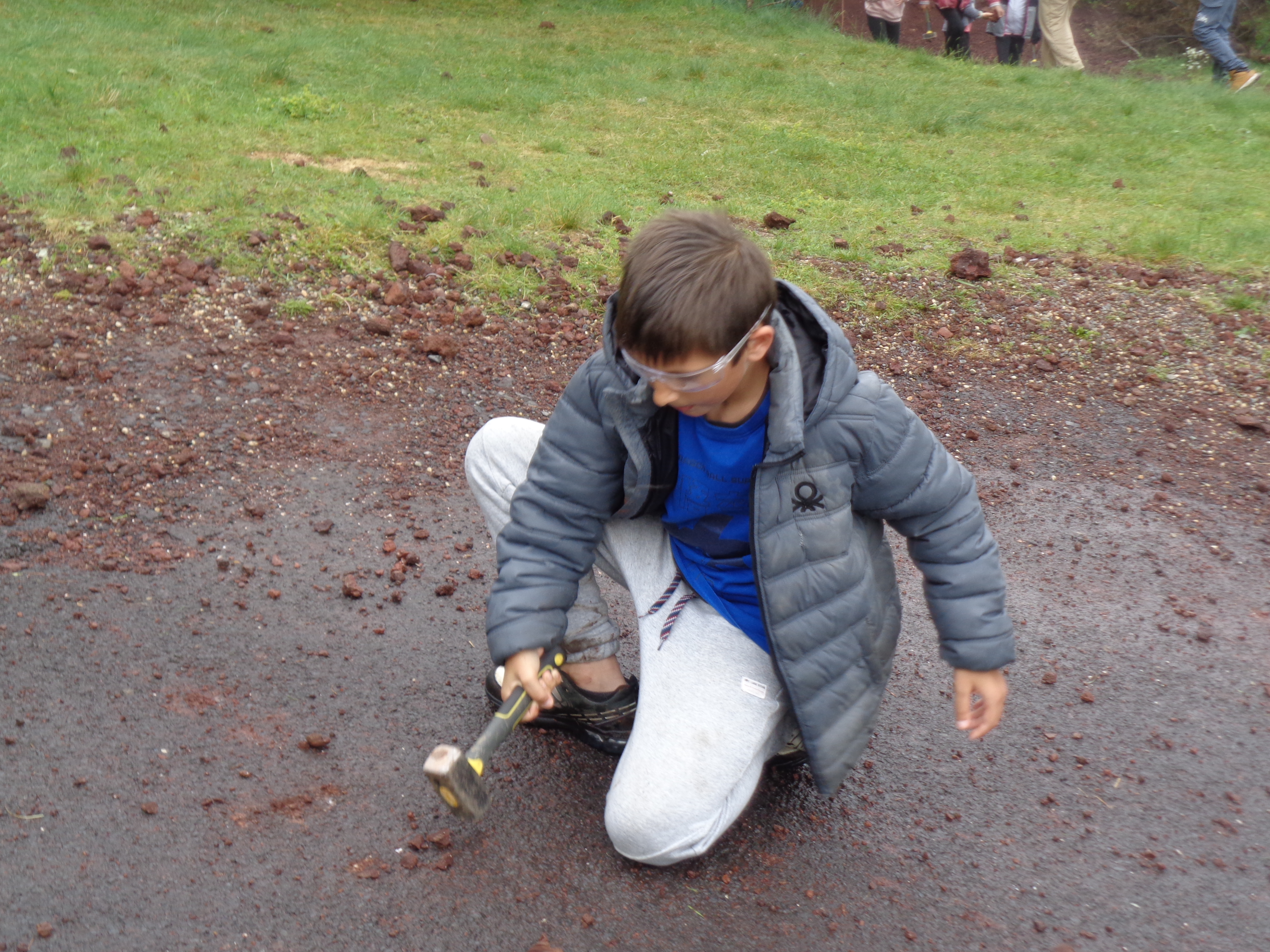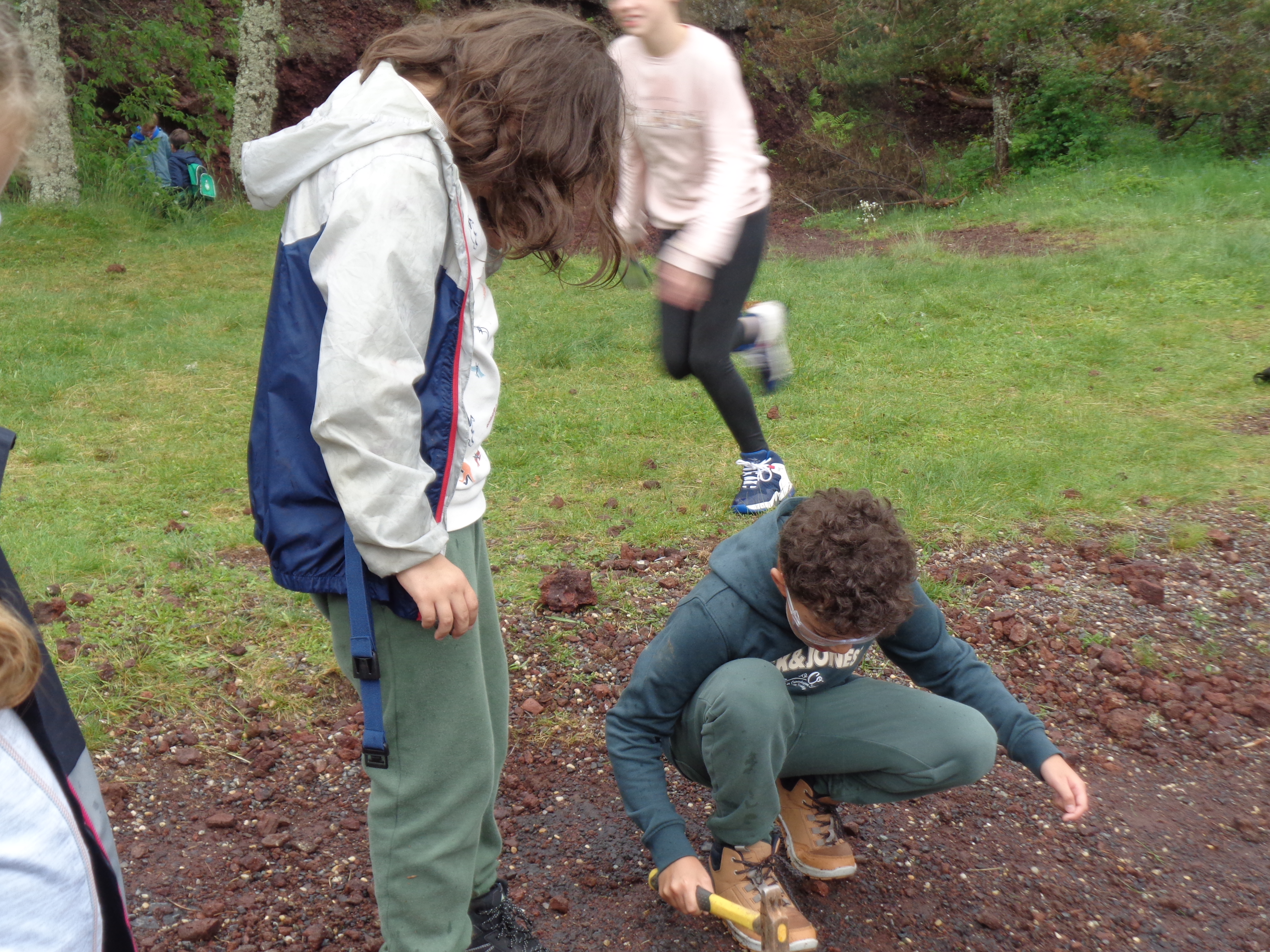 L'après-midi nous avons cassé des pierres volcaniques, nous y avons trouvé de l'olivine et d'autres minéraux: du granit et du mica noir. Quand nous avons fini de casser ces minéraux, nous avons visité le volcan du Cherchemuse,. Nous avons gouté sur place, c'était une très bonne journée!